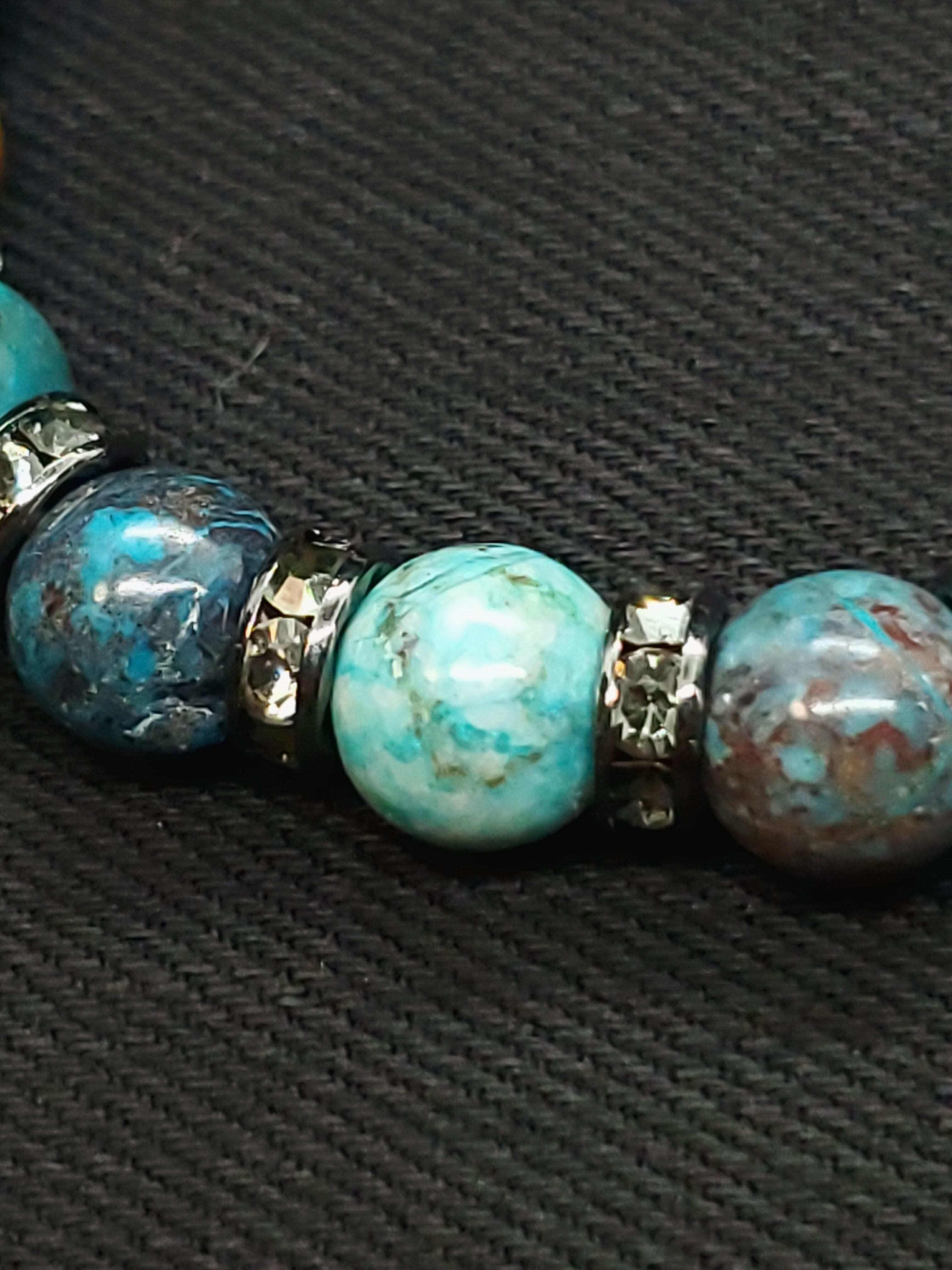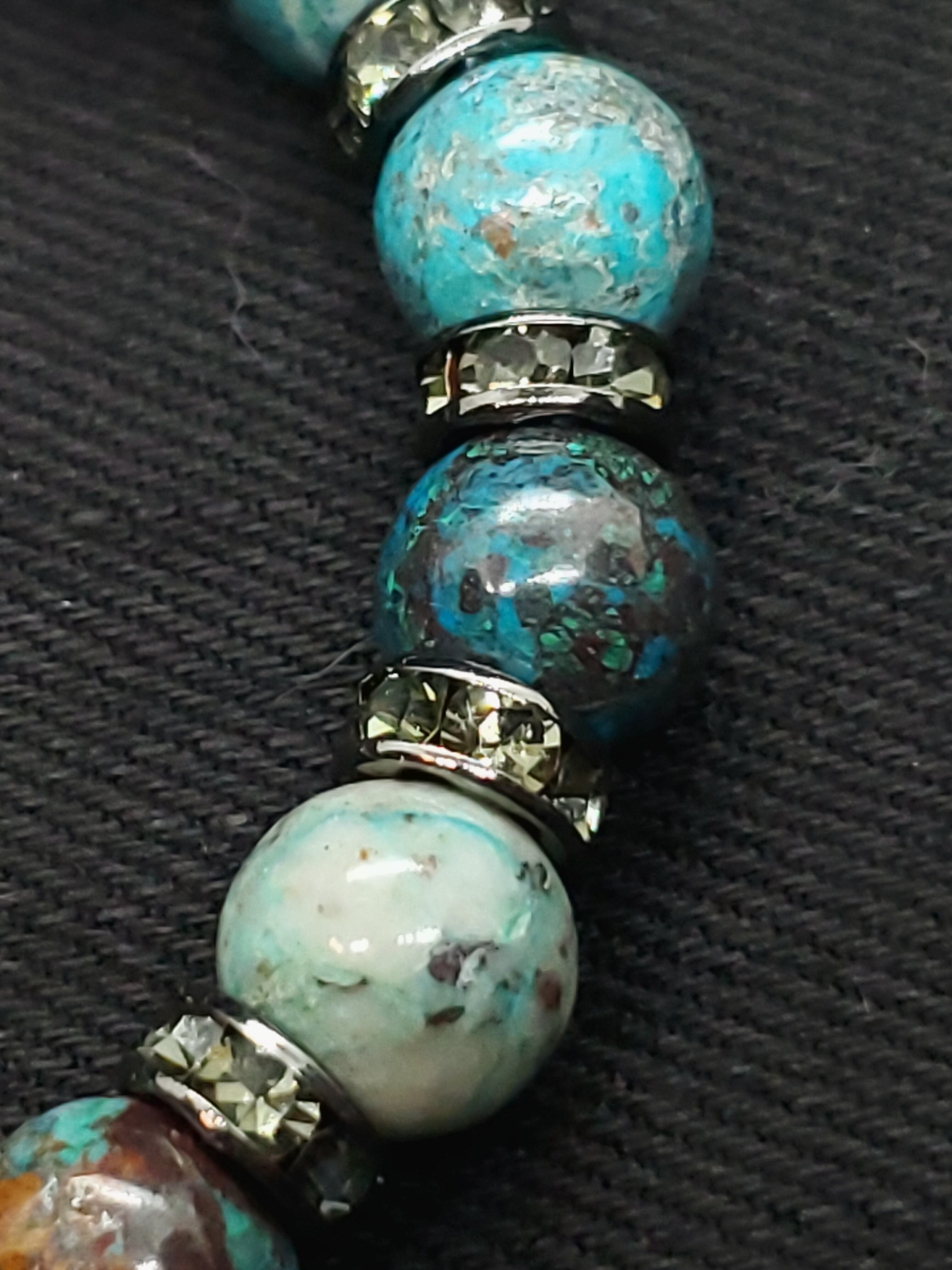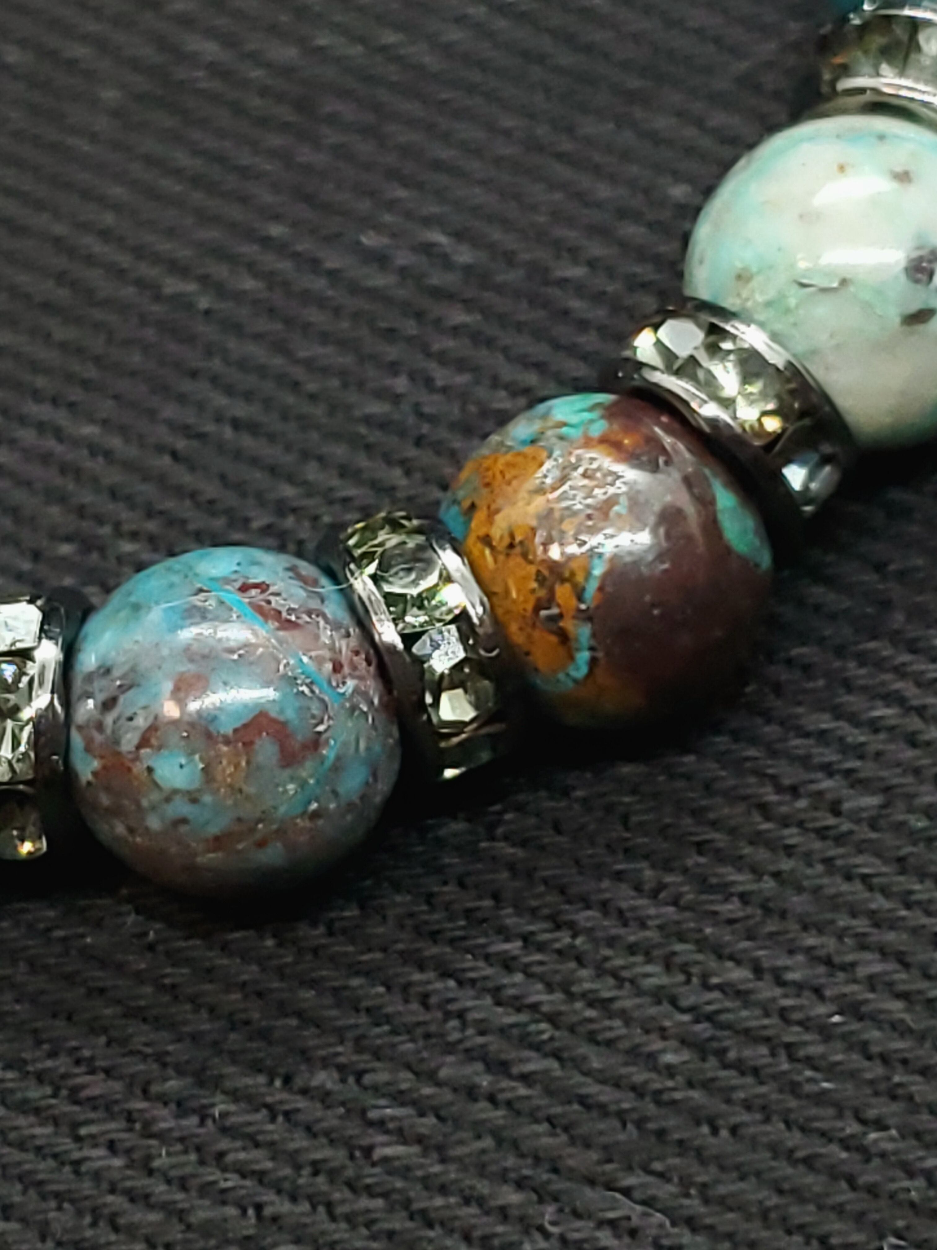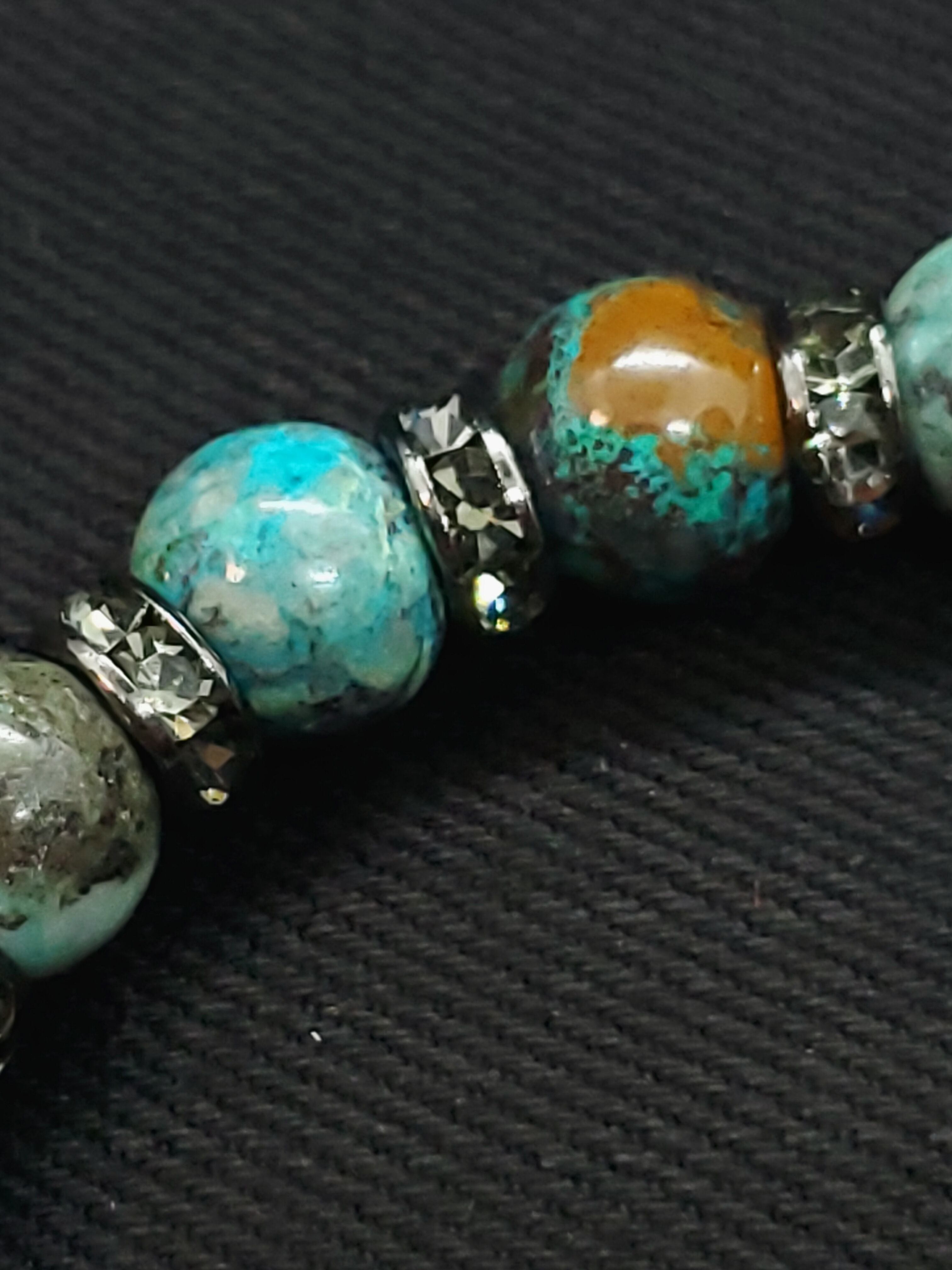 クリソコラはケイ酸塩鉱物の一種で、マラカイト(孔雀石)と似た成分を持ち、同時に産出されることも多い鉱物です。