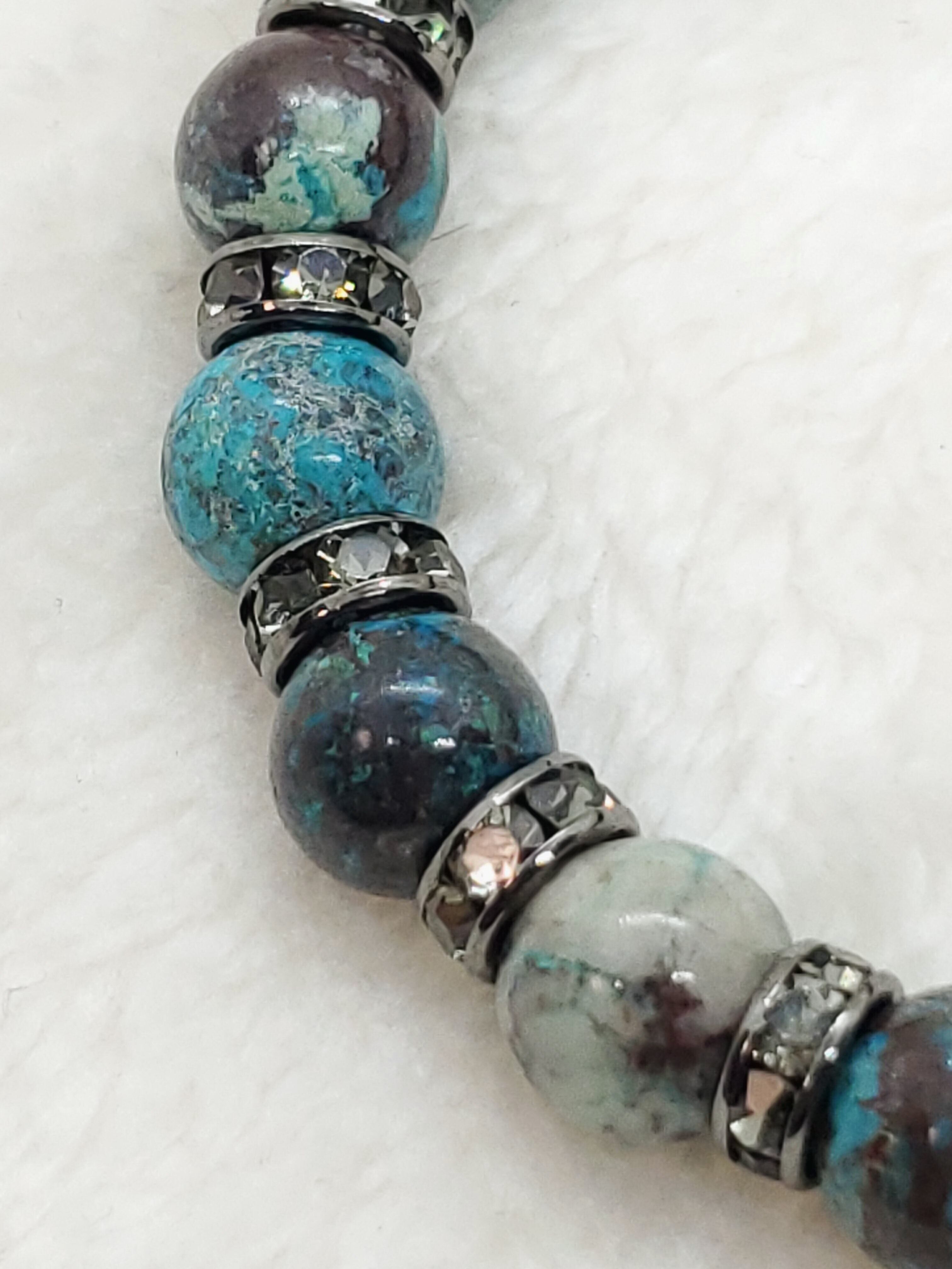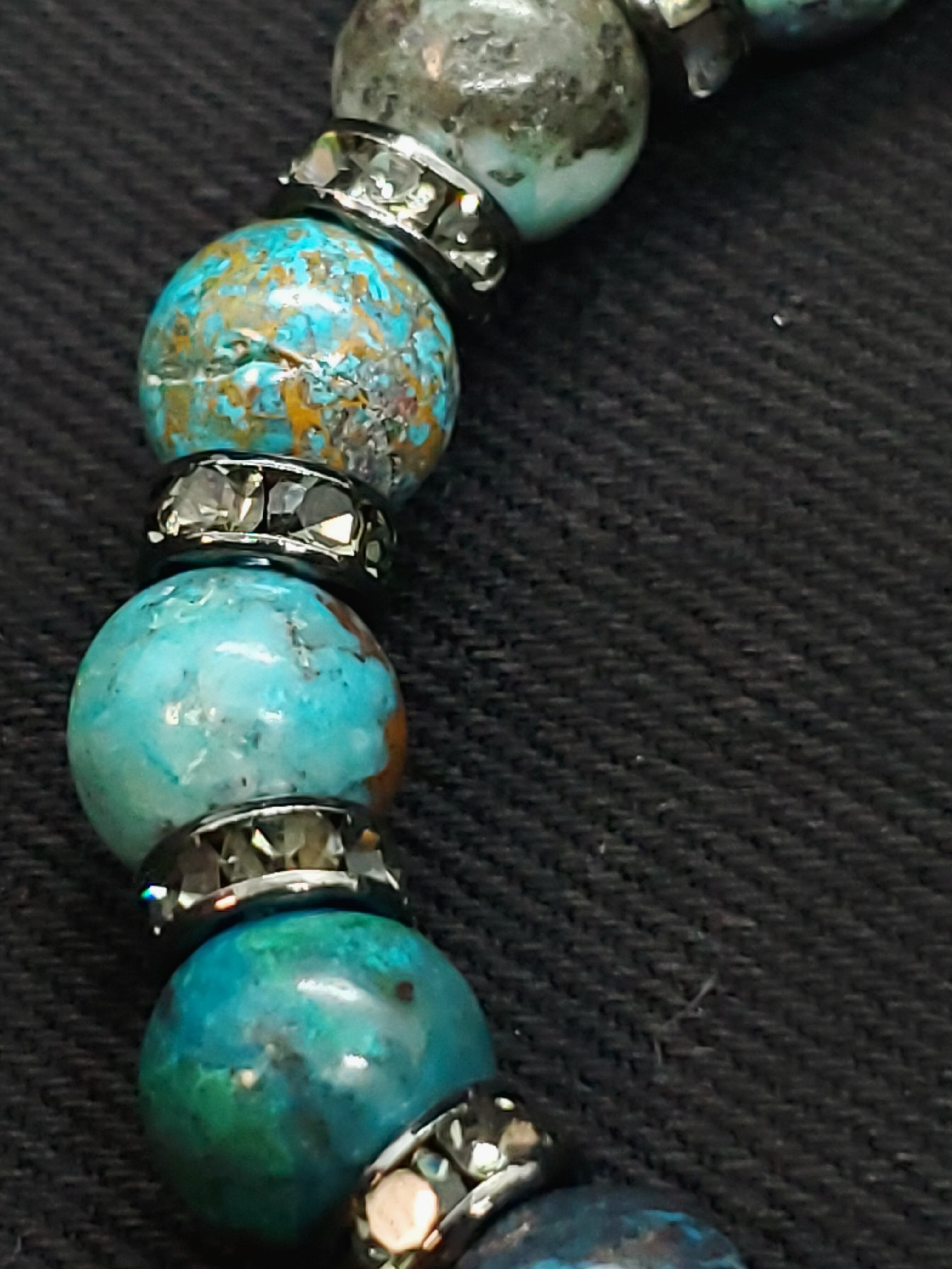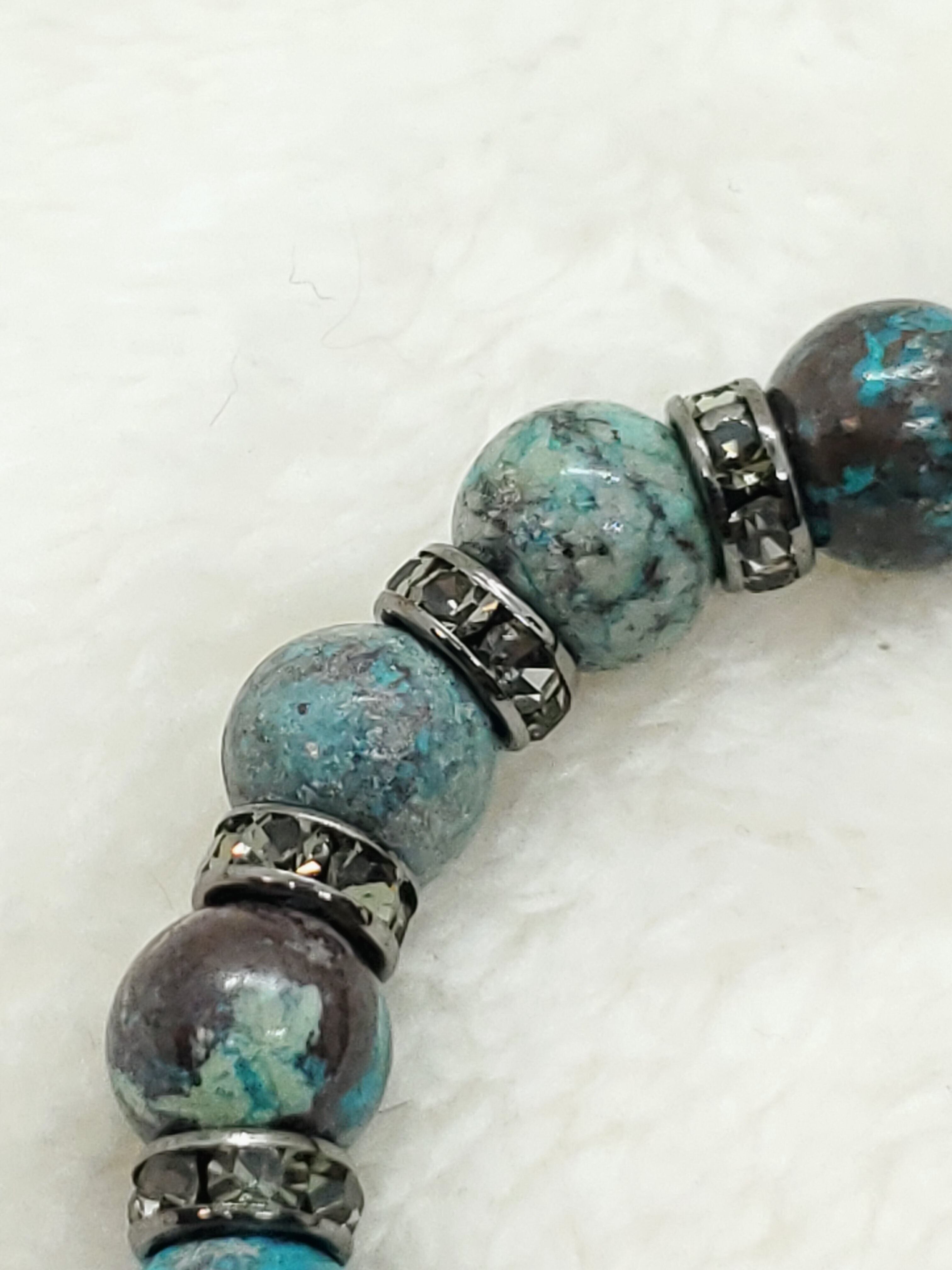 クリソコラはケイ酸塩鉱物の一種で、マラカイト(孔雀石)と似た成分を持ち、同時に産出されることも多い鉱物です。