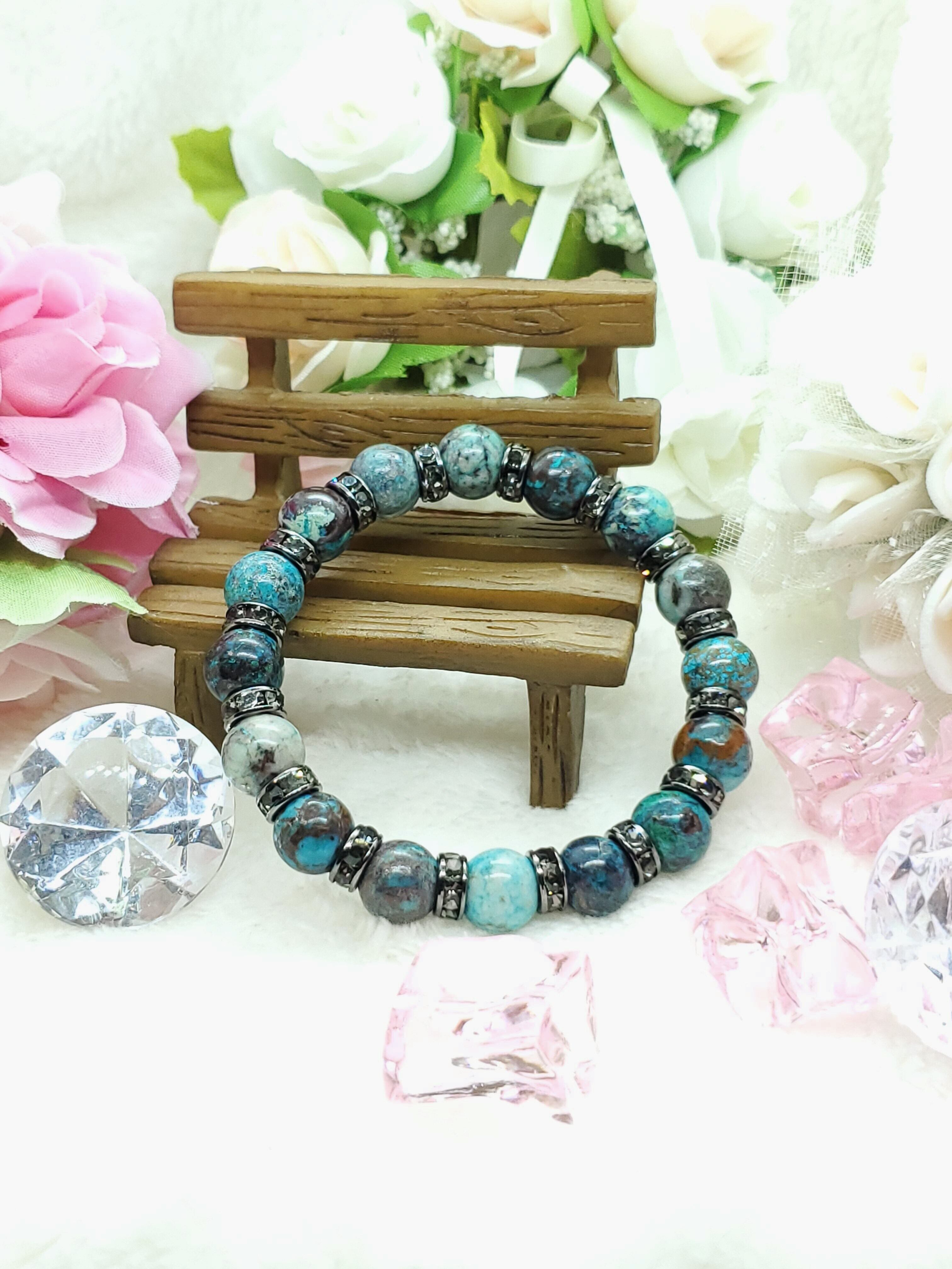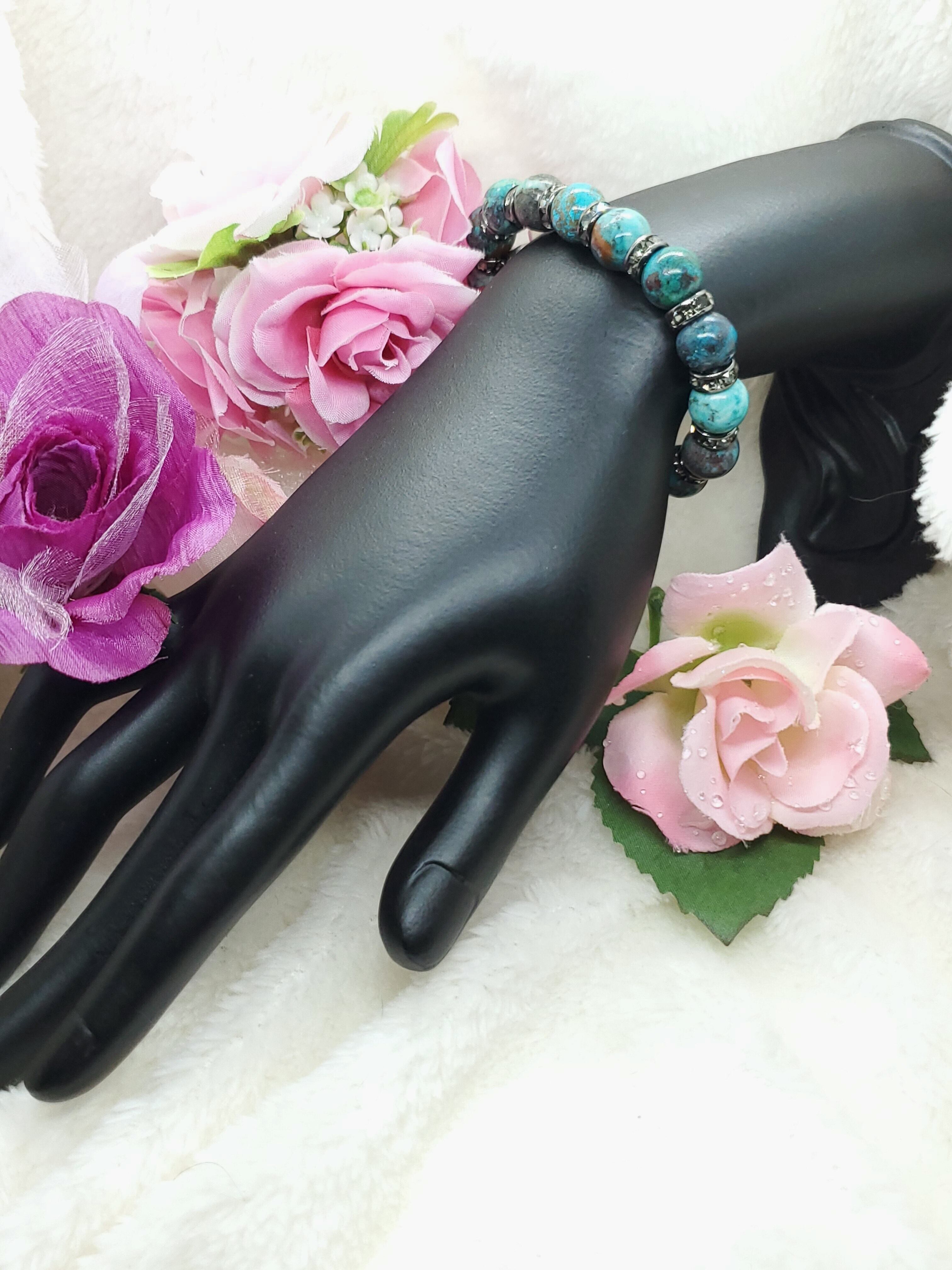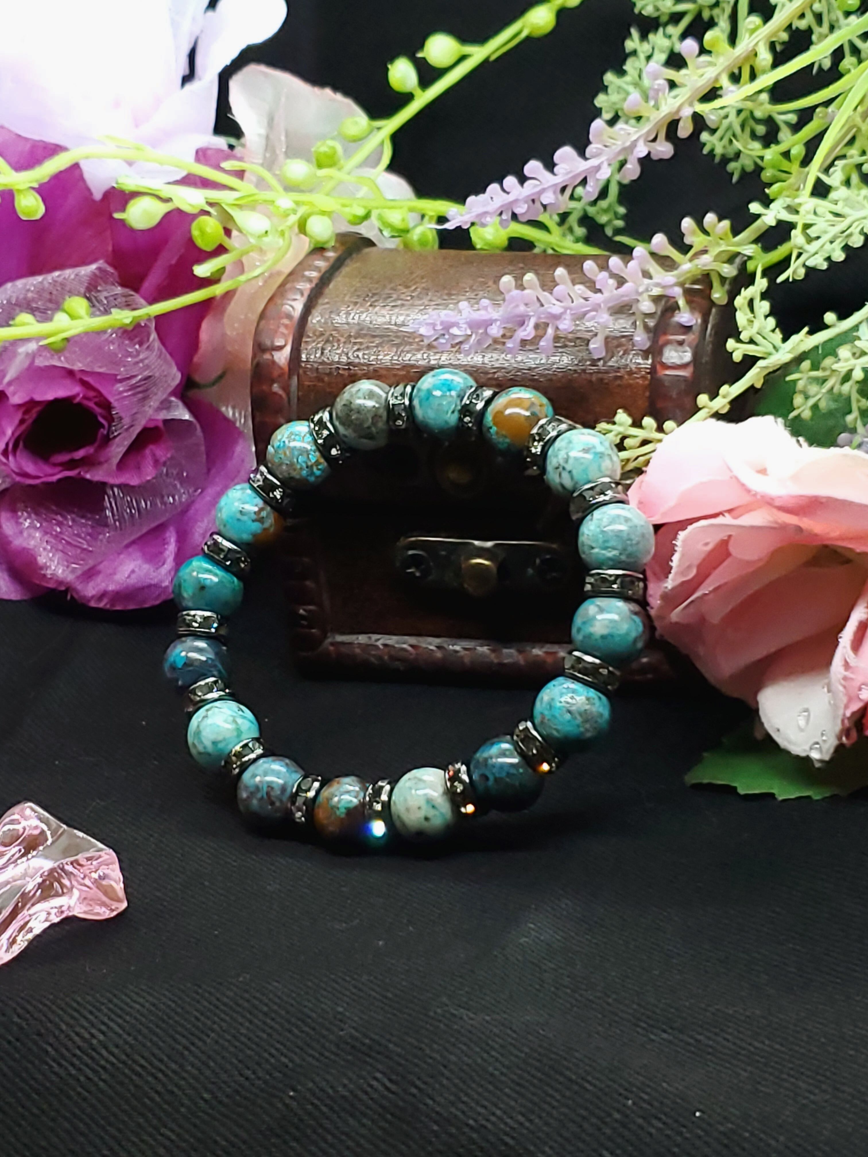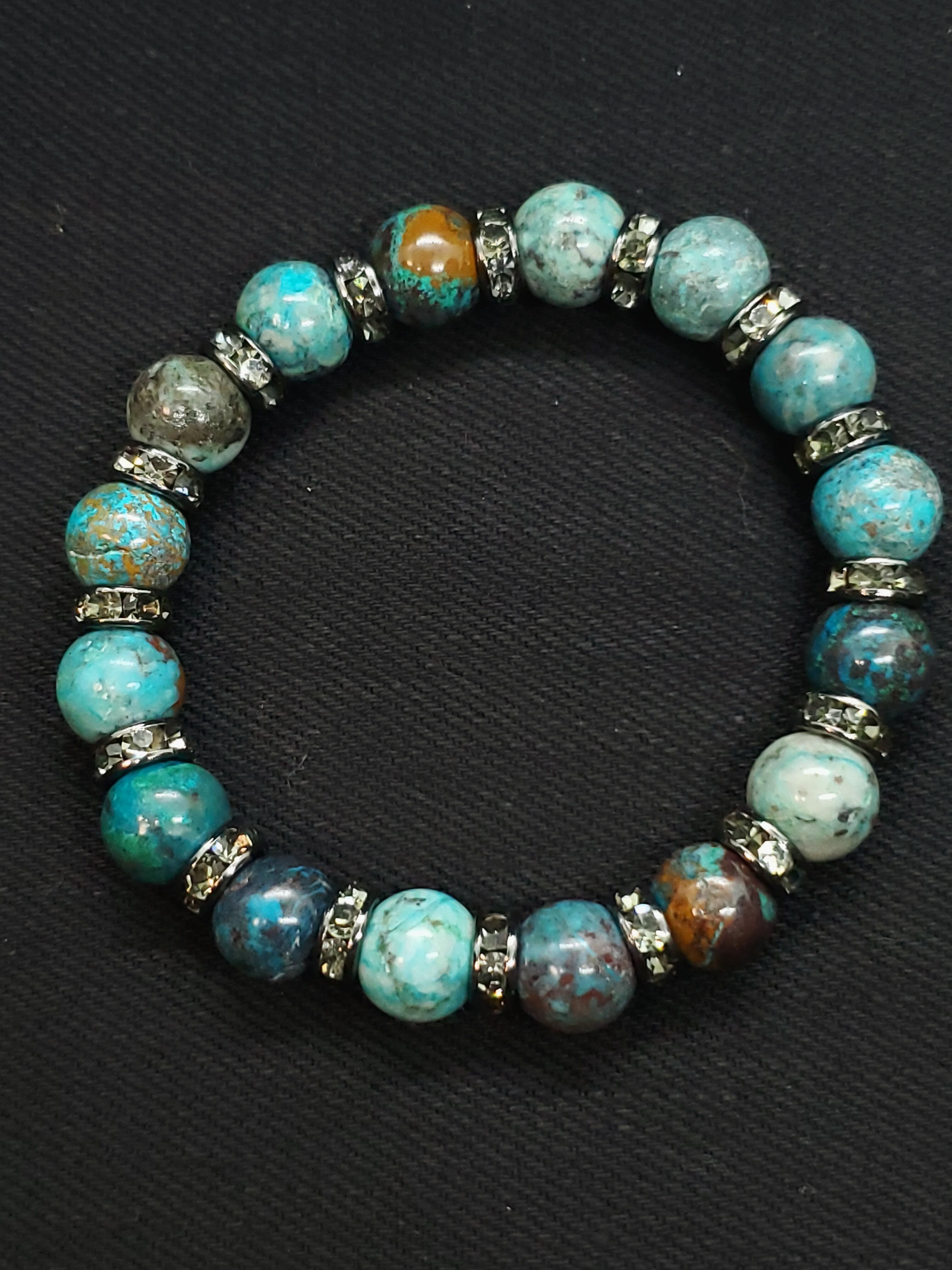 クリソコラはケイ酸塩鉱物の一種で、マラカイト(孔雀石)と似た成分を持ち、同時に産出されることも多い鉱物です。