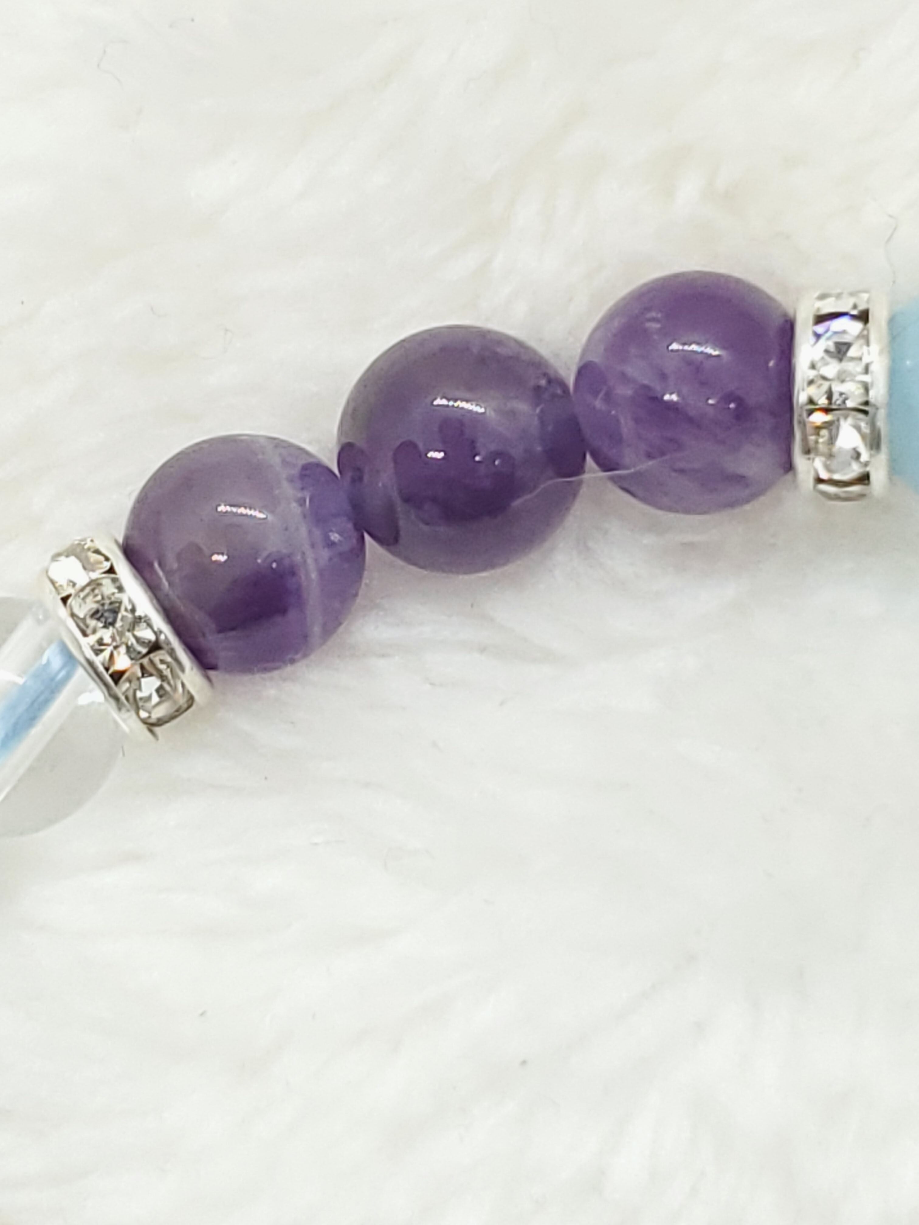 ※アメジストを含む色水晶は、紫外線により退色しますので、日光に長時間当てることは避けてください。