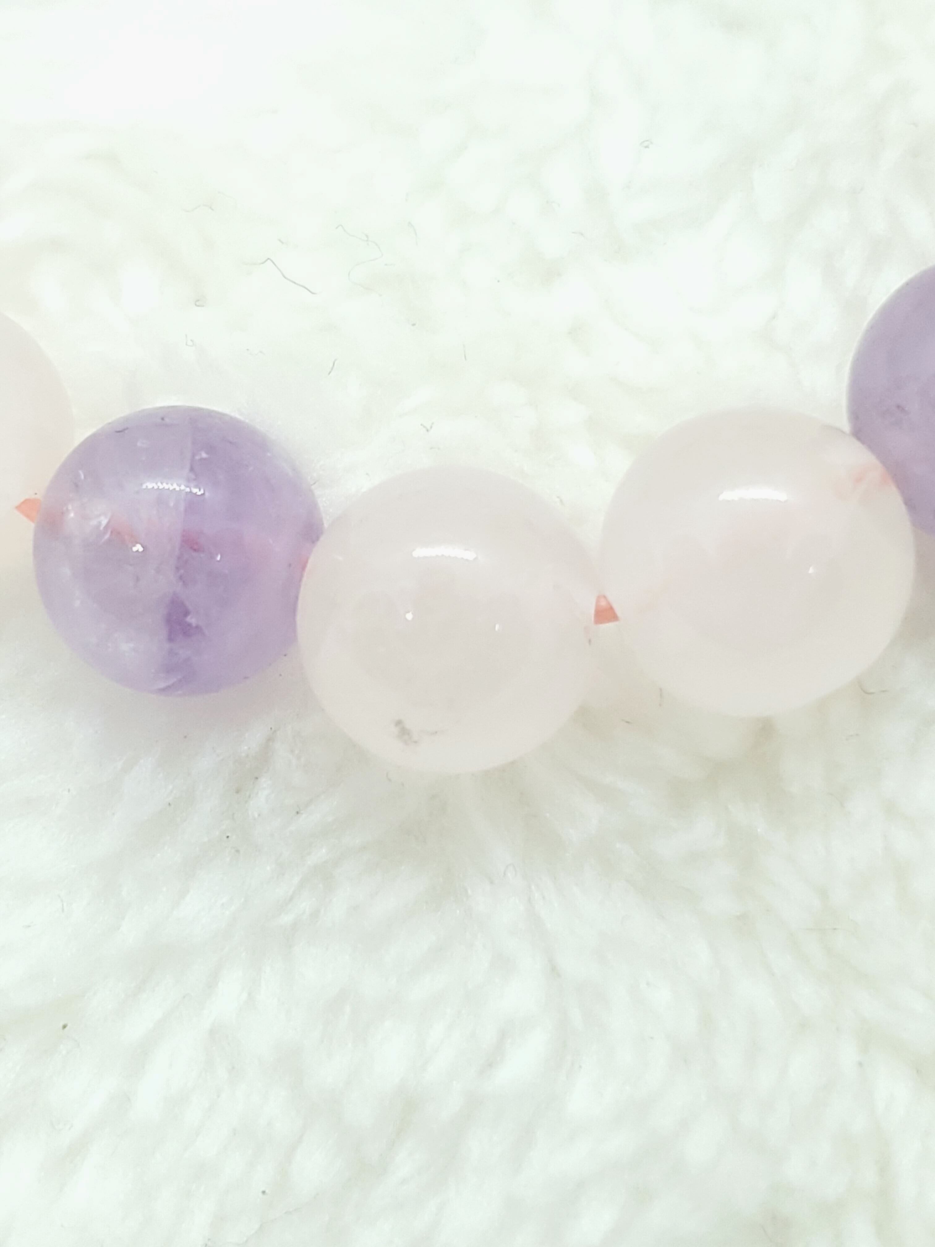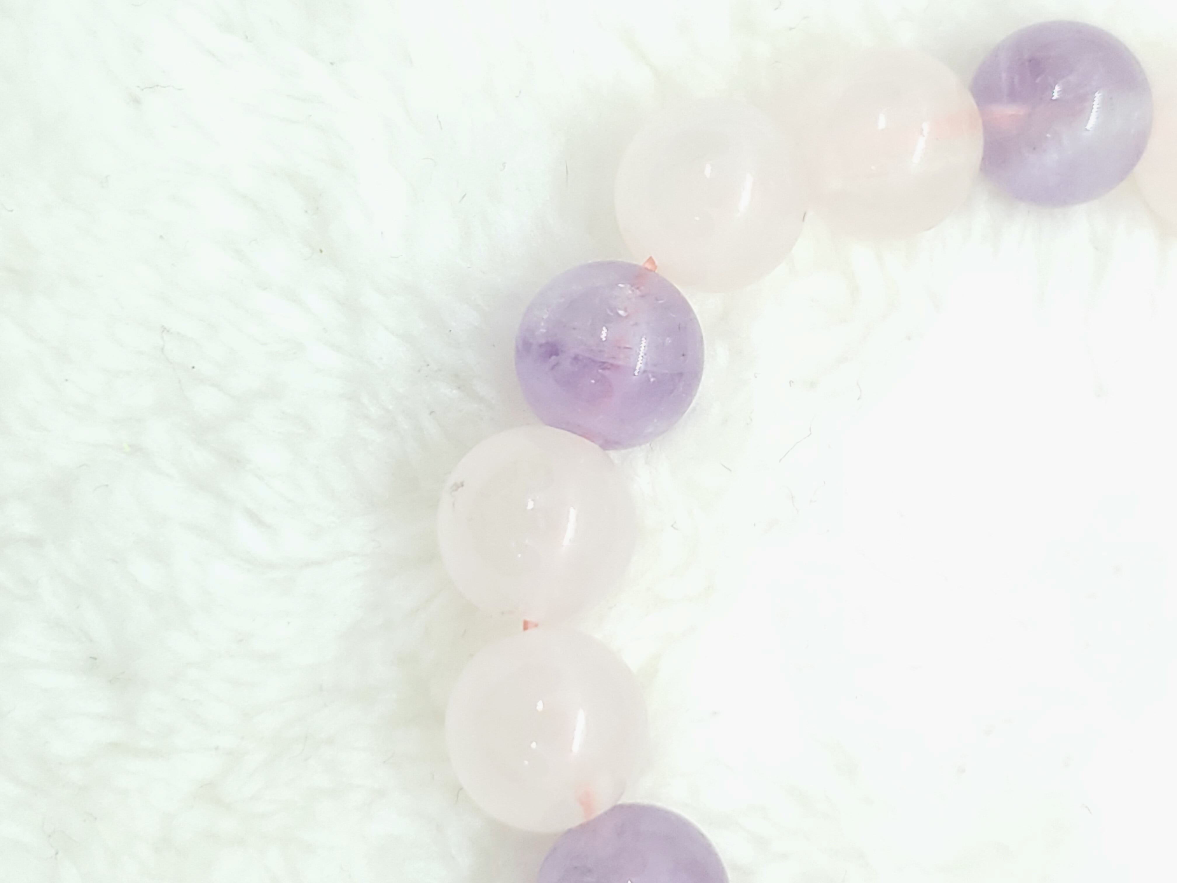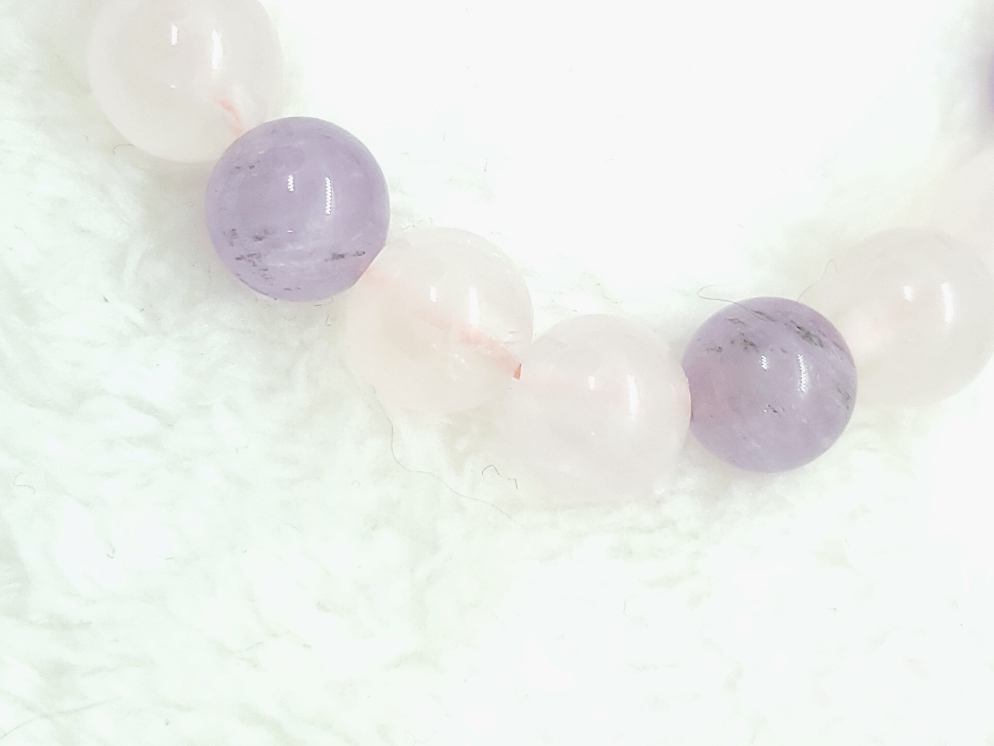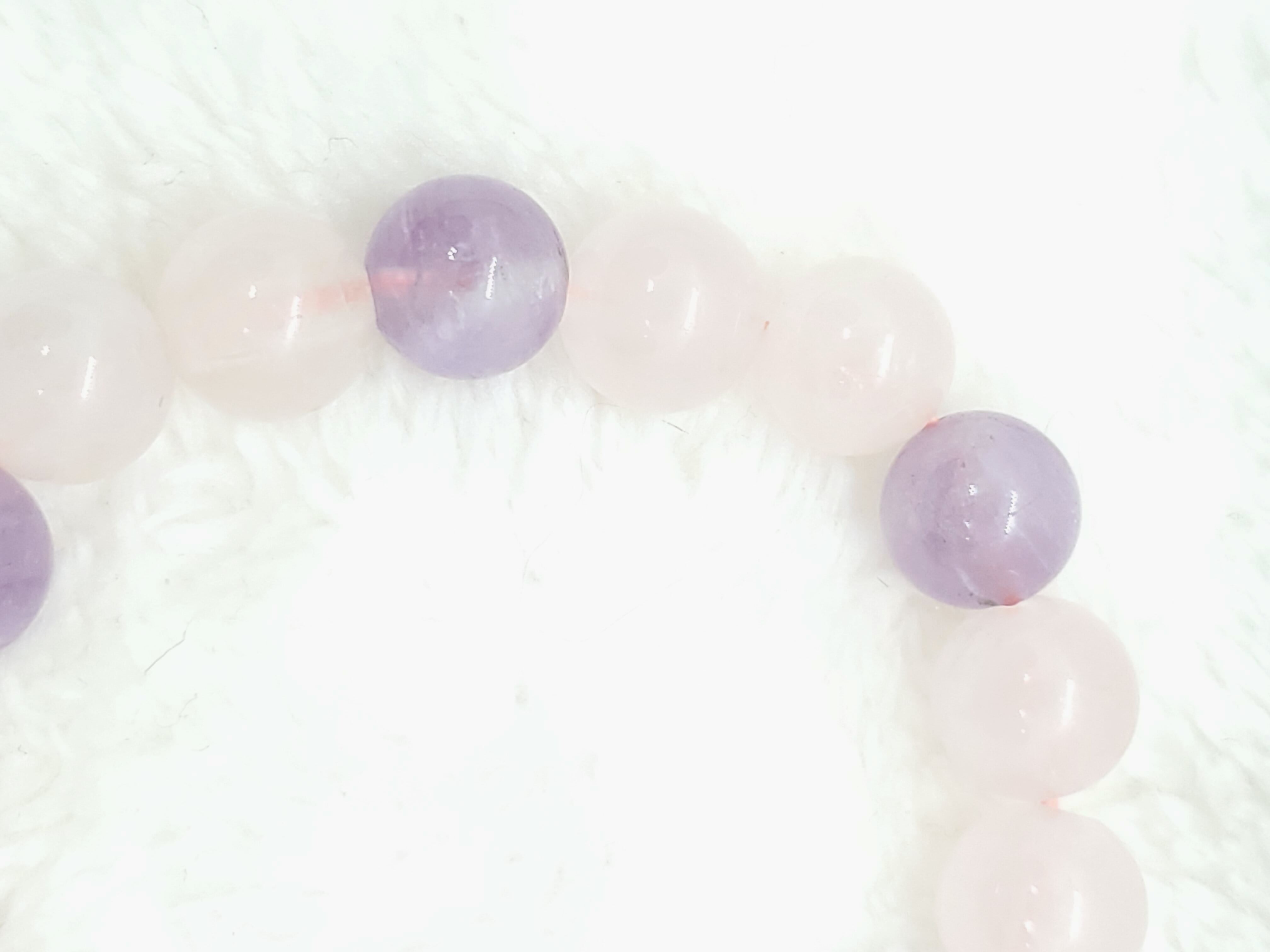 ラベンダーカラーのかわいらしい色合いのアメジストと、薄いピンク色のローズクォーツの組み合わせです。