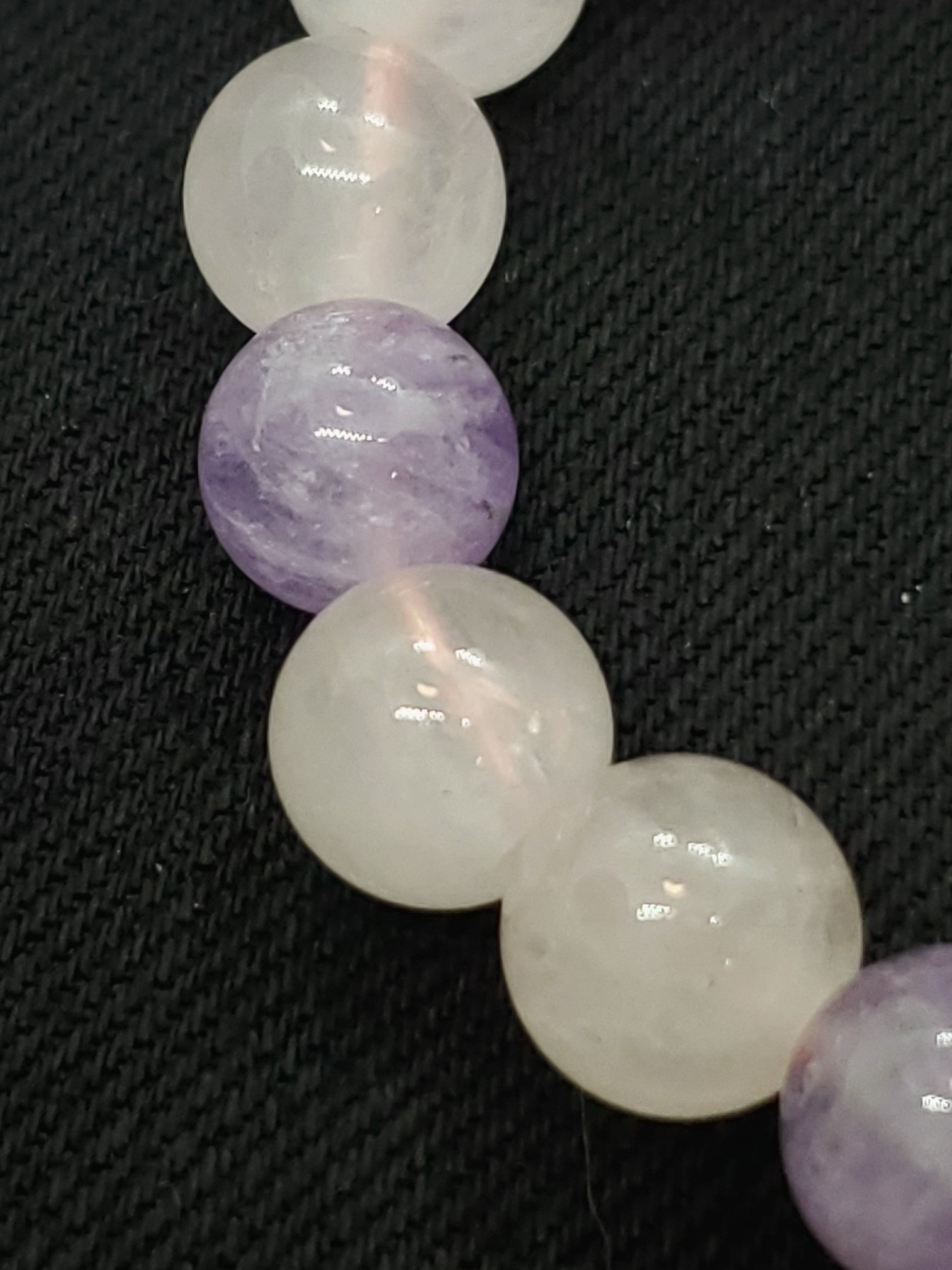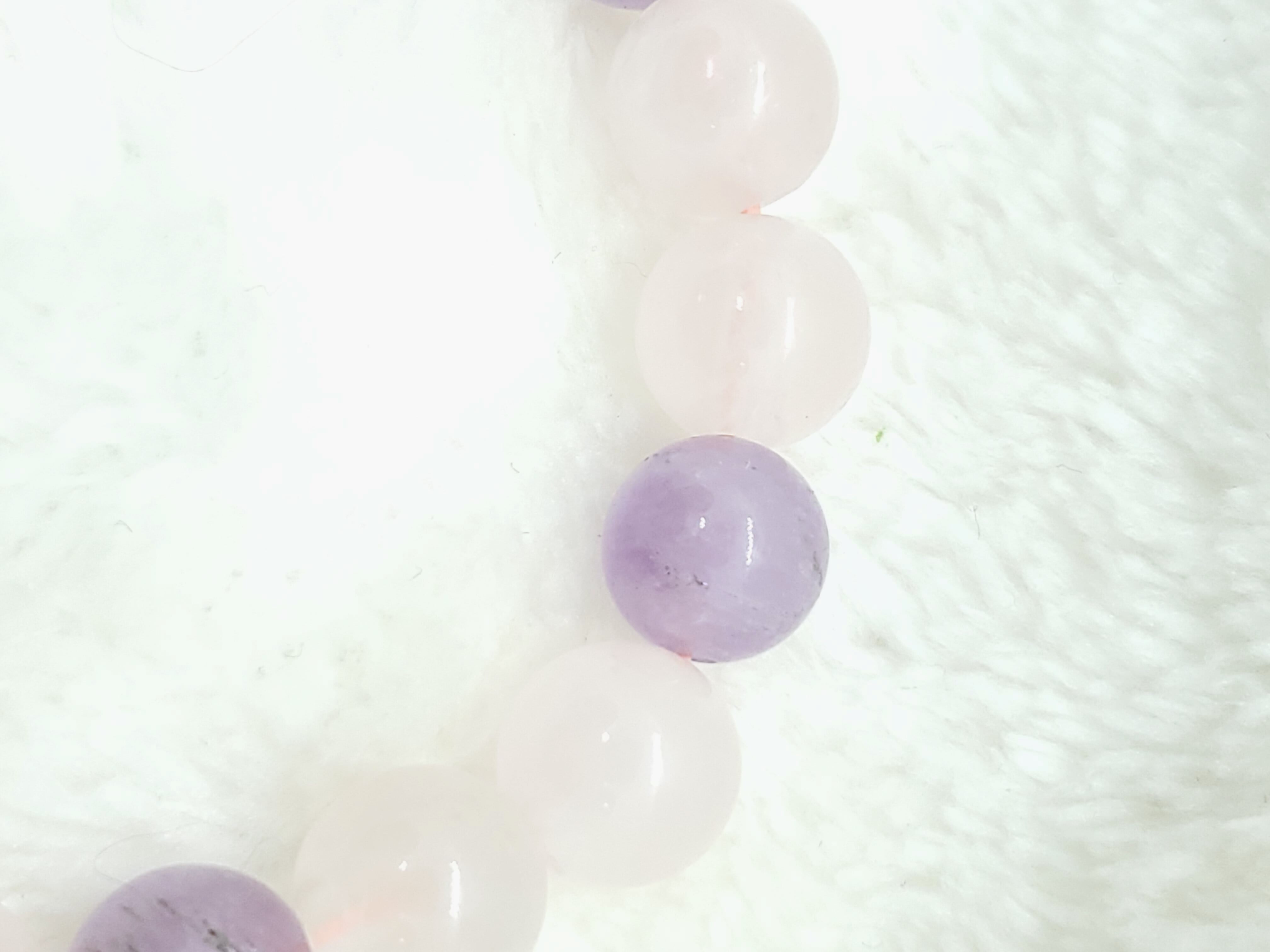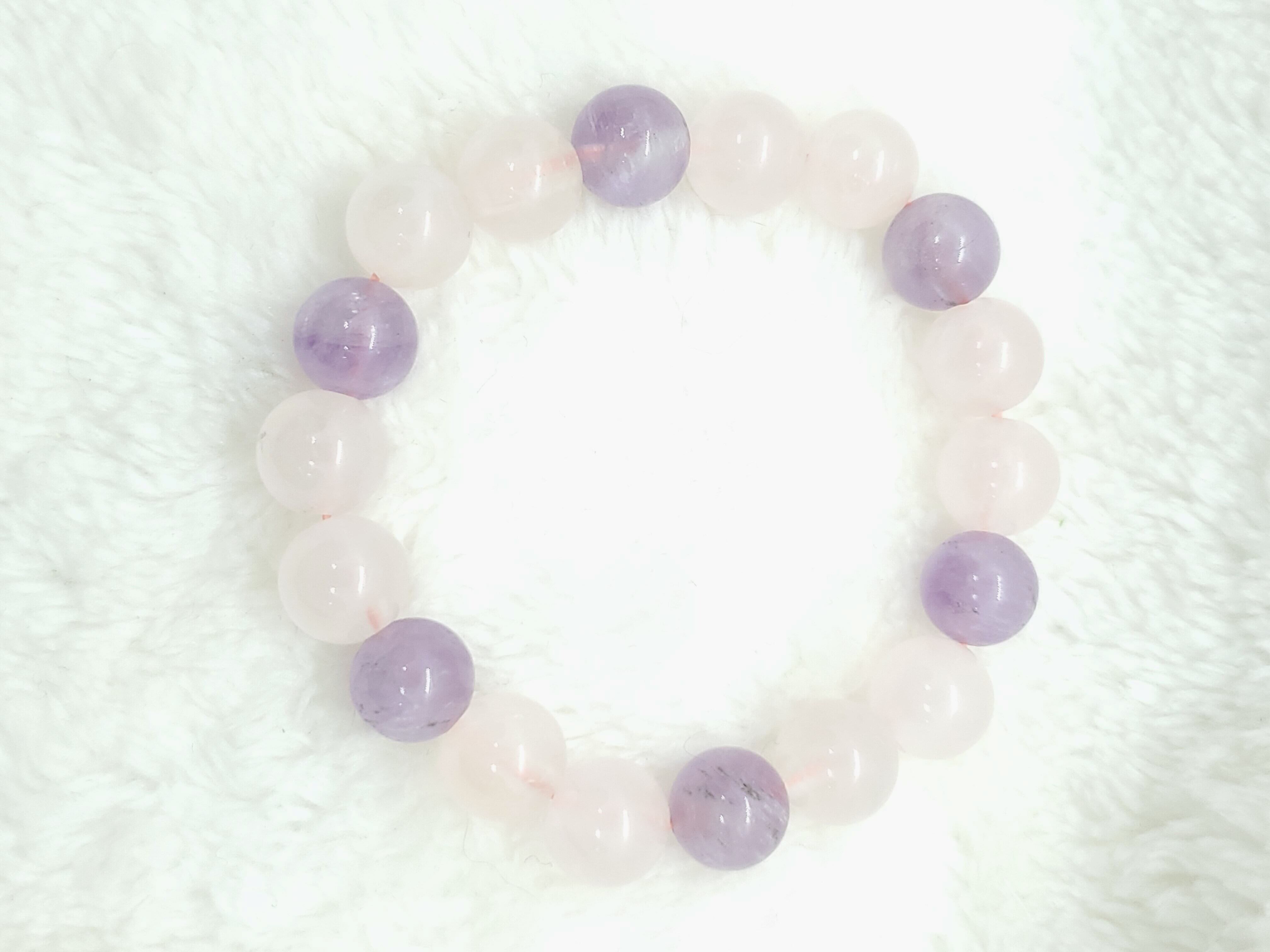 ラベンダーカラーのかわいらしい色合いのアメジストと、薄いピンク色のローズクォーツの組み合わせです。