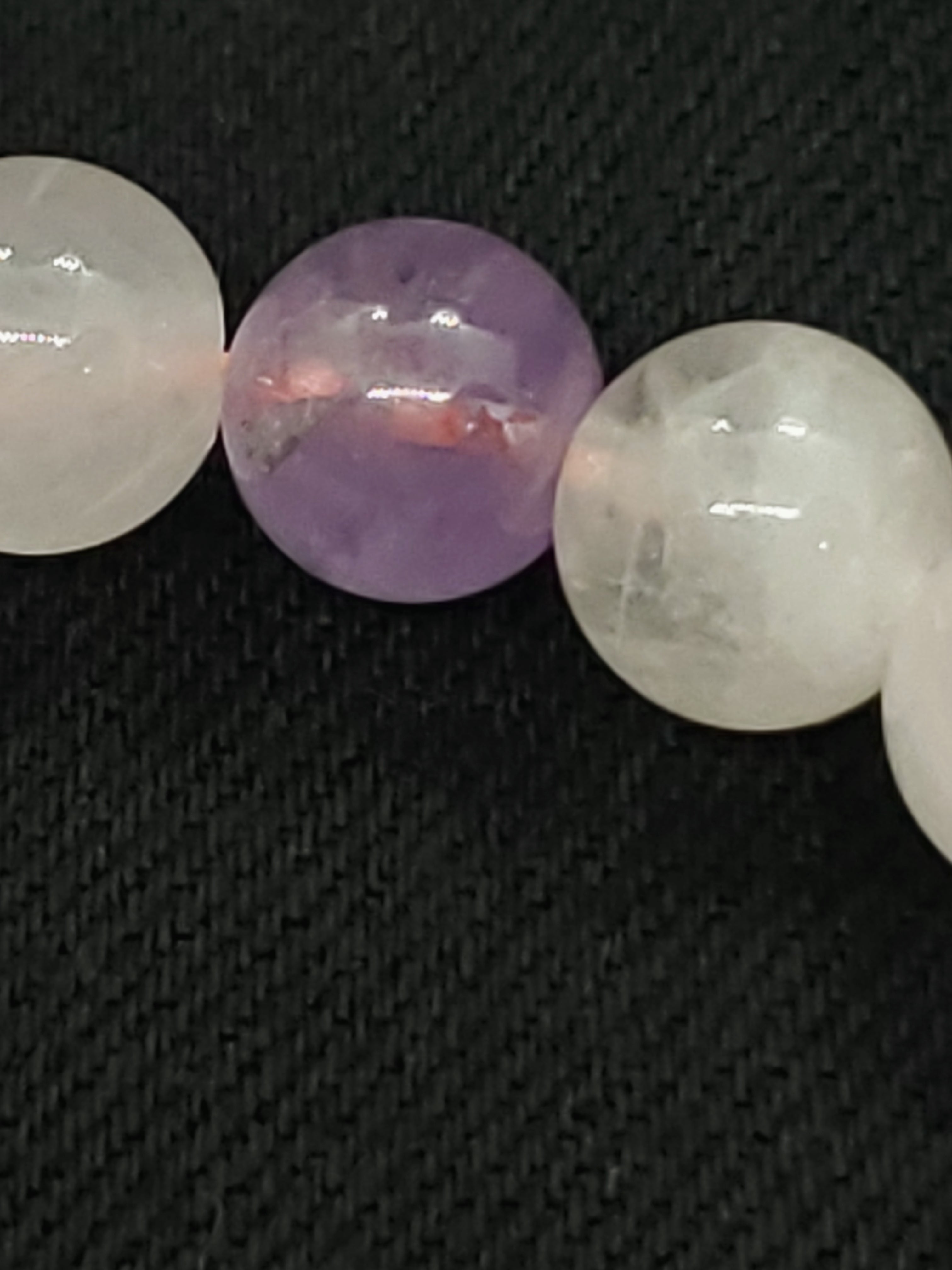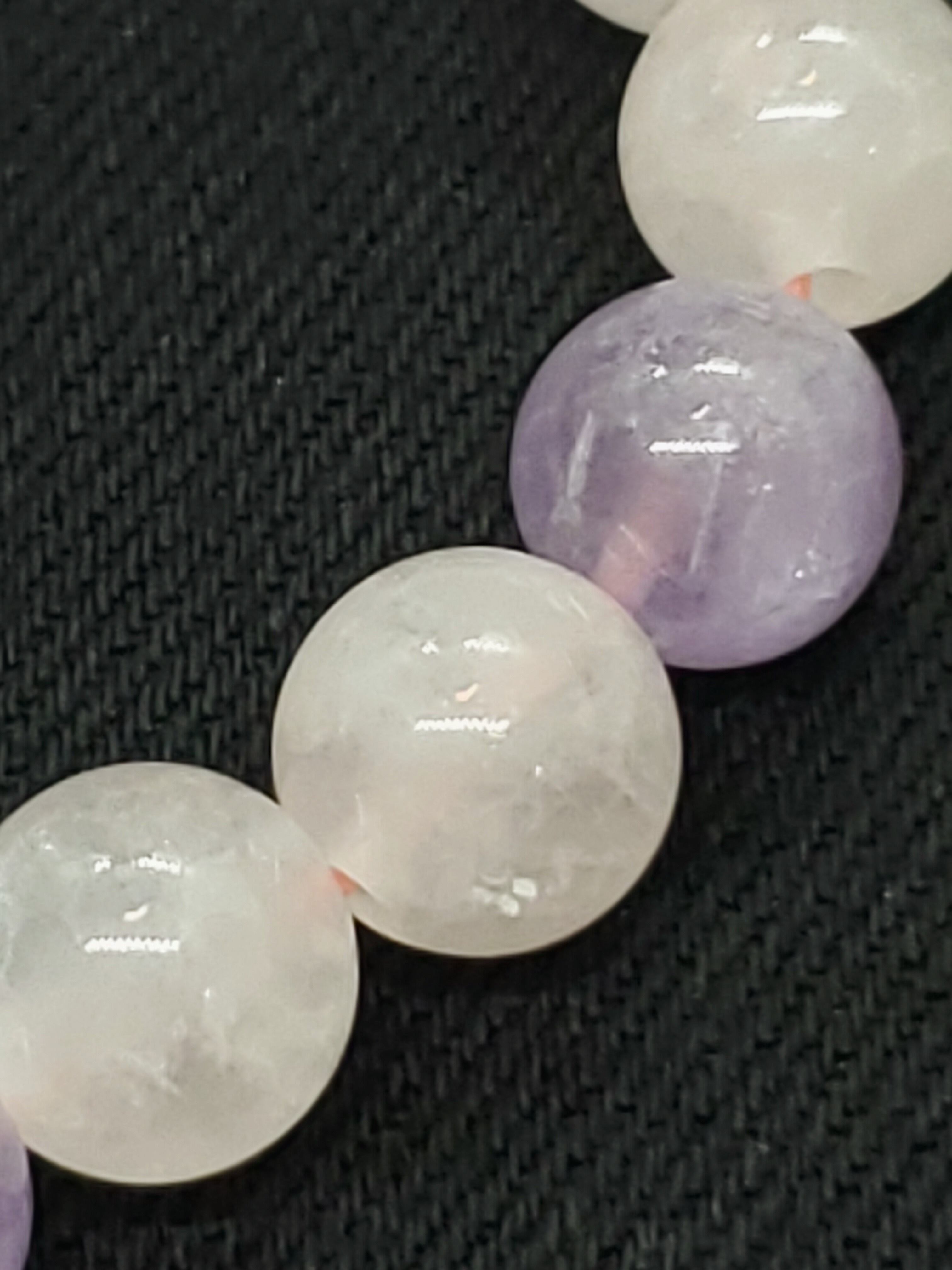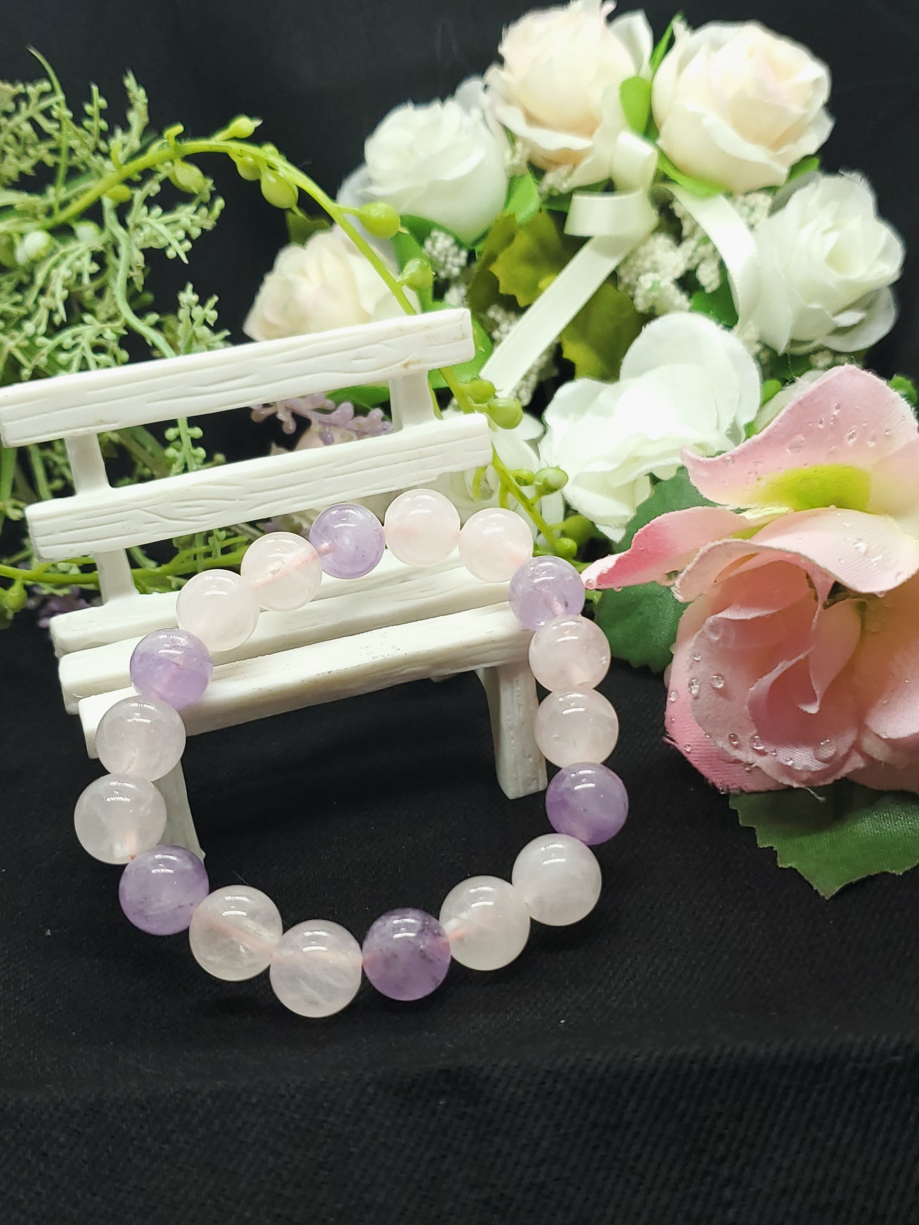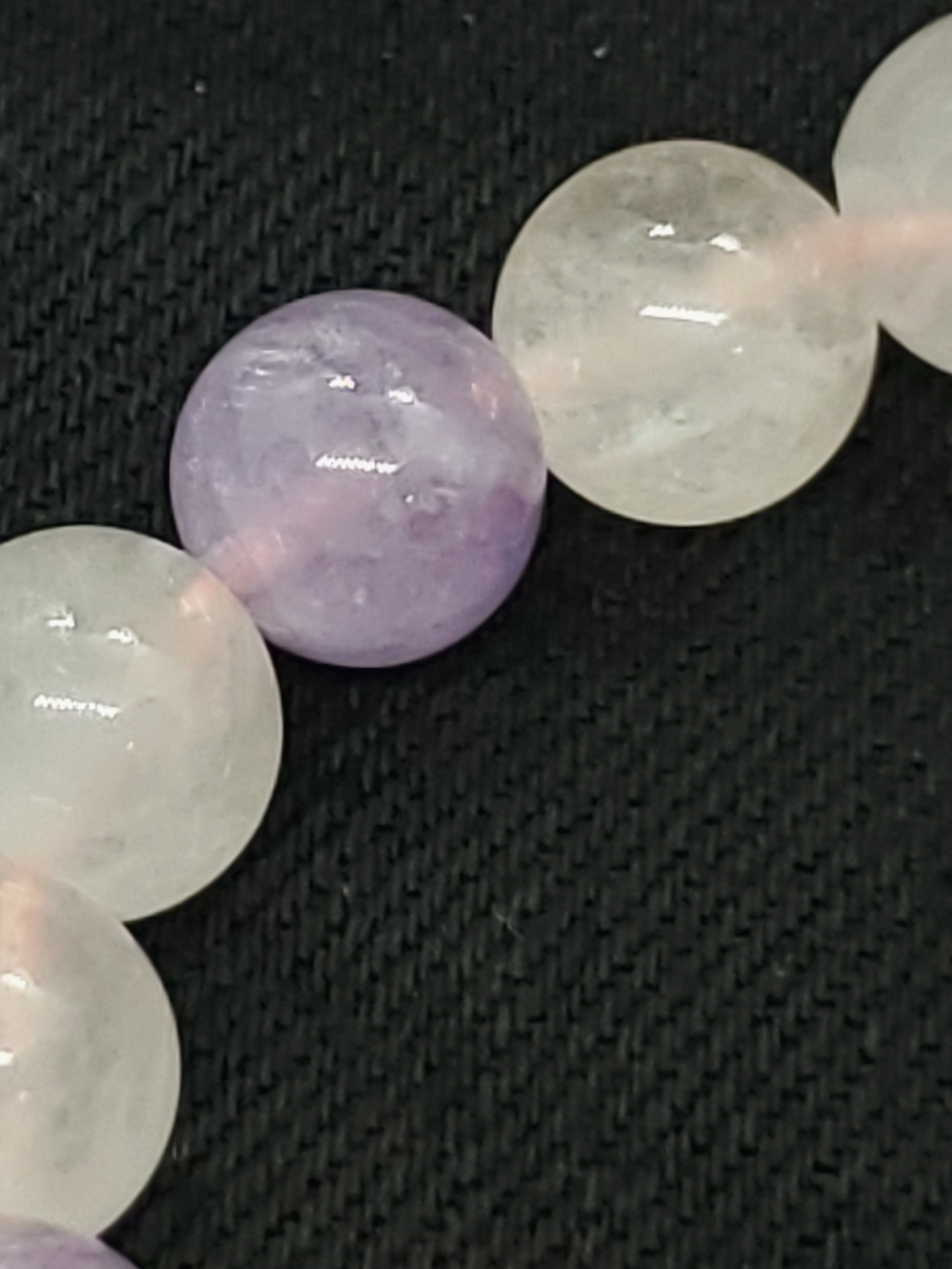 ラベンダーカラーのかわいらしい色合いのアメジストと、薄いピンク色のローズクォーツの組み合わせです。