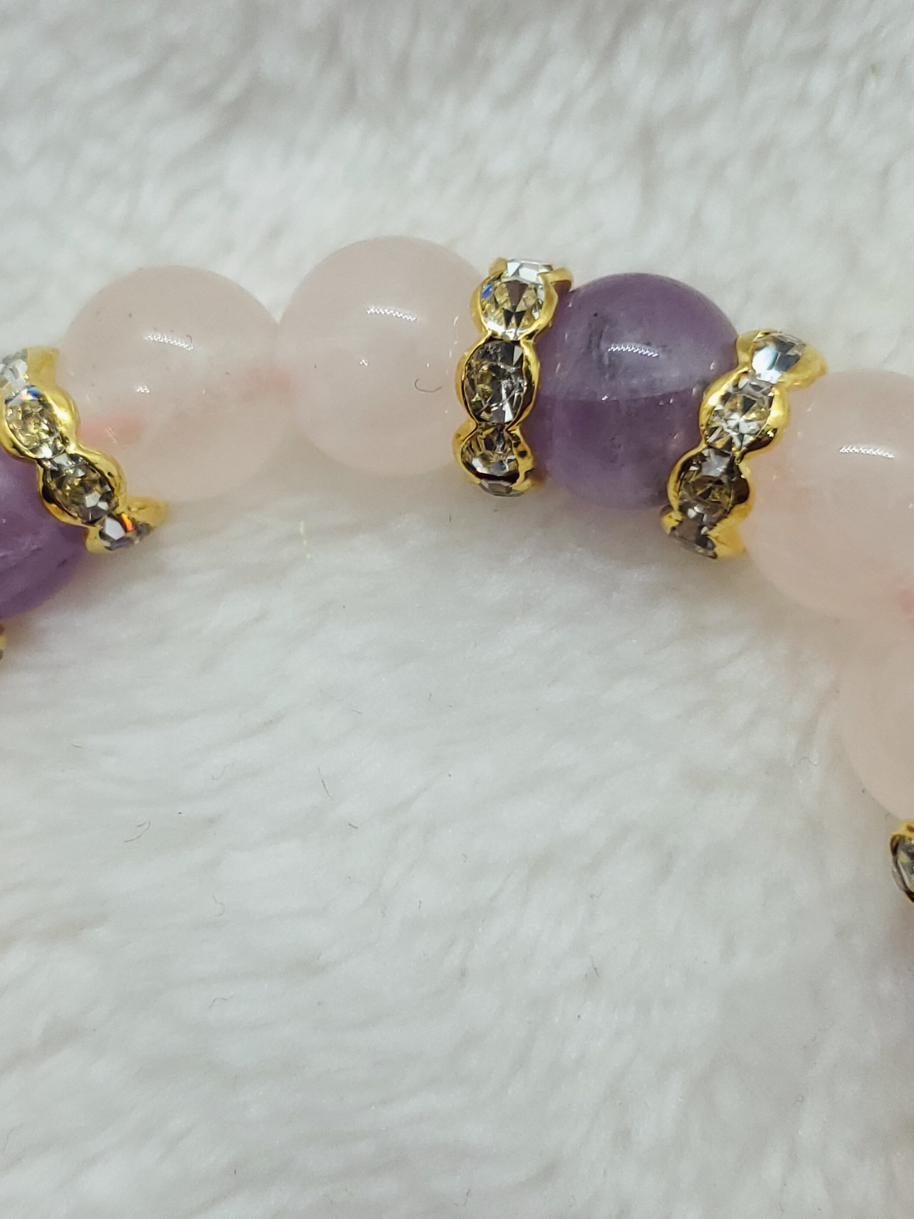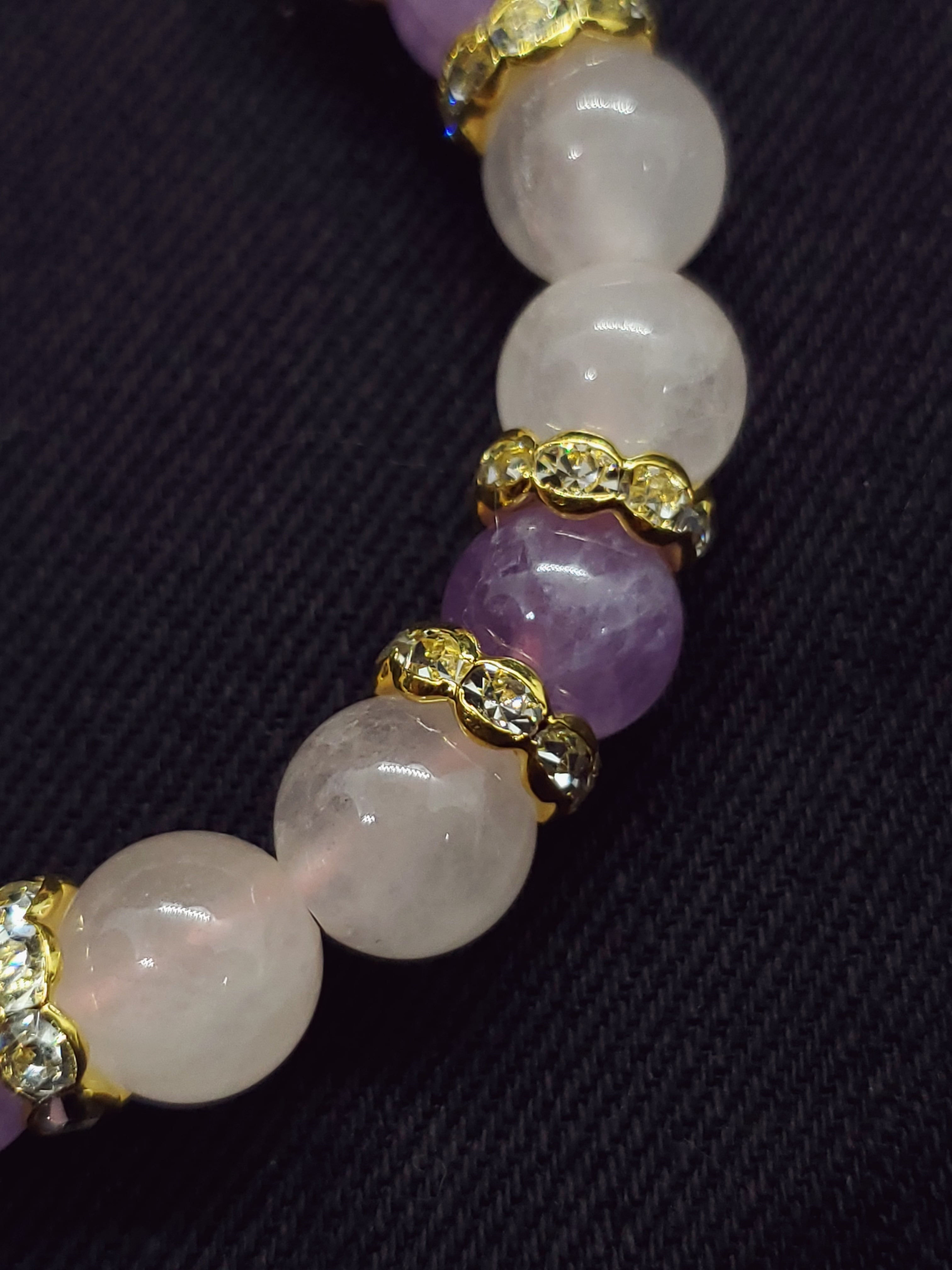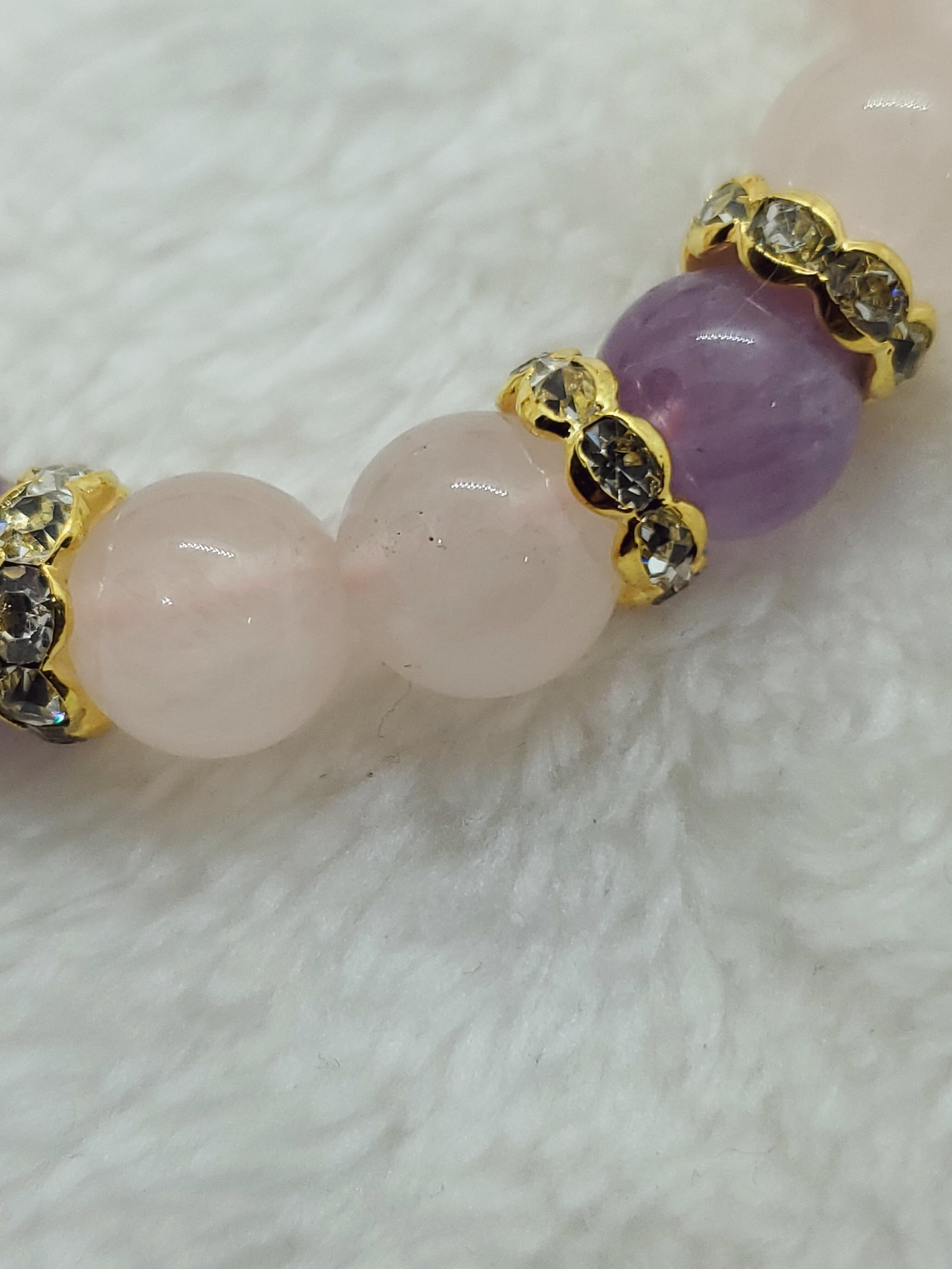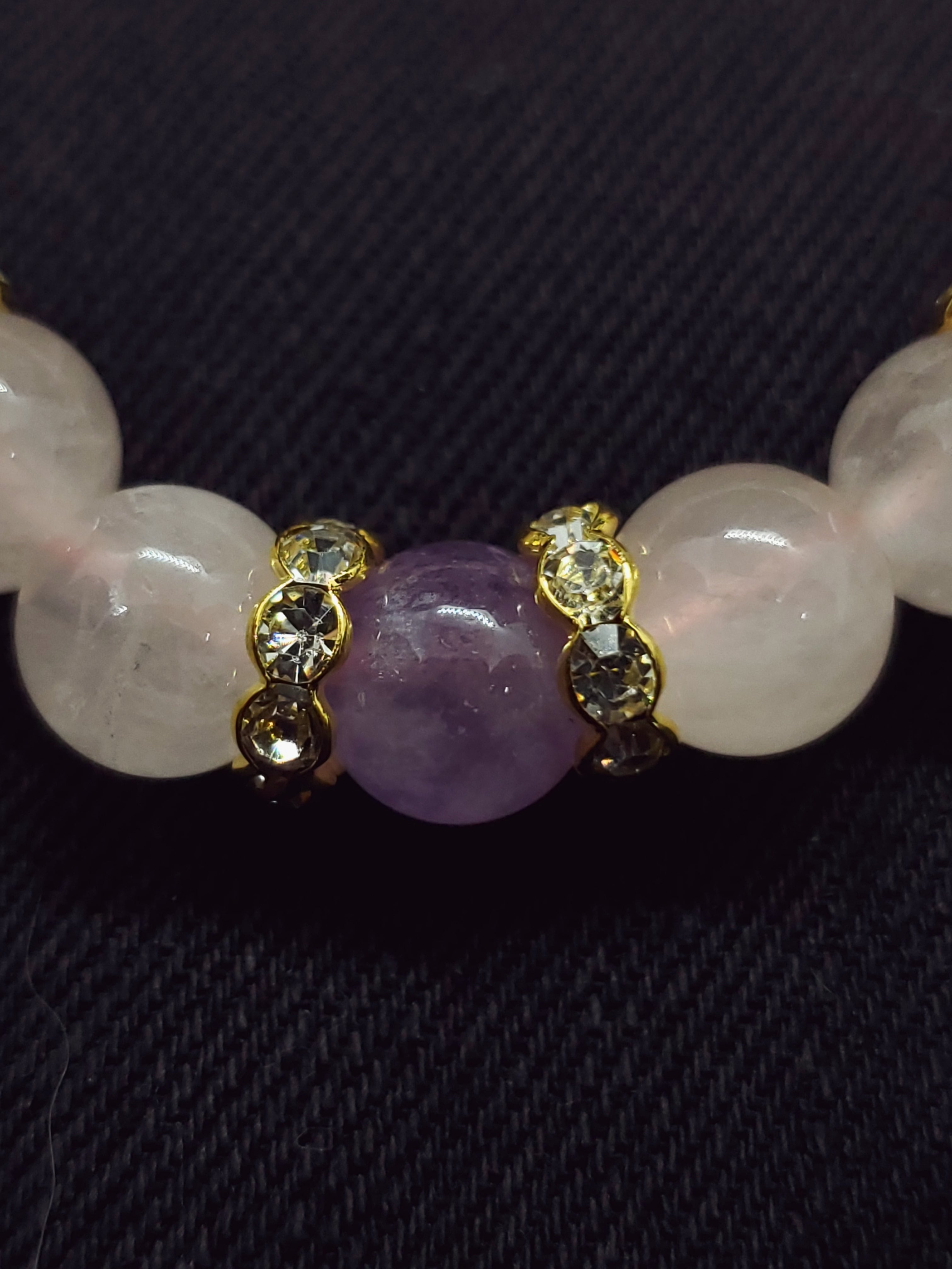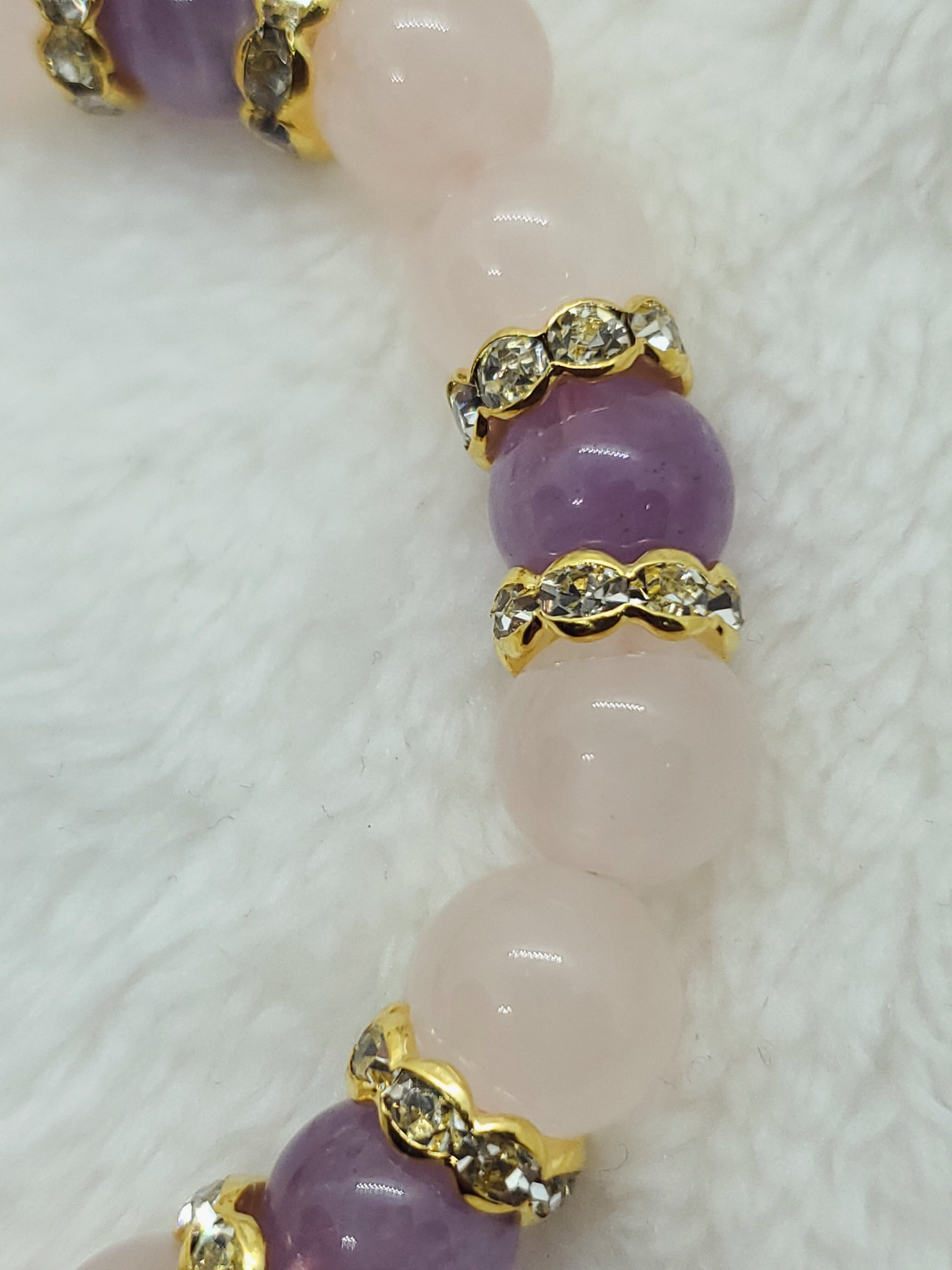 ラベンダーカラーのかわいらしい色合いのアメジストと、薄いピンク色のローズクォーツの組み合わせです。