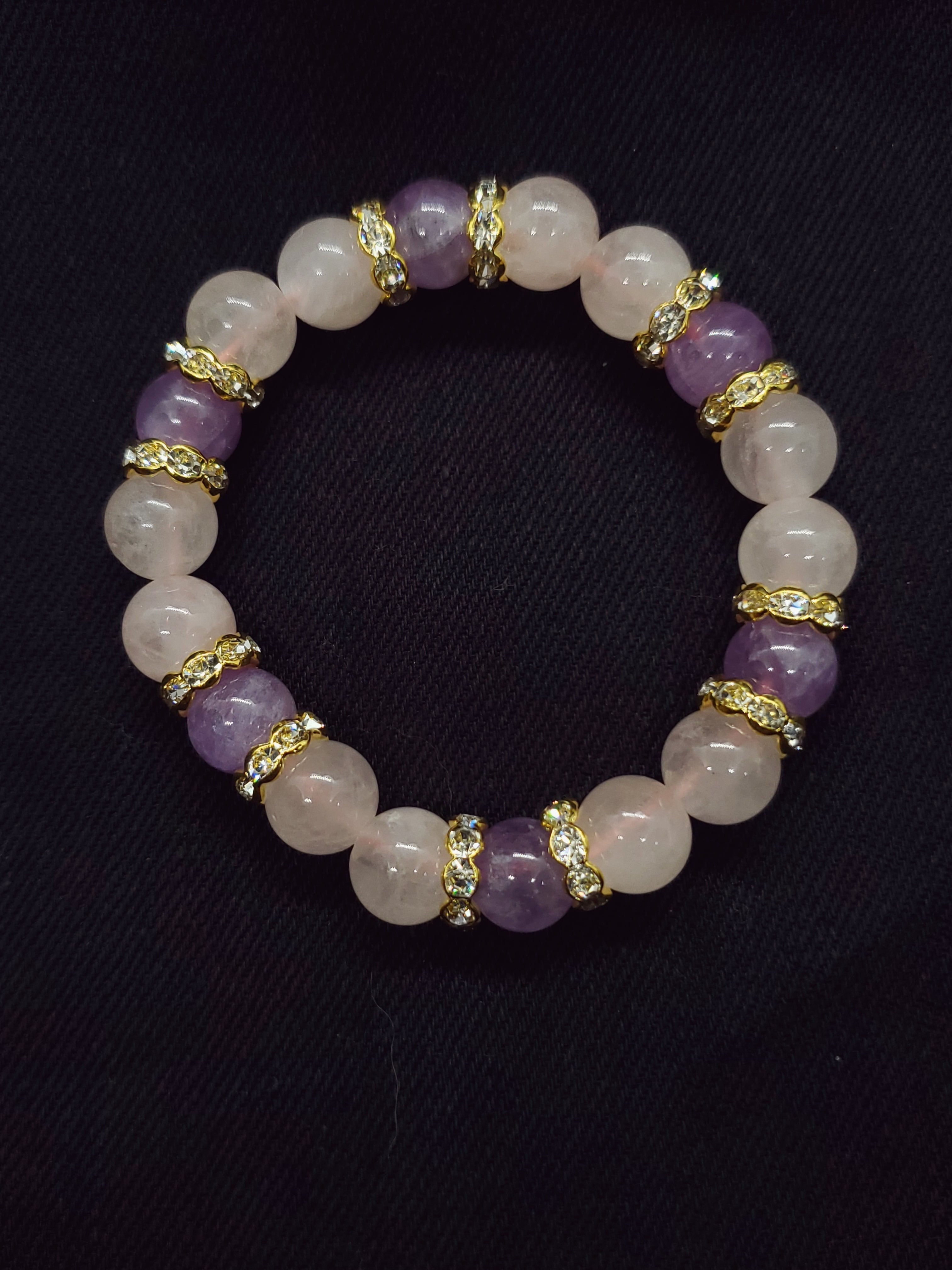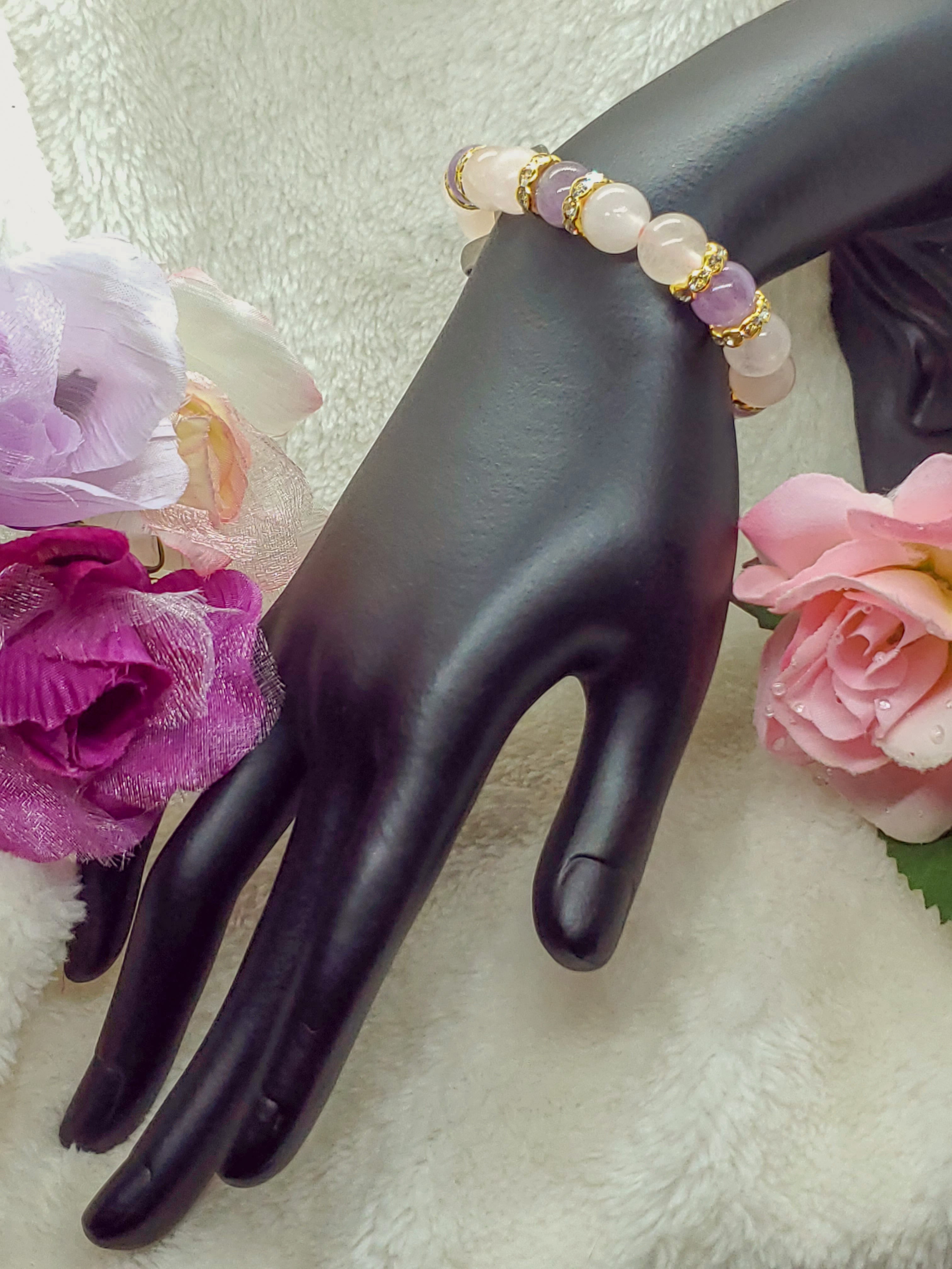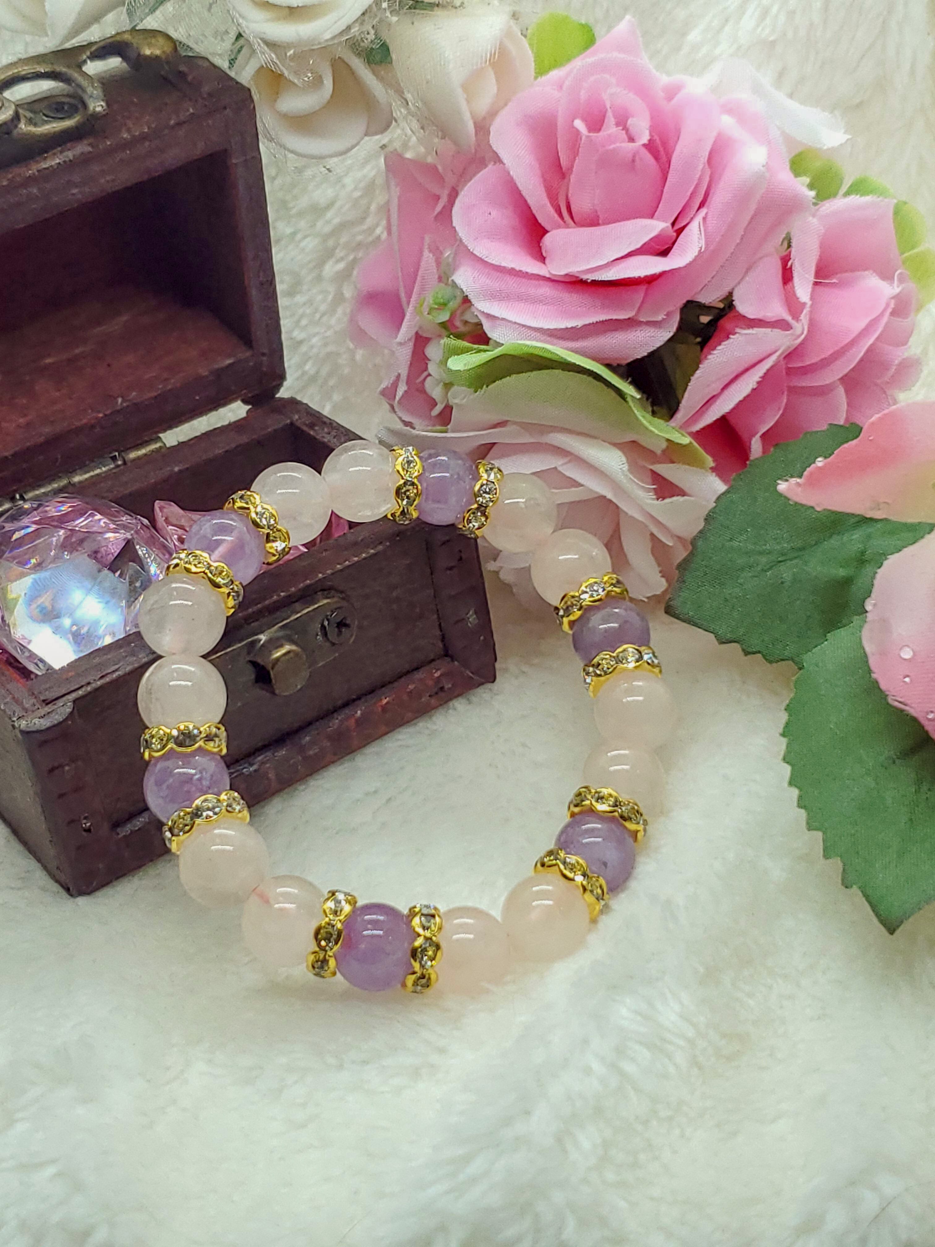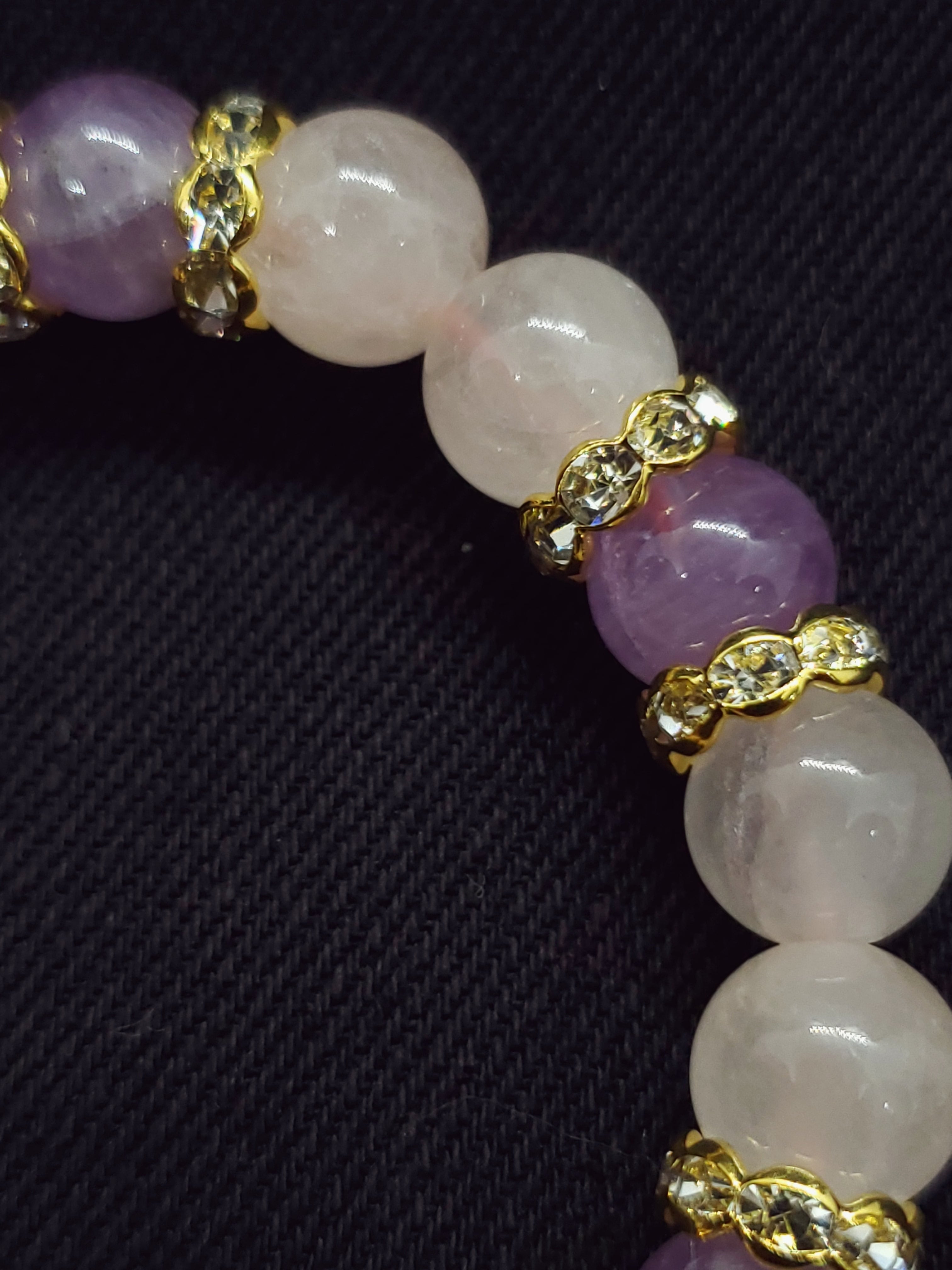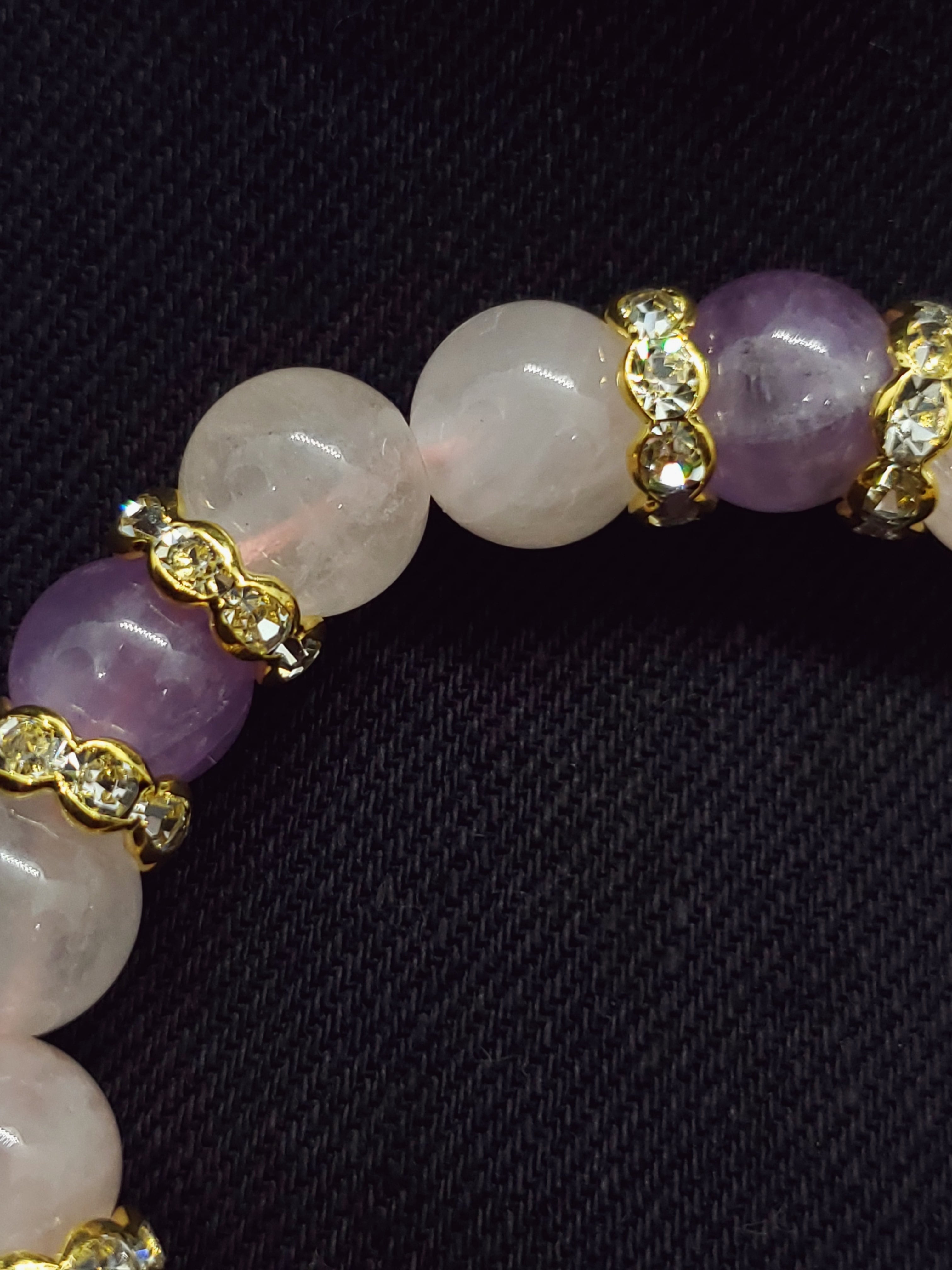 ラベンダーカラーのかわいらしい色合いのアメジストと、薄いピンク色のローズクォーツの組み合わせです。
