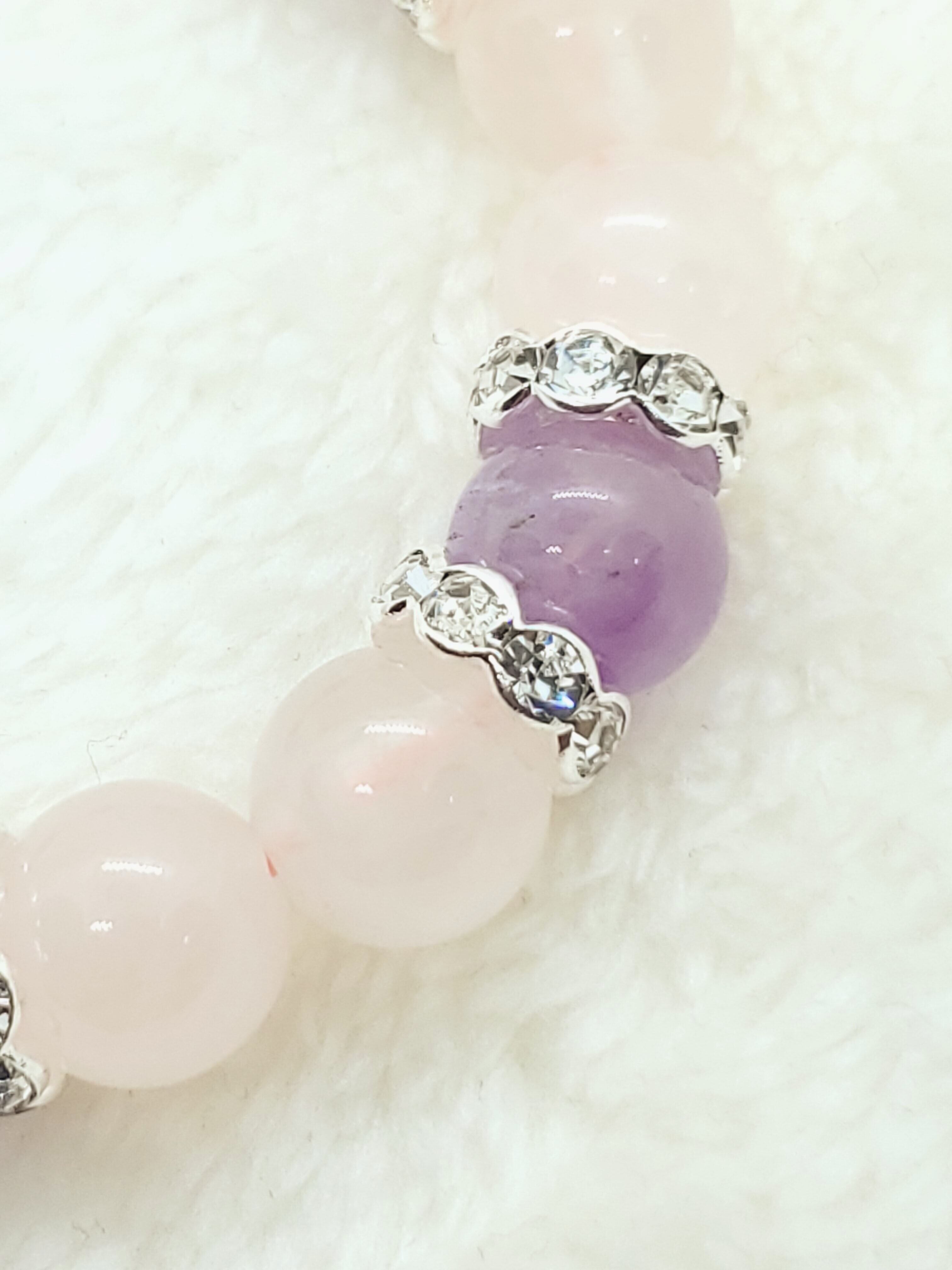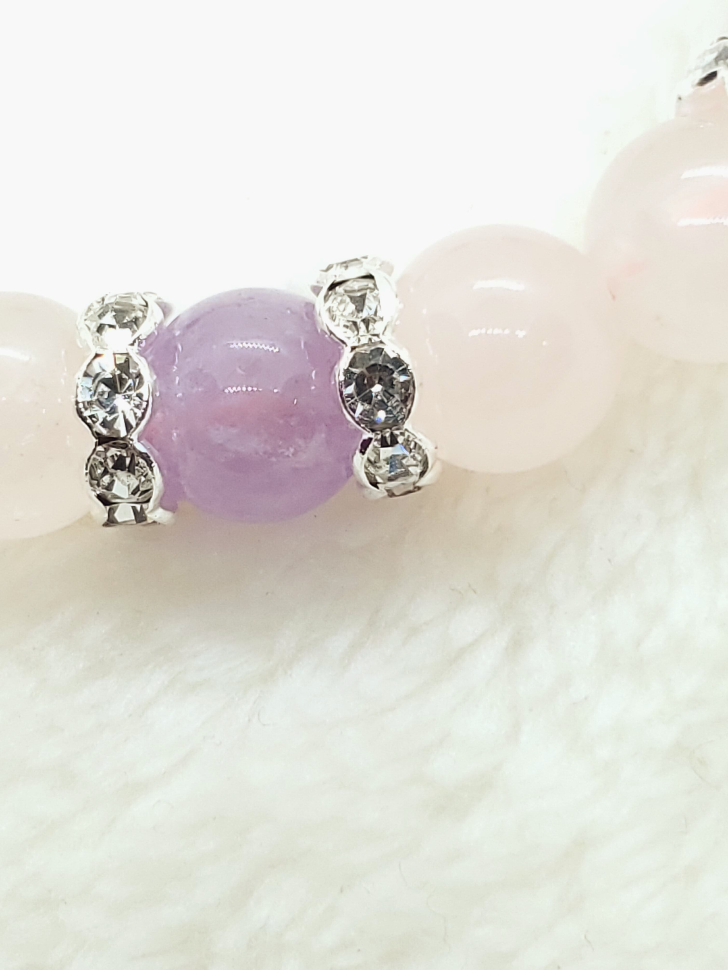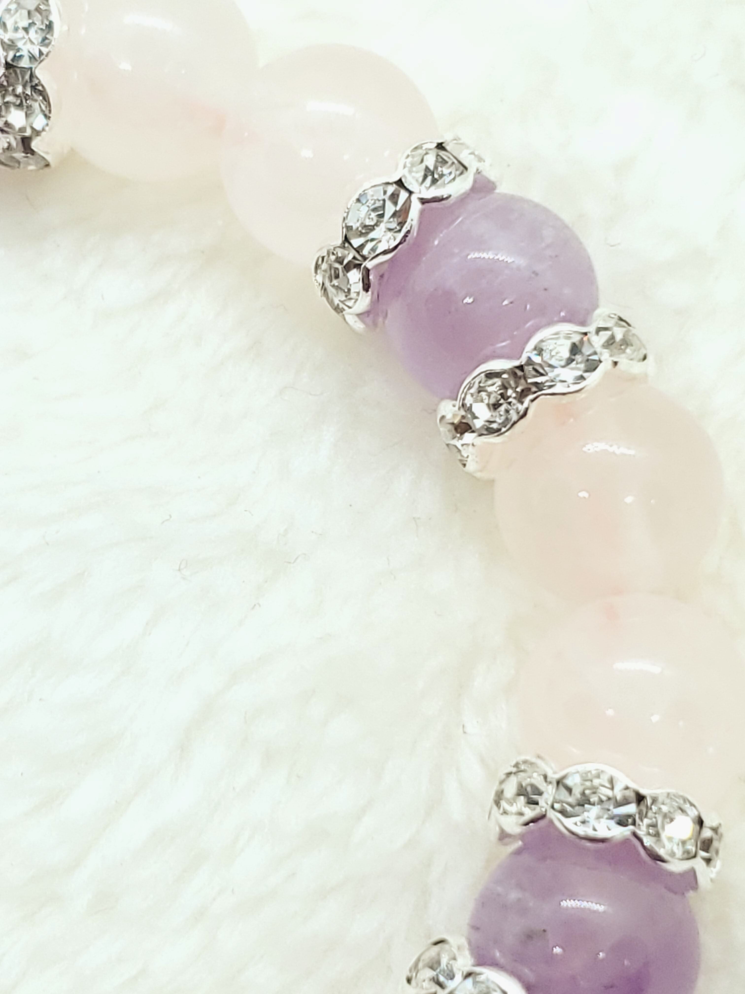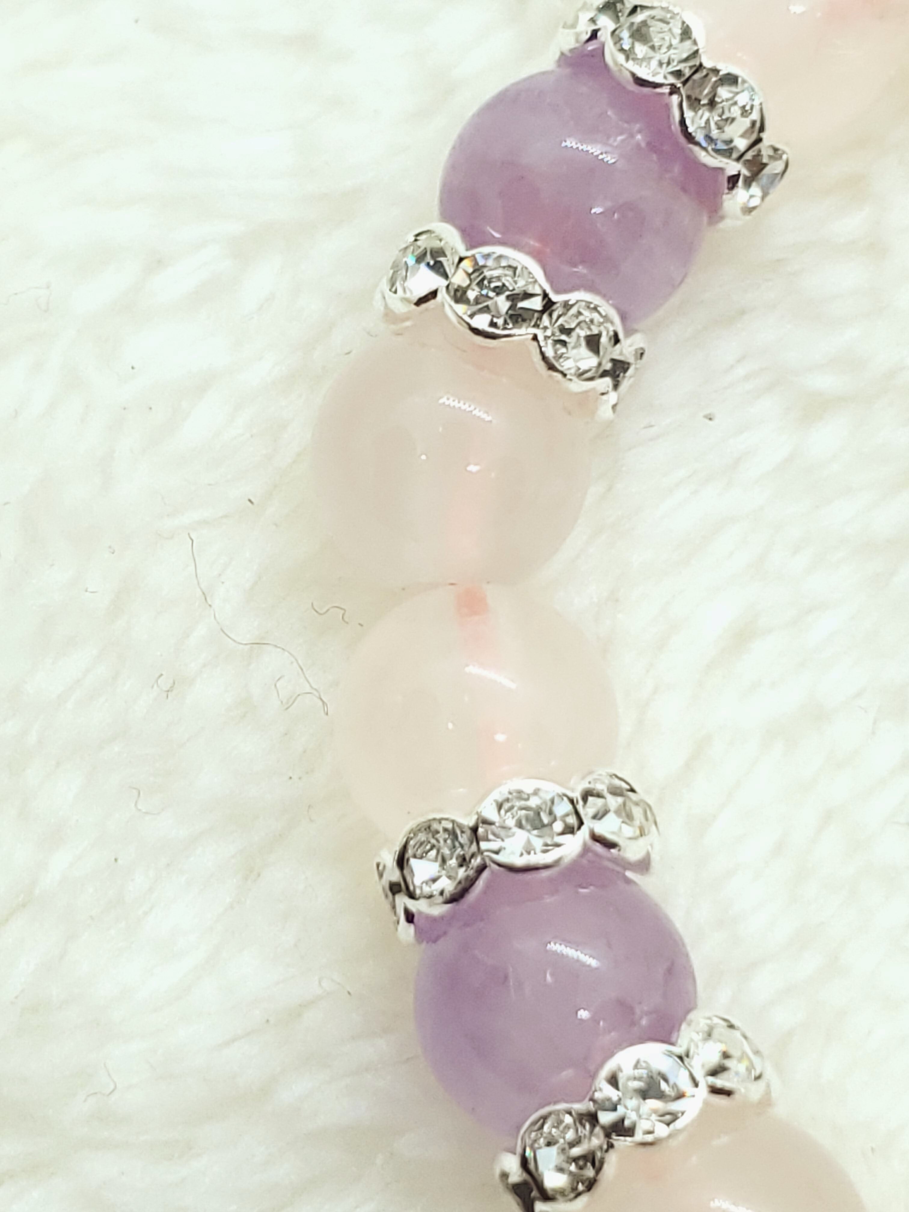 ラベンダーカラーのかわいらしい色合いのアメジストと、薄いピンク色のローズクォーツの組み合わせです。