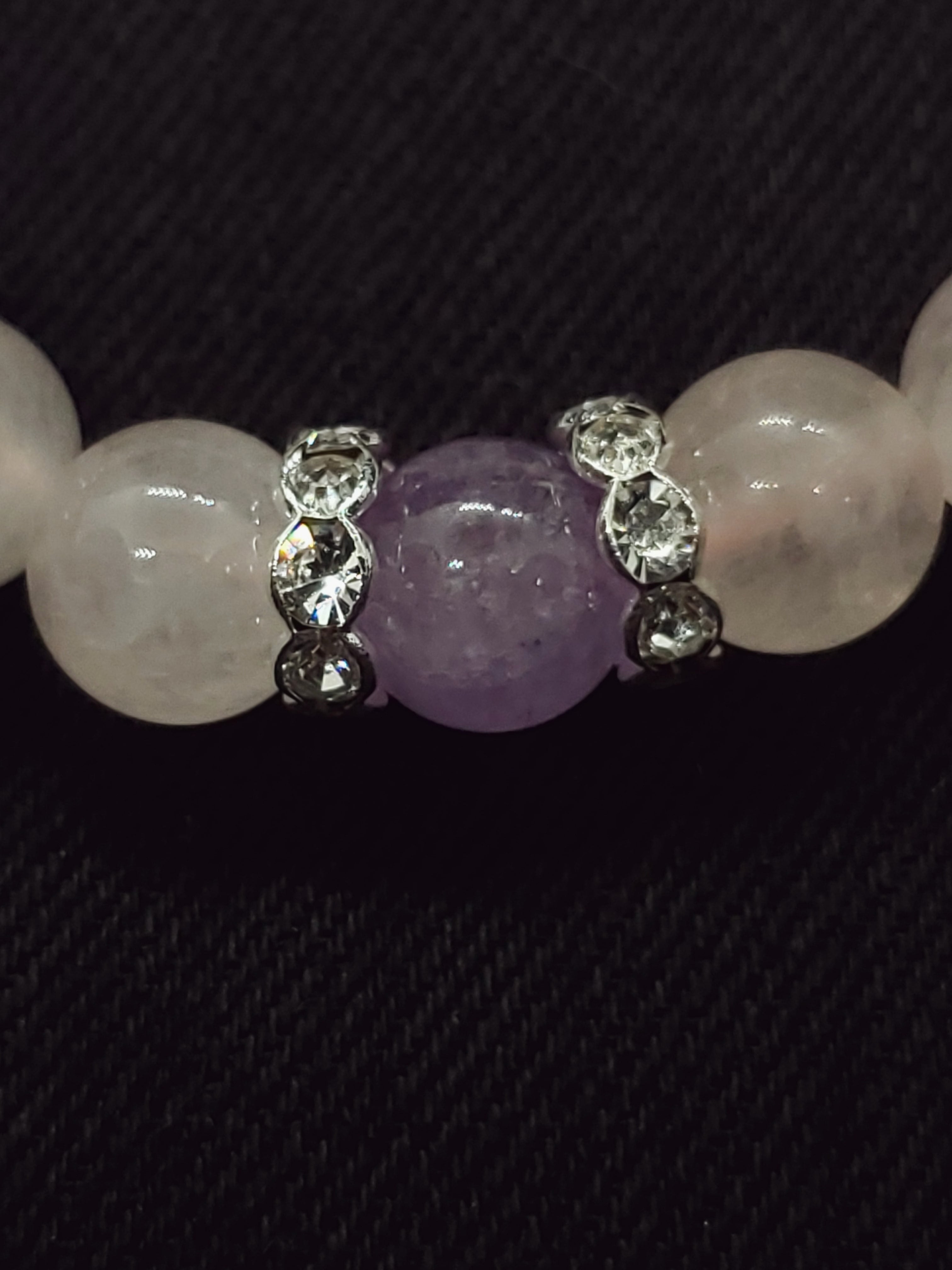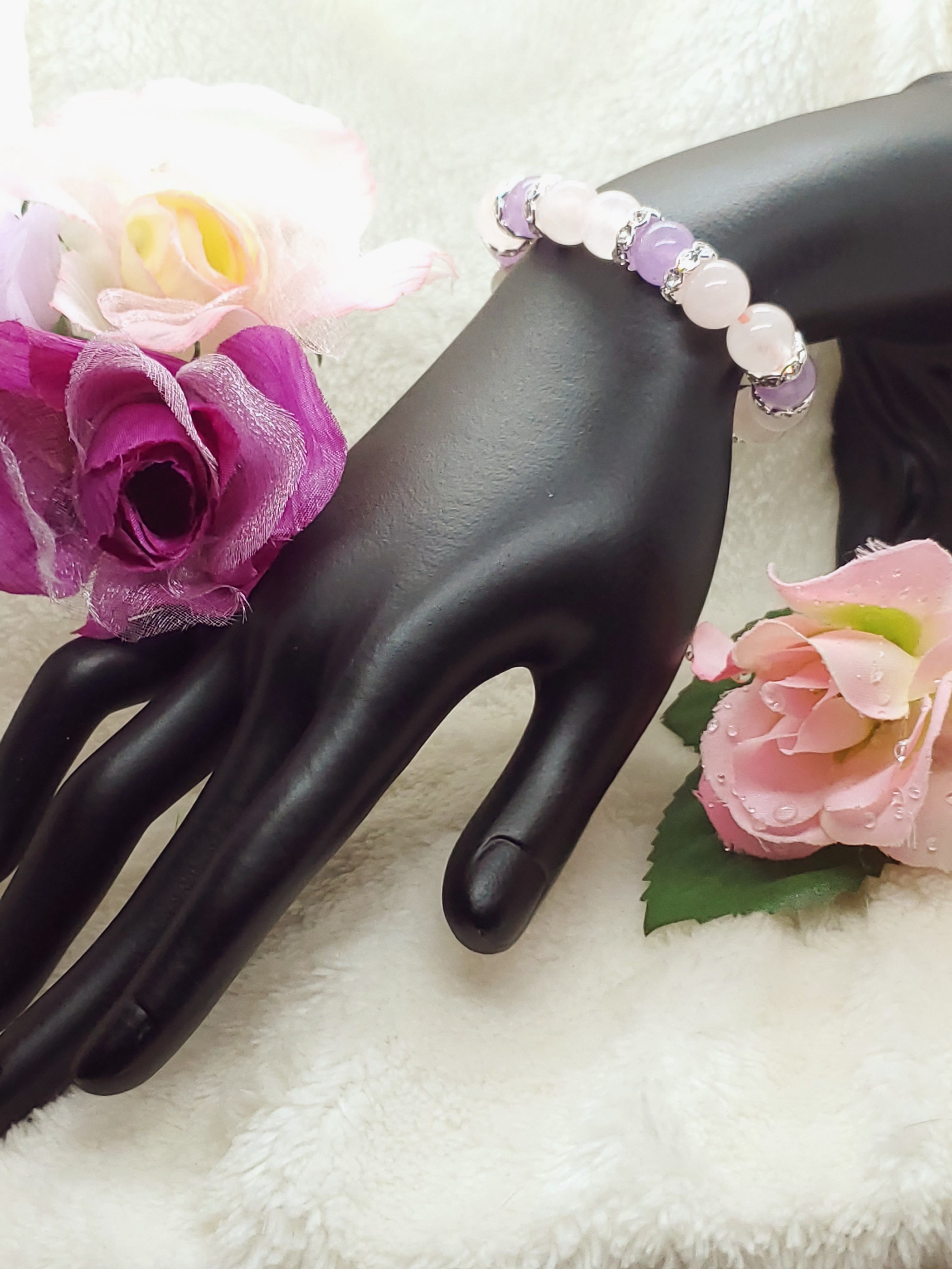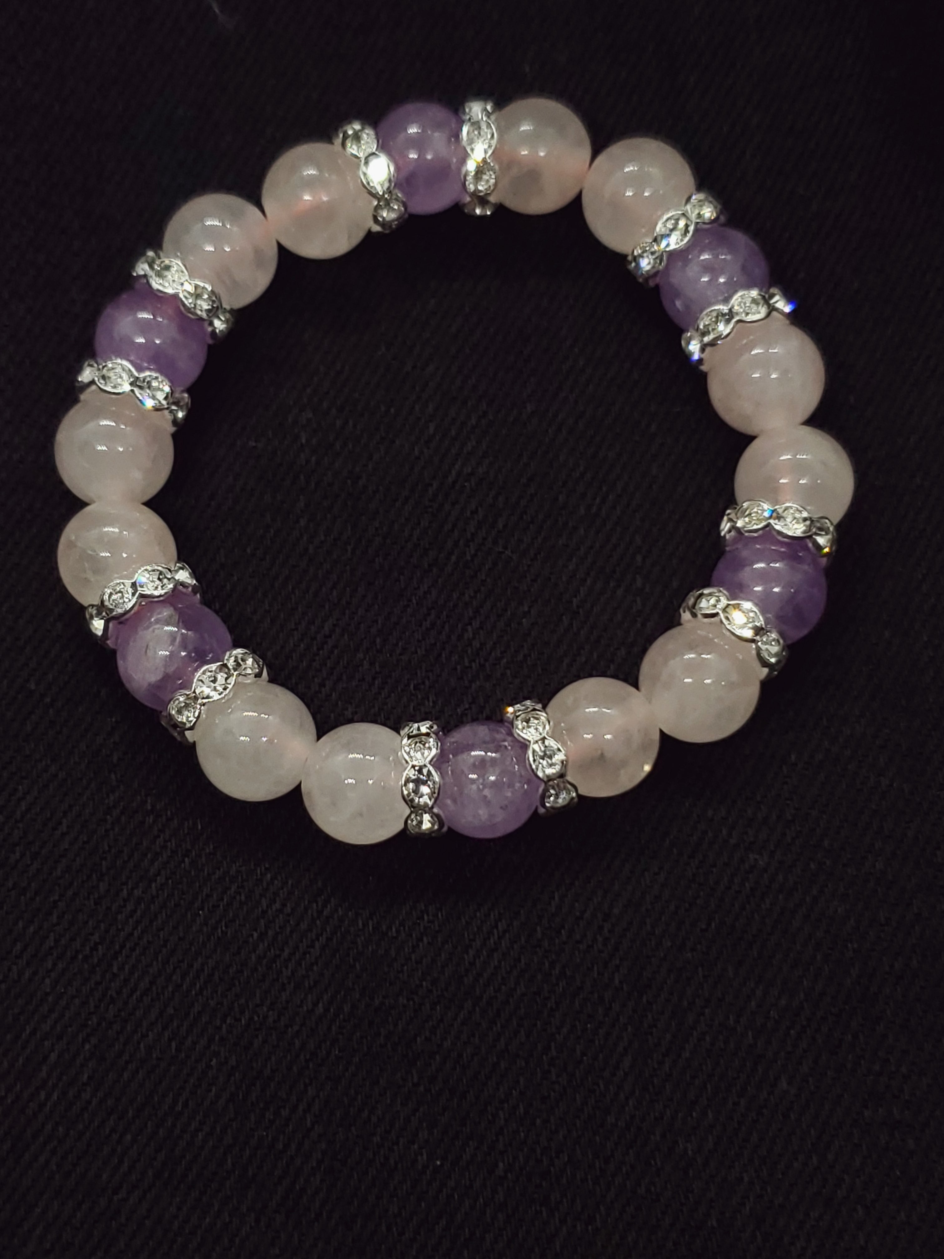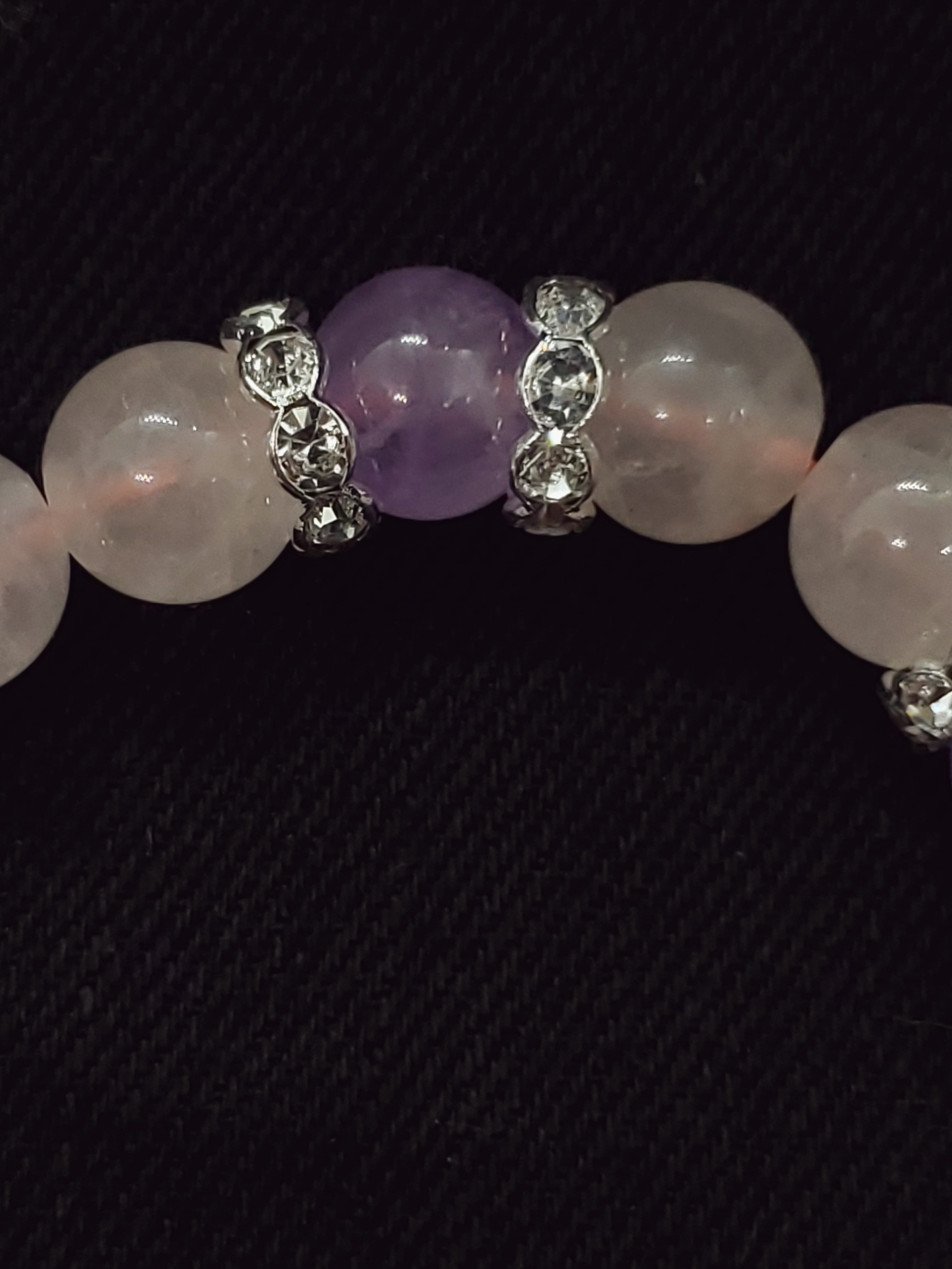 ラベンダーカラーのかわいらしい色合いのアメジストと、薄いピンク色のローズクォーツの組み合わせです。