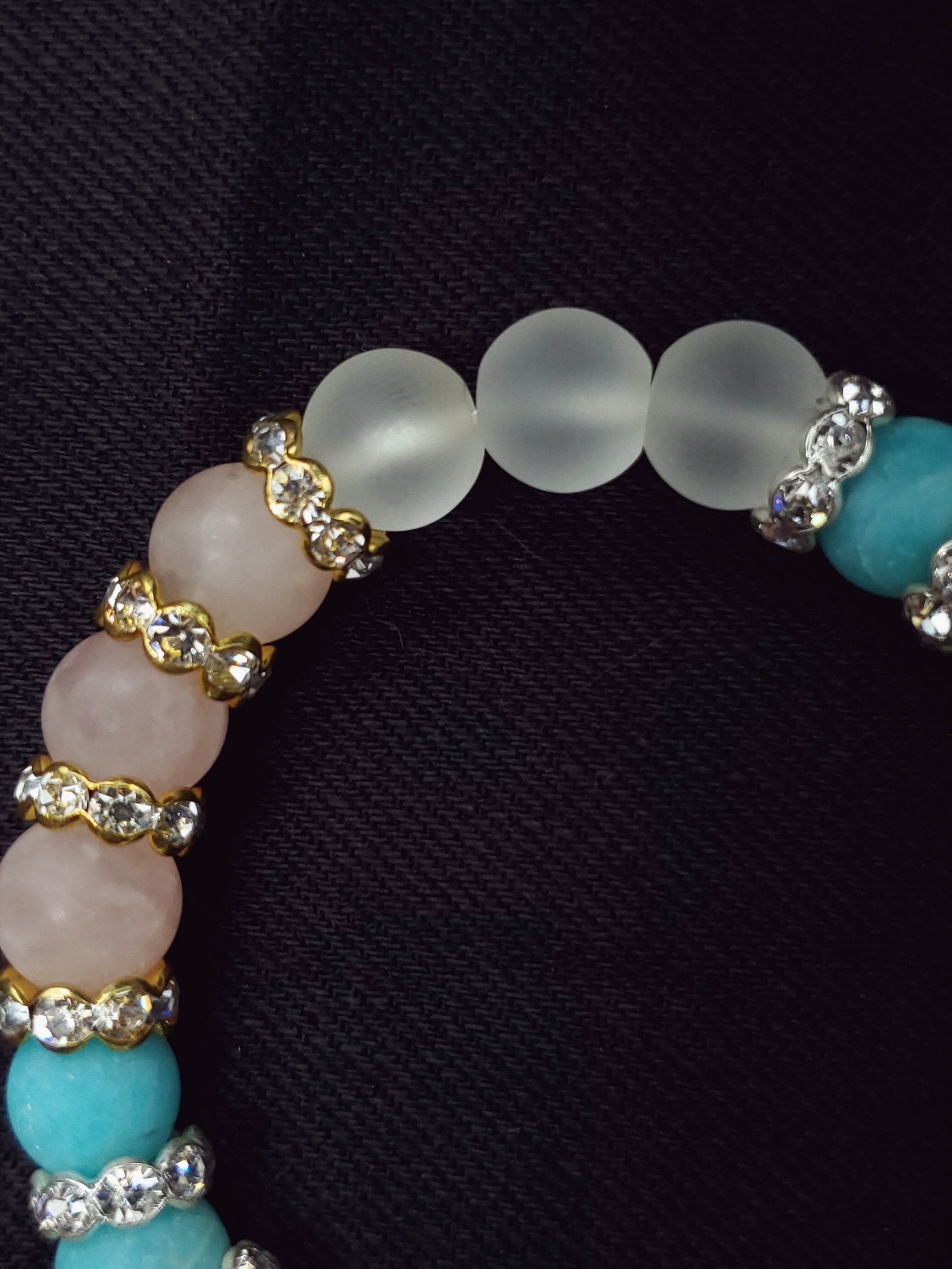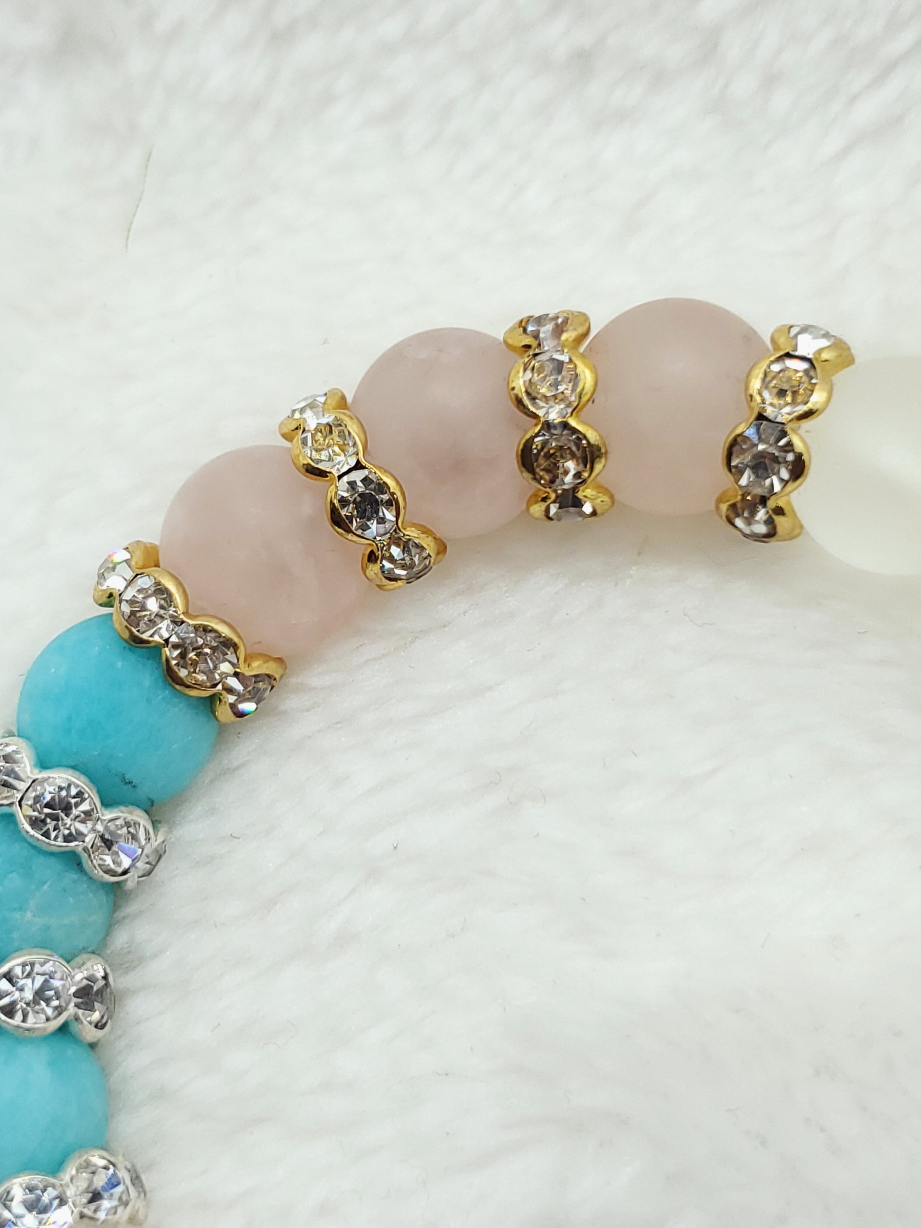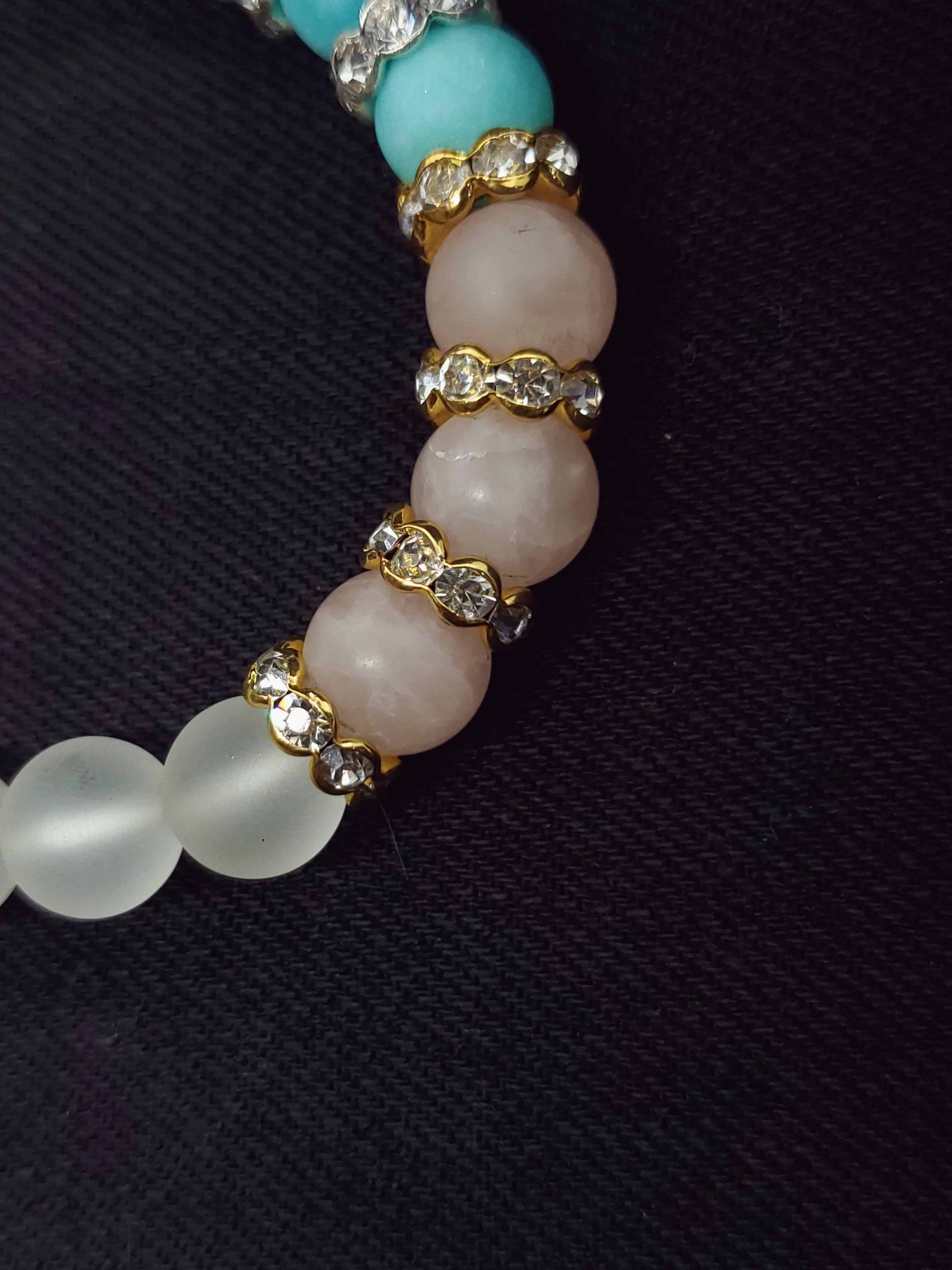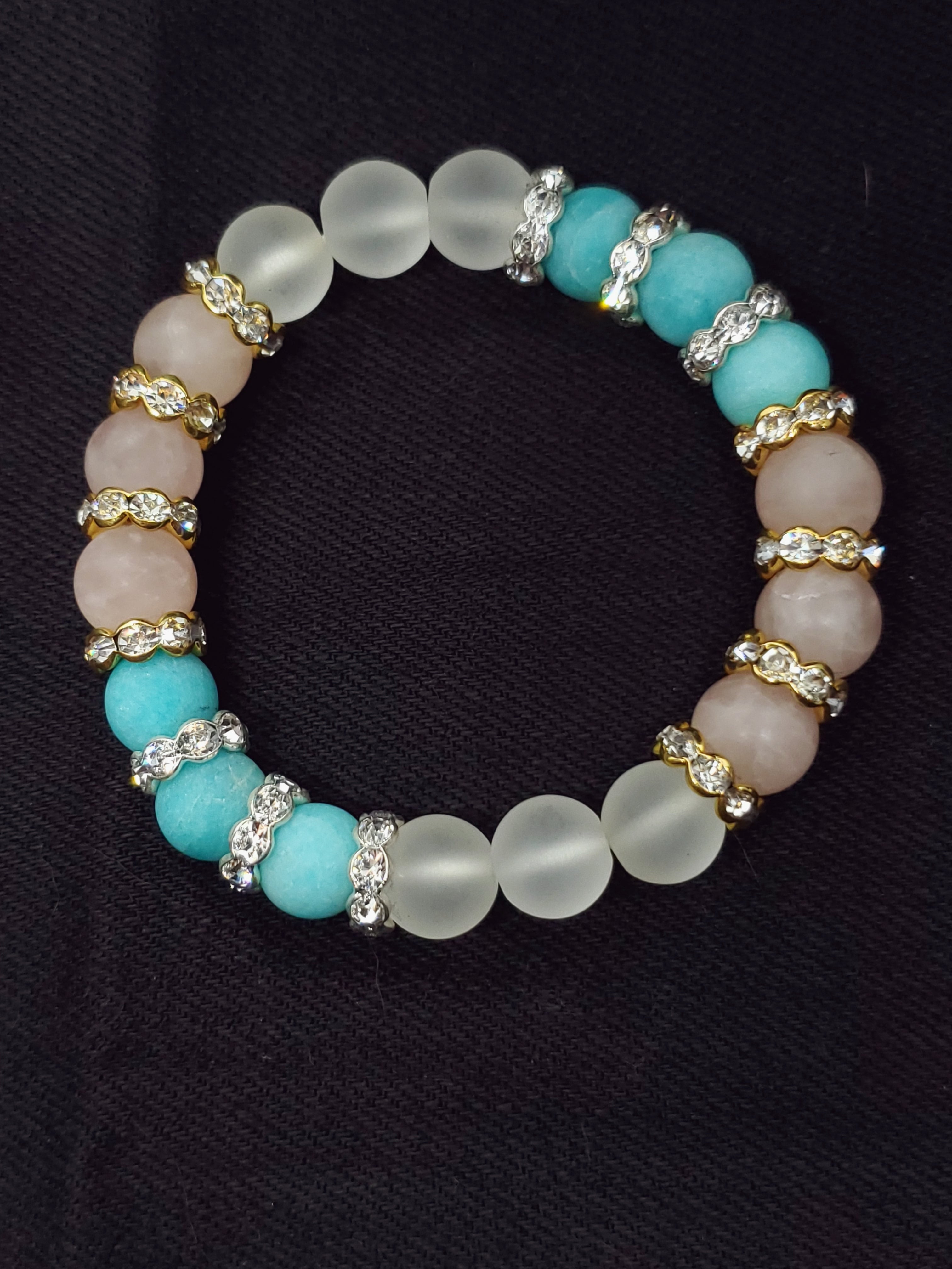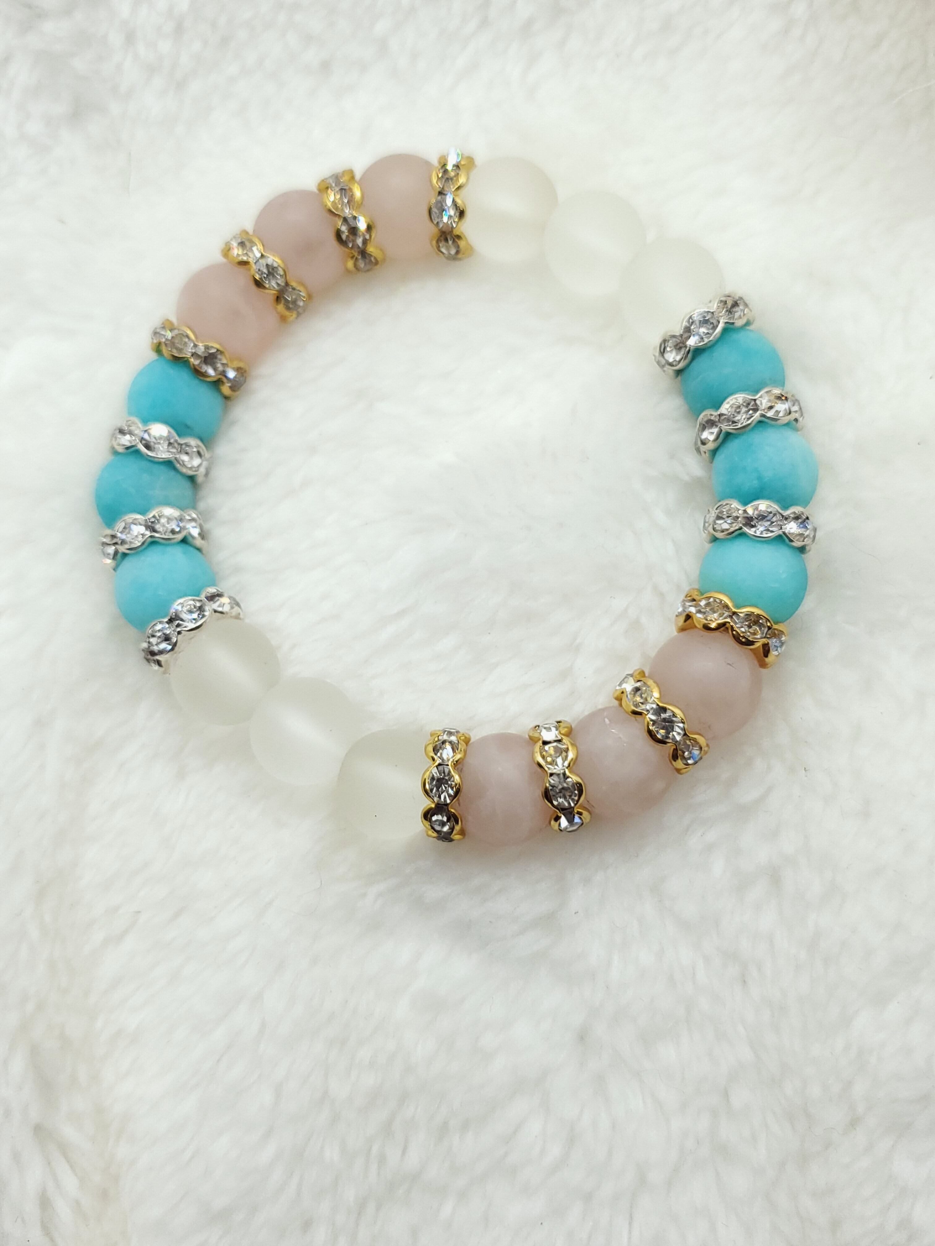 【フロスト加工】【淡雪】【パステル】アマゾナイトx水晶xローズクォーツ 10mm玉ブレスレット BR-S-017
