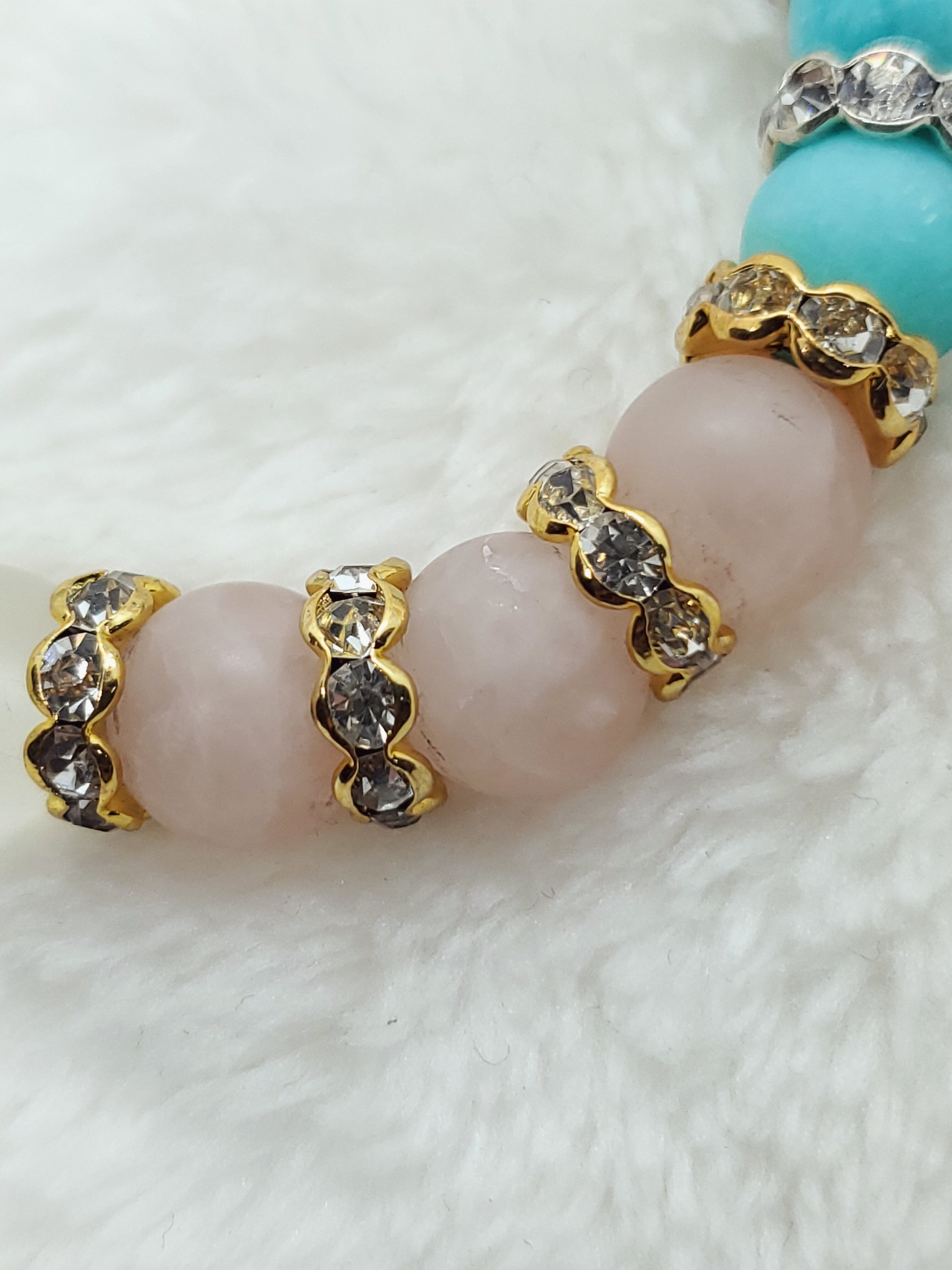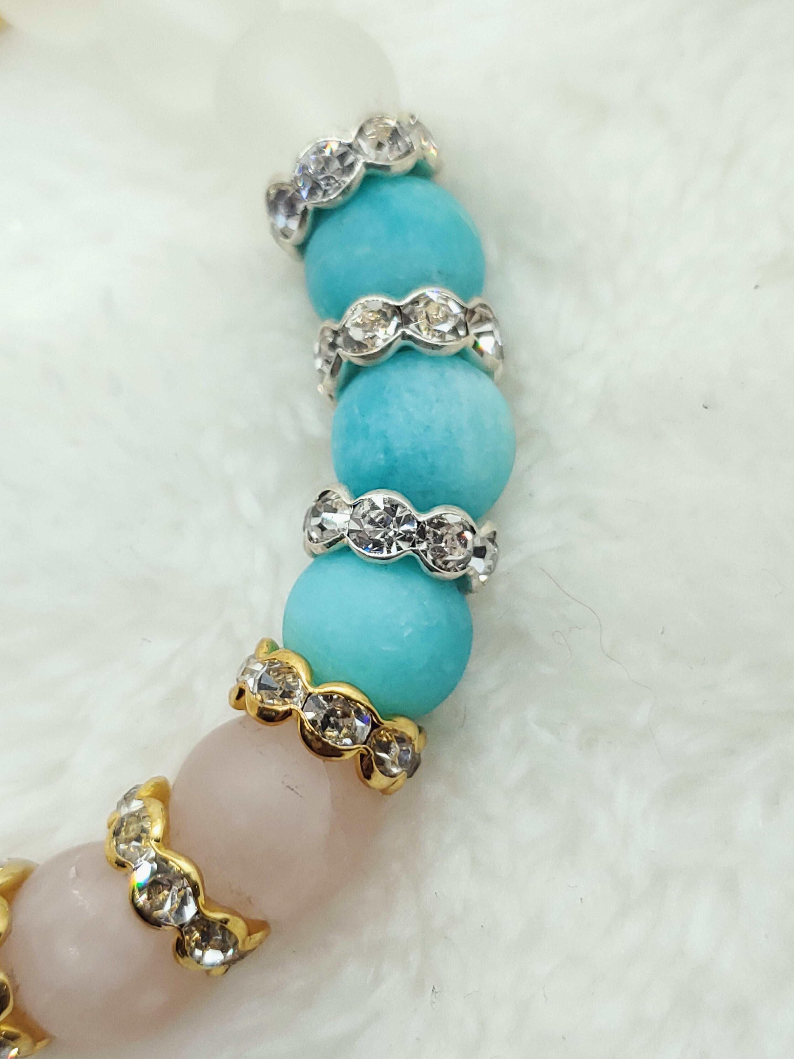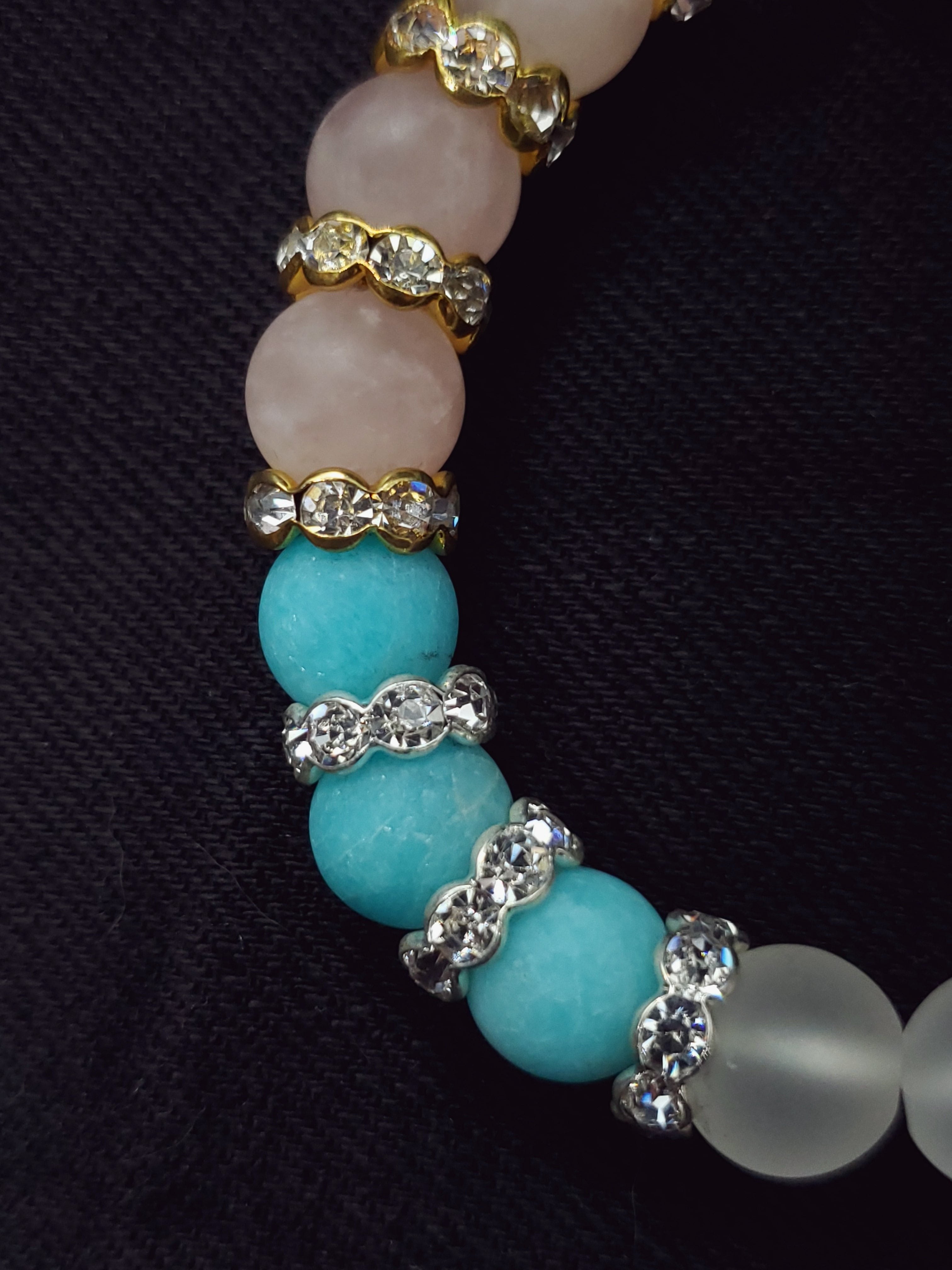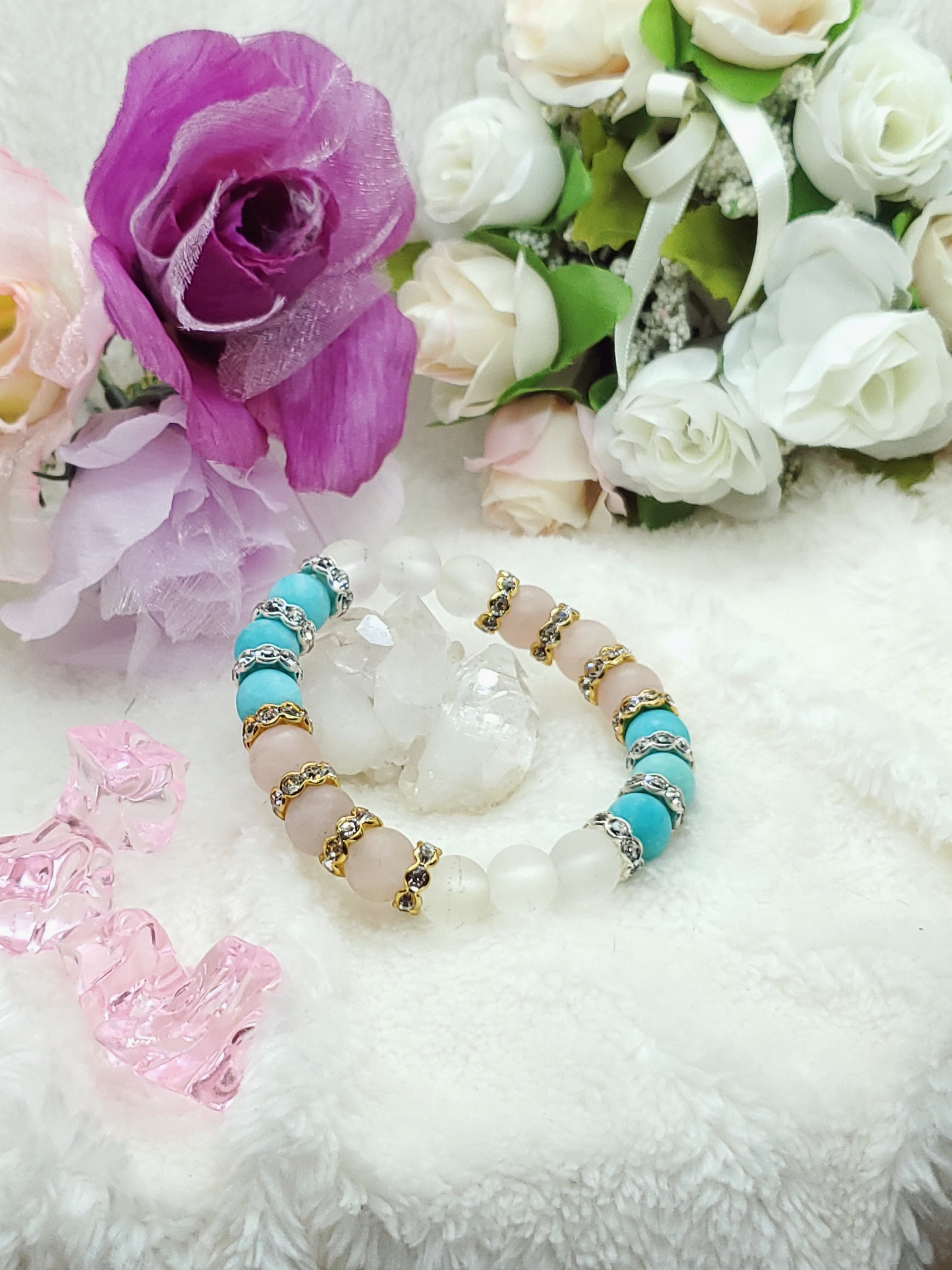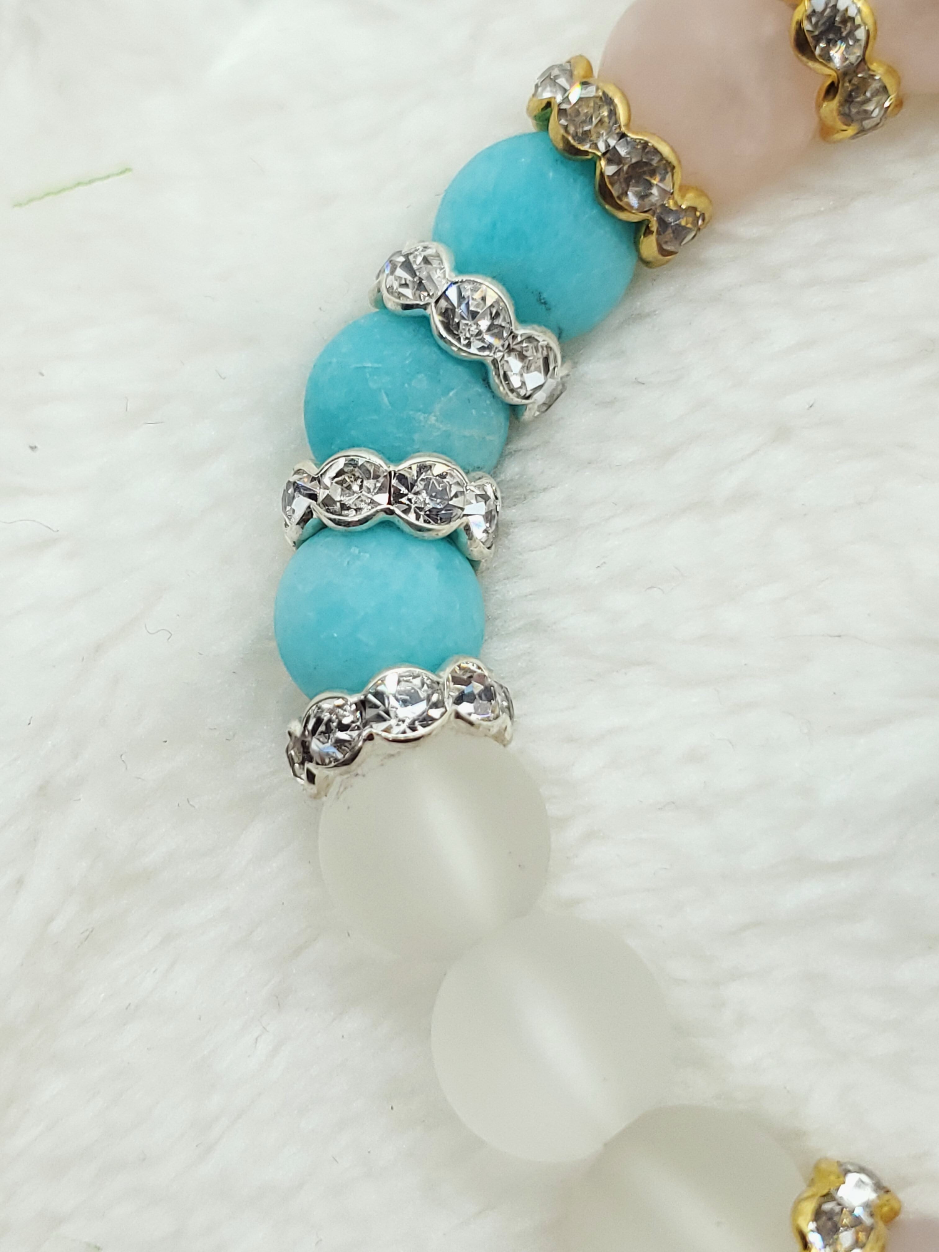 【フロスト加工】【淡雪】【パステル】アマゾナイトx水晶xローズクォーツ 10mm玉ブレスレット BR-S-017