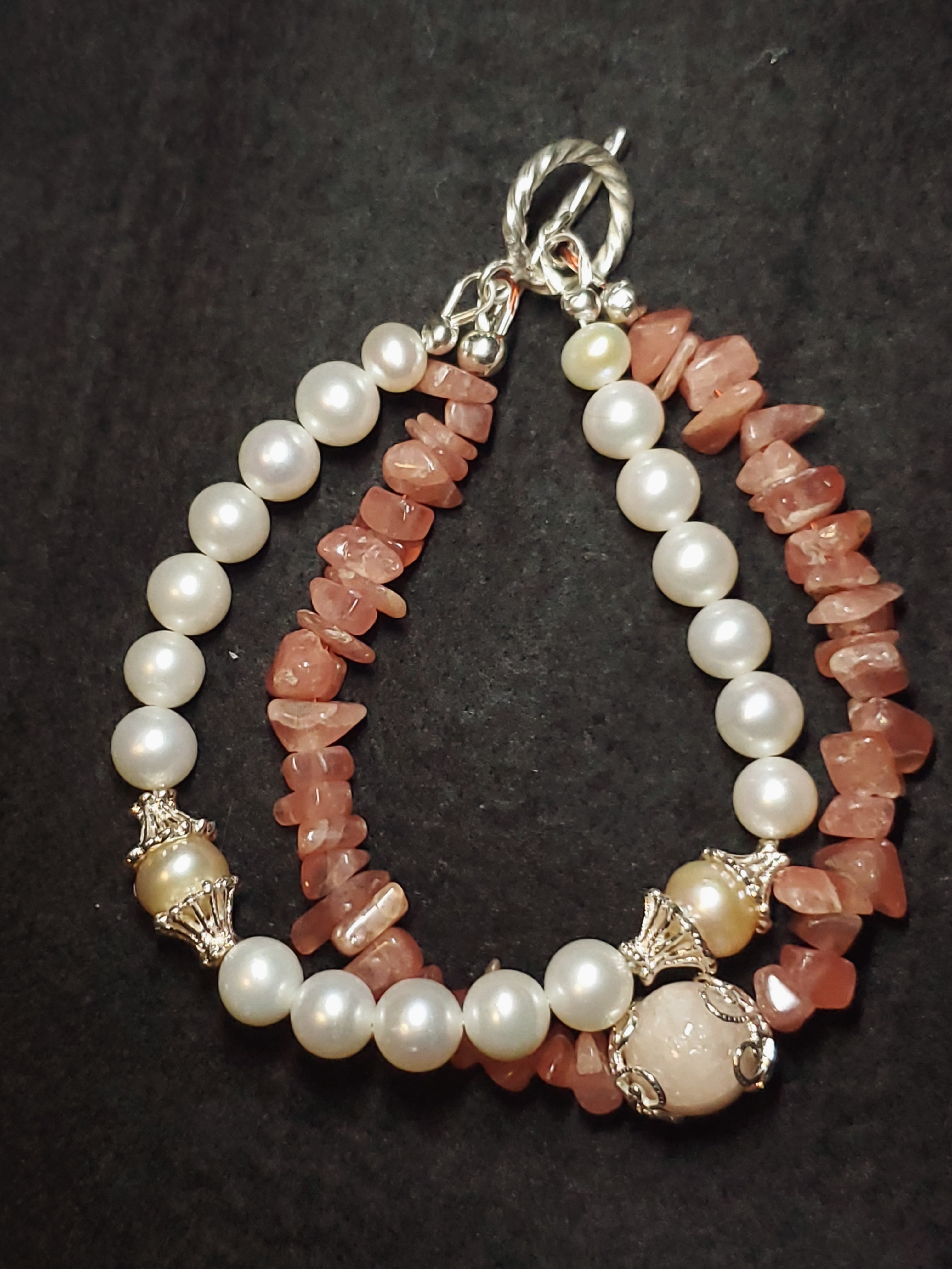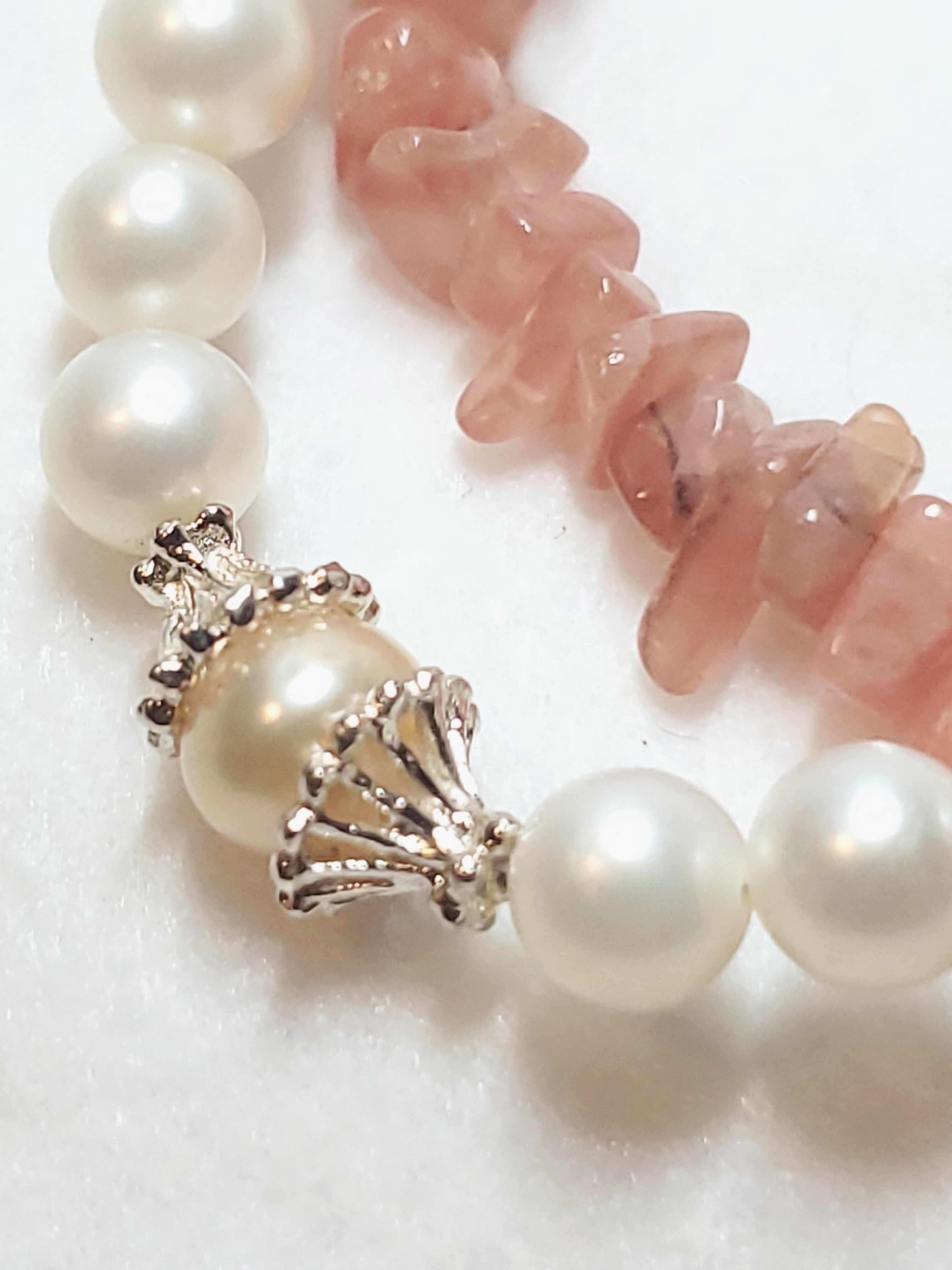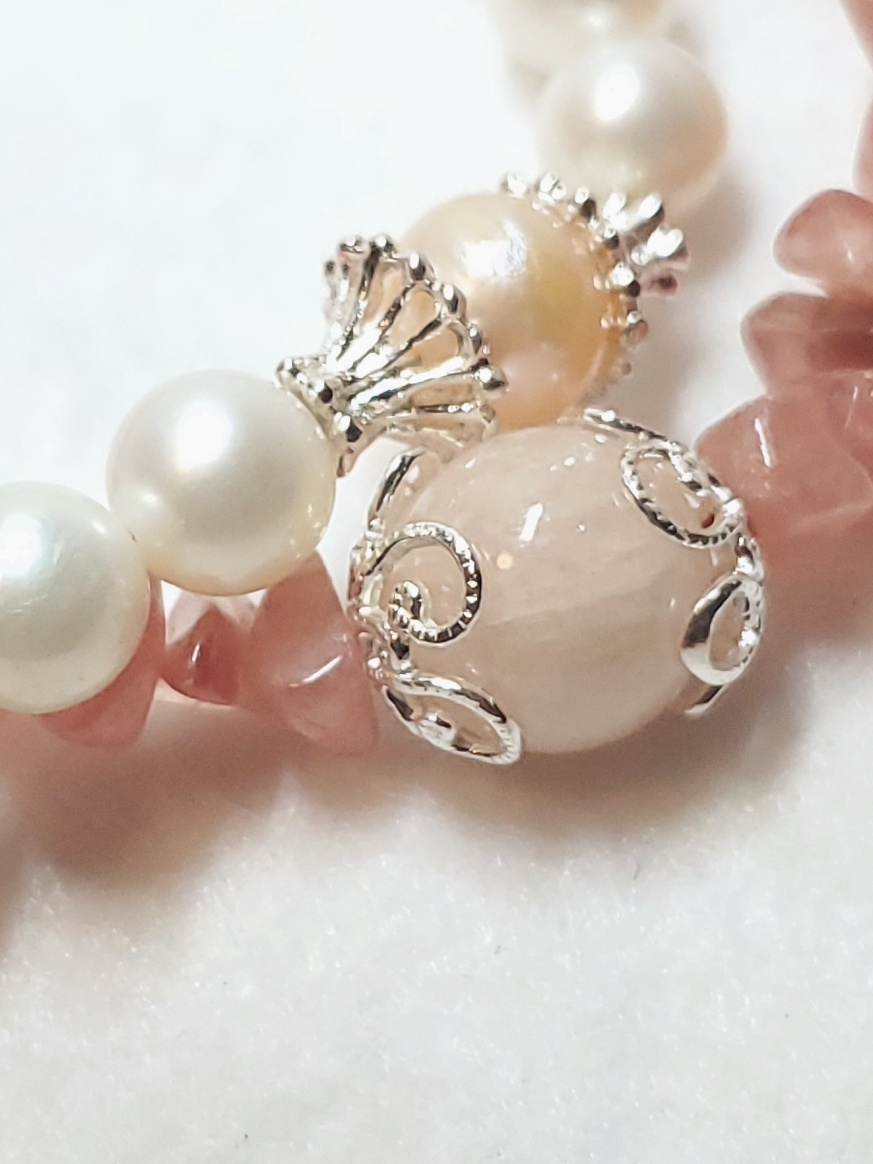 パワーストーン界では、インカローズは女性の魅力を引き出し、老化を防止するといわれていますし、モルガナイトは幸せな結婚や、精神の調和、平穏などで、淡水パールは女性の美と健康を象徴しています。