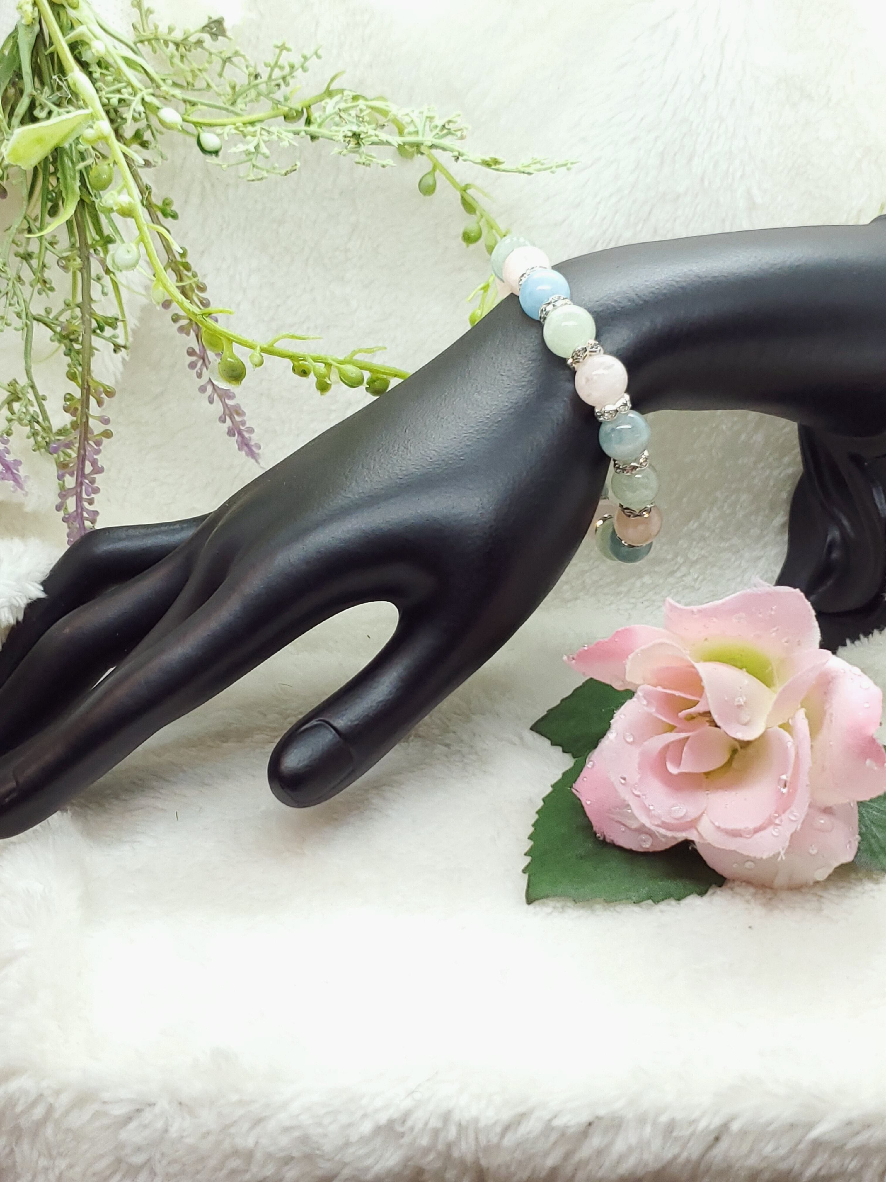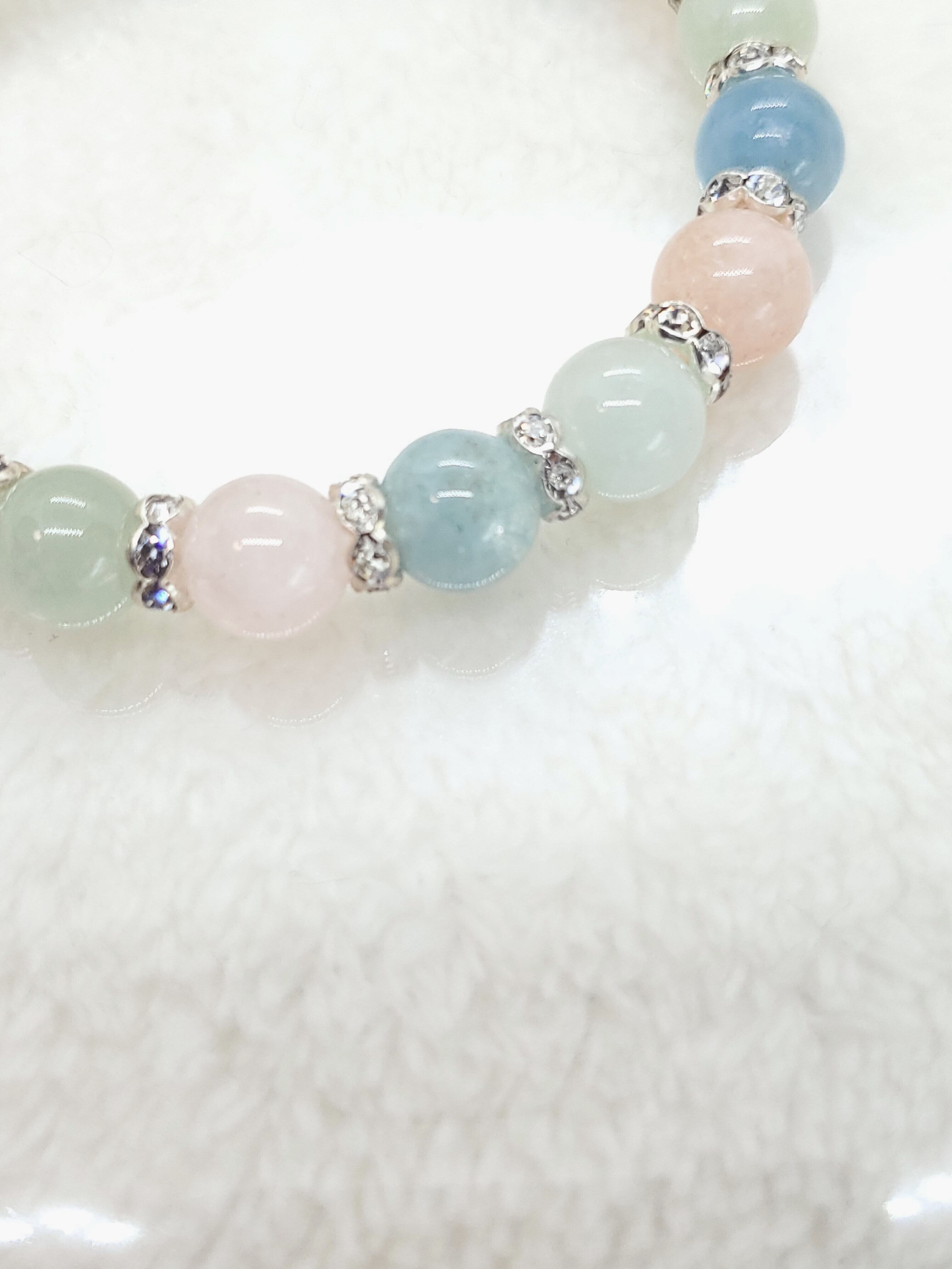 今回のブレスレットは、ミルキーカラーと言えるパステル調の柔らかい色合いで、発色もよくおすすめです!