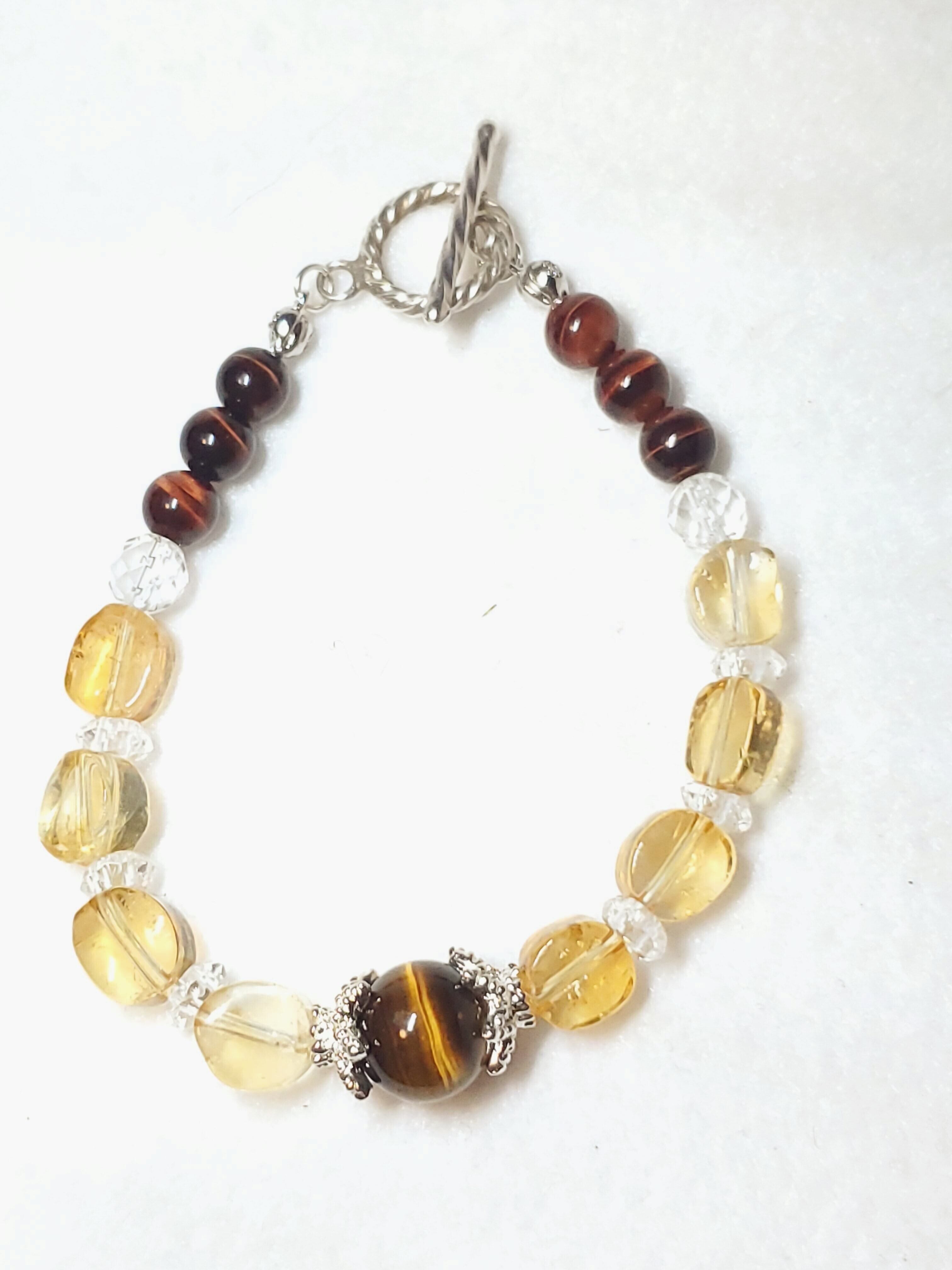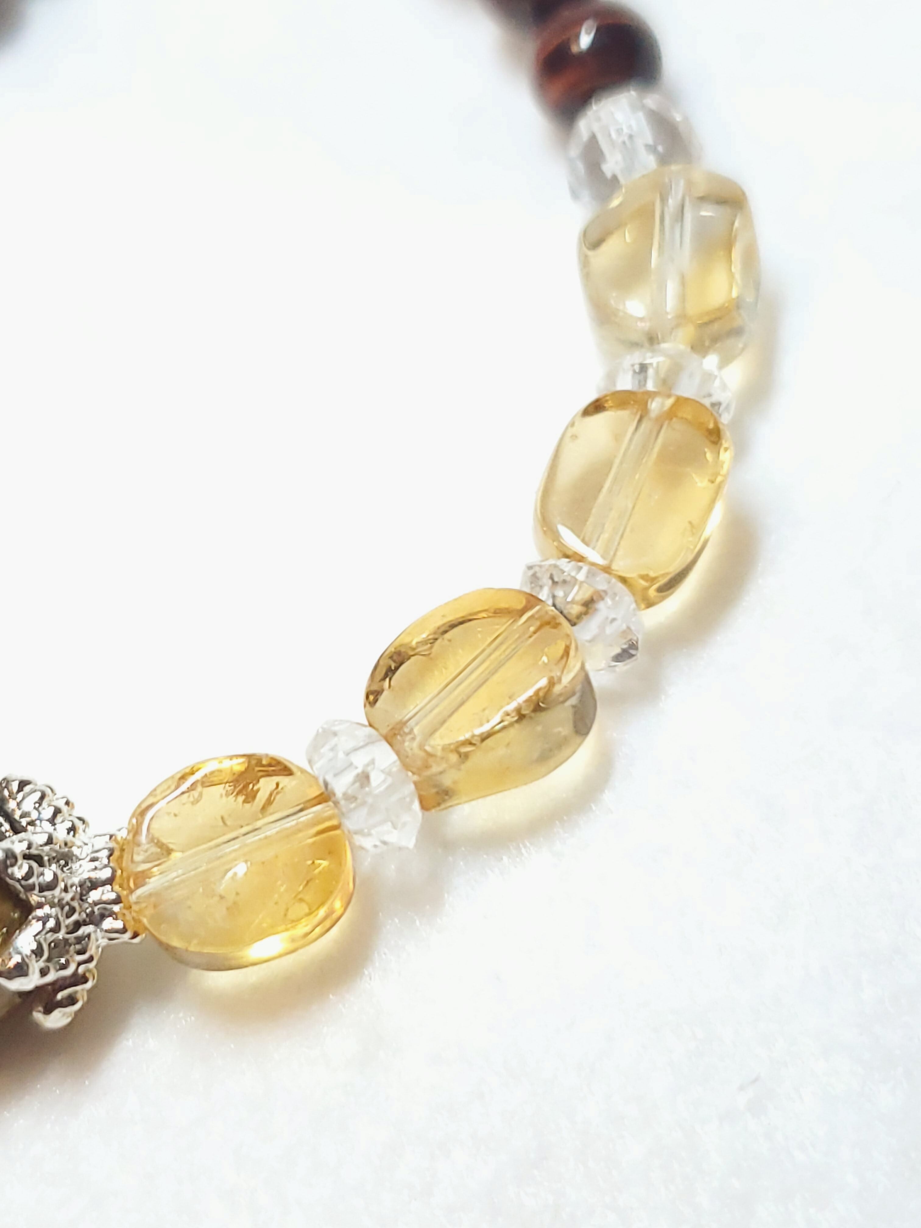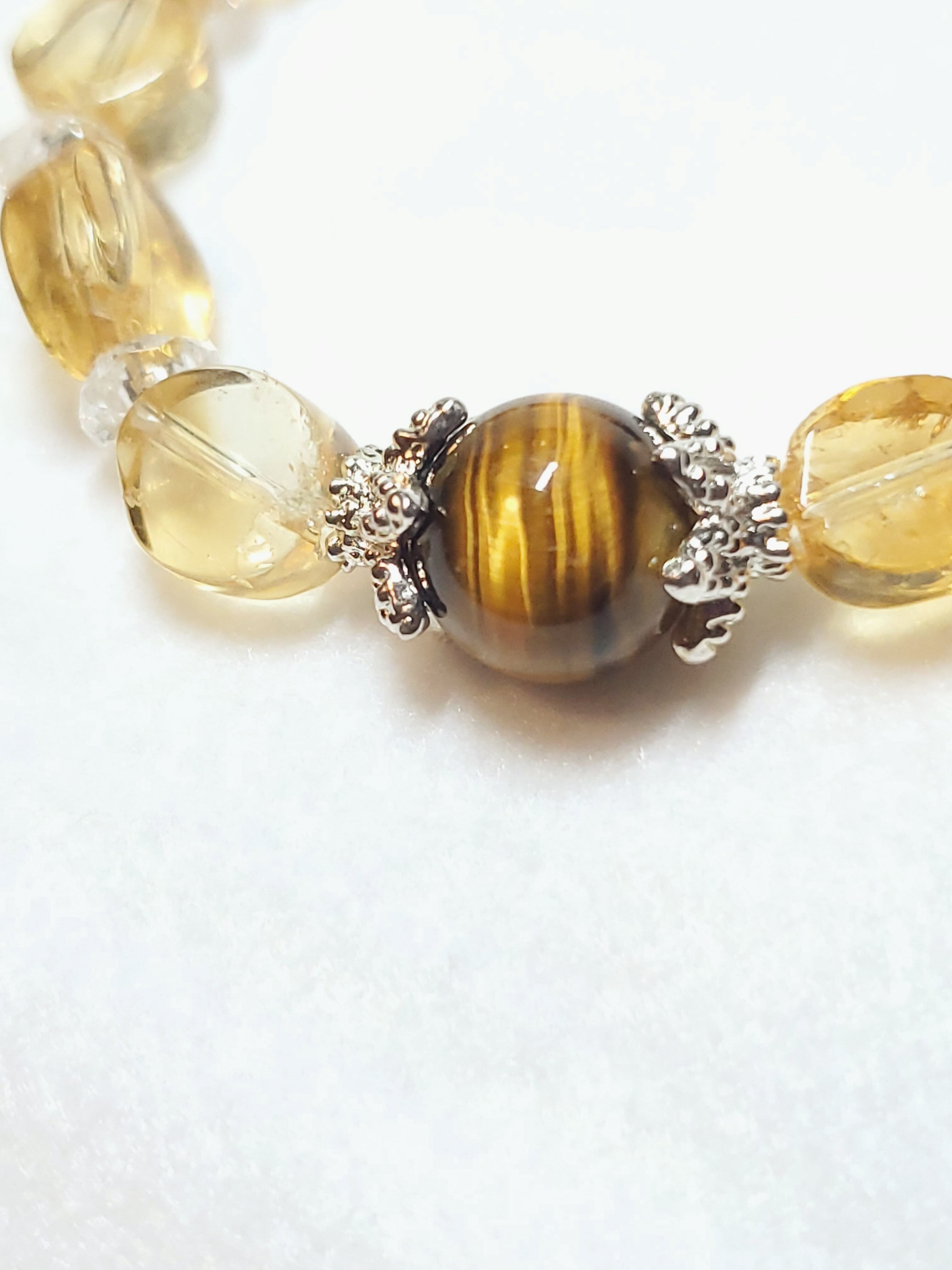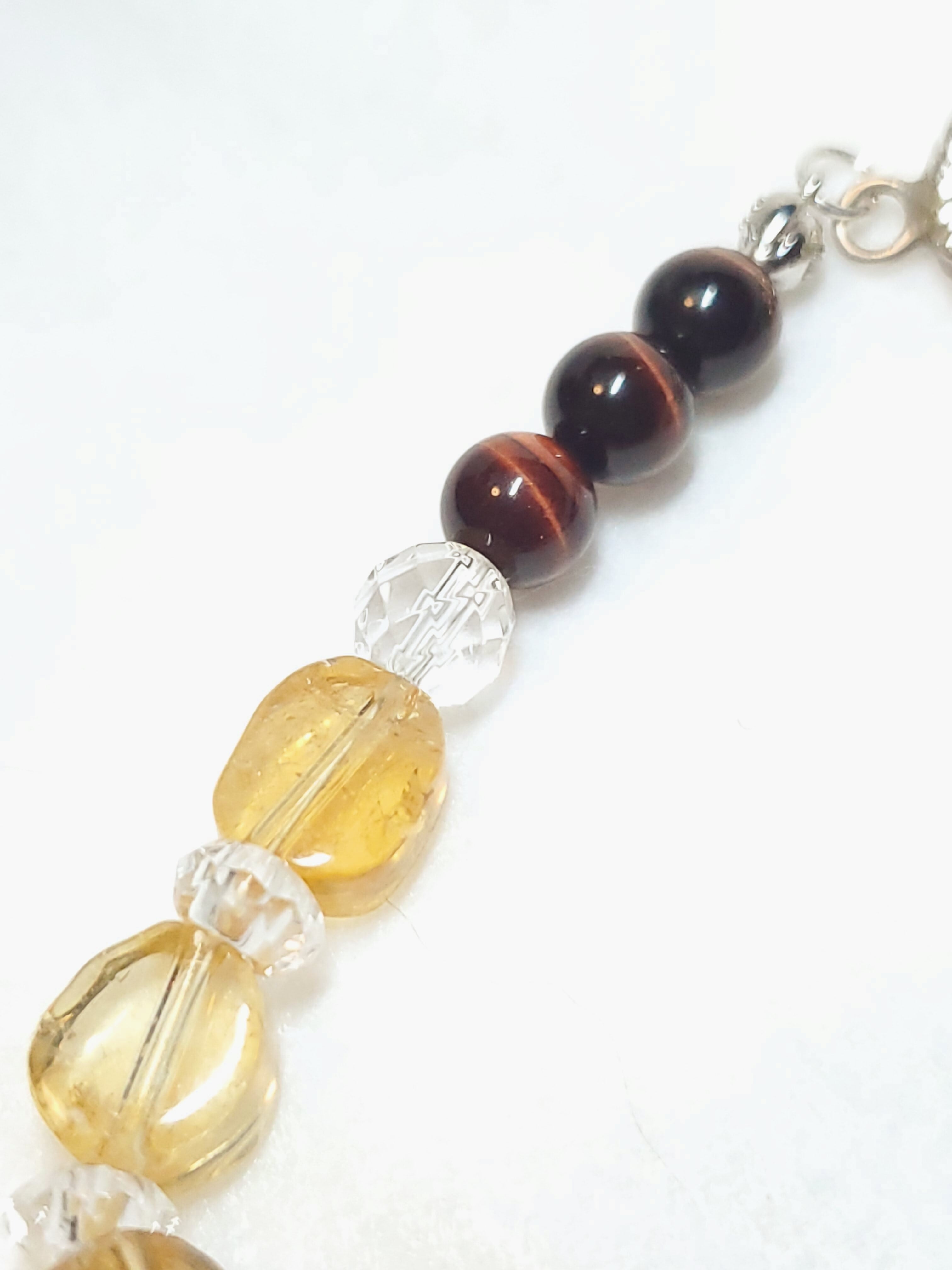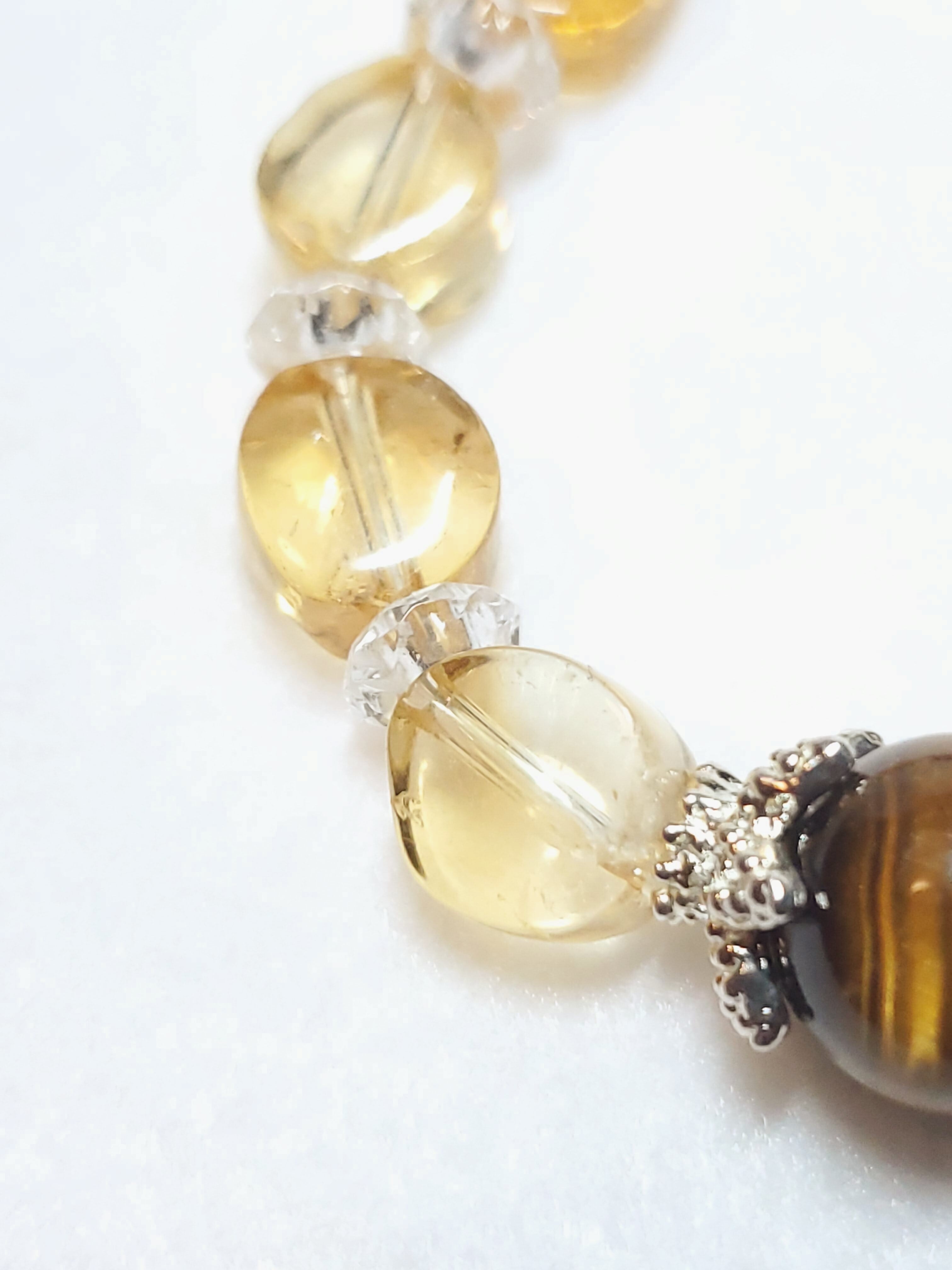 透明感のあるシトリンを加えてタイガーアイがアクセントになるよう仕立てました。