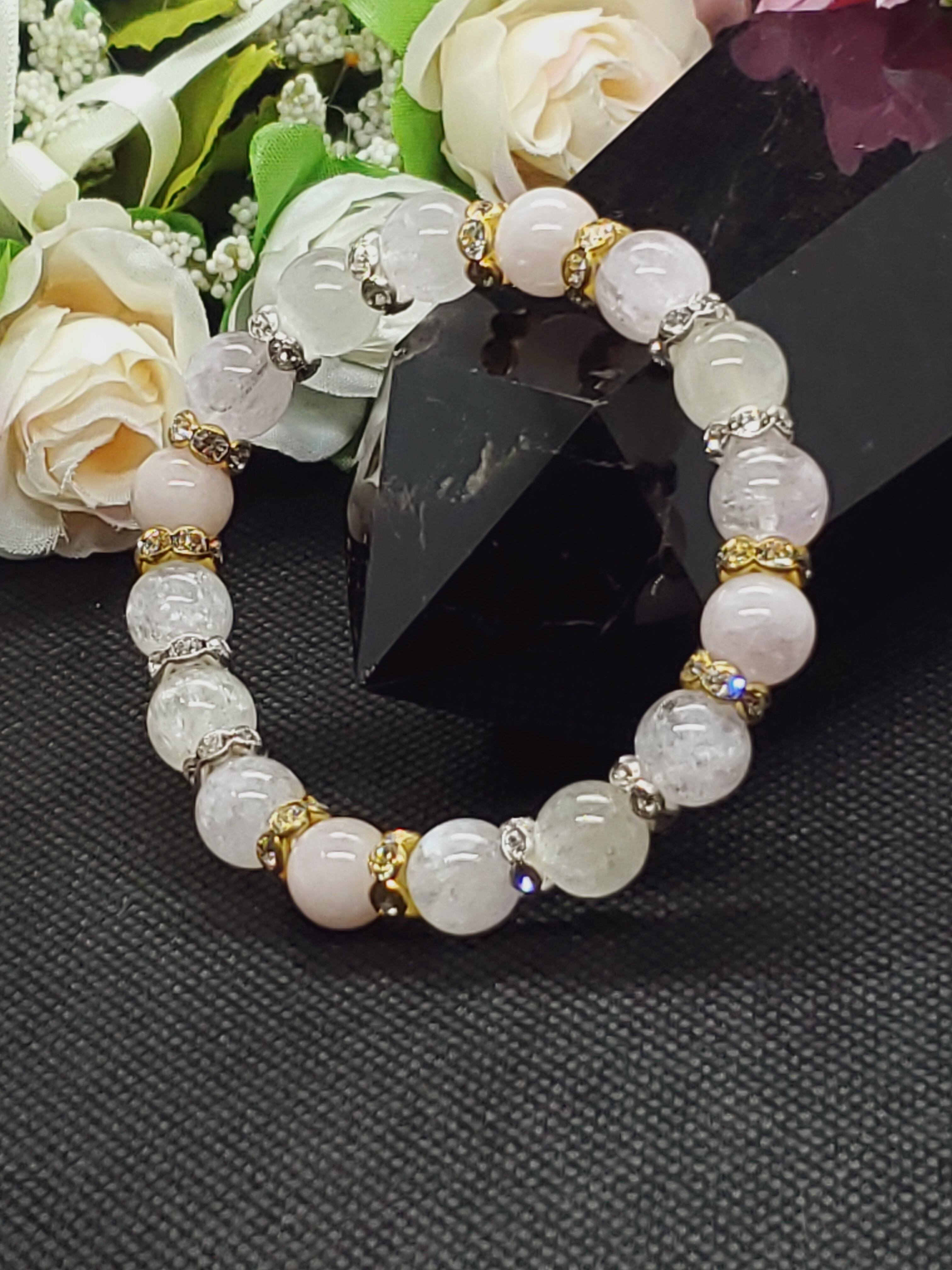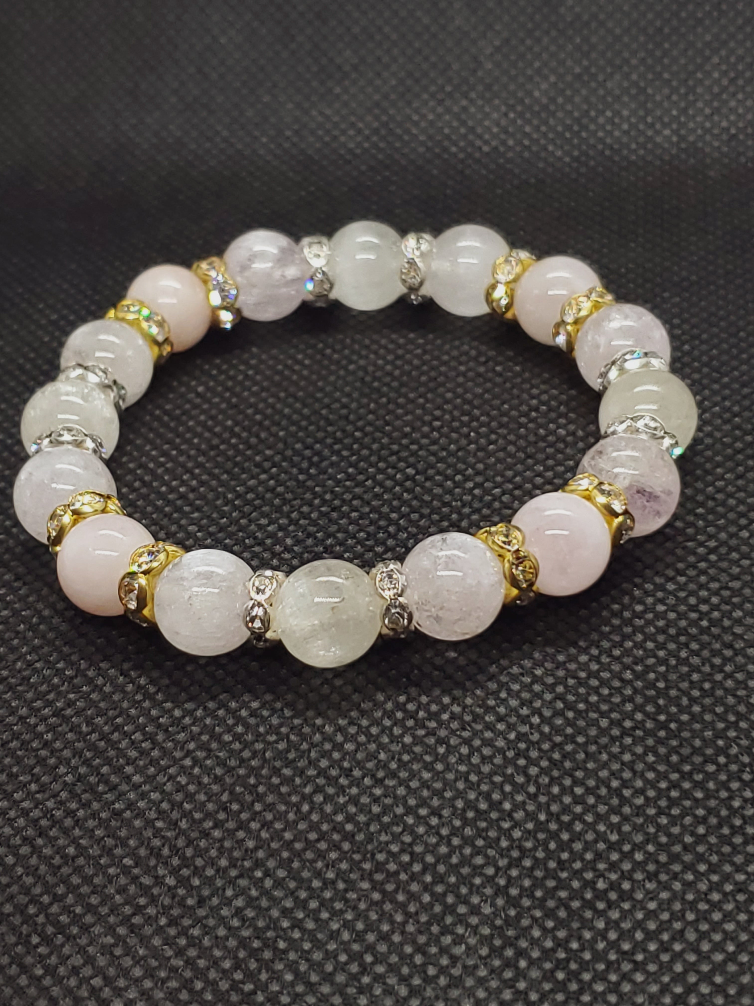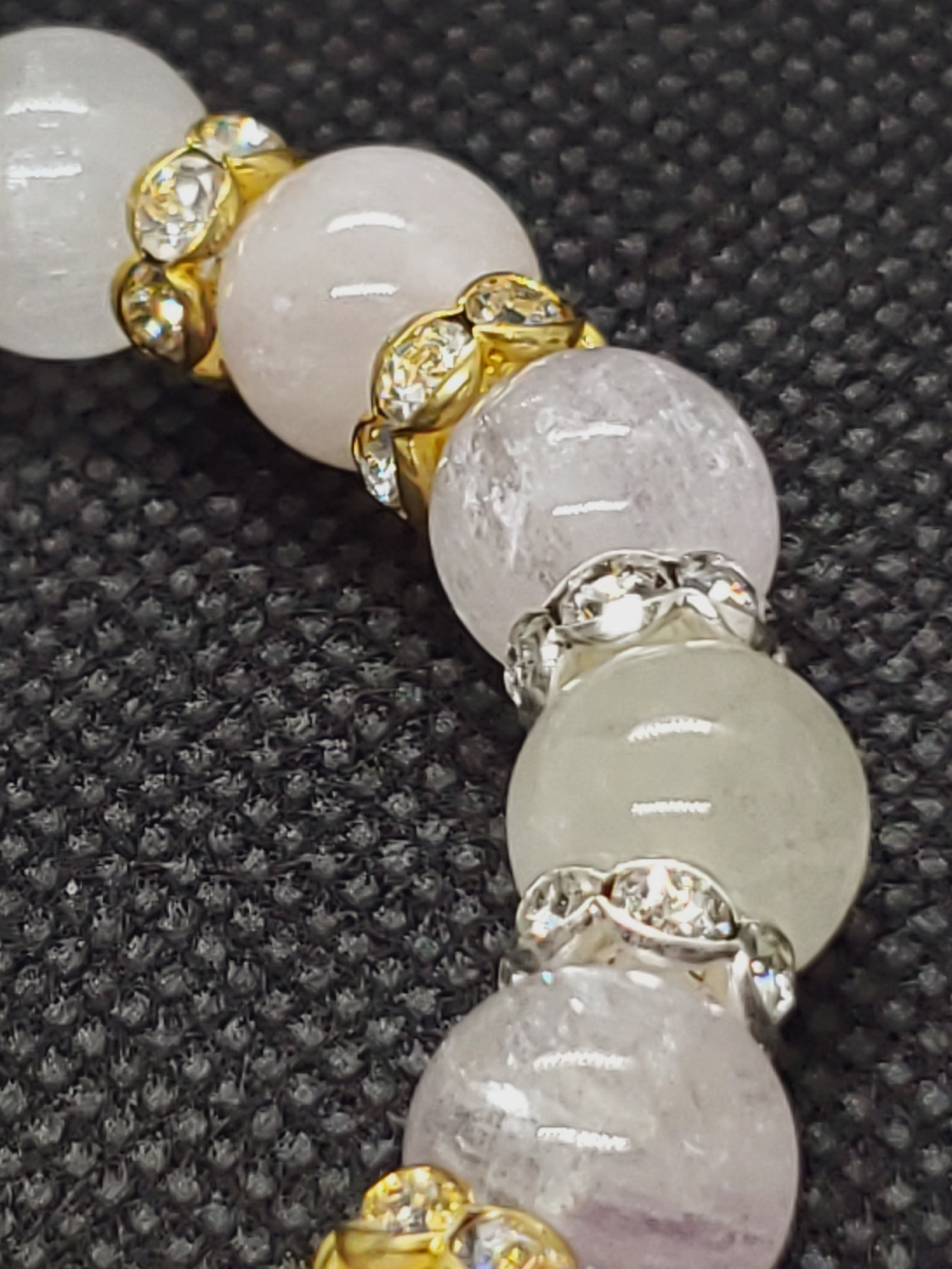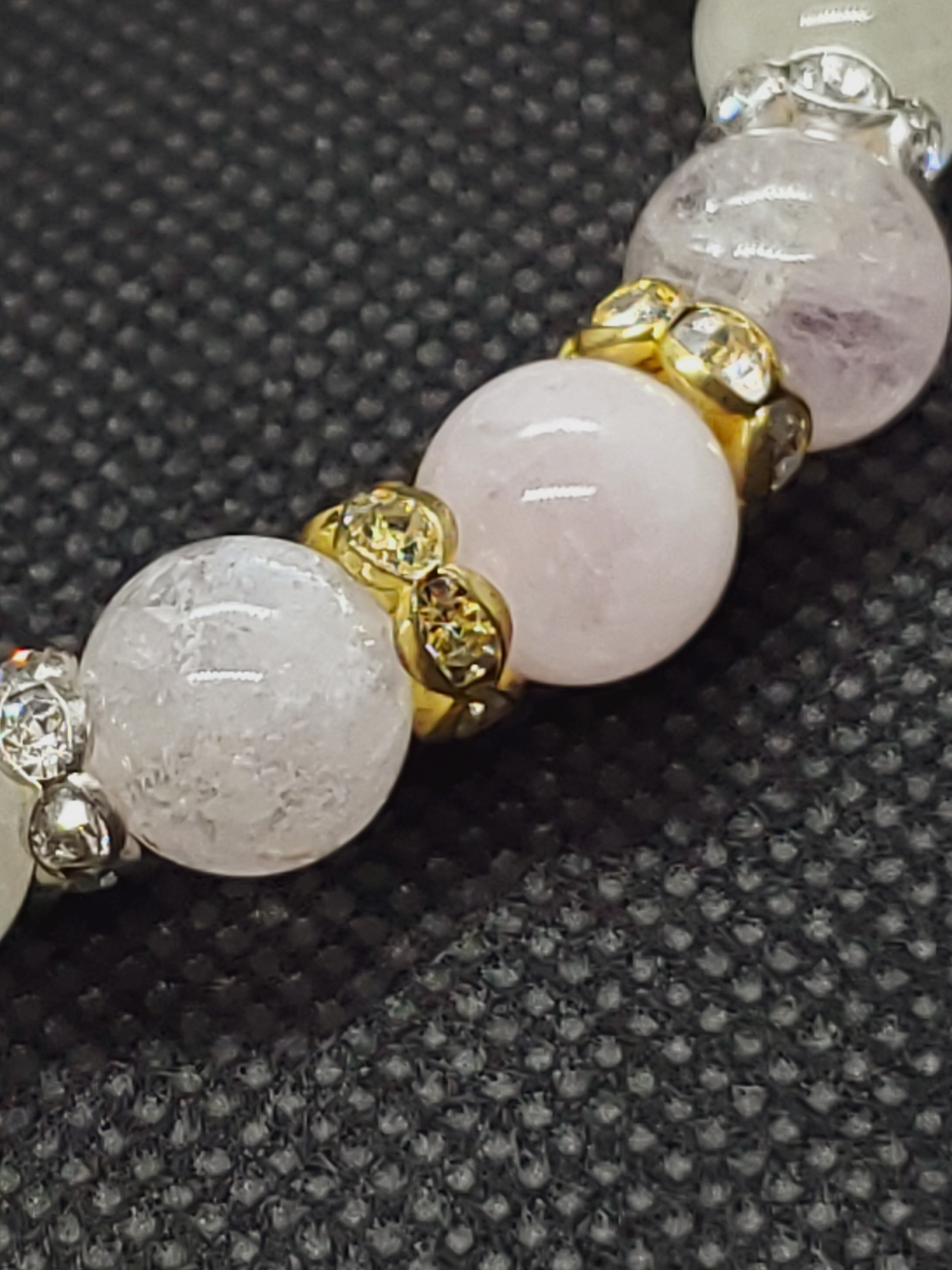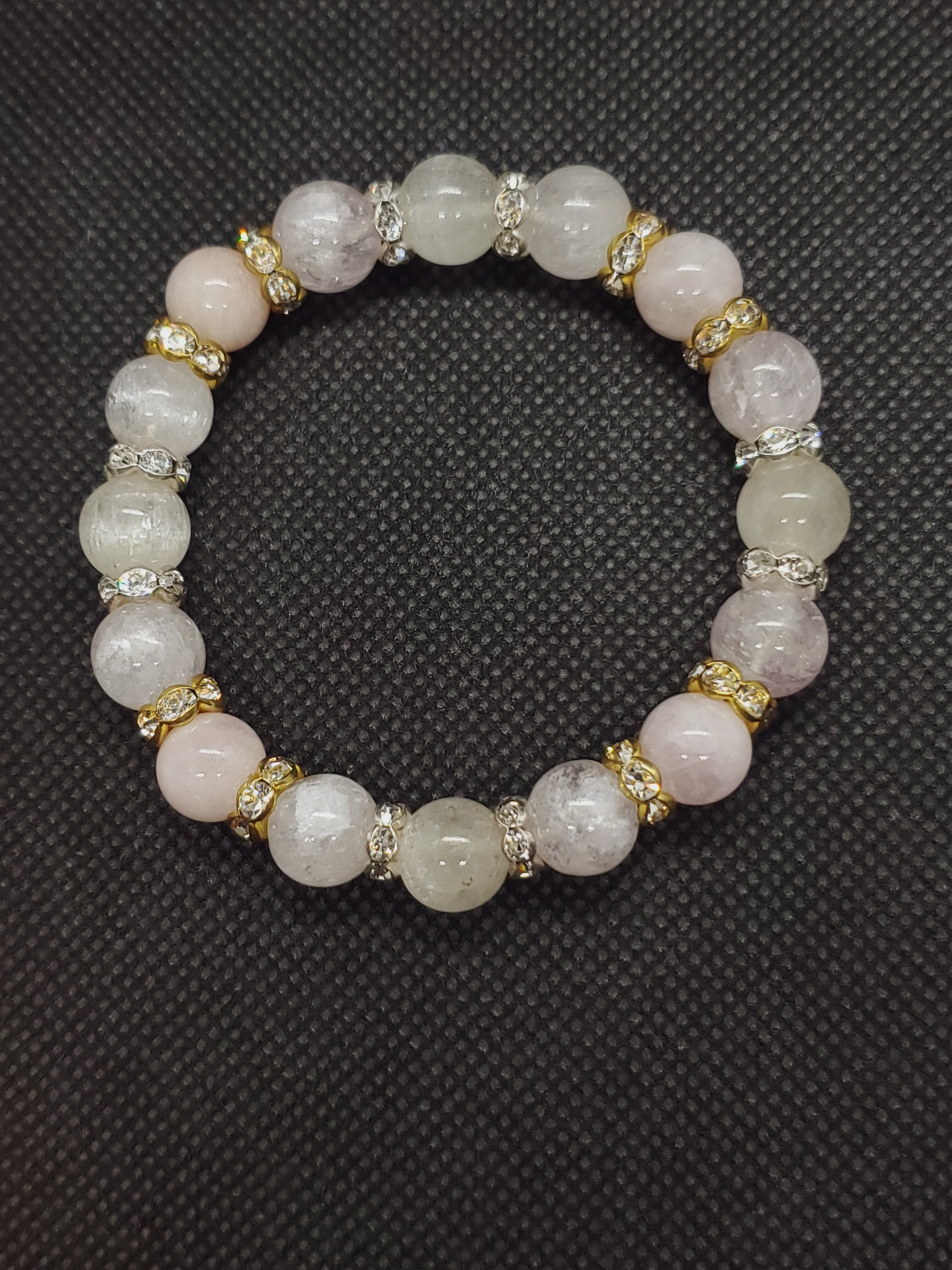 美しいキャッツ効果がみられるクンツァイトと、優しい色合いが人気のモルガナイトのブレスレットです。