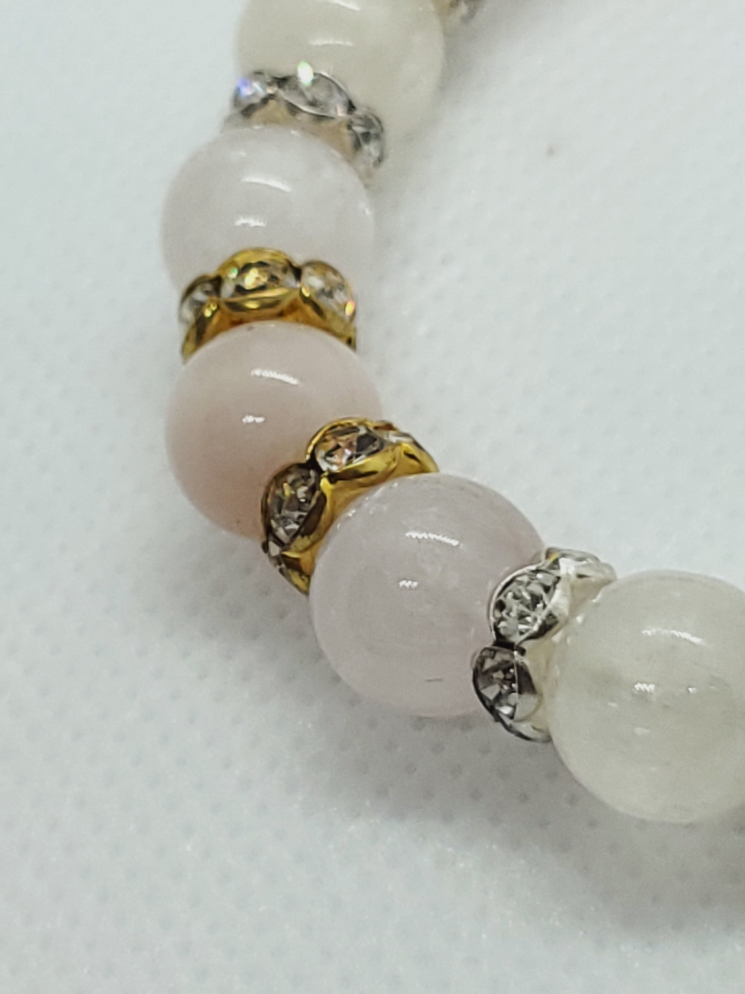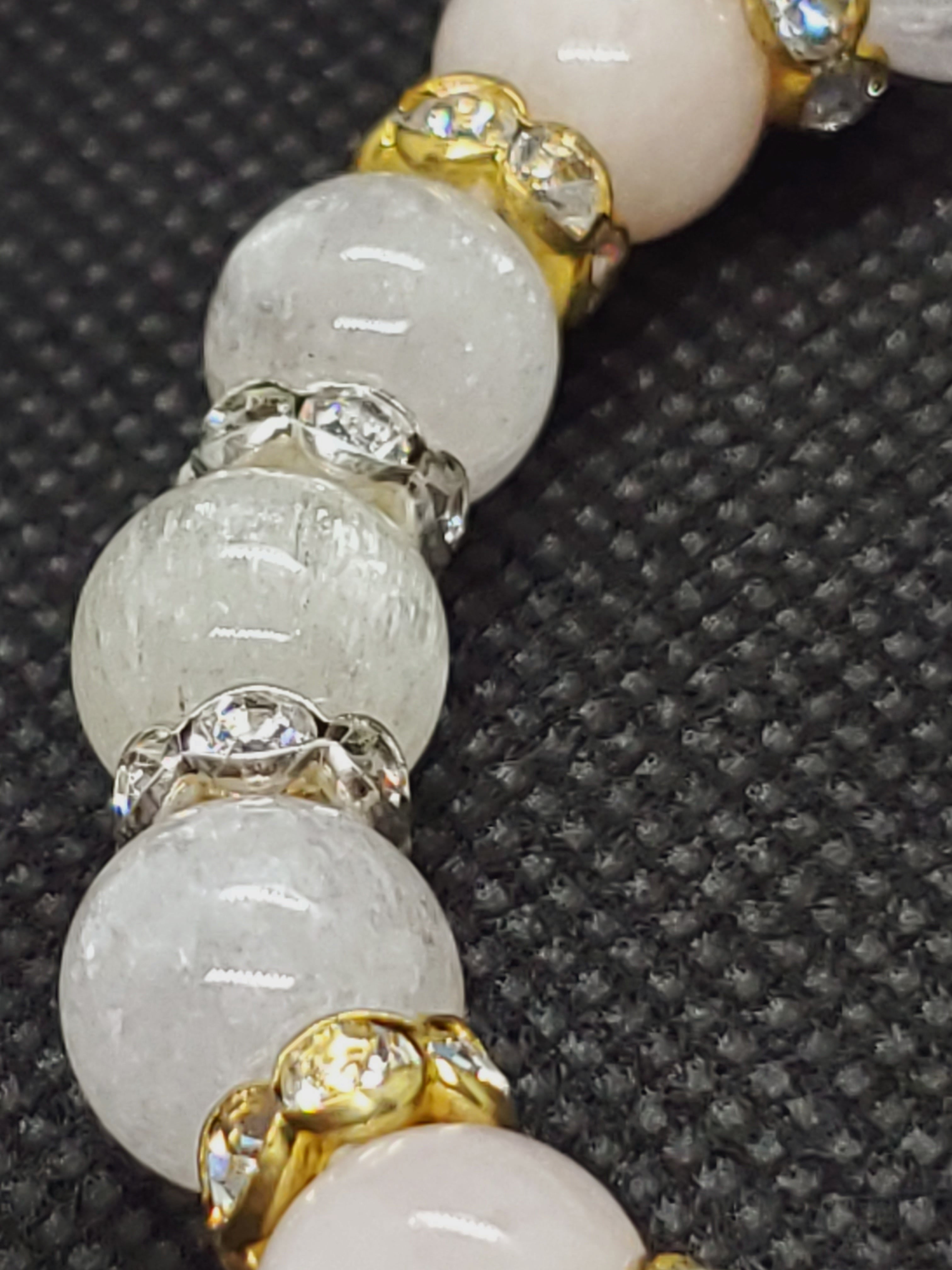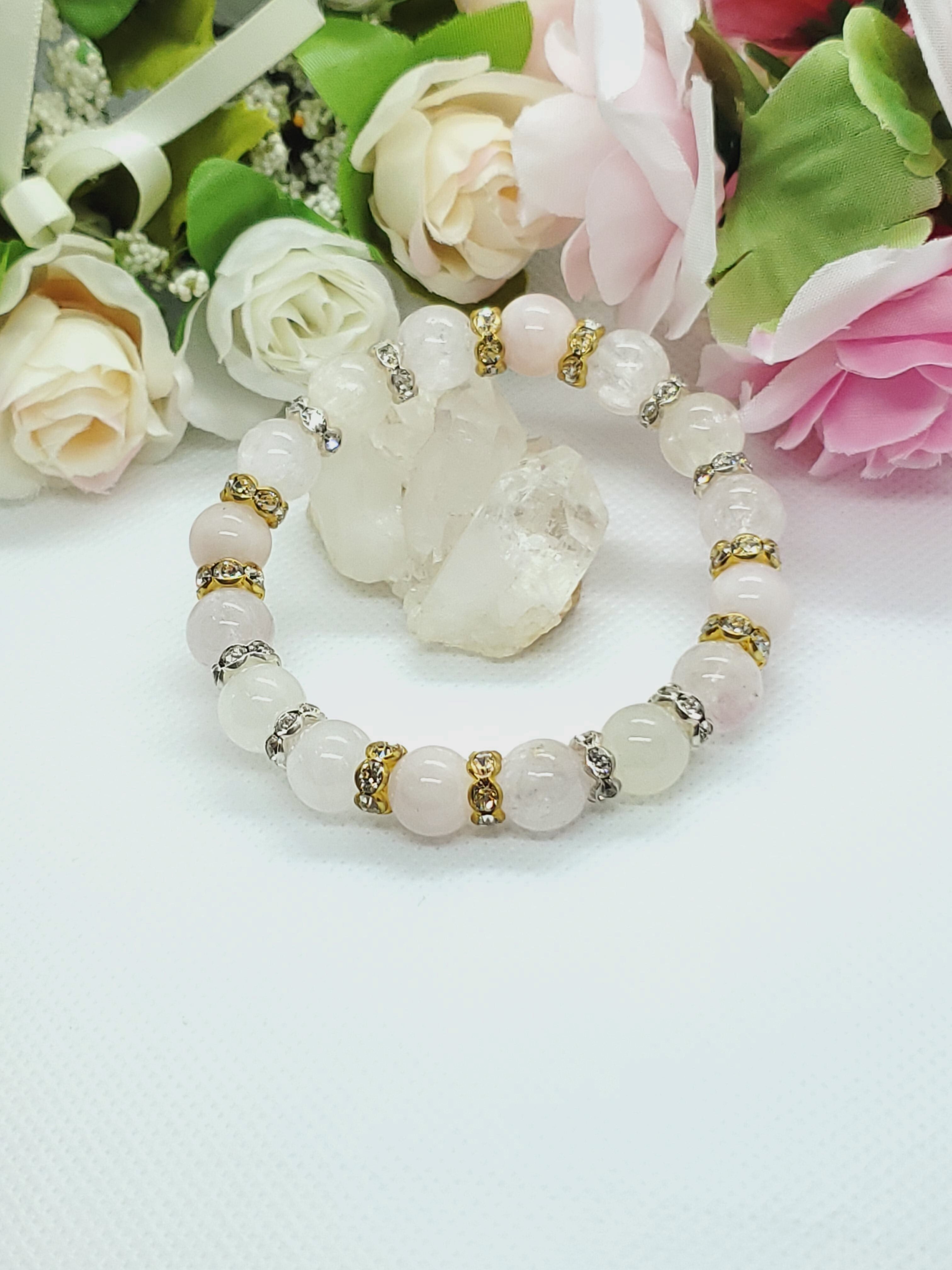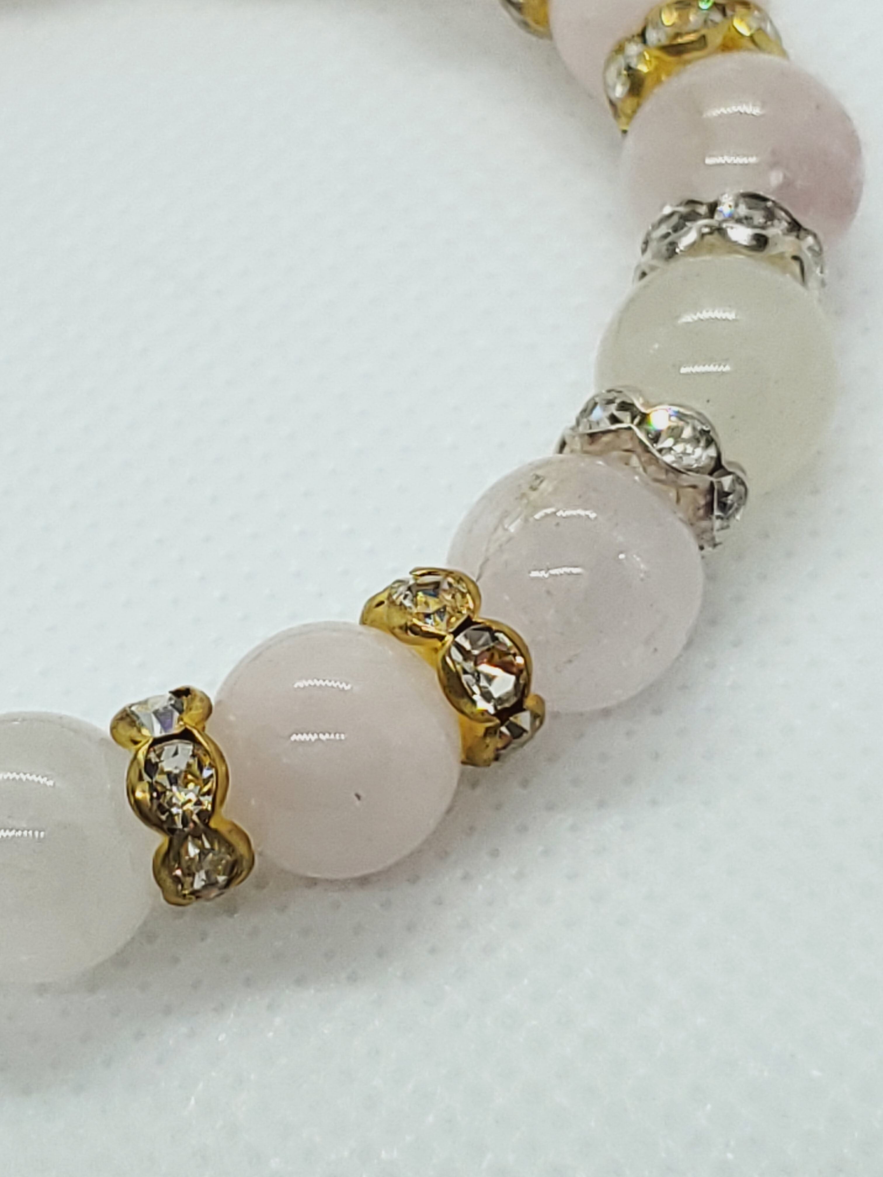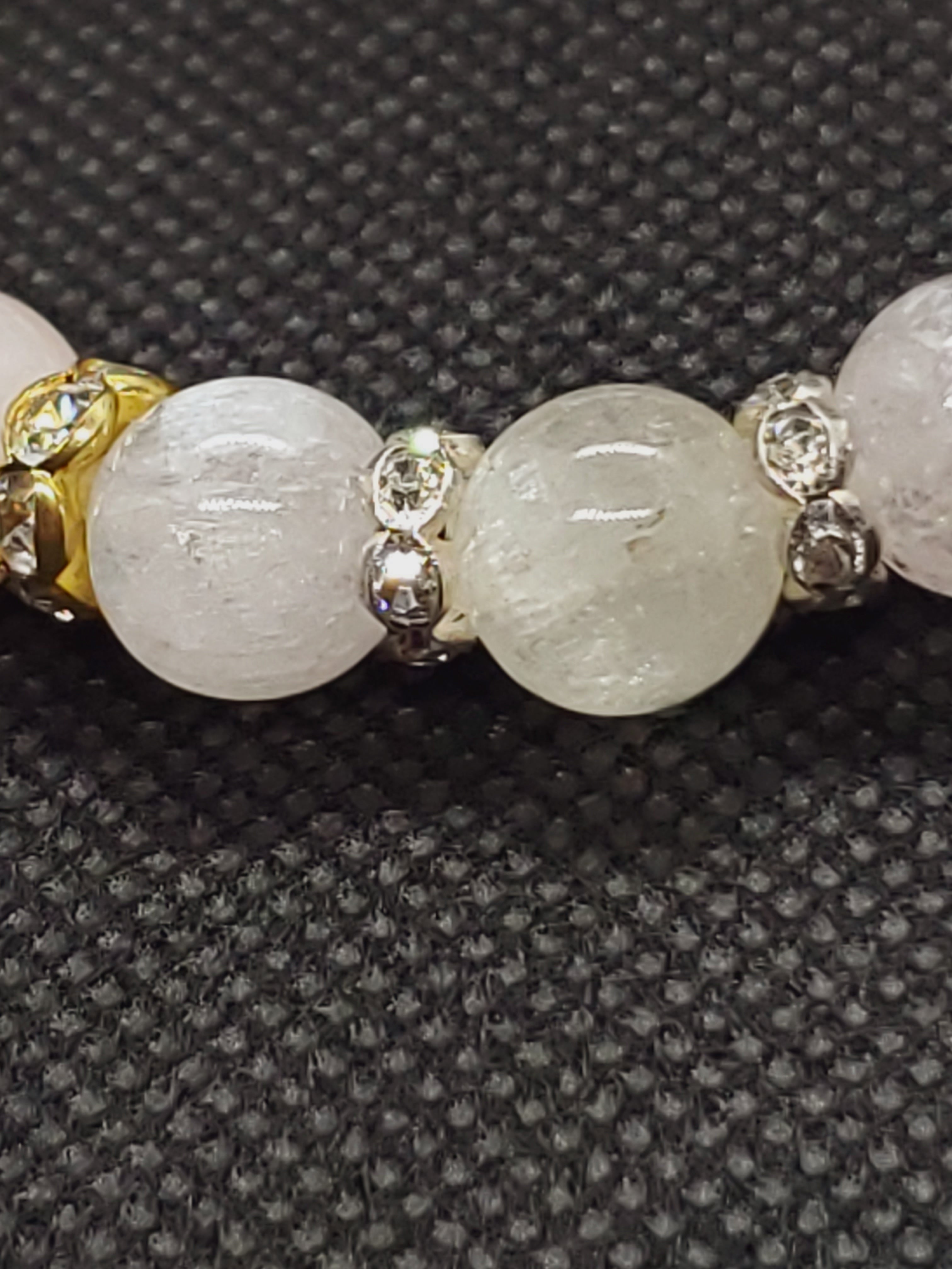 美しいキャッツ効果がみられるクンツァイトと、優しい色合いが人気のモルガナイトのブレスレットです。