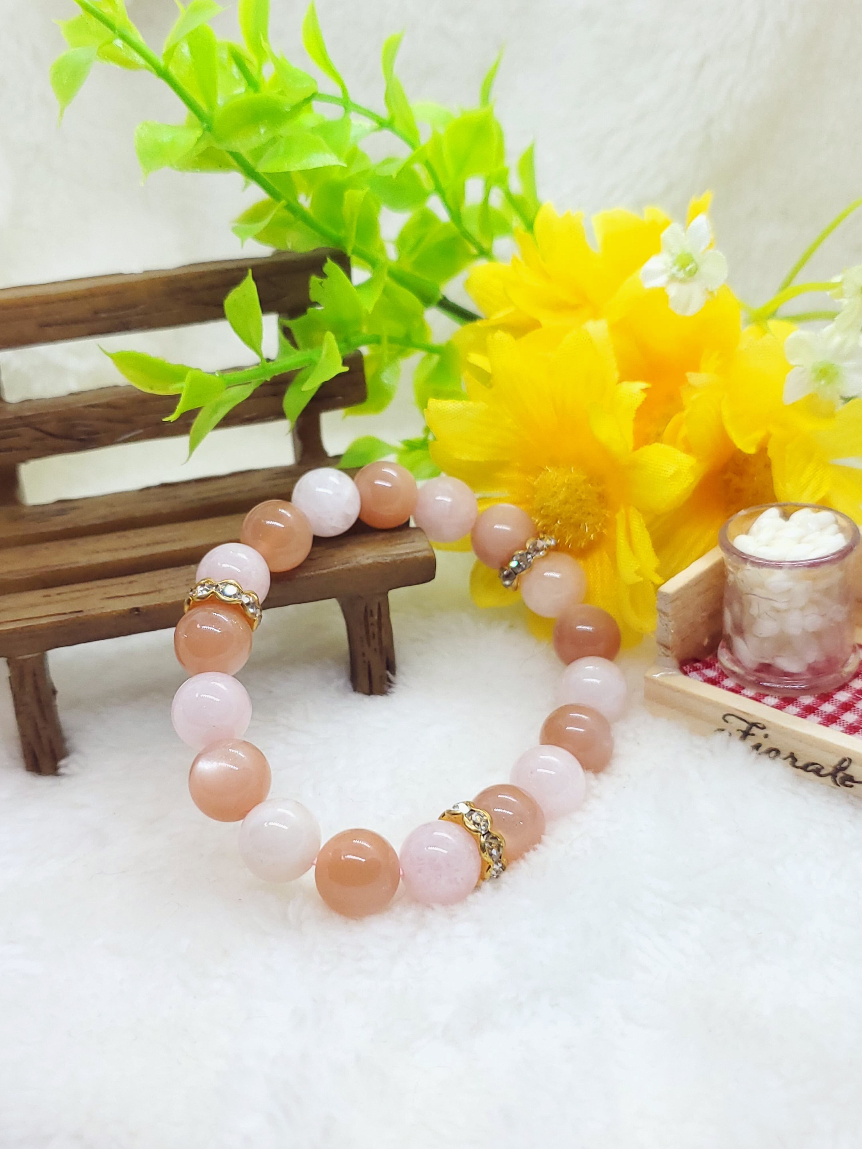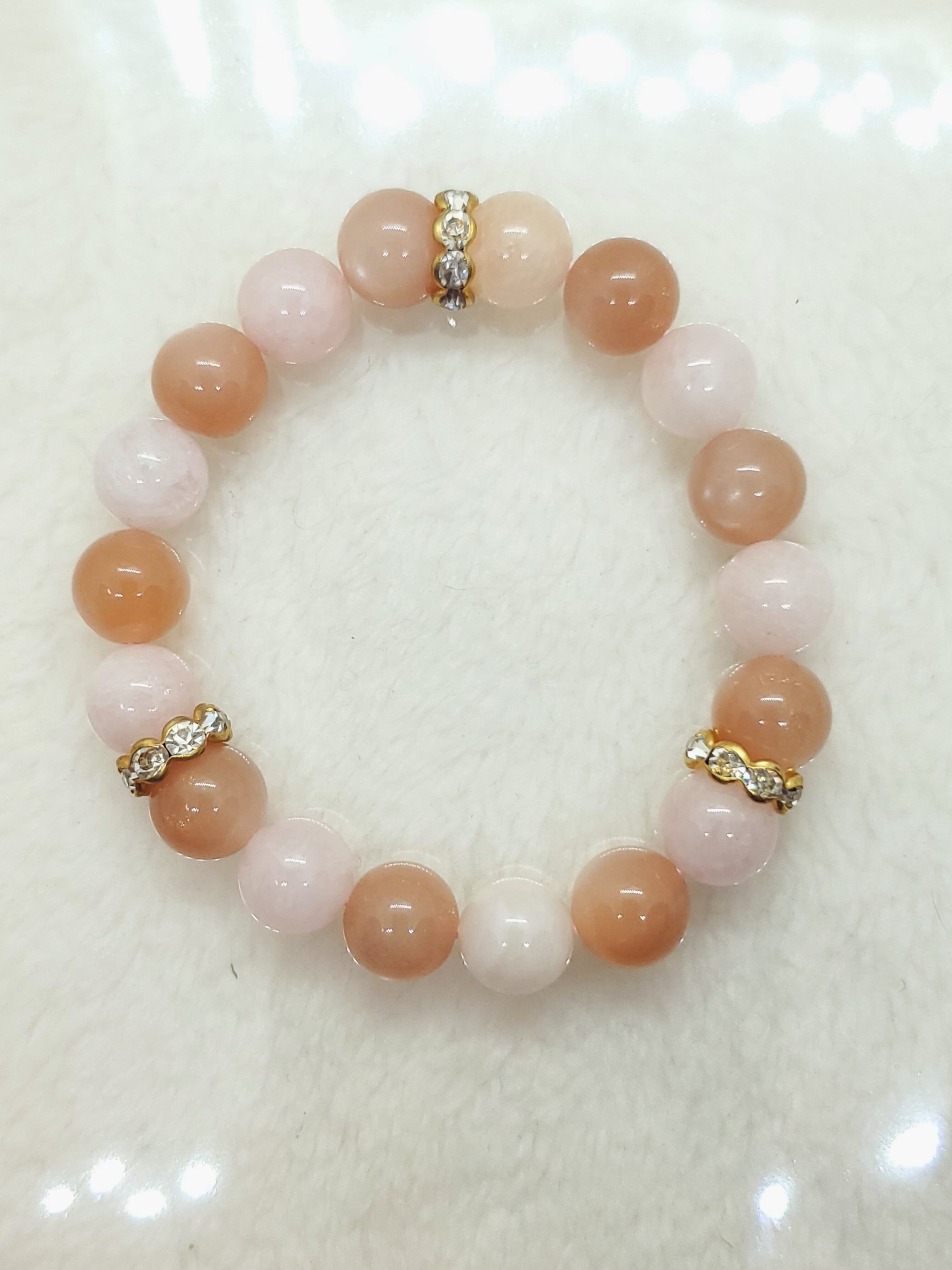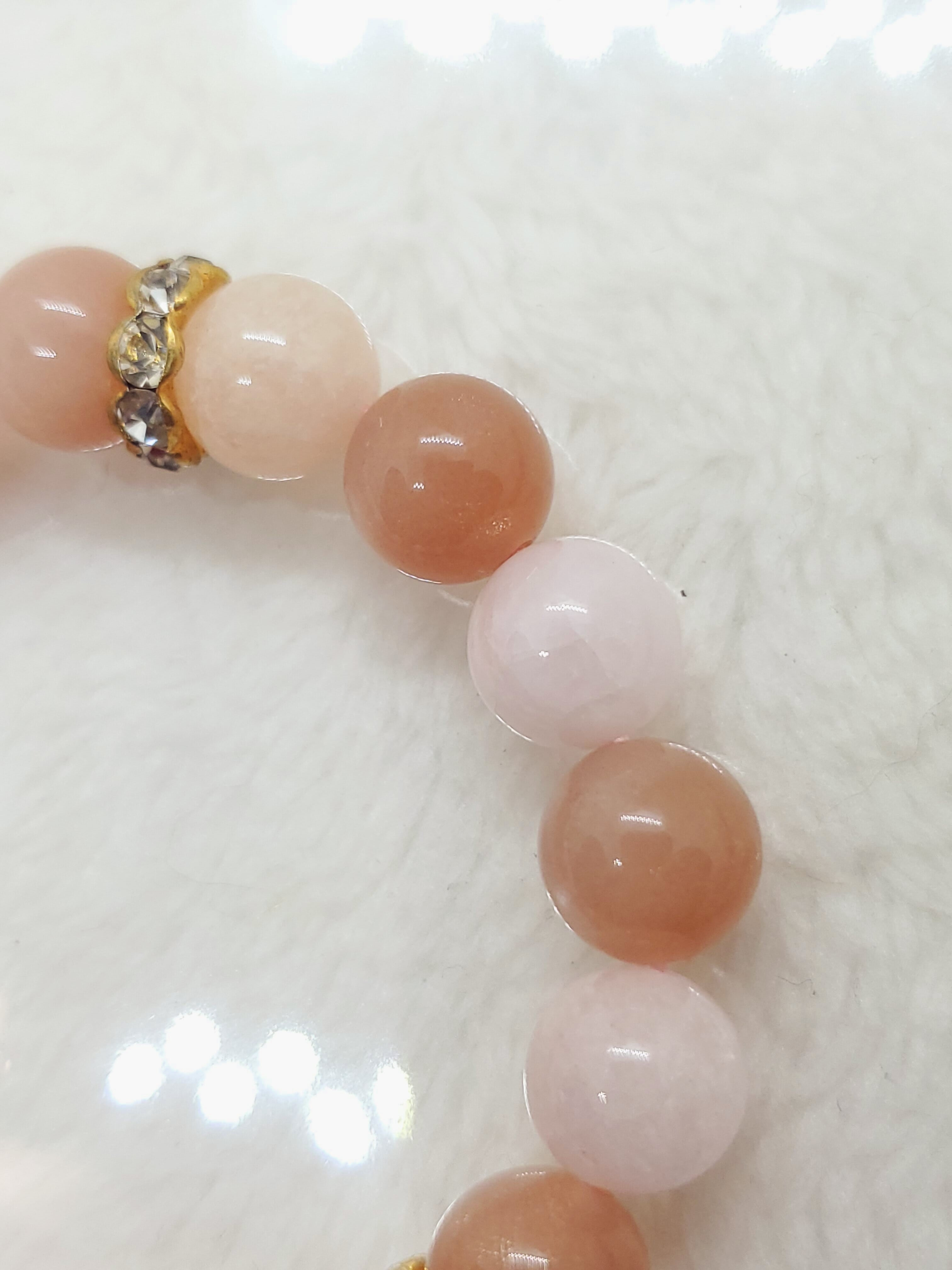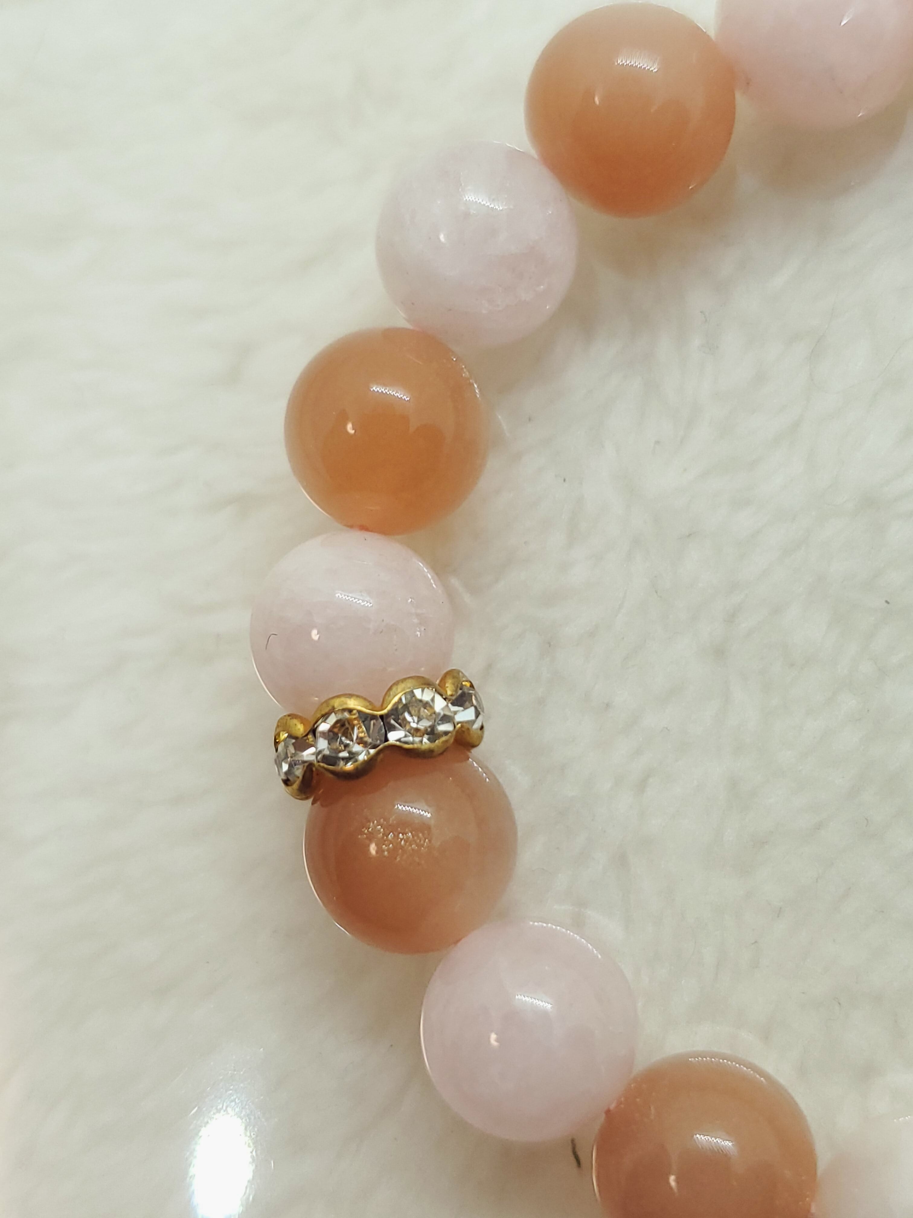 優しい色合いのオレンジムーンストーンとモルガナイトの組み合わせになります。