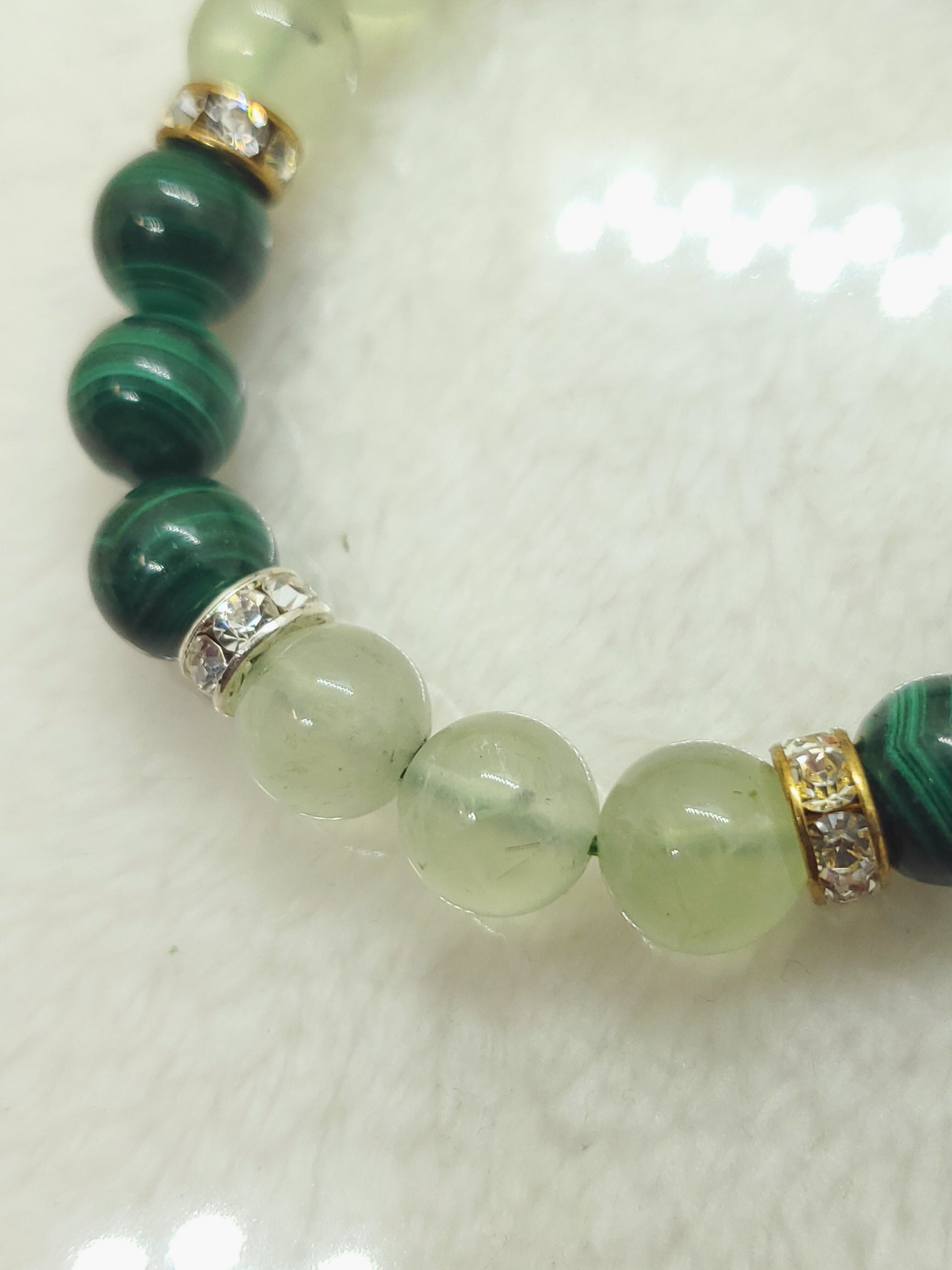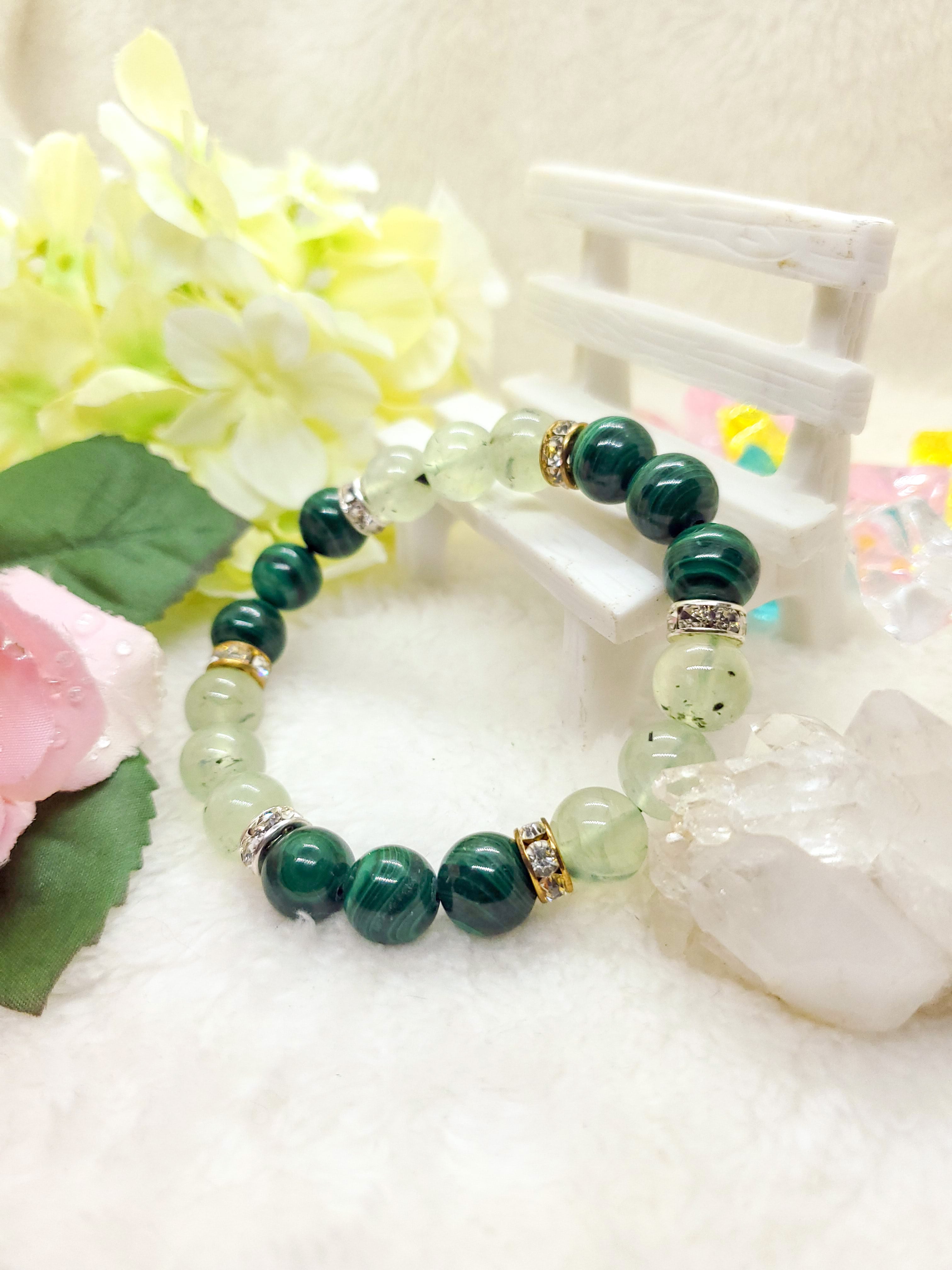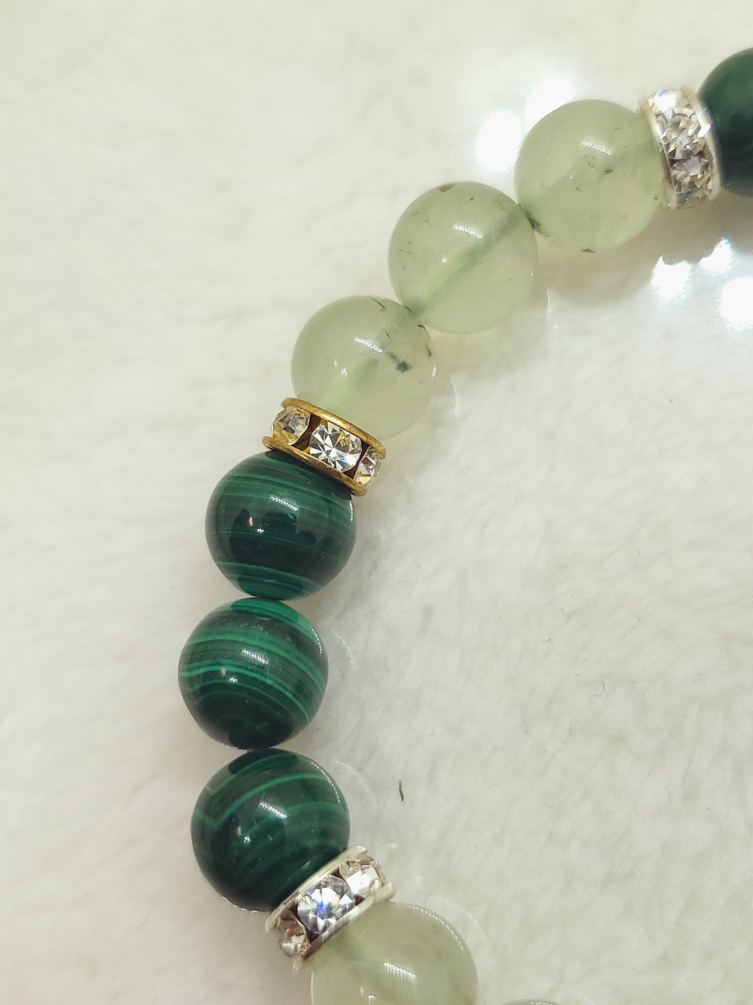 パワーストーン界では、プレナイトは頭脳や能力に関する記述が多く、マラカイトは体に関する記述が目立ちます。二つを合わせることで、心身共に健康を与えてくれるかもしれません。