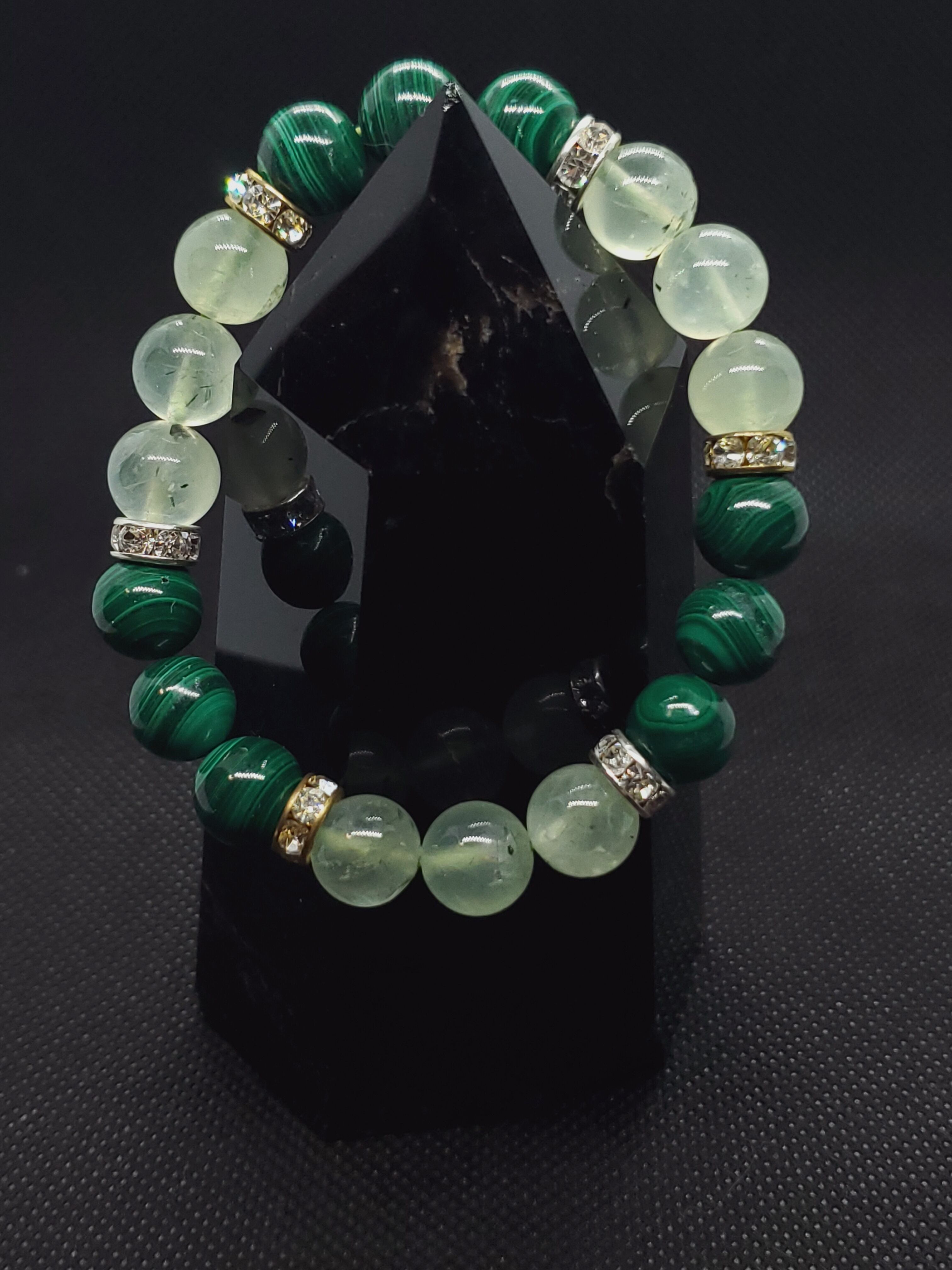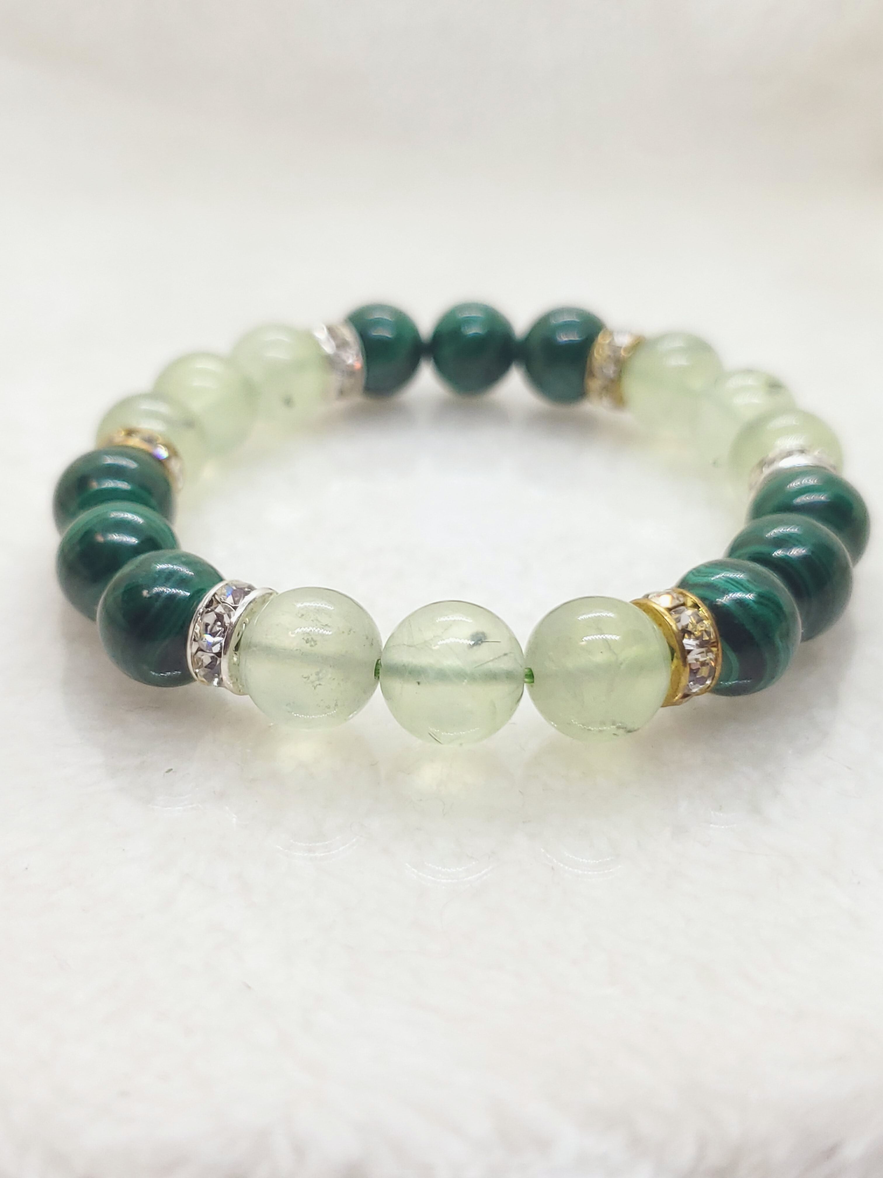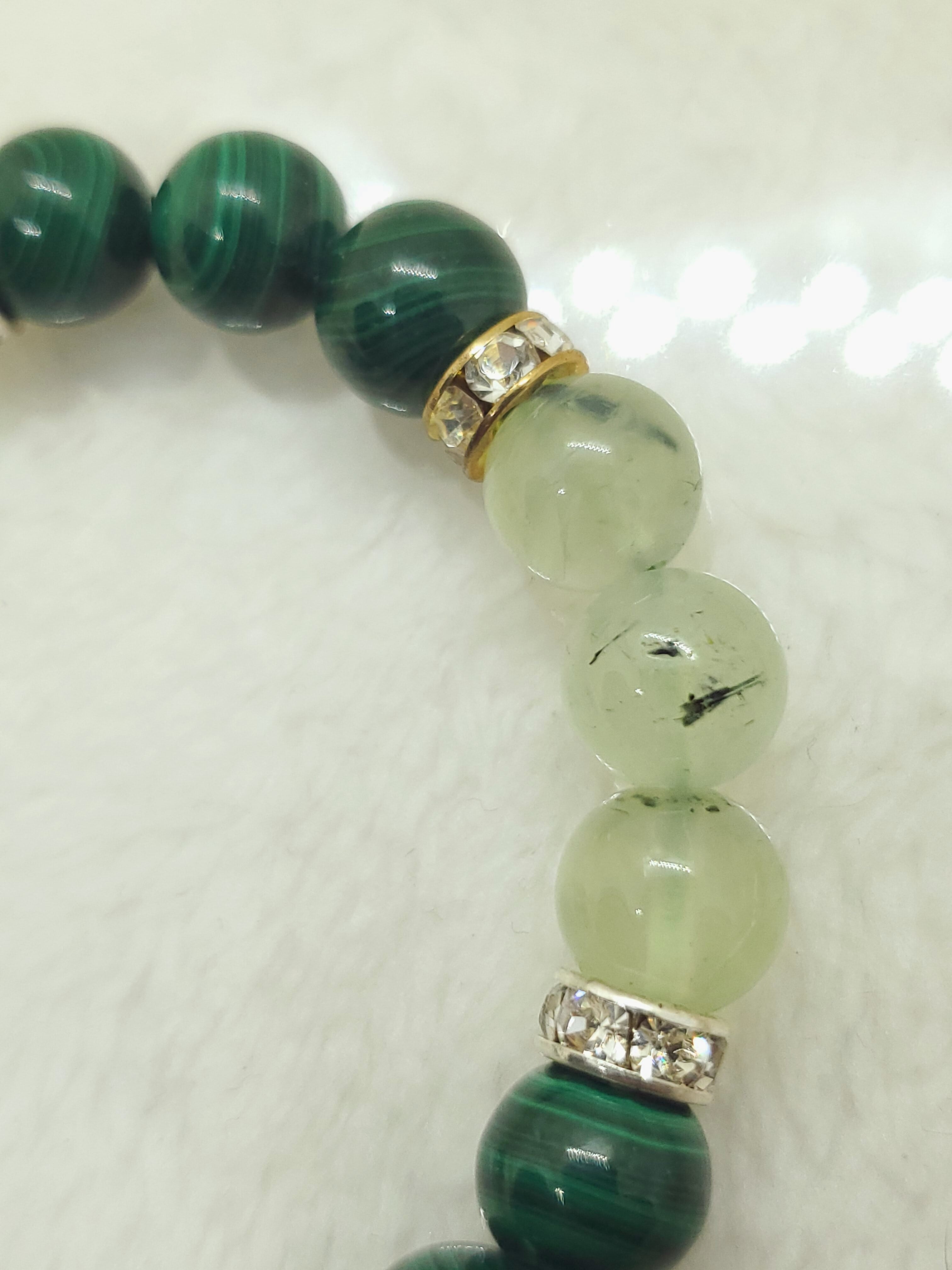 パワーストーン界では、プレナイトは頭脳や能力に関する記述が多く、マラカイトは体に関する記述が目立ちます。二つを合わせることで、心身共に健康を与えてくれるかもしれません。