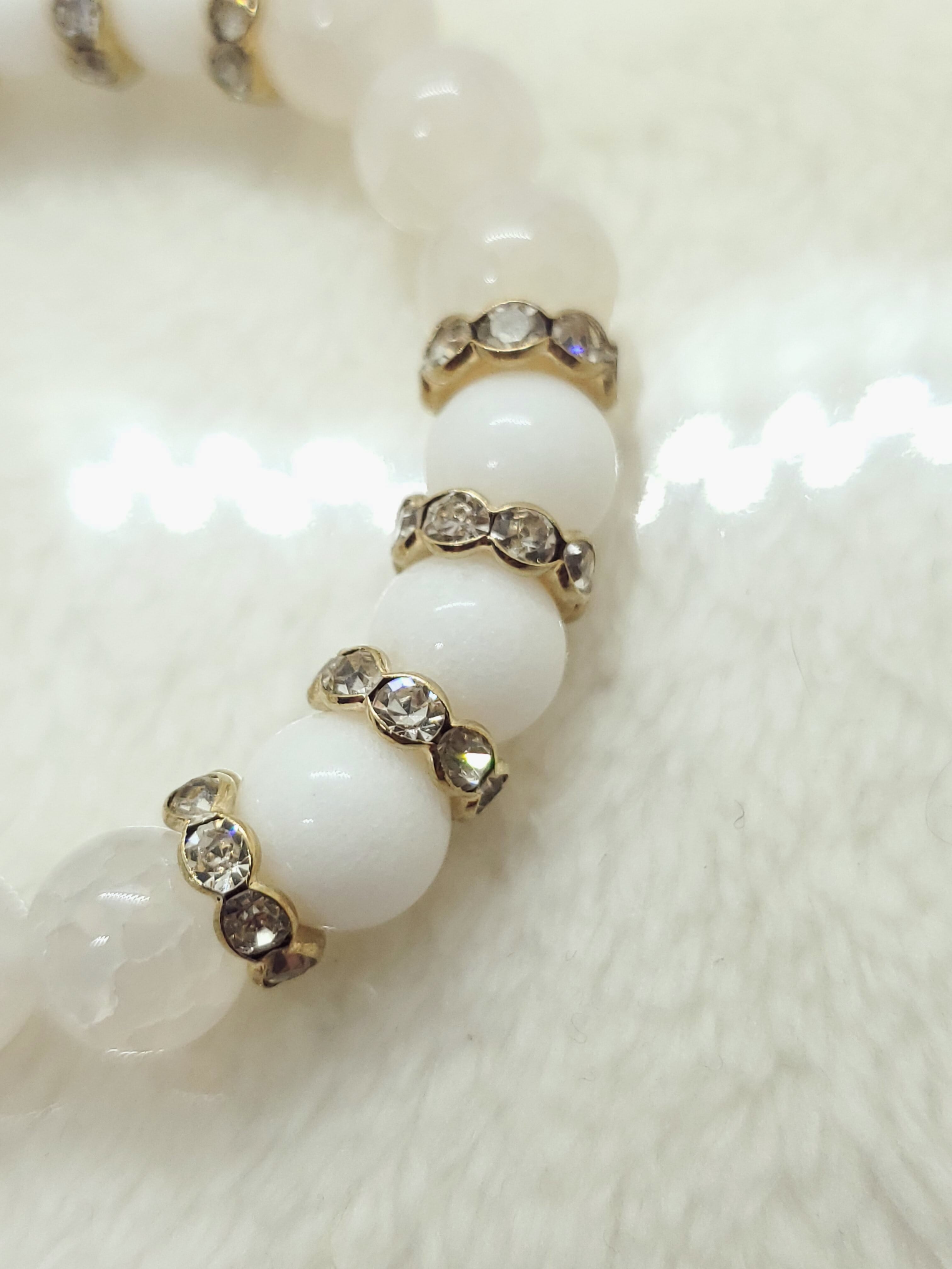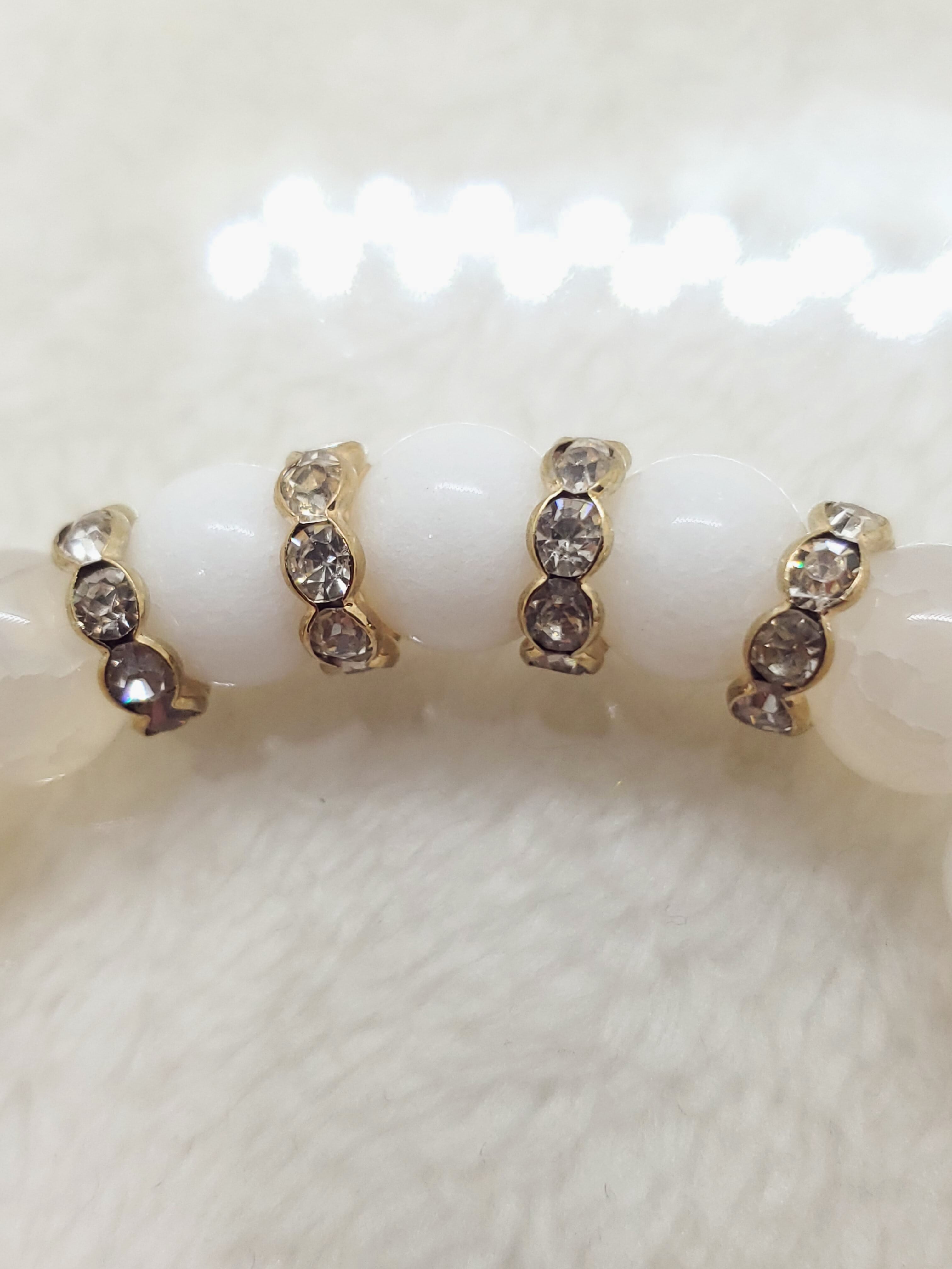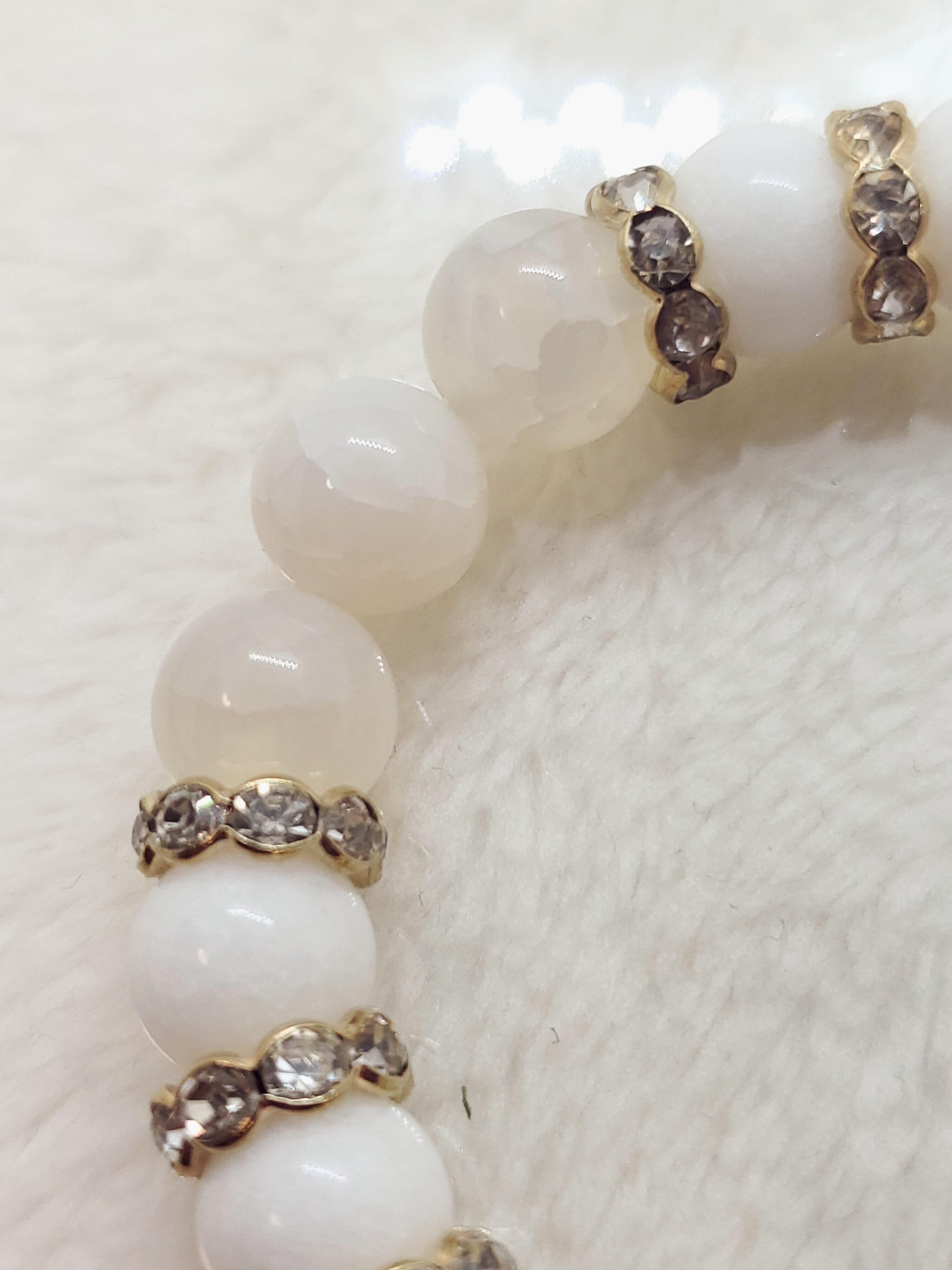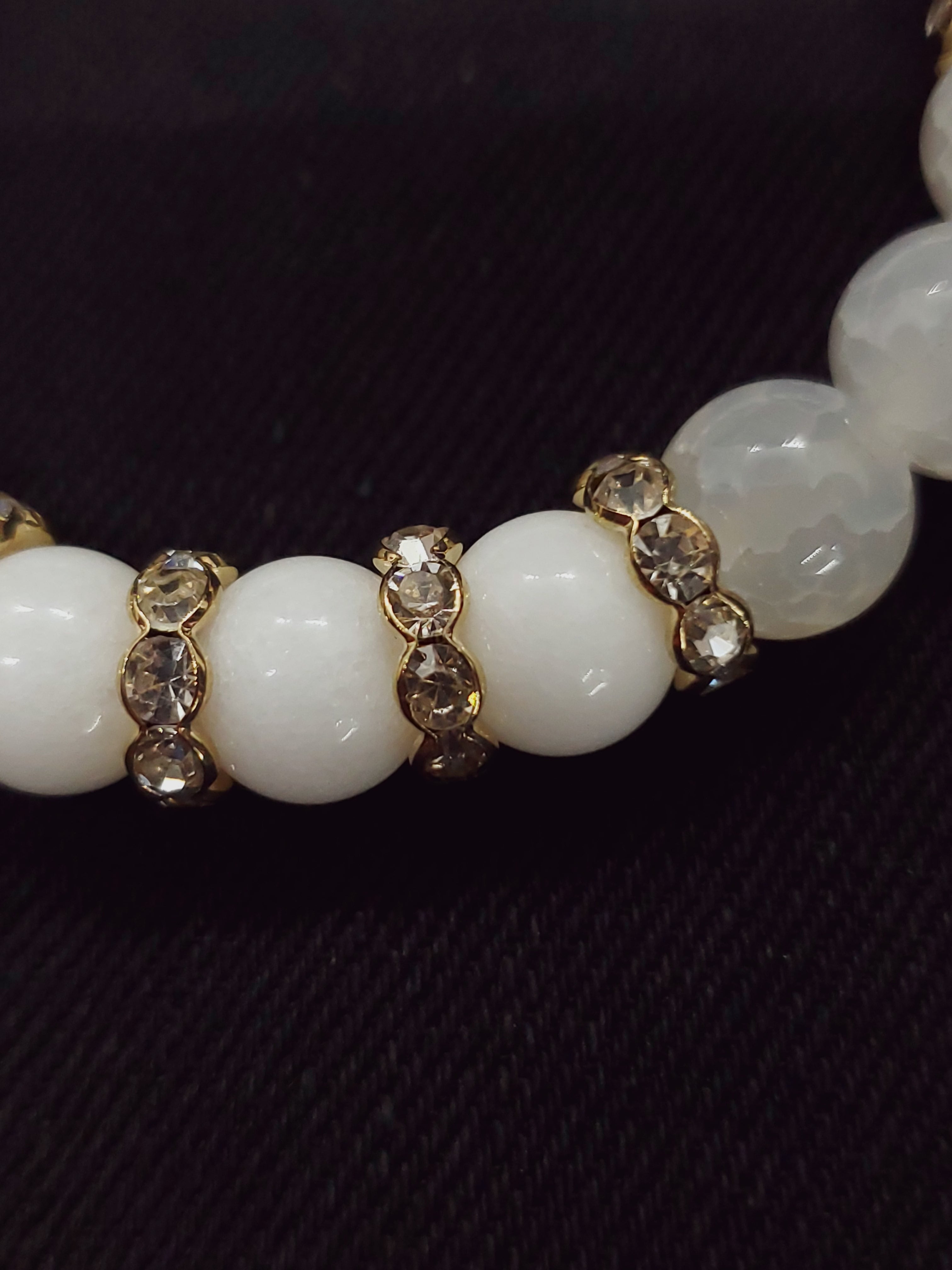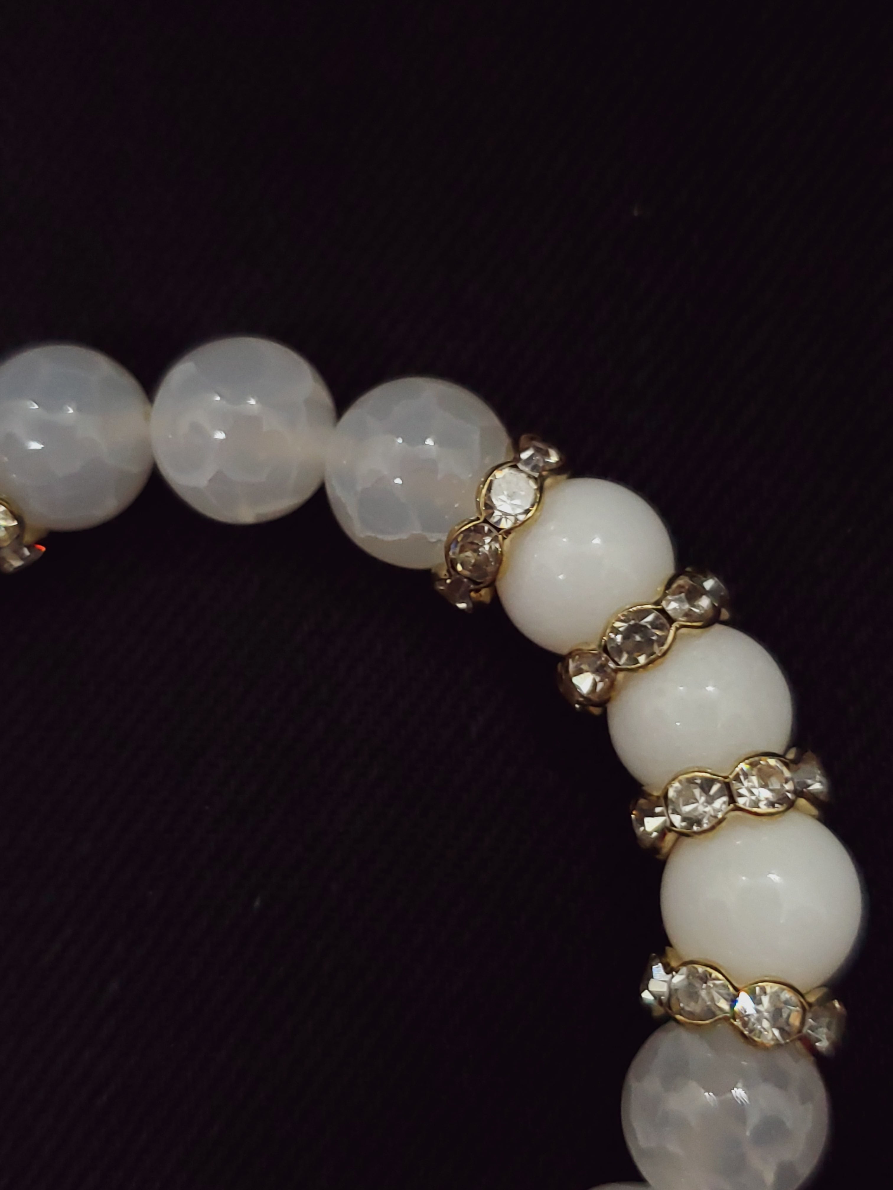 真っ白なホワイトジェード(正式名クォーツァイト)と、透け感のあるホワイトカルセドニー(人工クラック)の雪のようなホワイトブレスレットです。