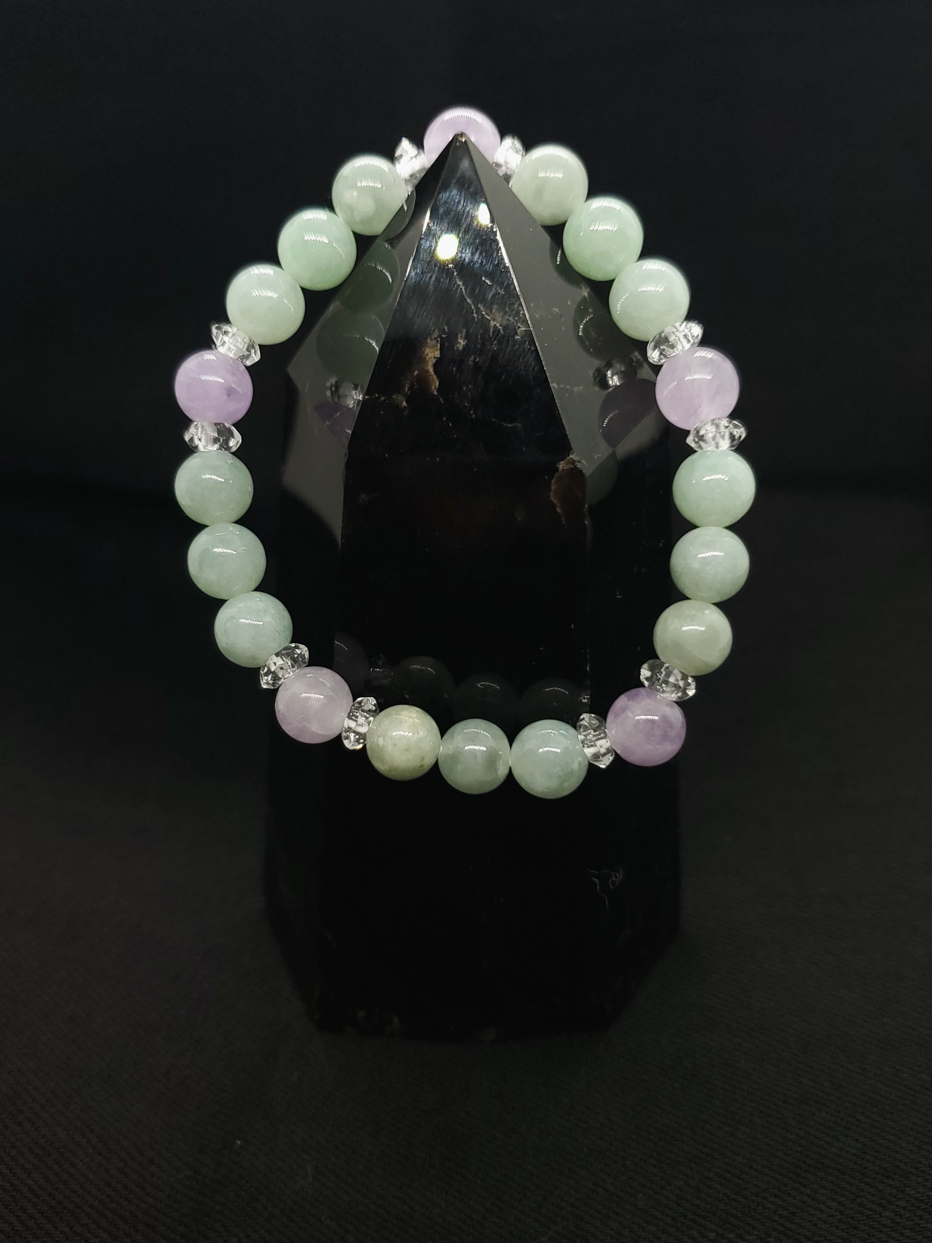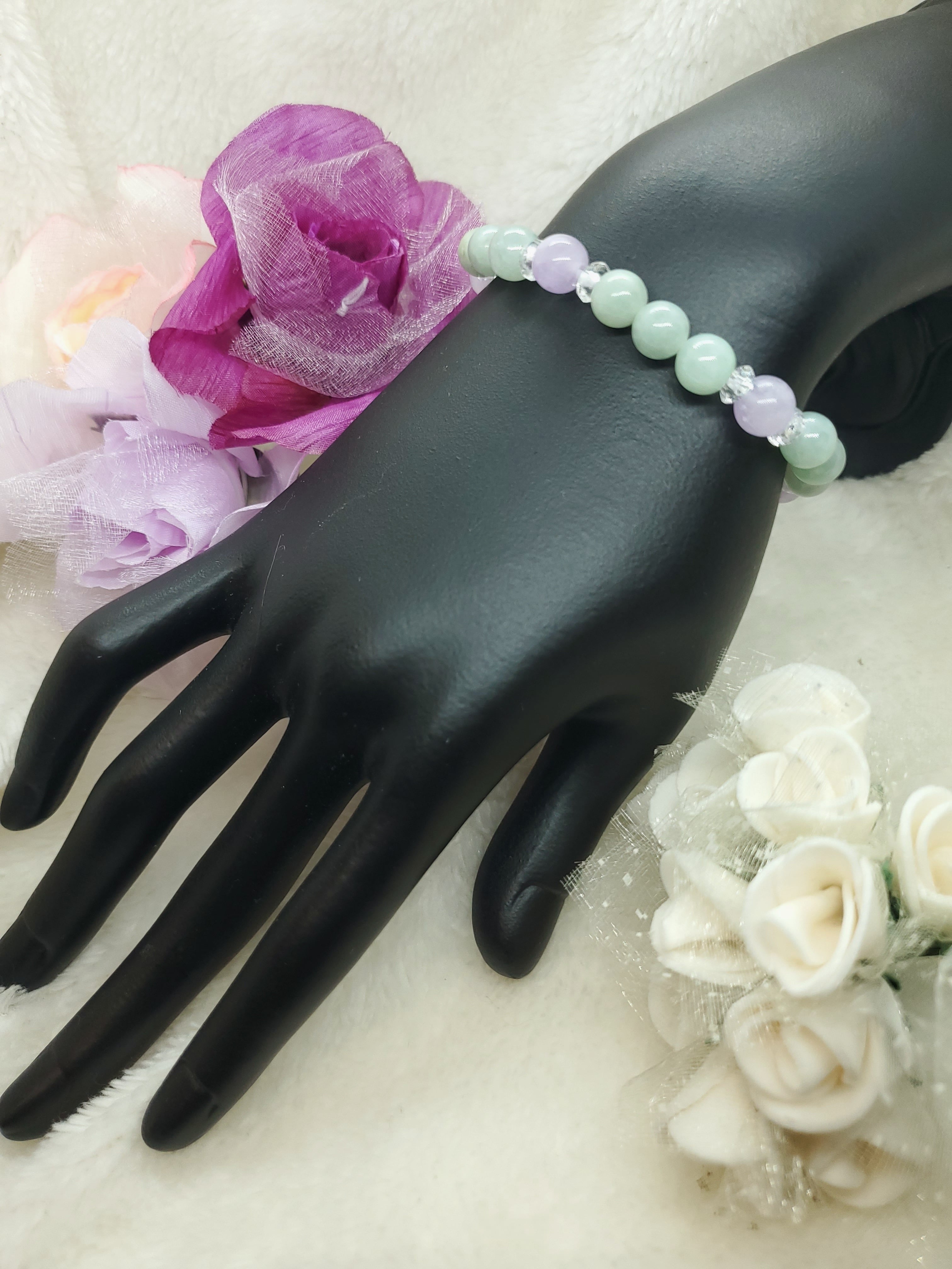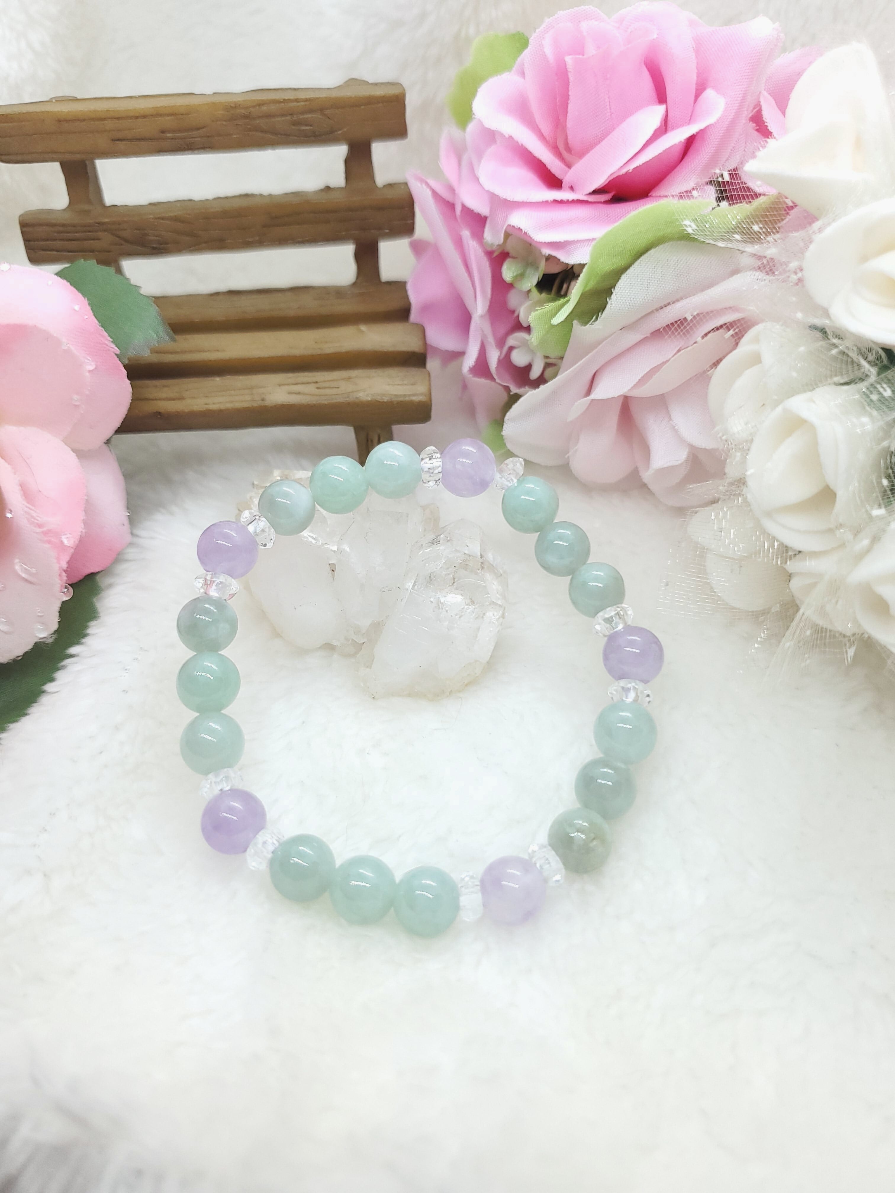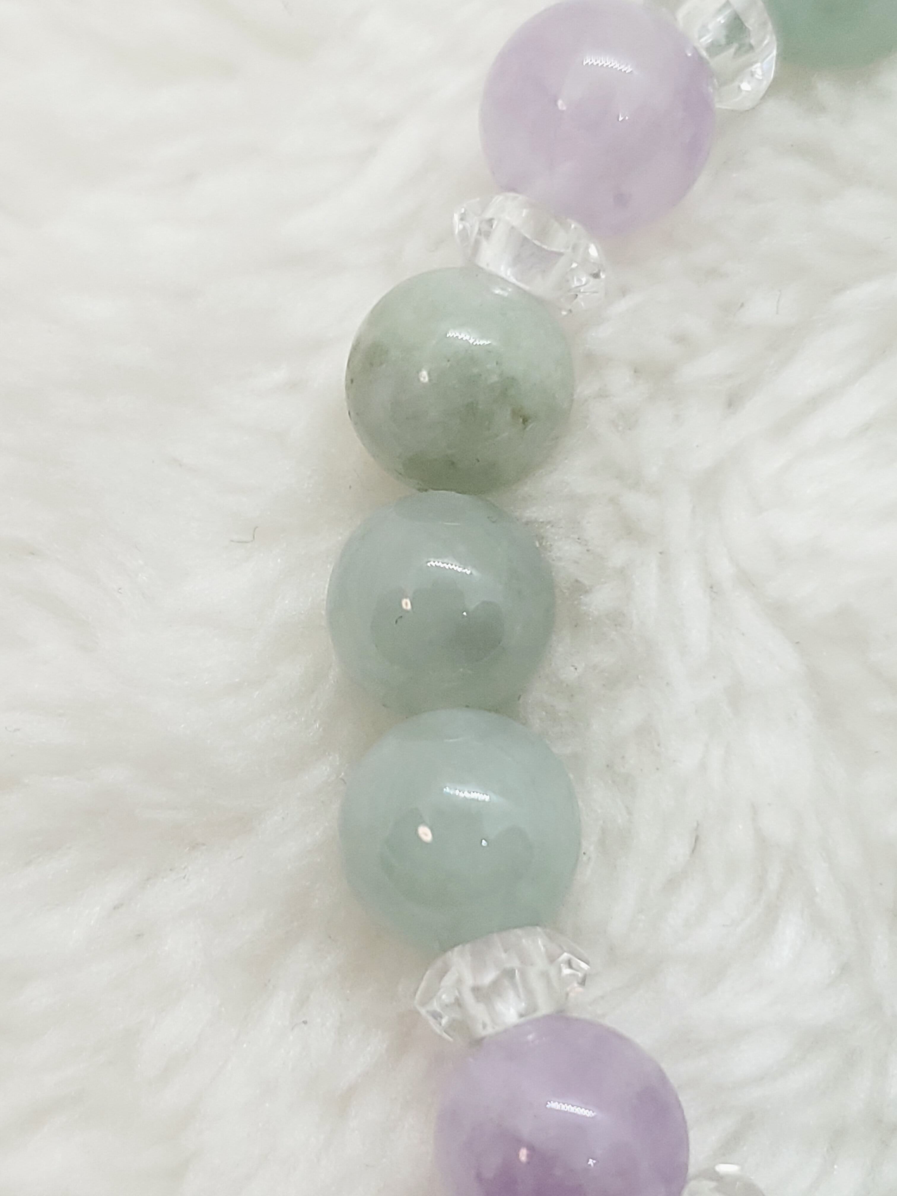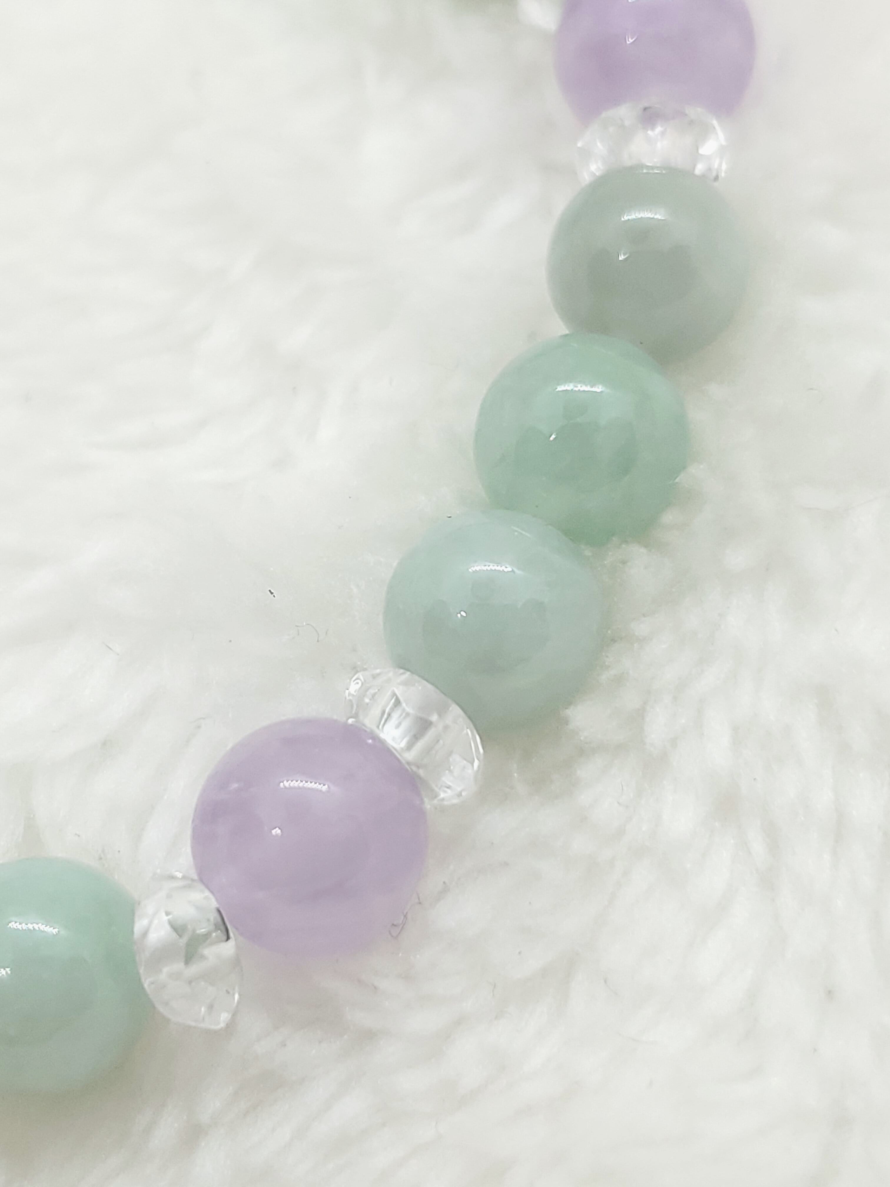 パステルカラーが美しいビルマ産翡翠と、ラベンダーアメジストの組み合わせです。