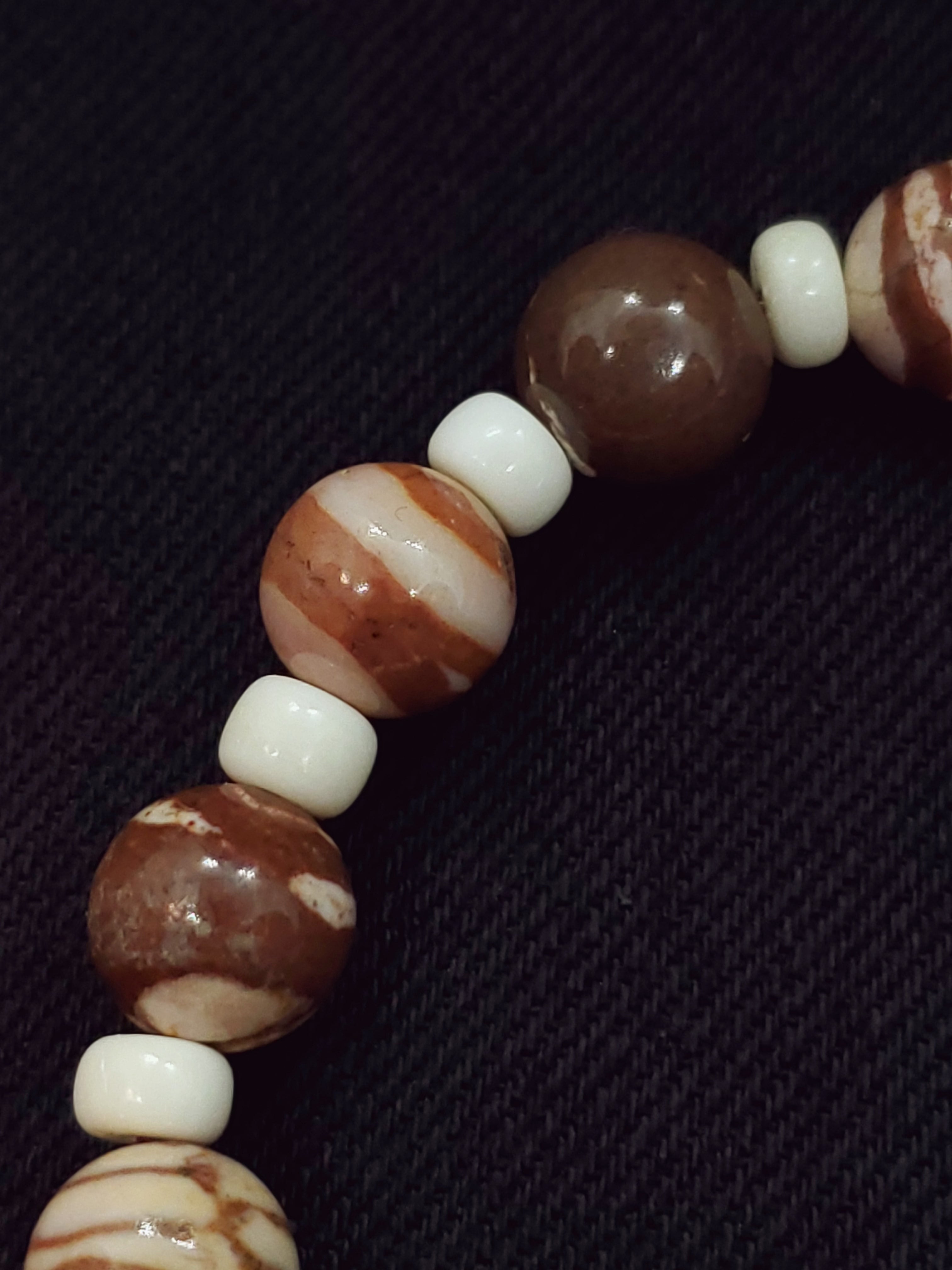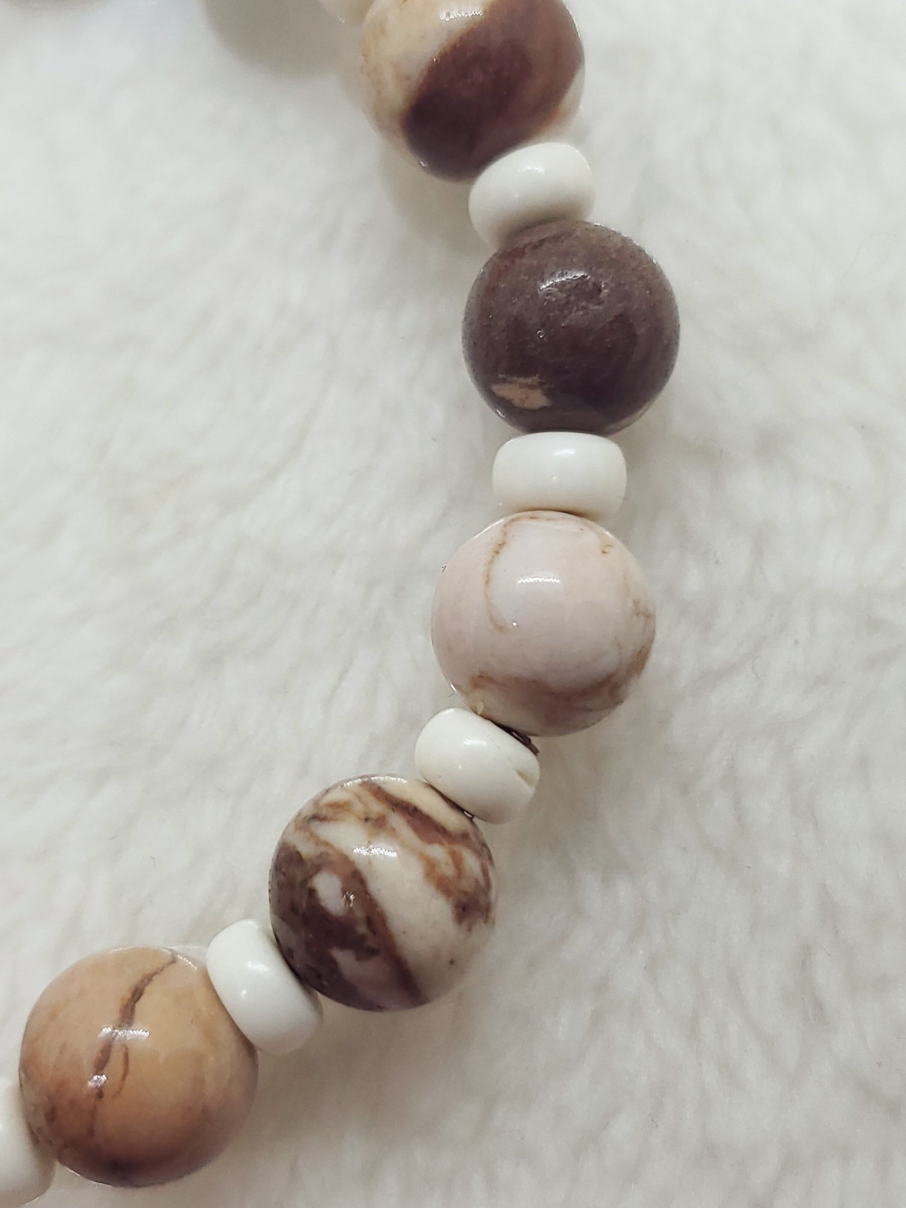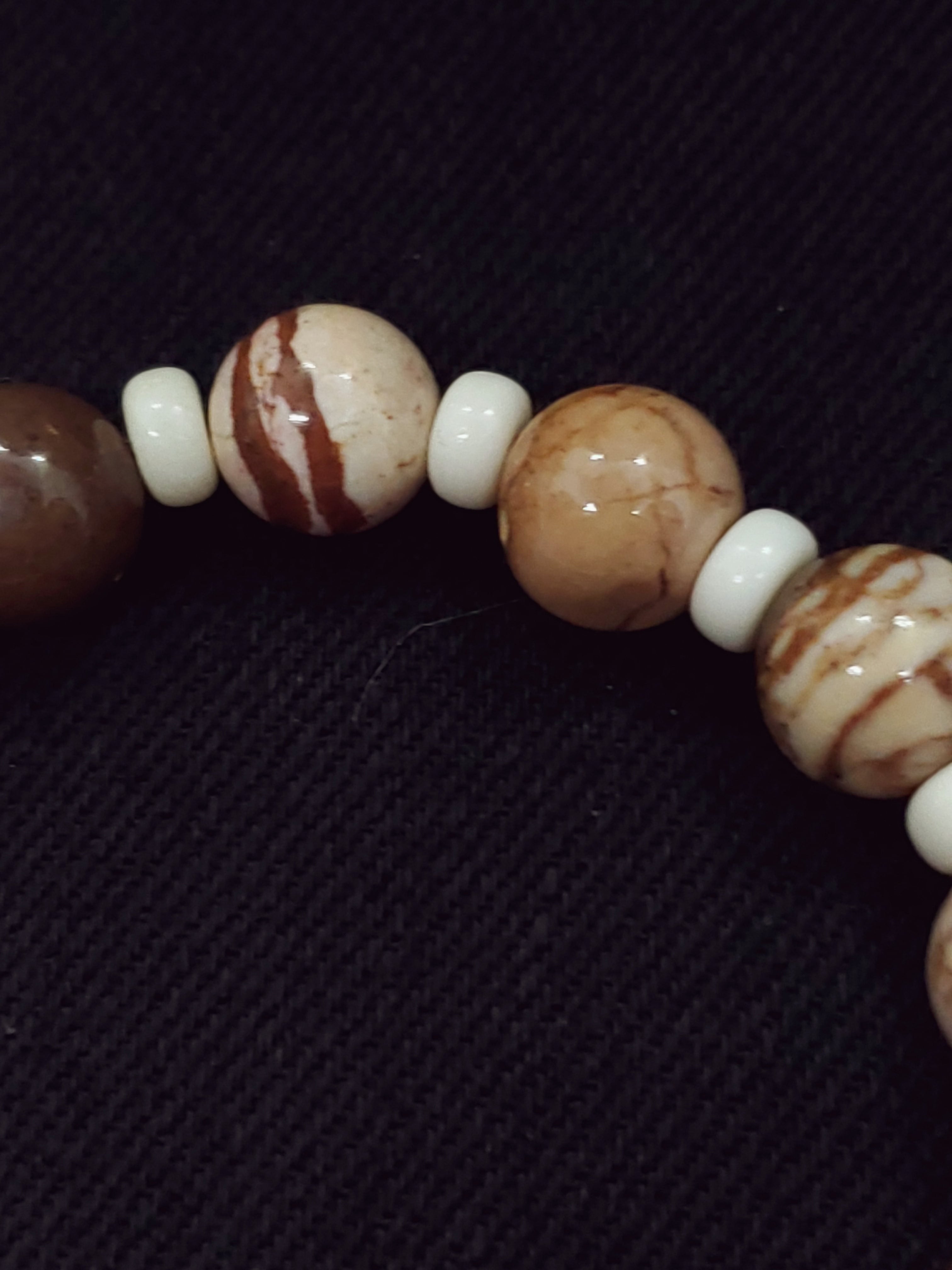 カプチーノのような柔らかいブラウンカラーが特徴のジャスパーと、バッファローボーン(骨)の組み合わせです。