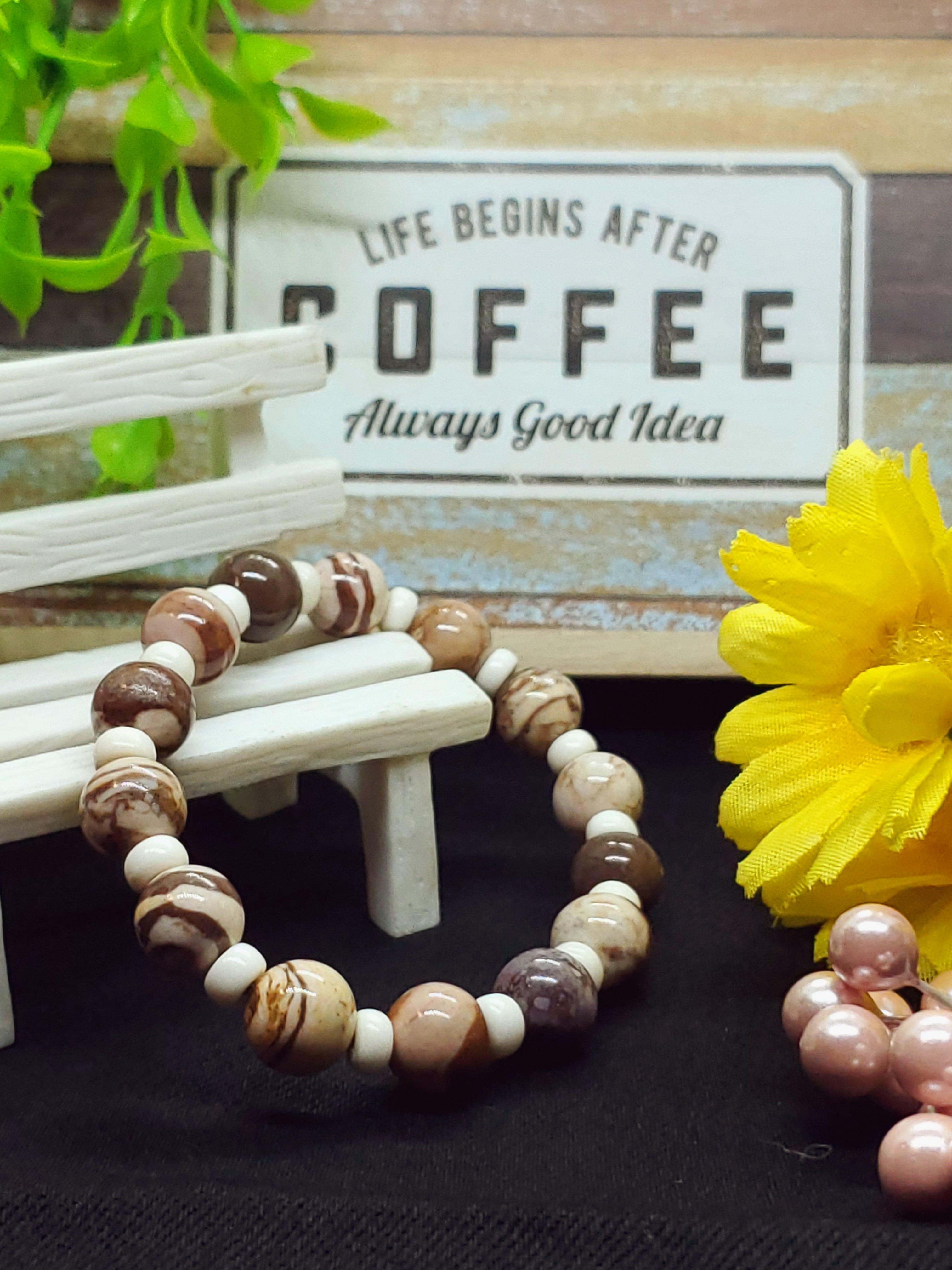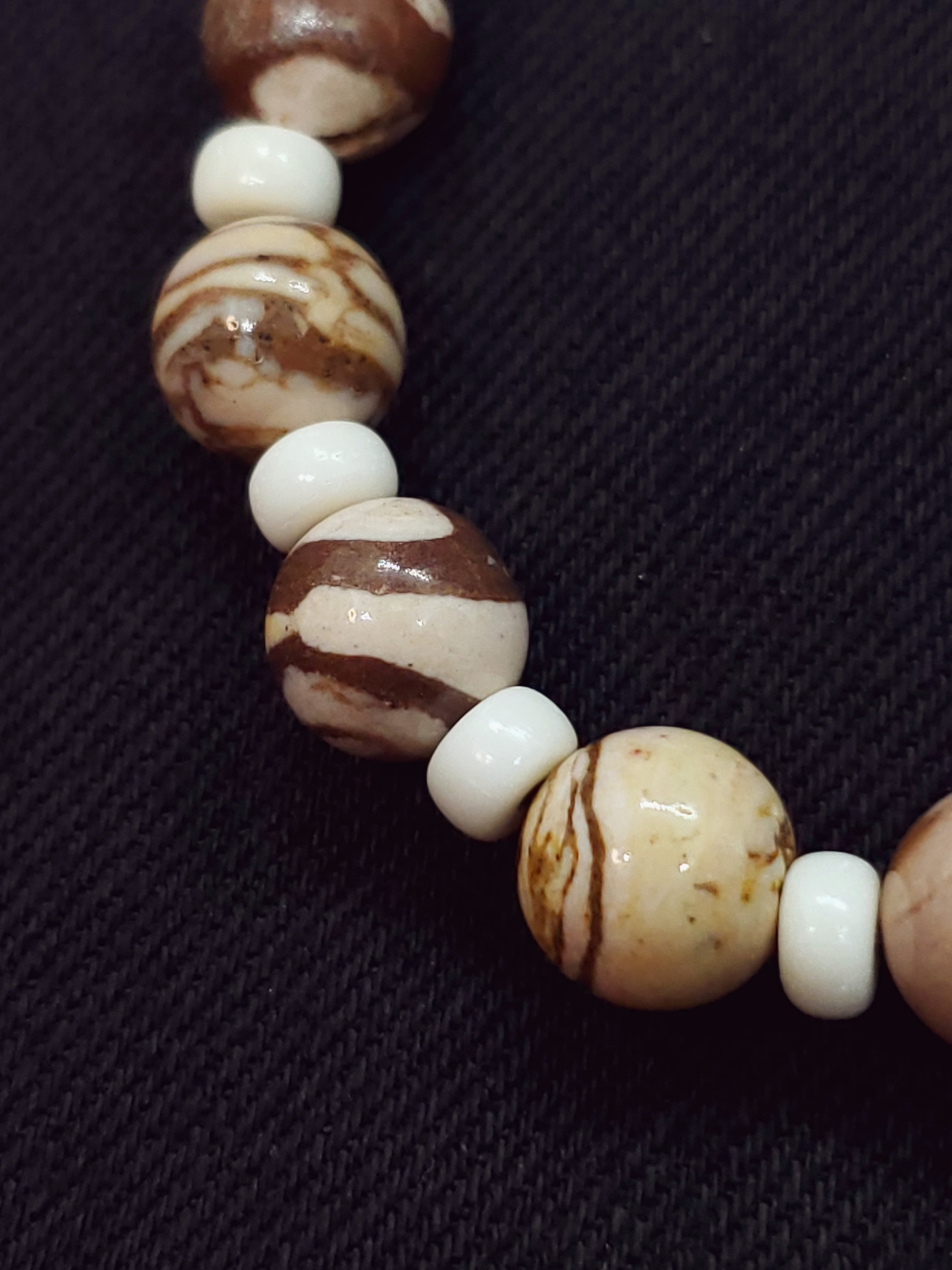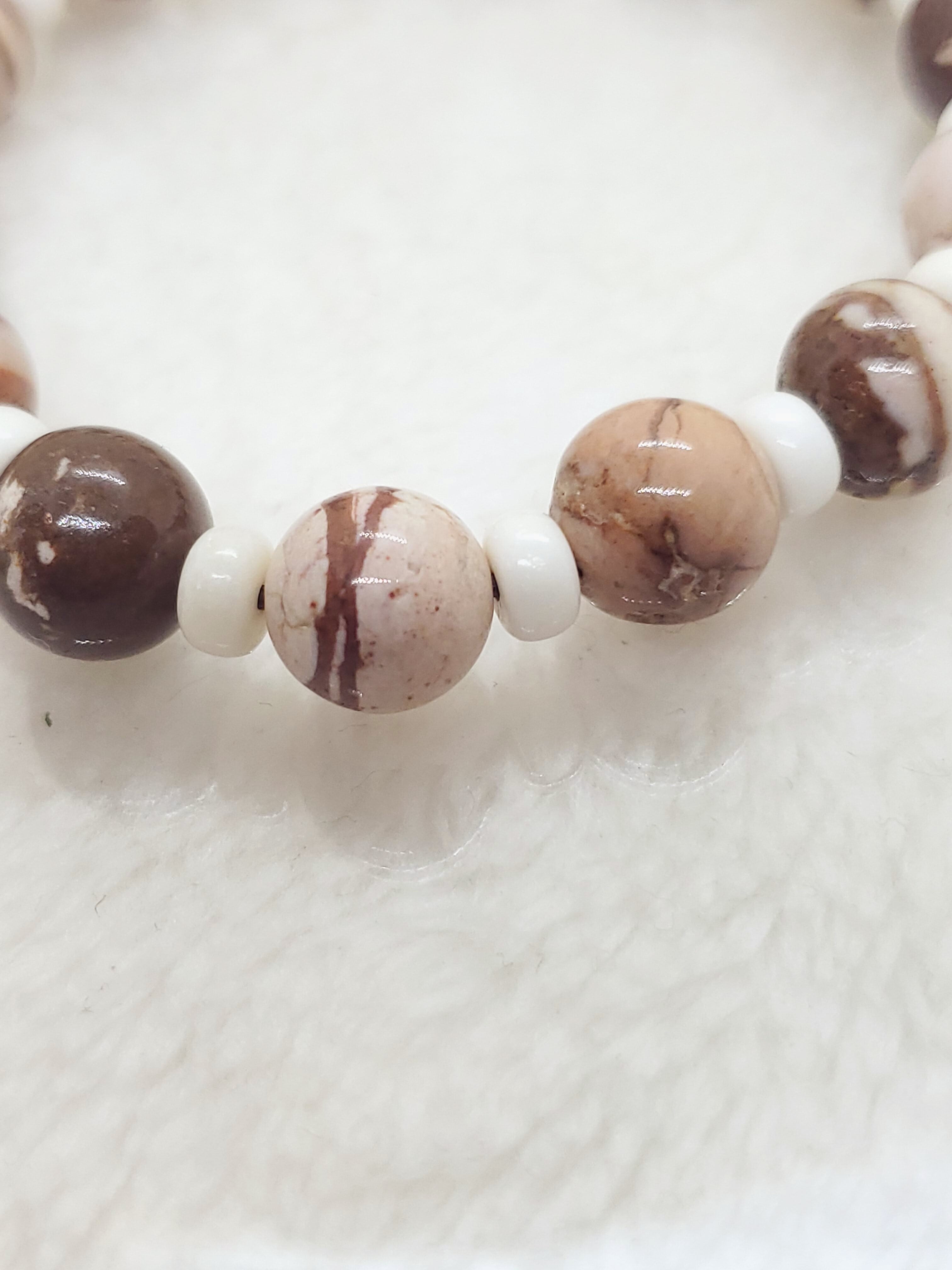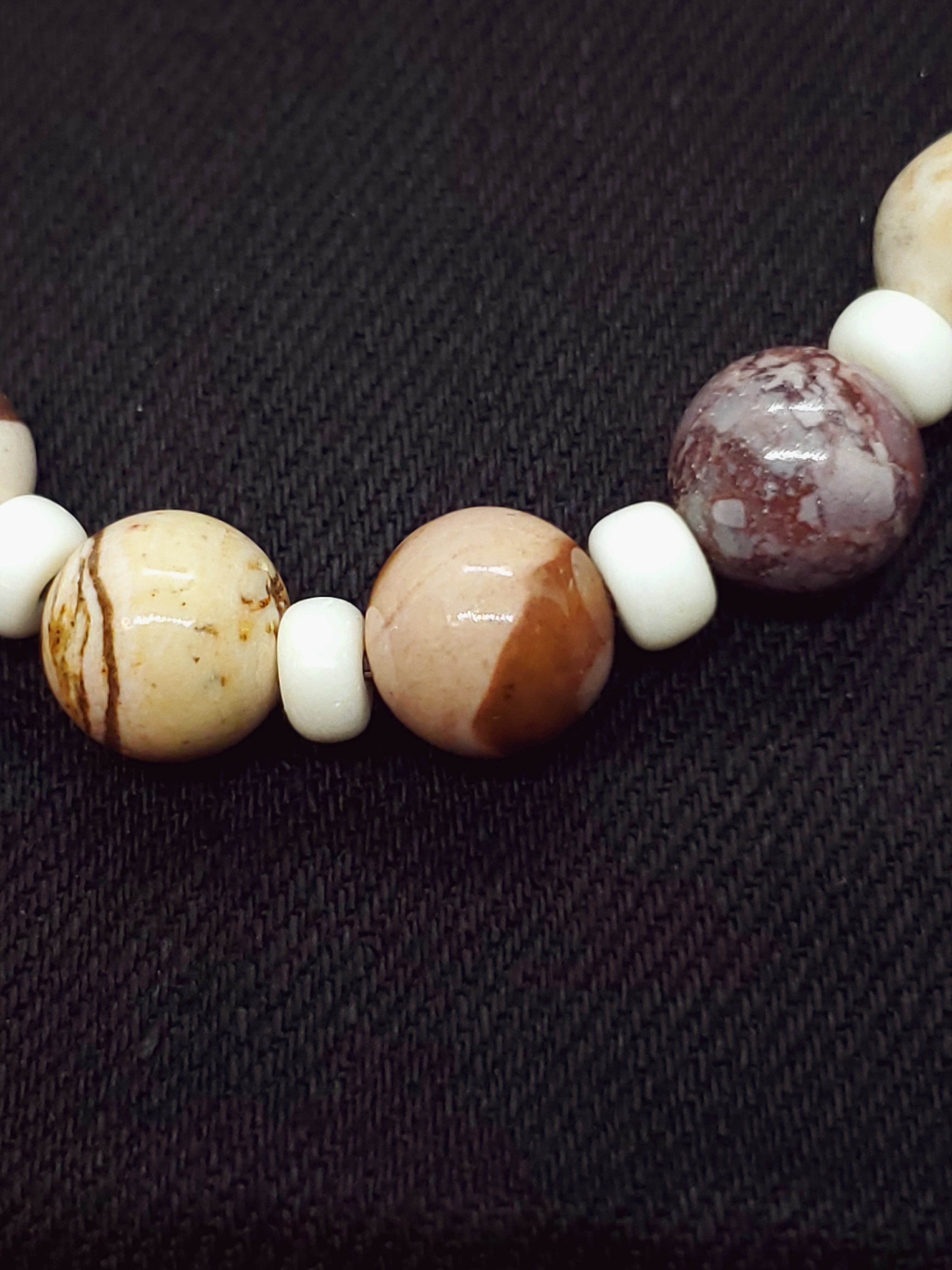 カプチーノのような柔らかいブラウンカラーが特徴のジャスパーと、バッファローボーン(骨)の組み合わせです。