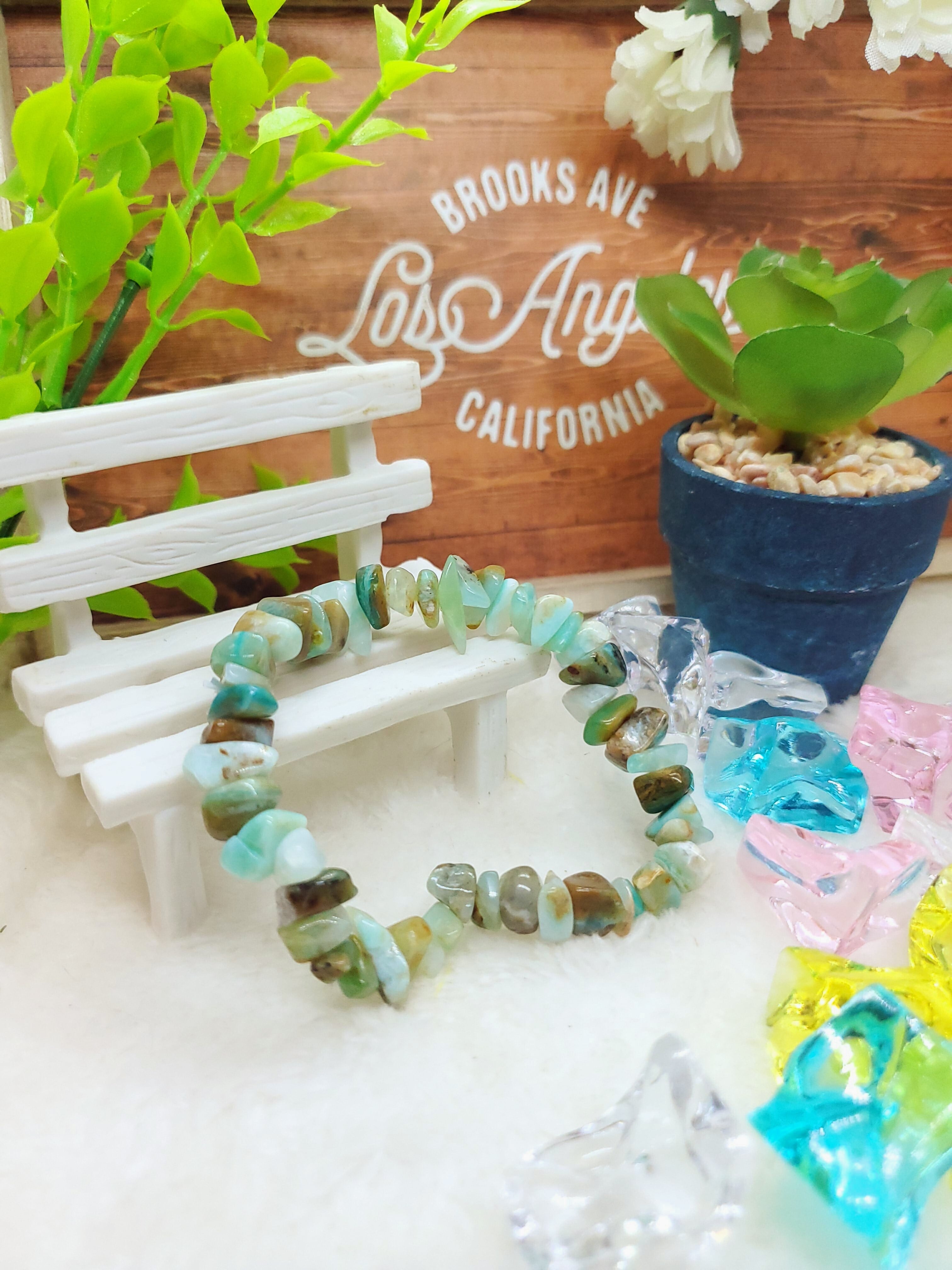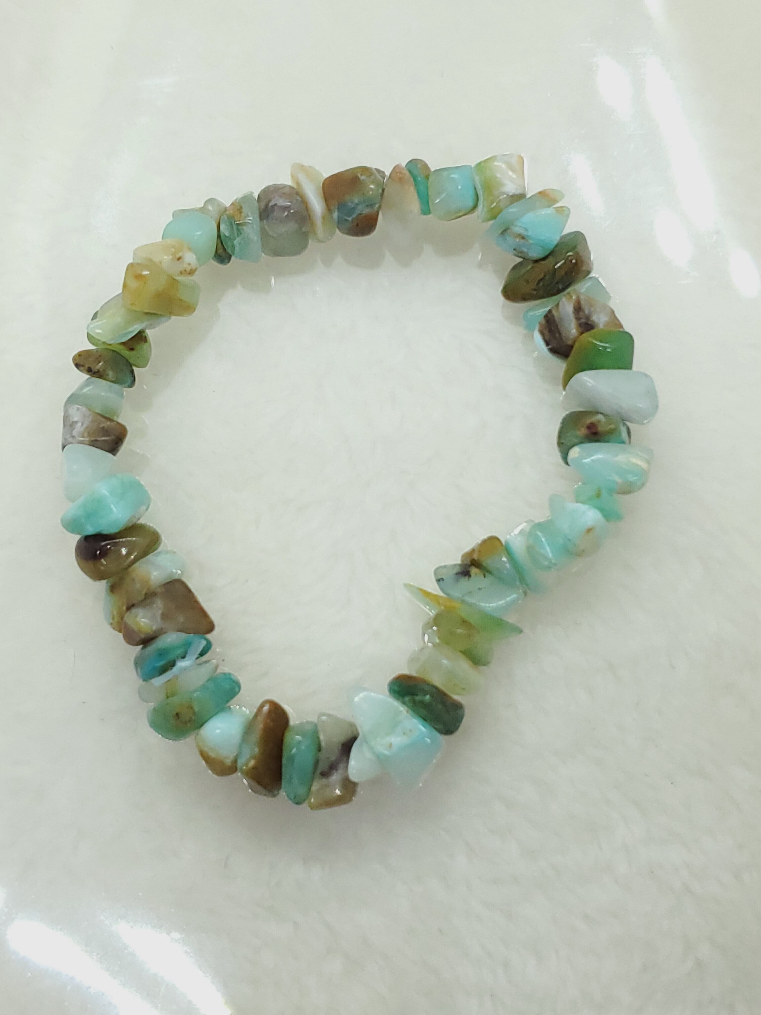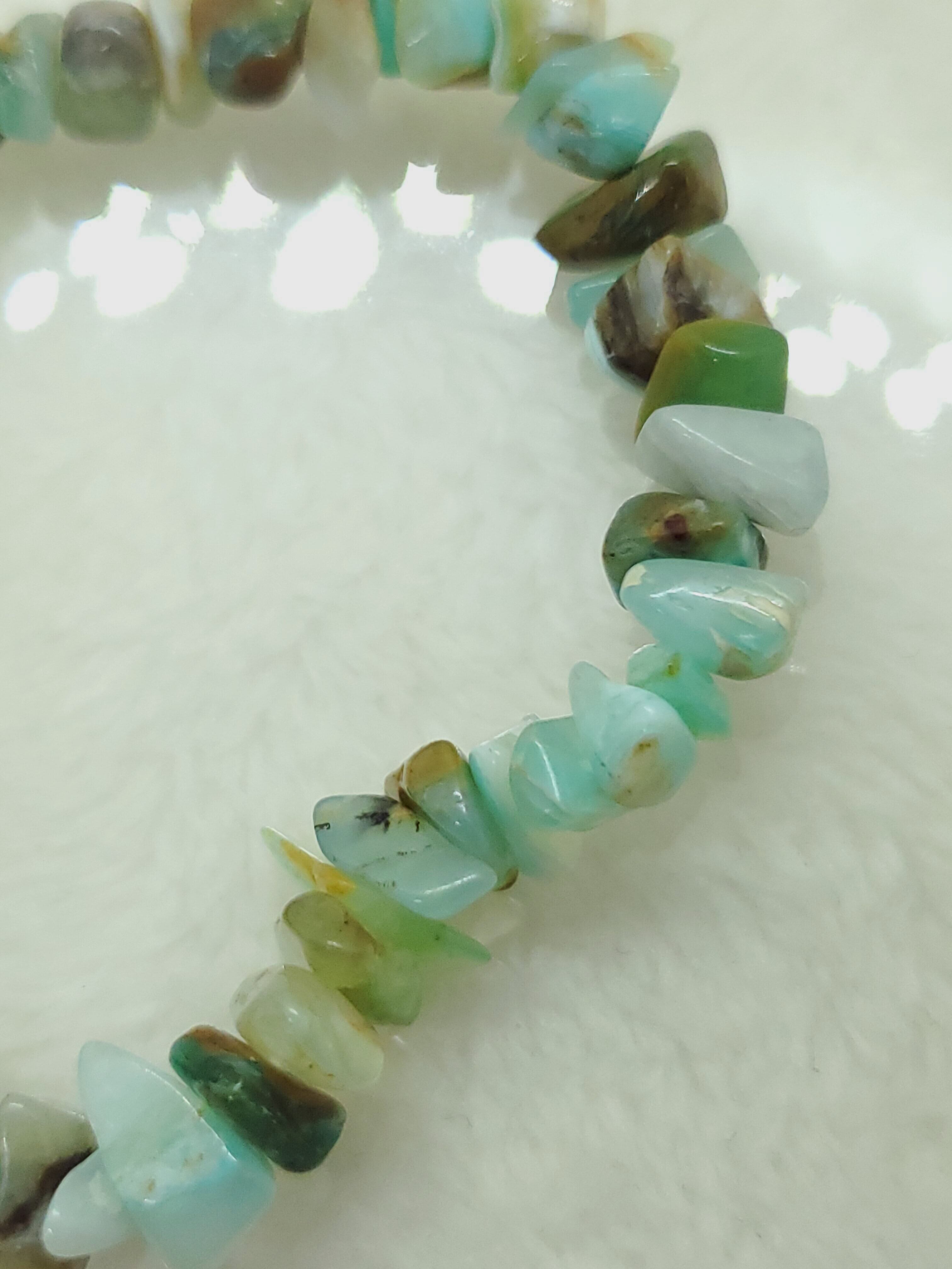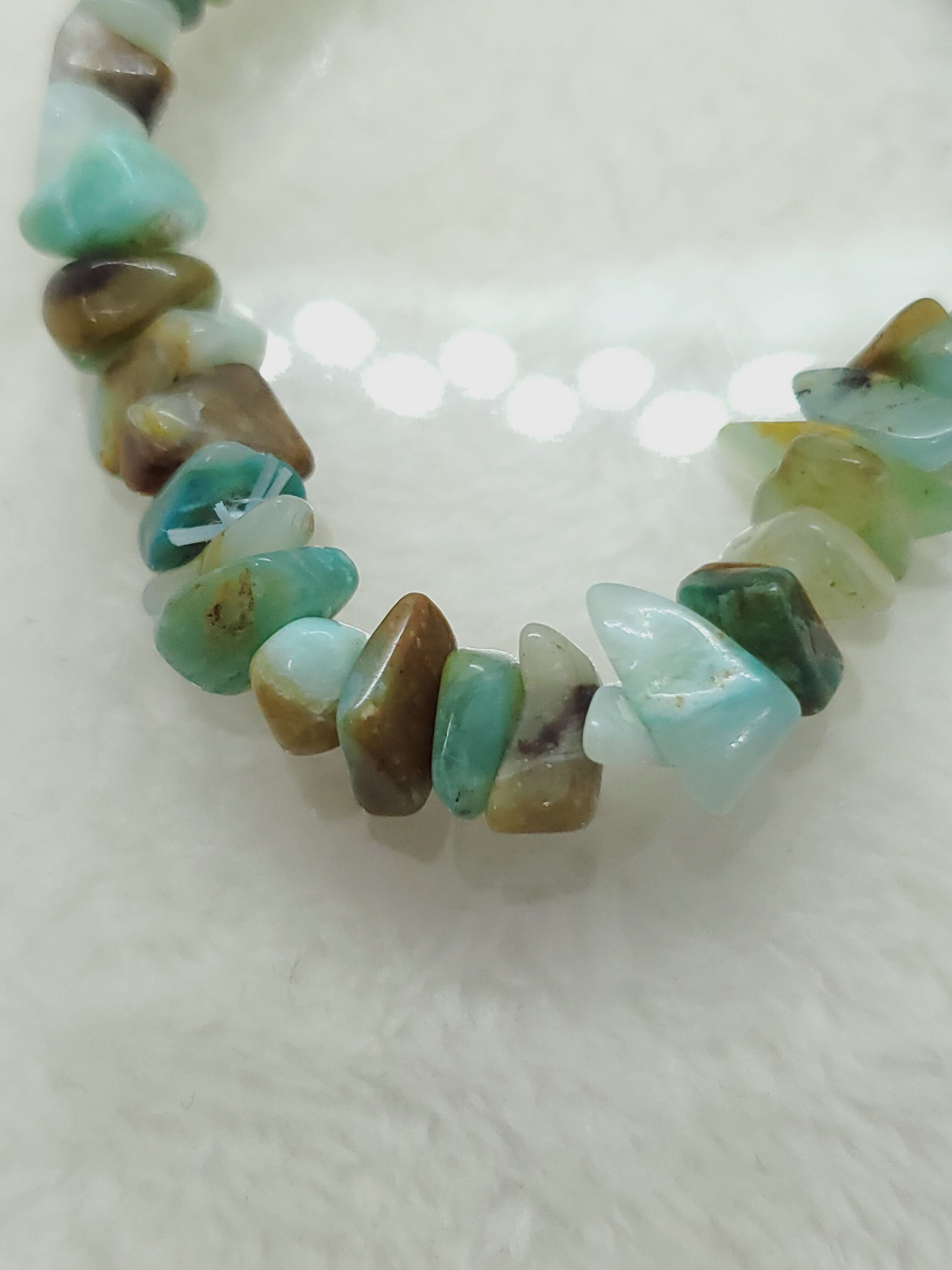 【10月誕生石】ブルーコモンオパール(ペルー産) ミニチップ(さざれ)ブレスレット BR-S-059