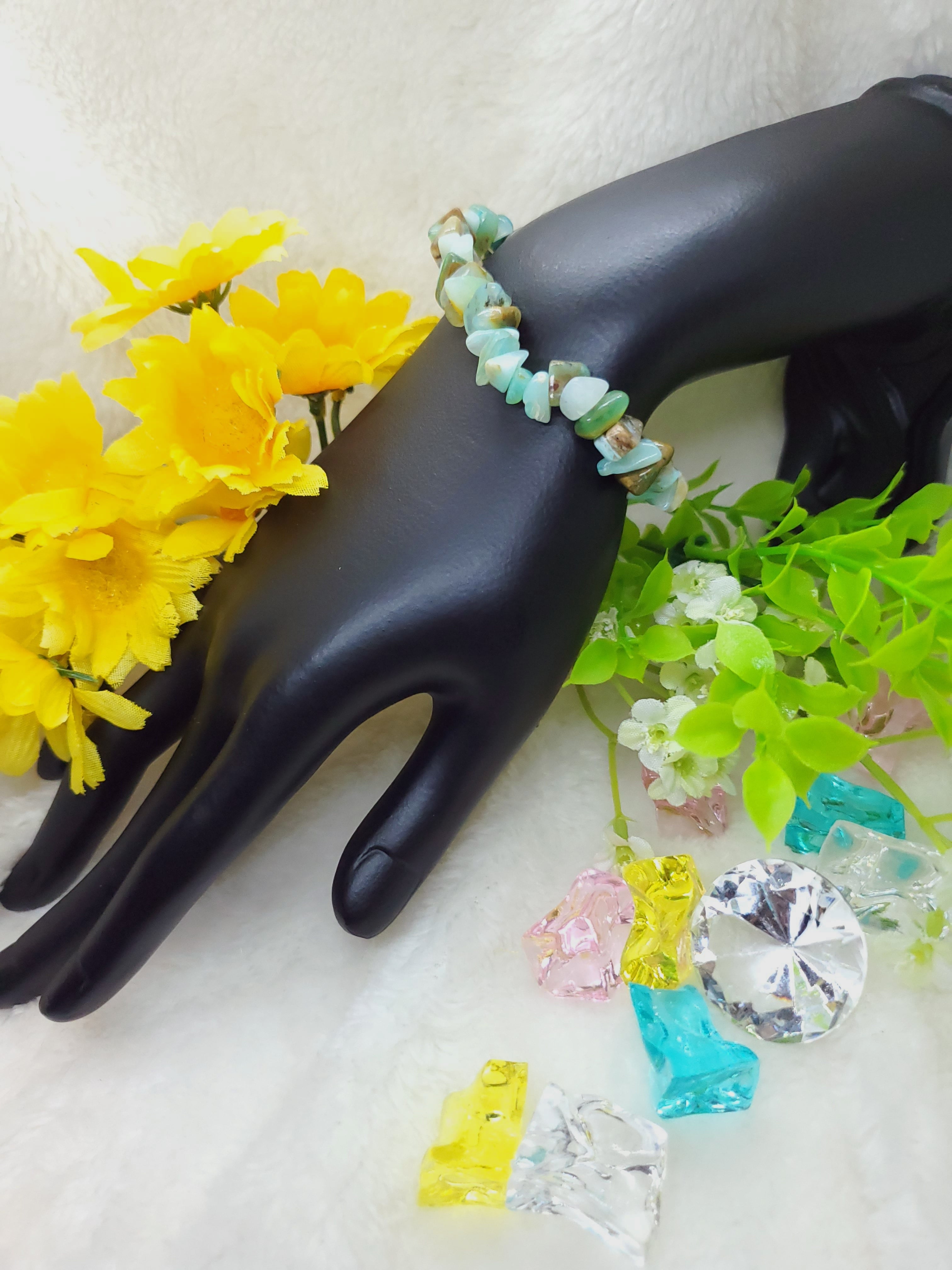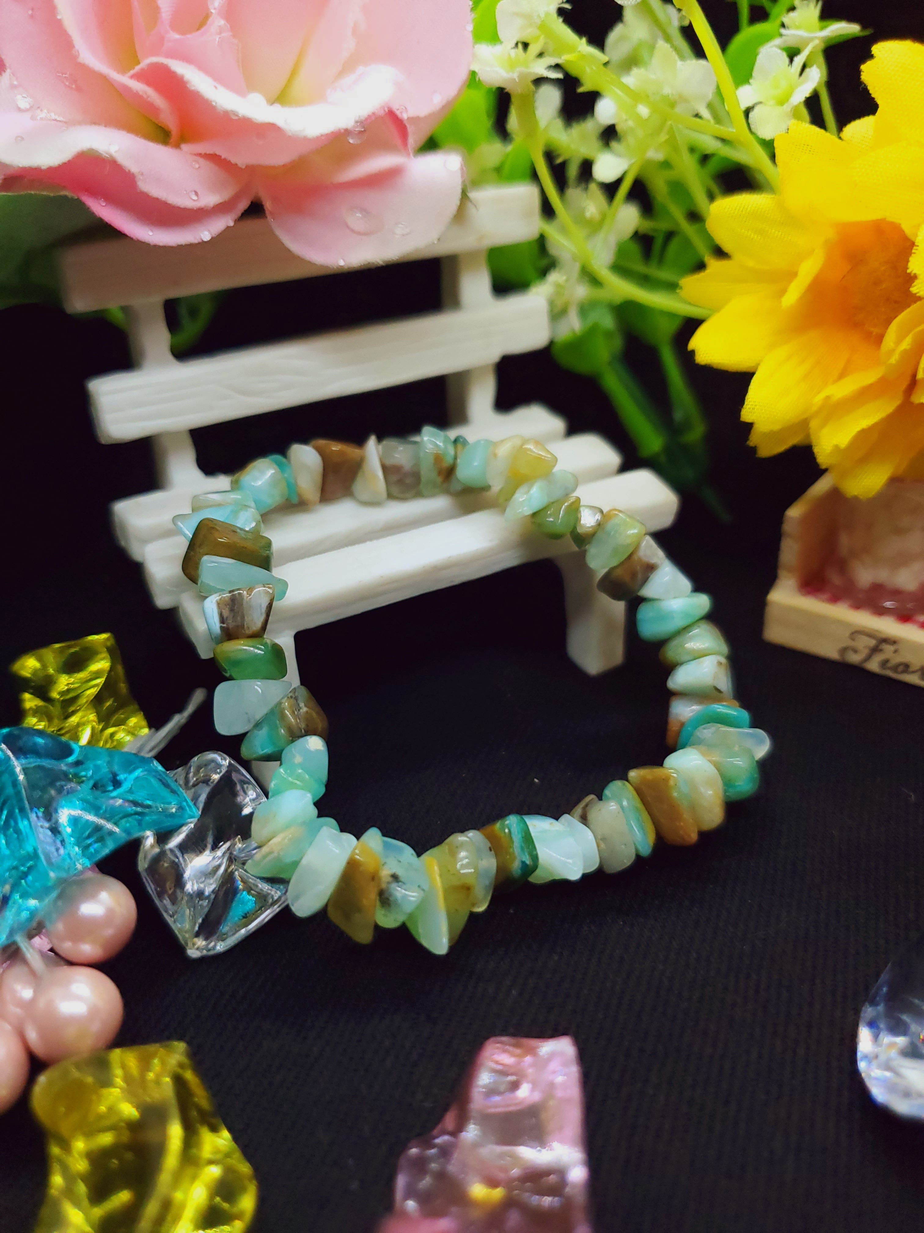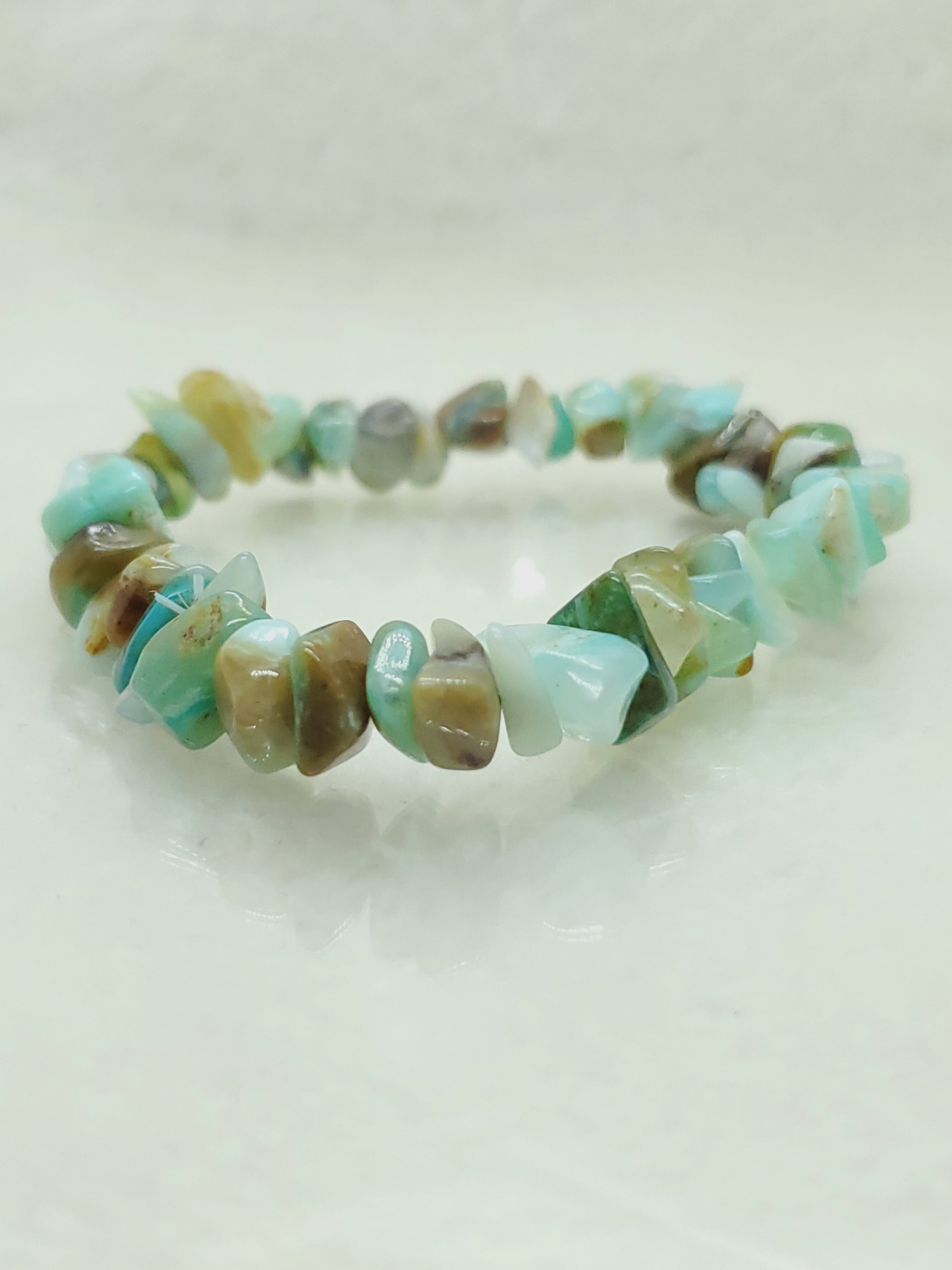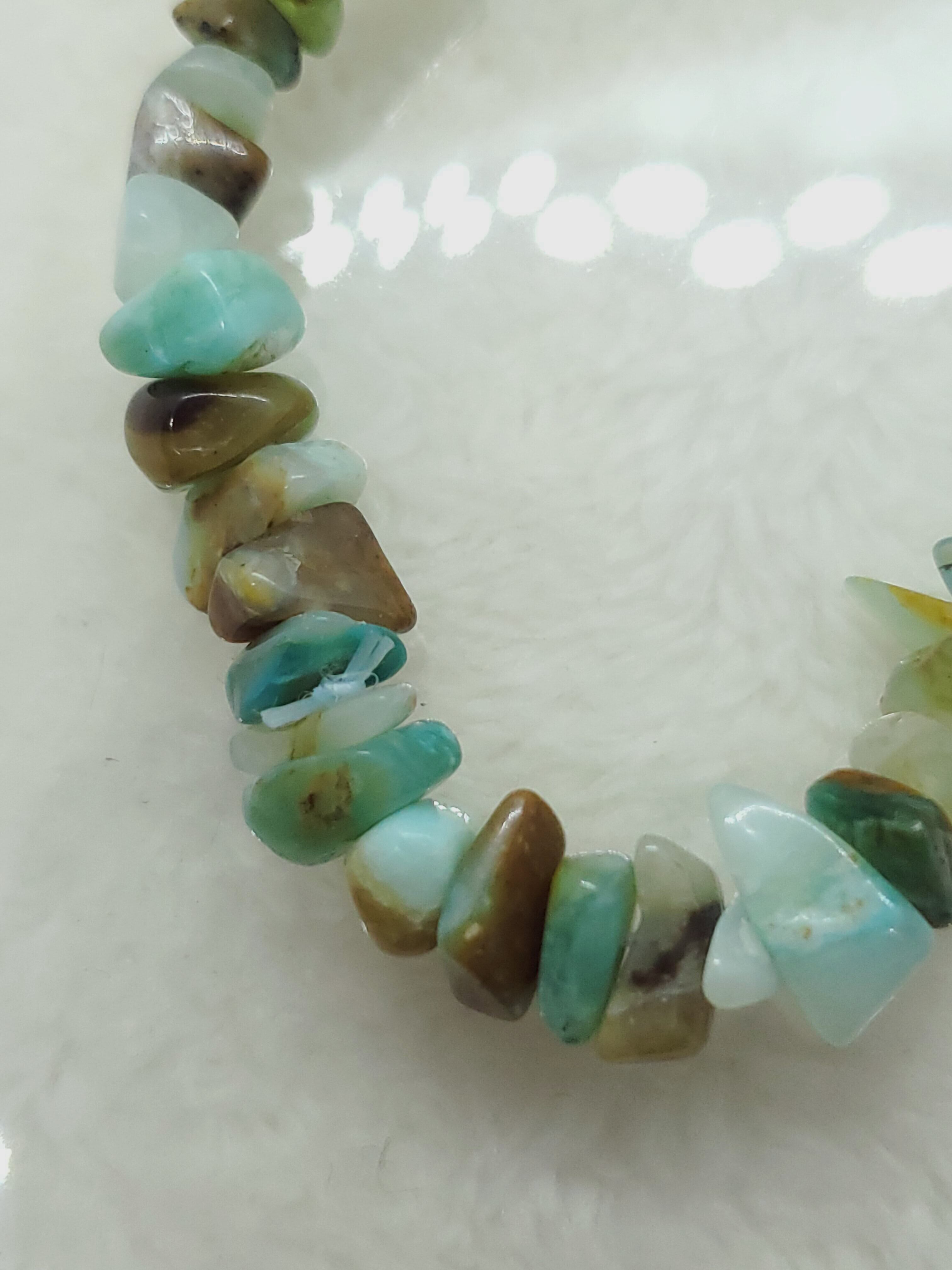 【10月誕生石】ブルーコモンオパール(ペルー産) ミニチップ(さざれ)ブレスレット BR-S-059