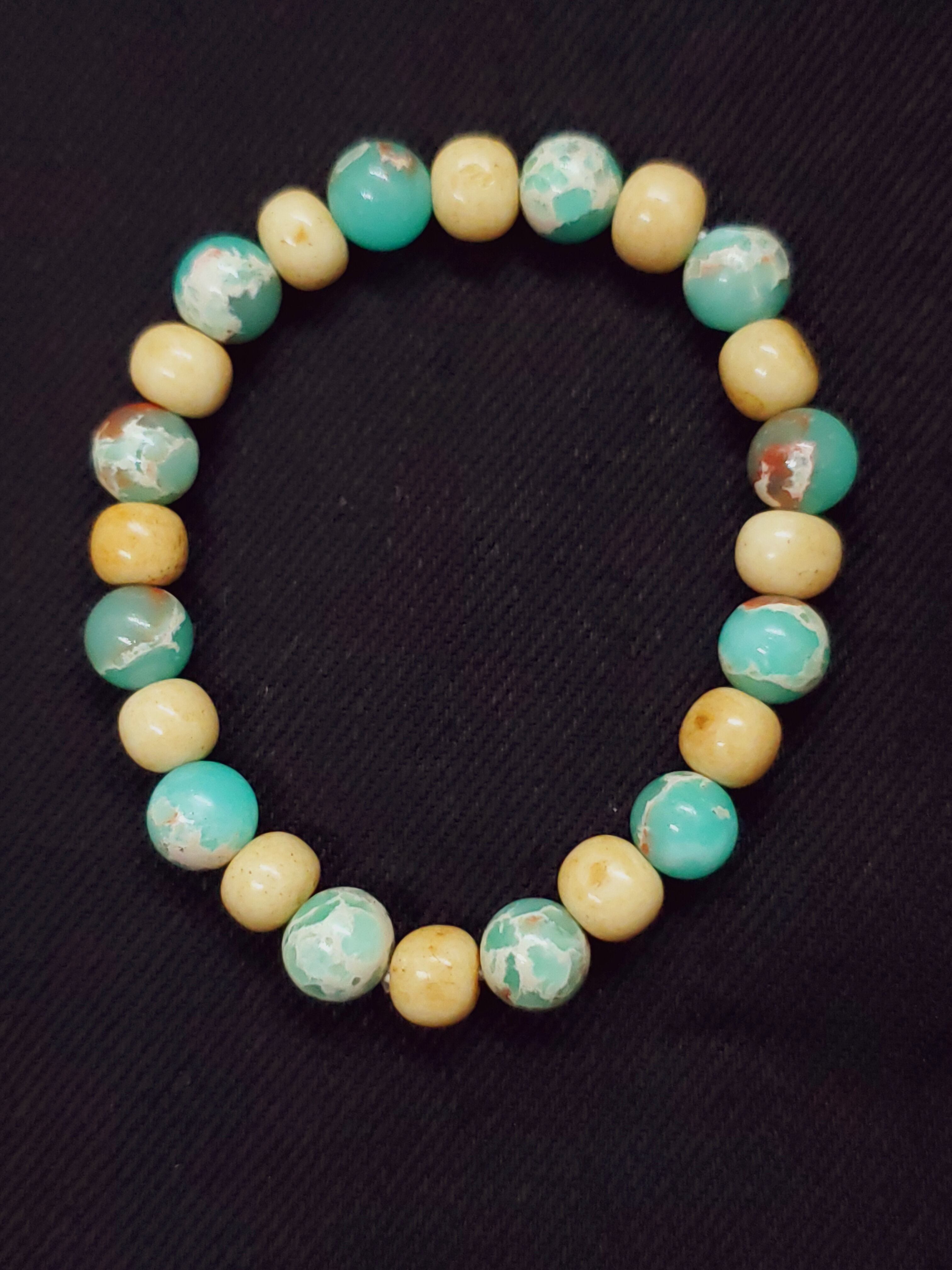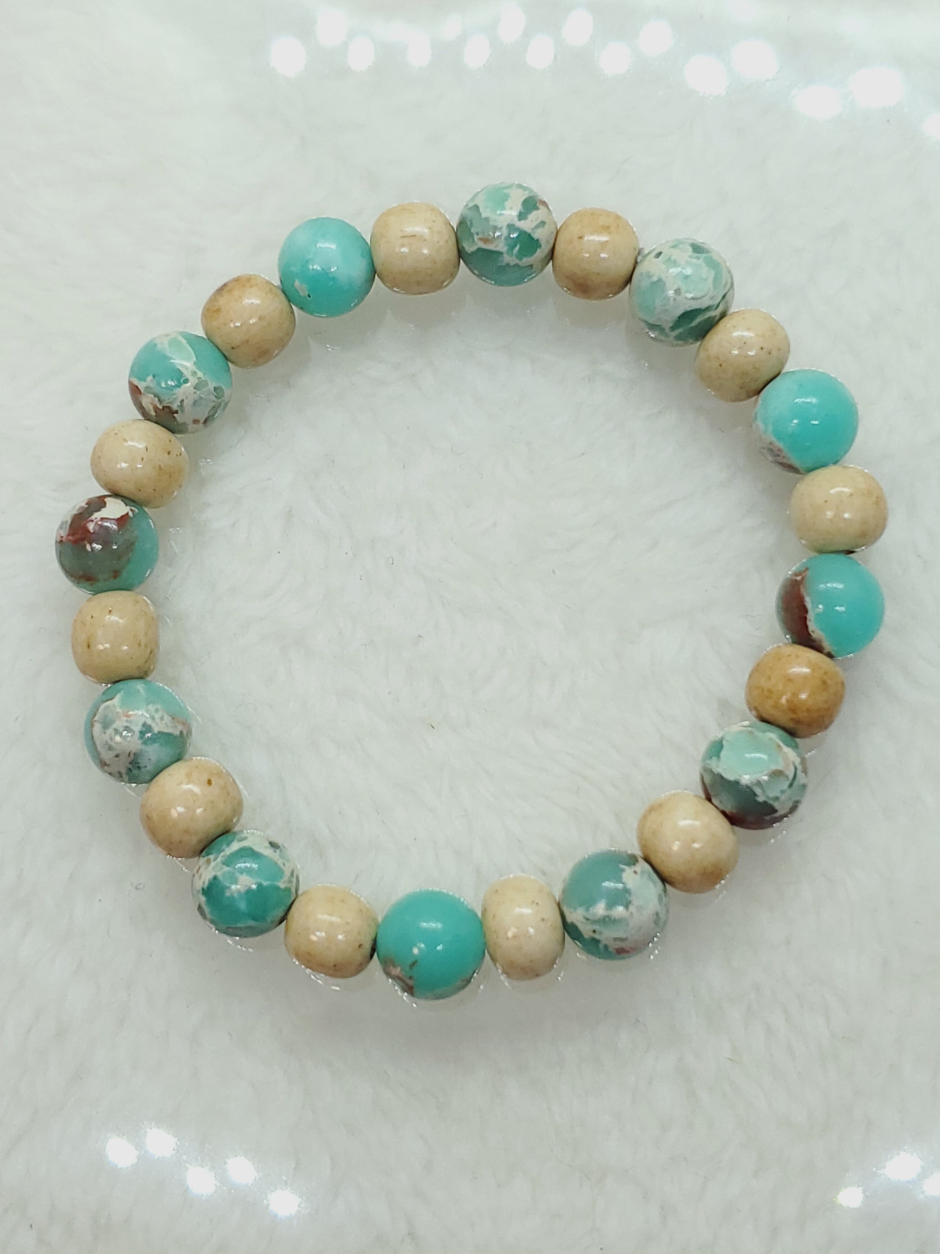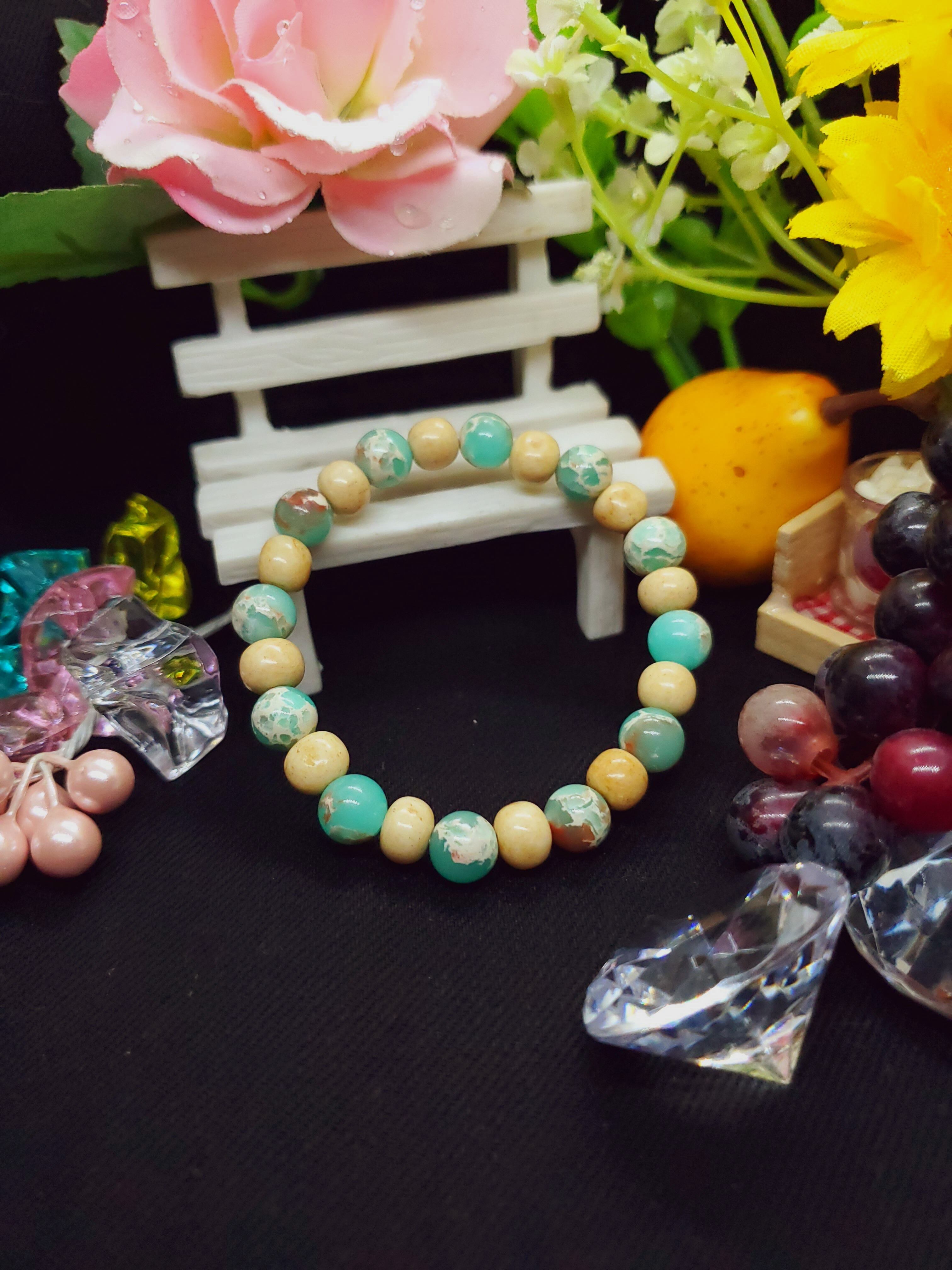天然のカオリン(ハロイサイト)を可愛らしい色に染色したブレスレットです