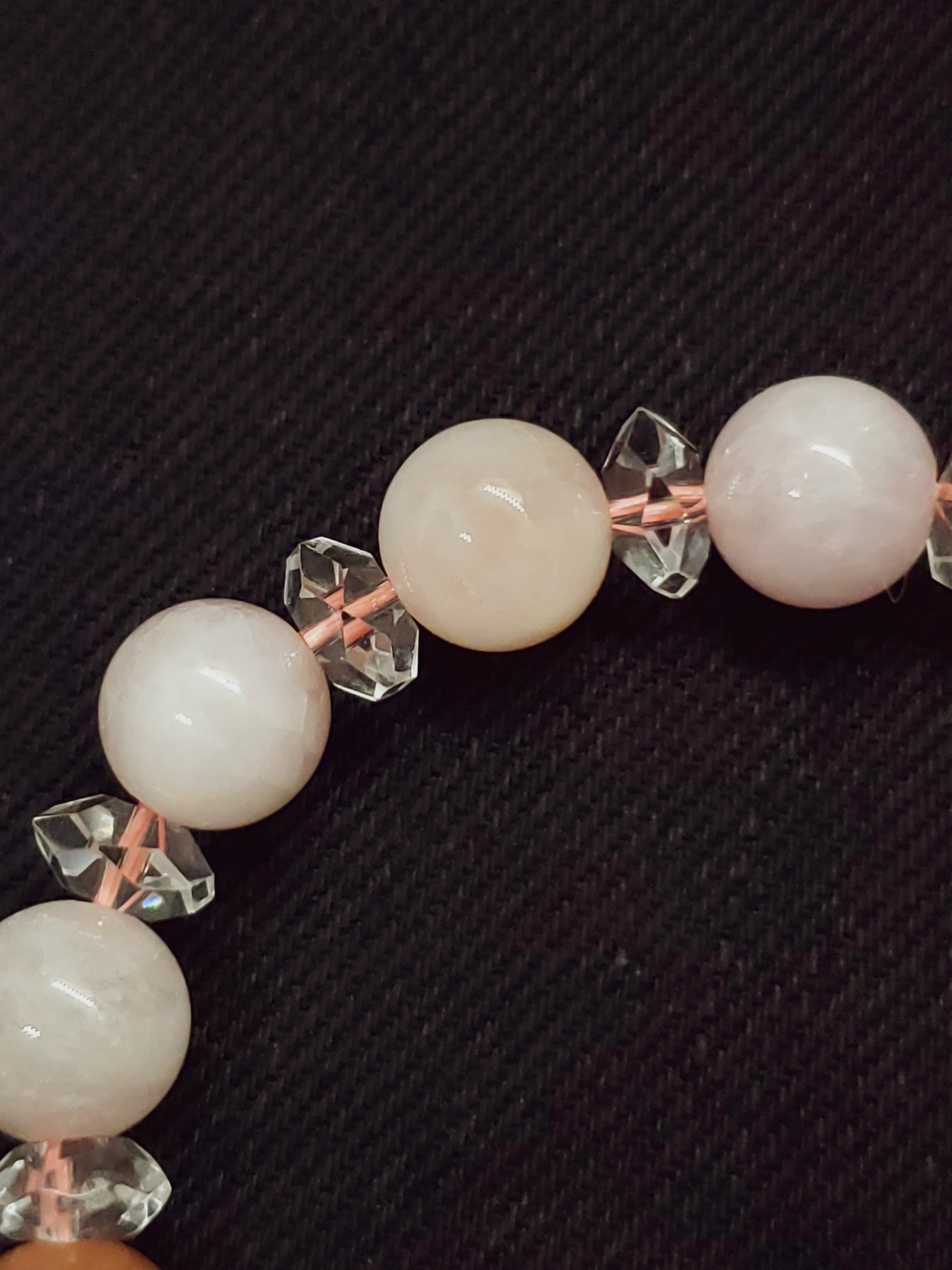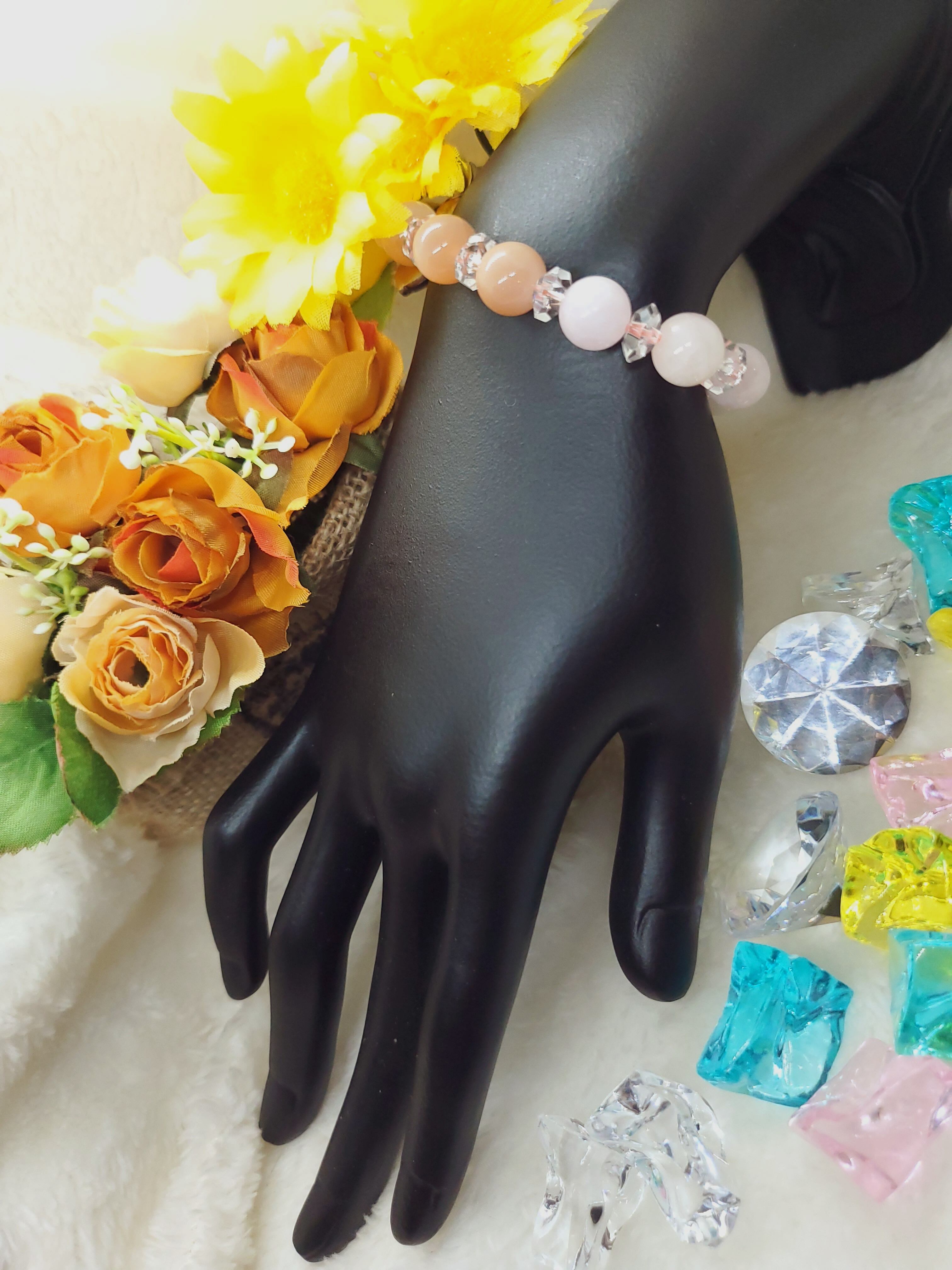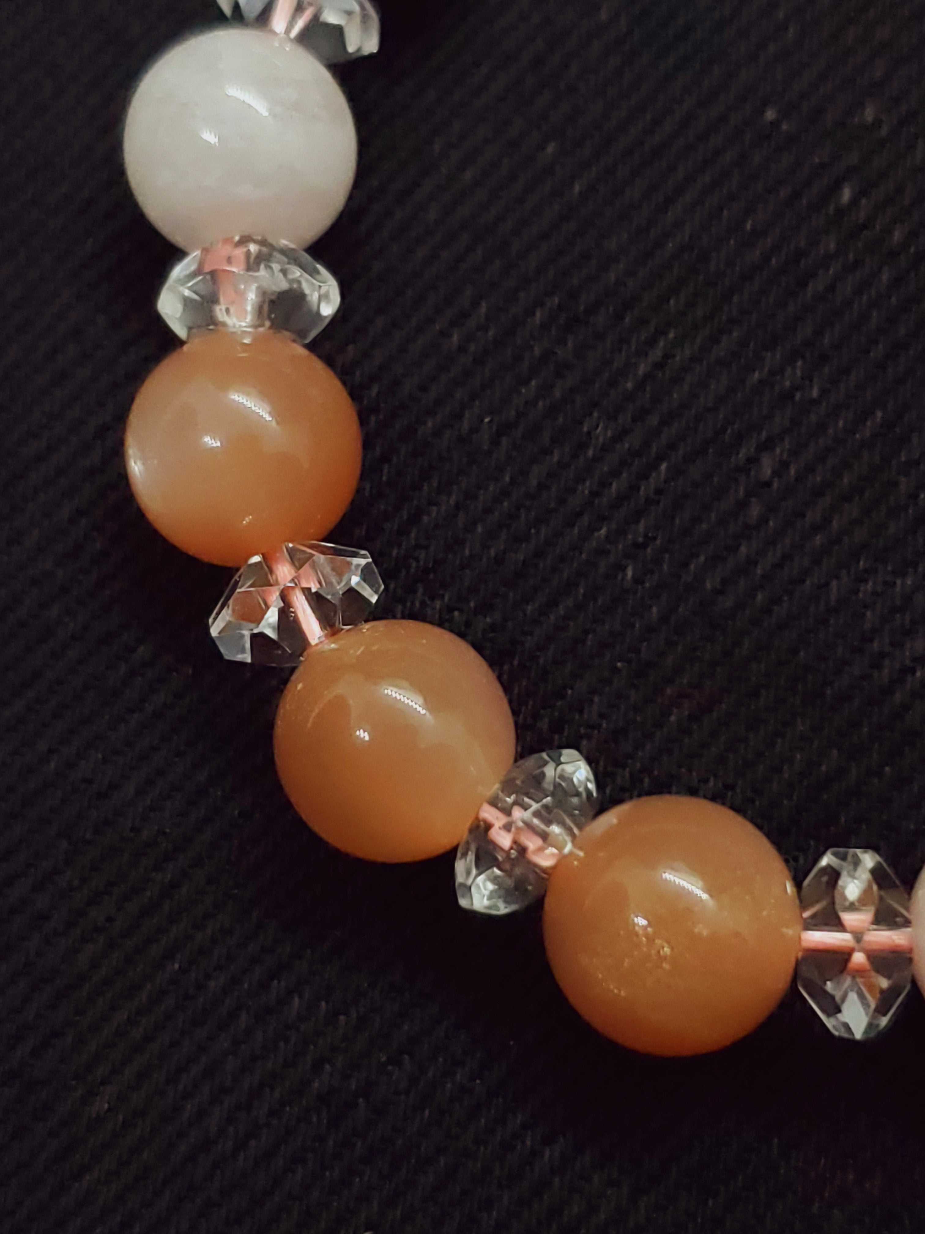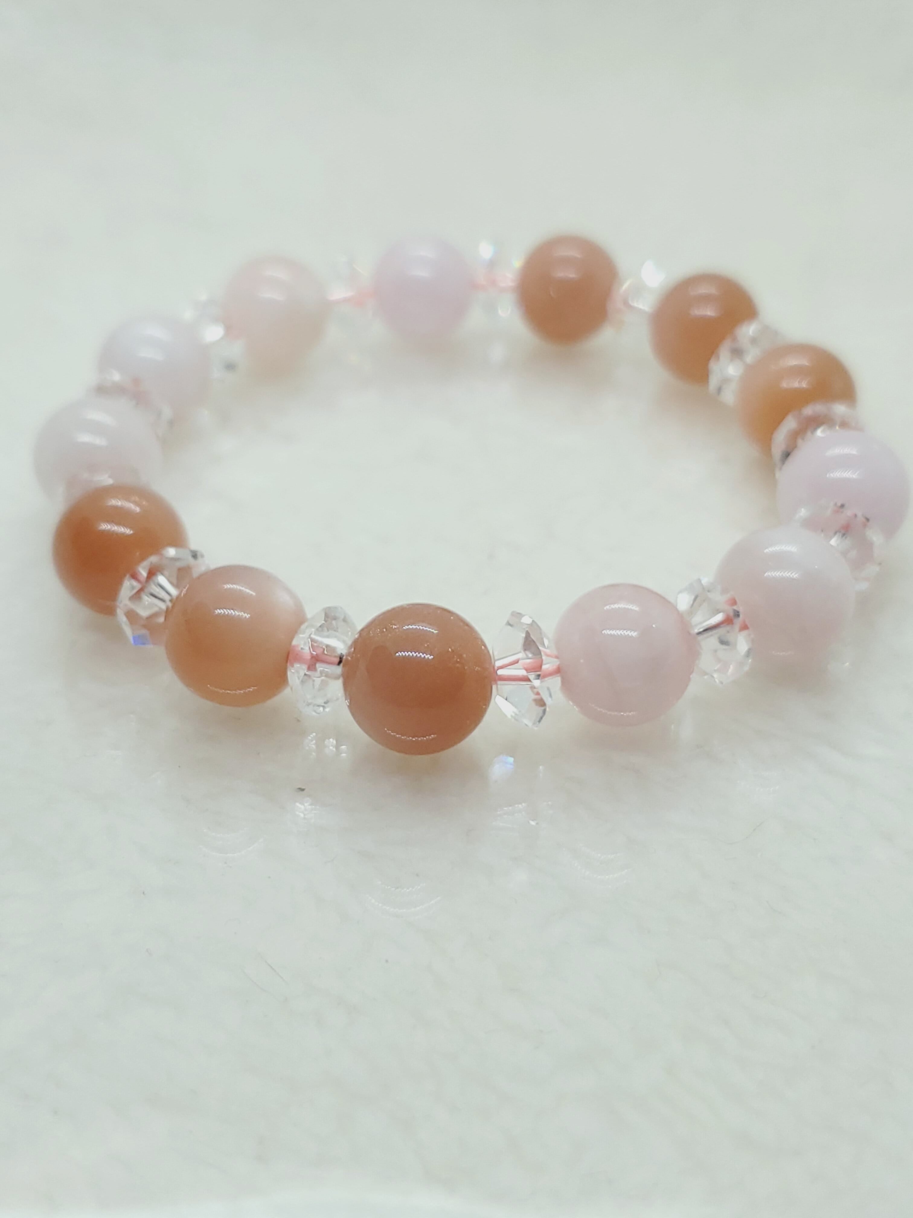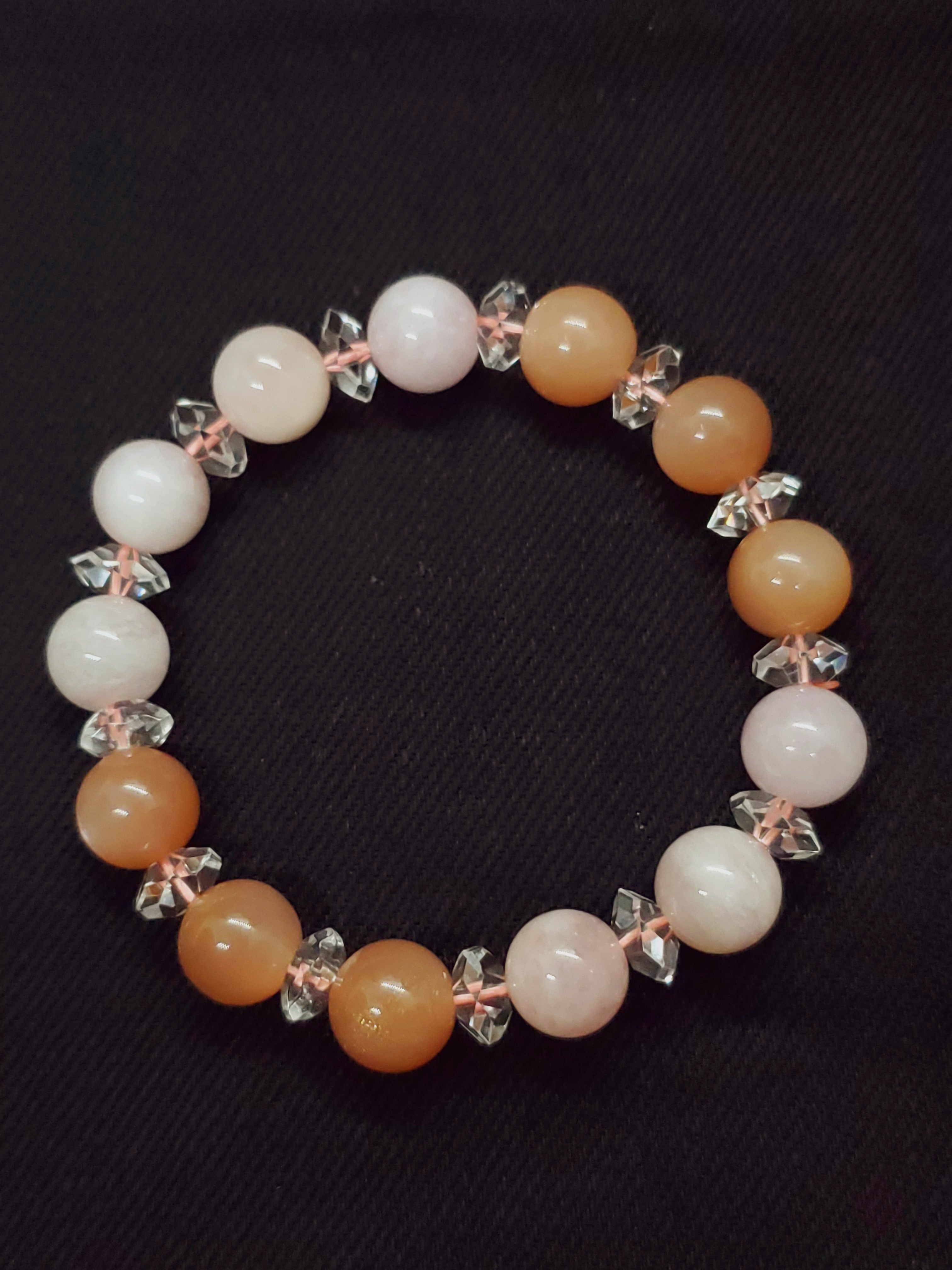 明るいピンクカラーが可愛いモルガナイトと、しっとり系カラーのオレンジムーンストーンのブレスレットです!