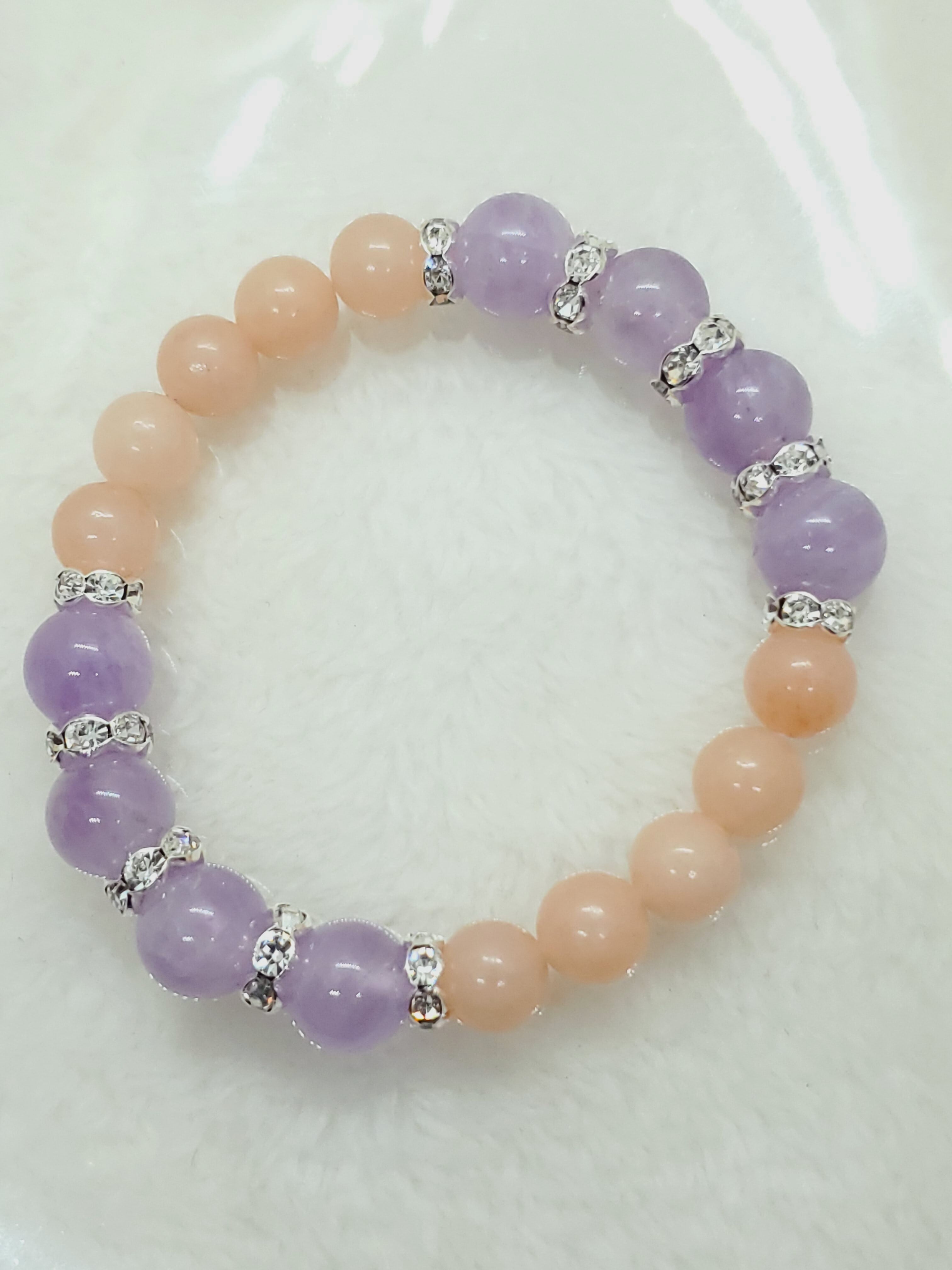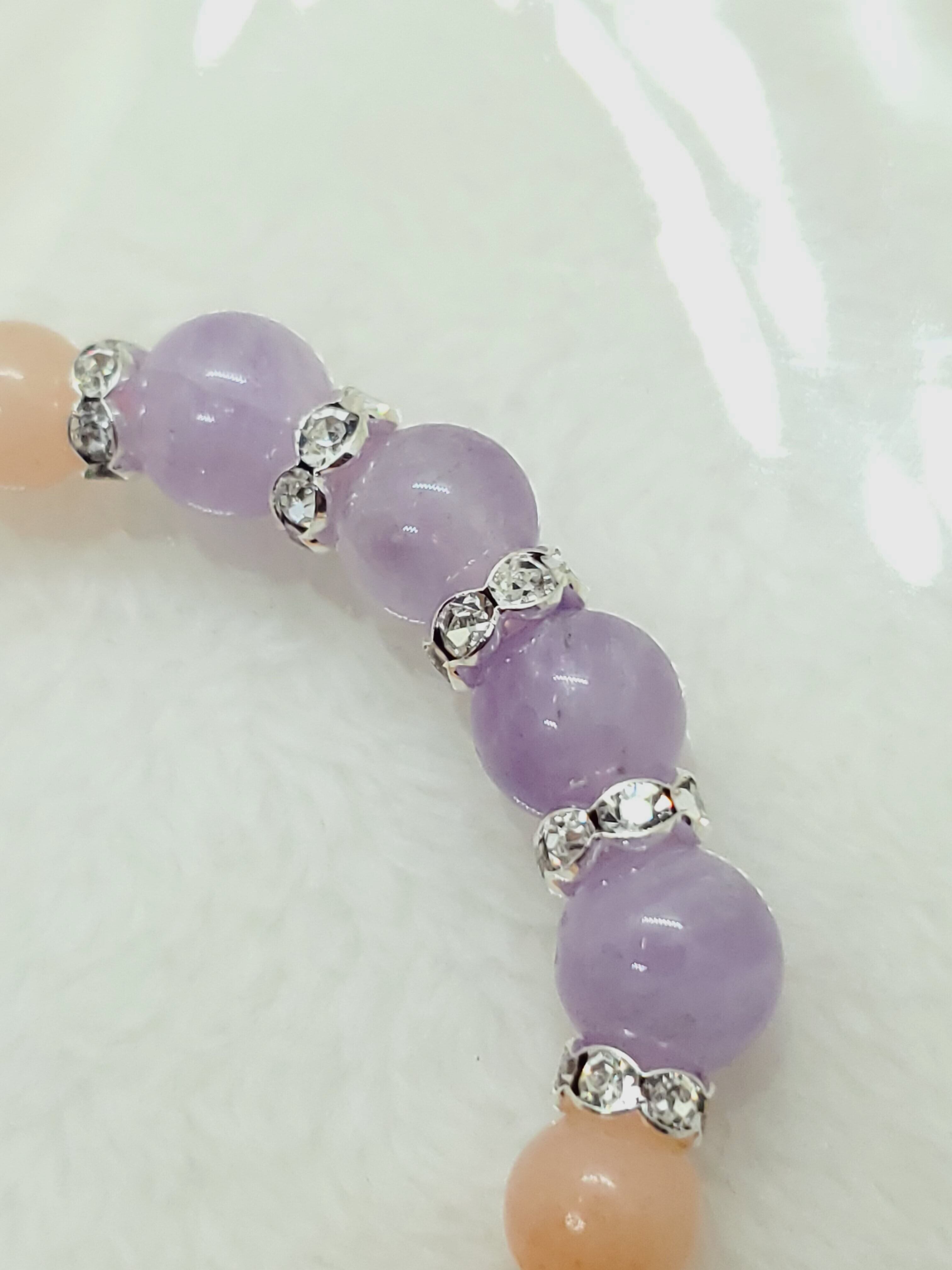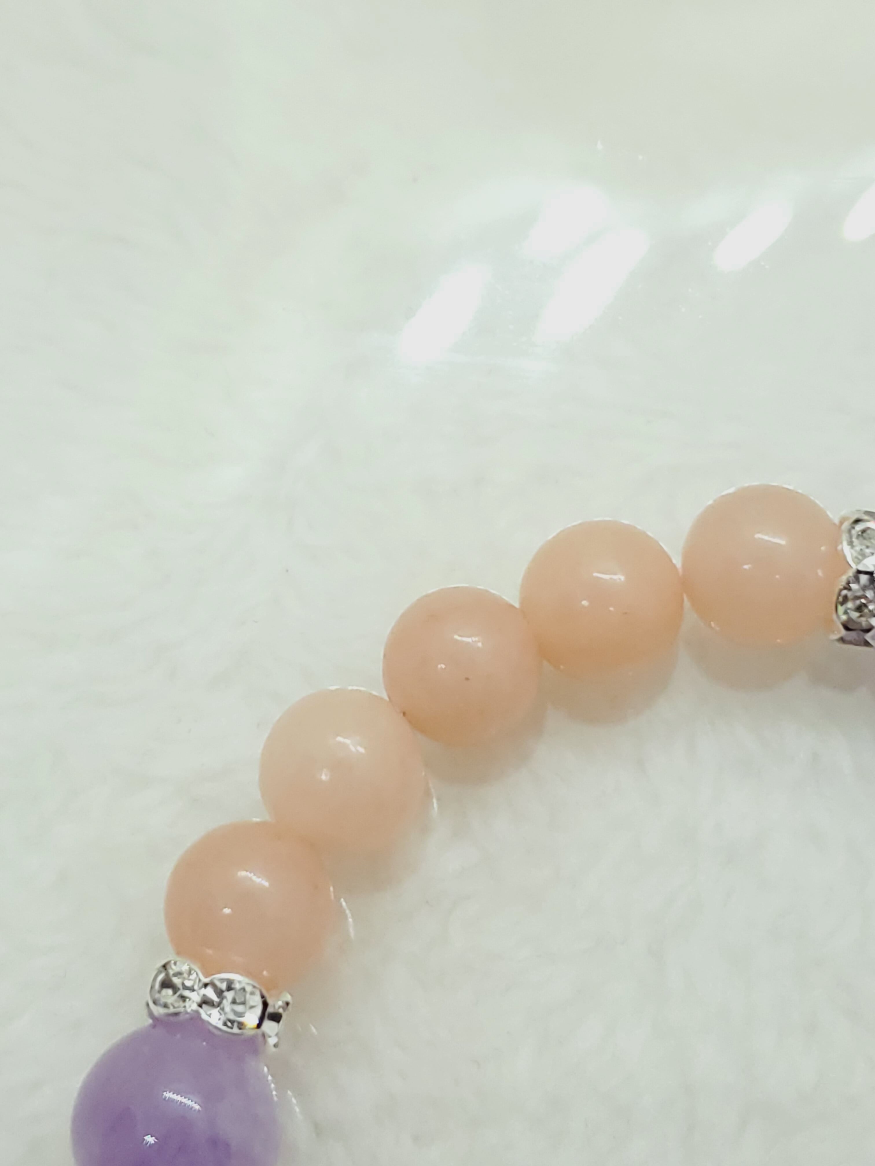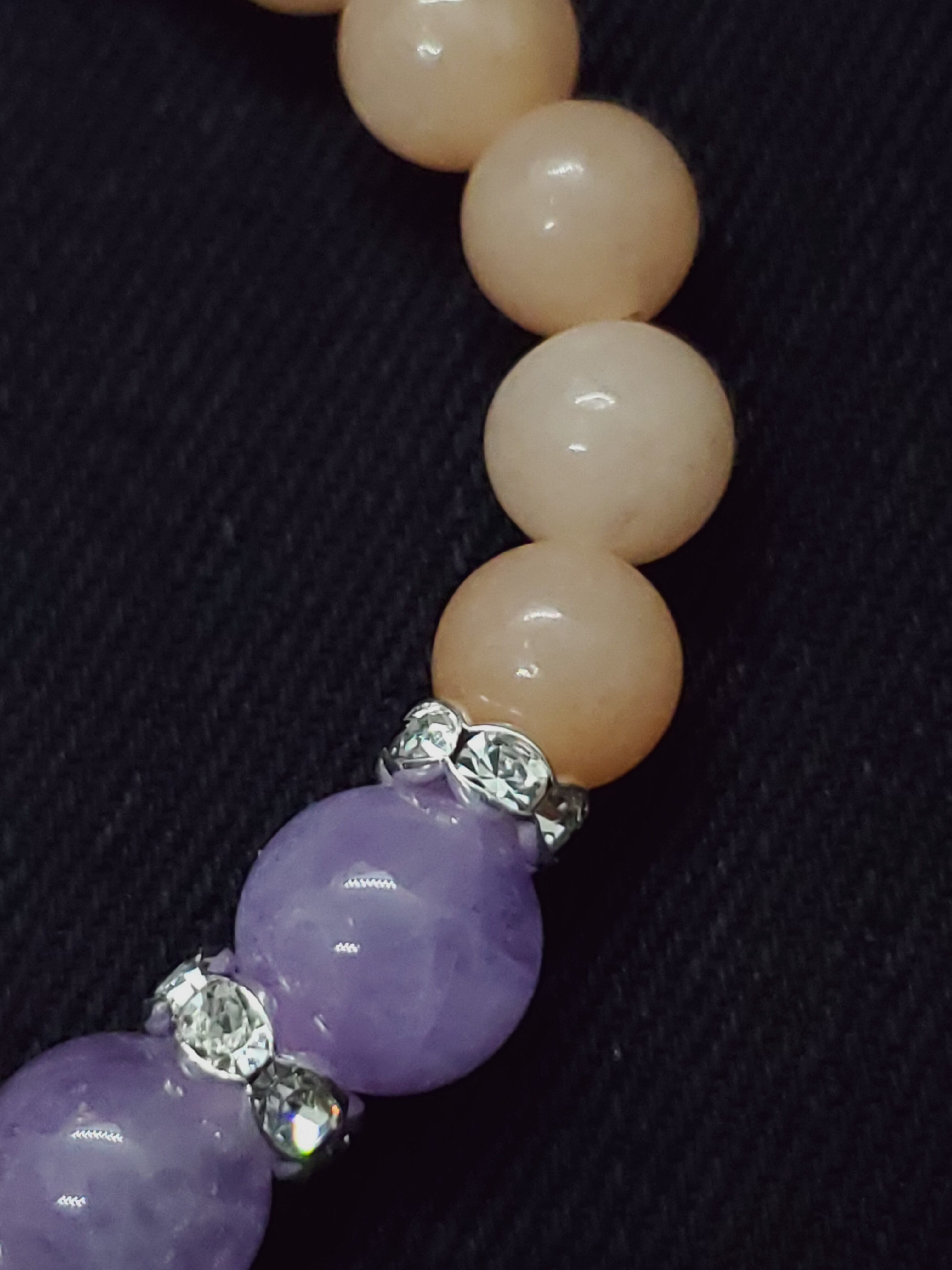 淡いラベンダーカラーのアメジストと、ピーチカラーが可愛らしいアベンチュリン(レッセンスありませんがアベンチュリンという流通名でした)のラブリーカラーな組み合わせです!