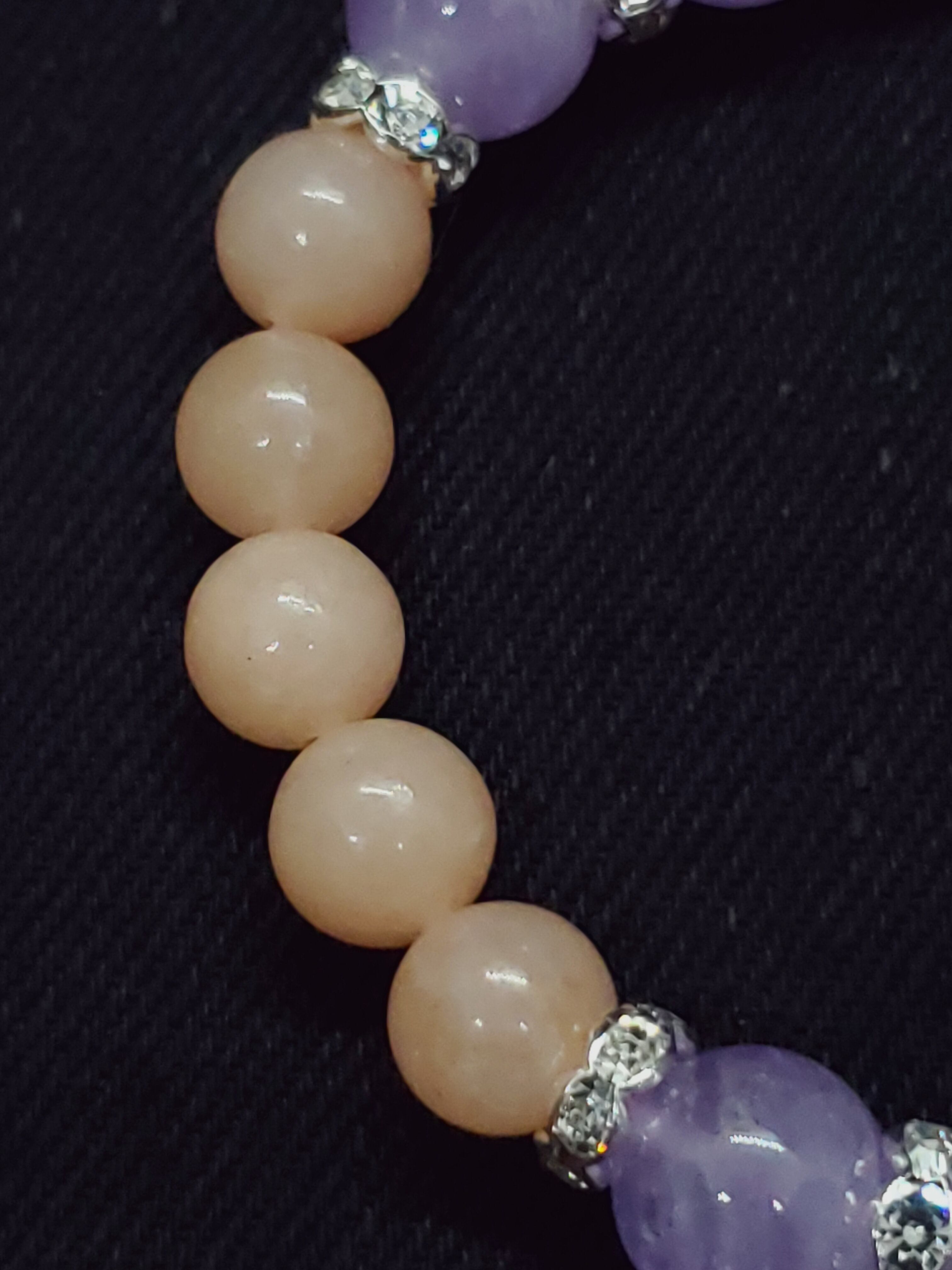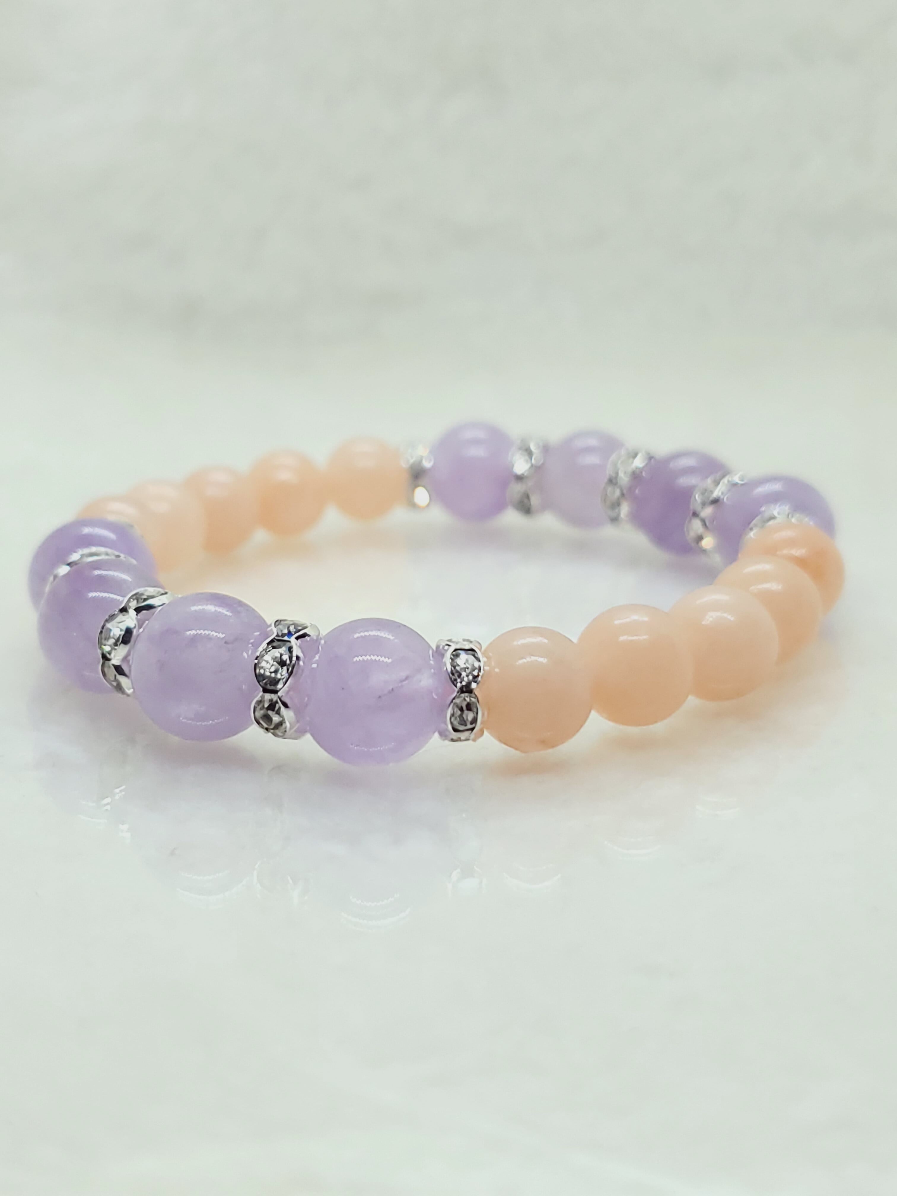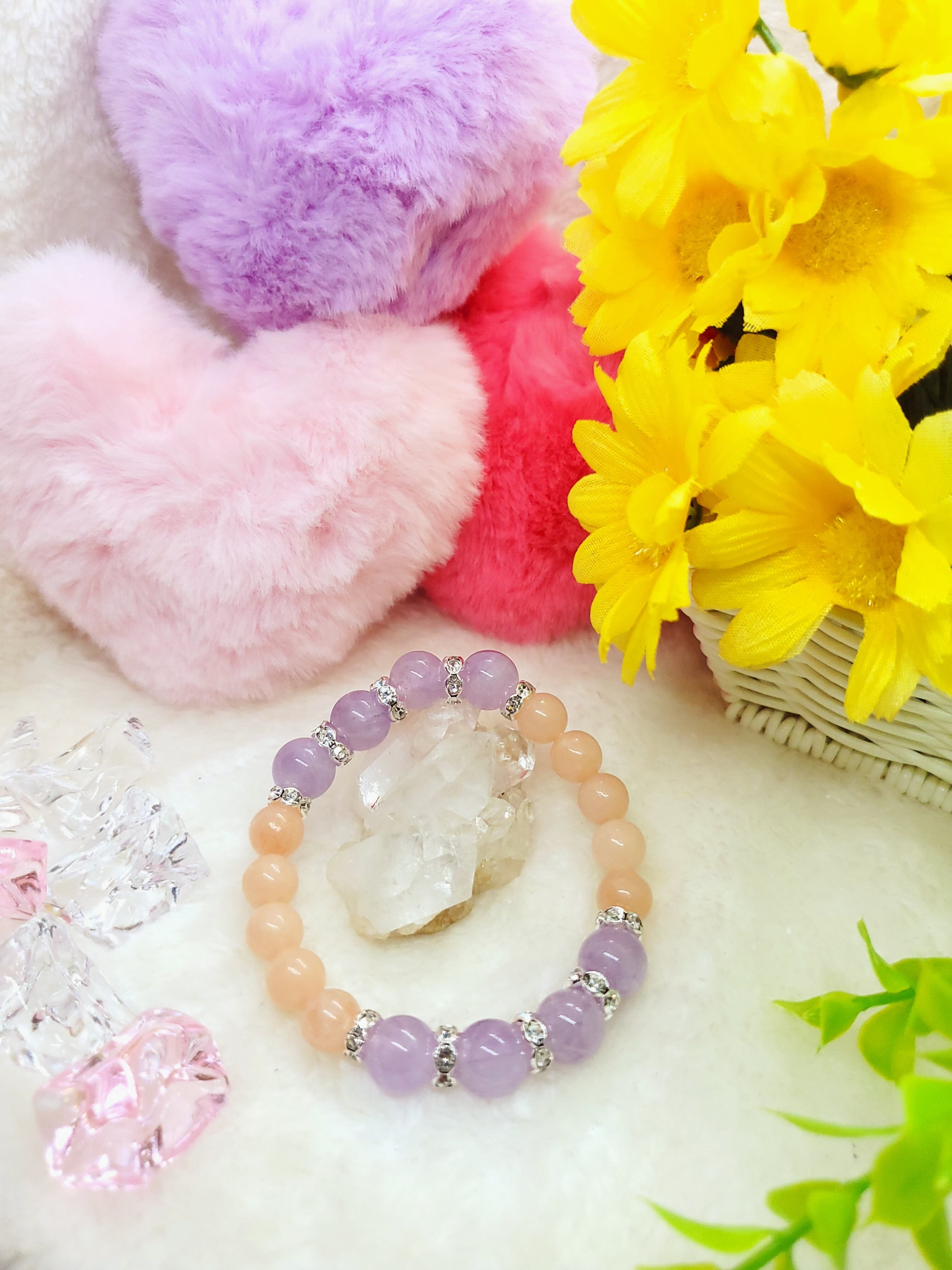 淡いラベンダーカラーのアメジストと、ピーチカラーが可愛らしいアベンチュリン(レッセンスありませんがアベンチュリンという流通名でした)のラブリーカラーな組み合わせです!