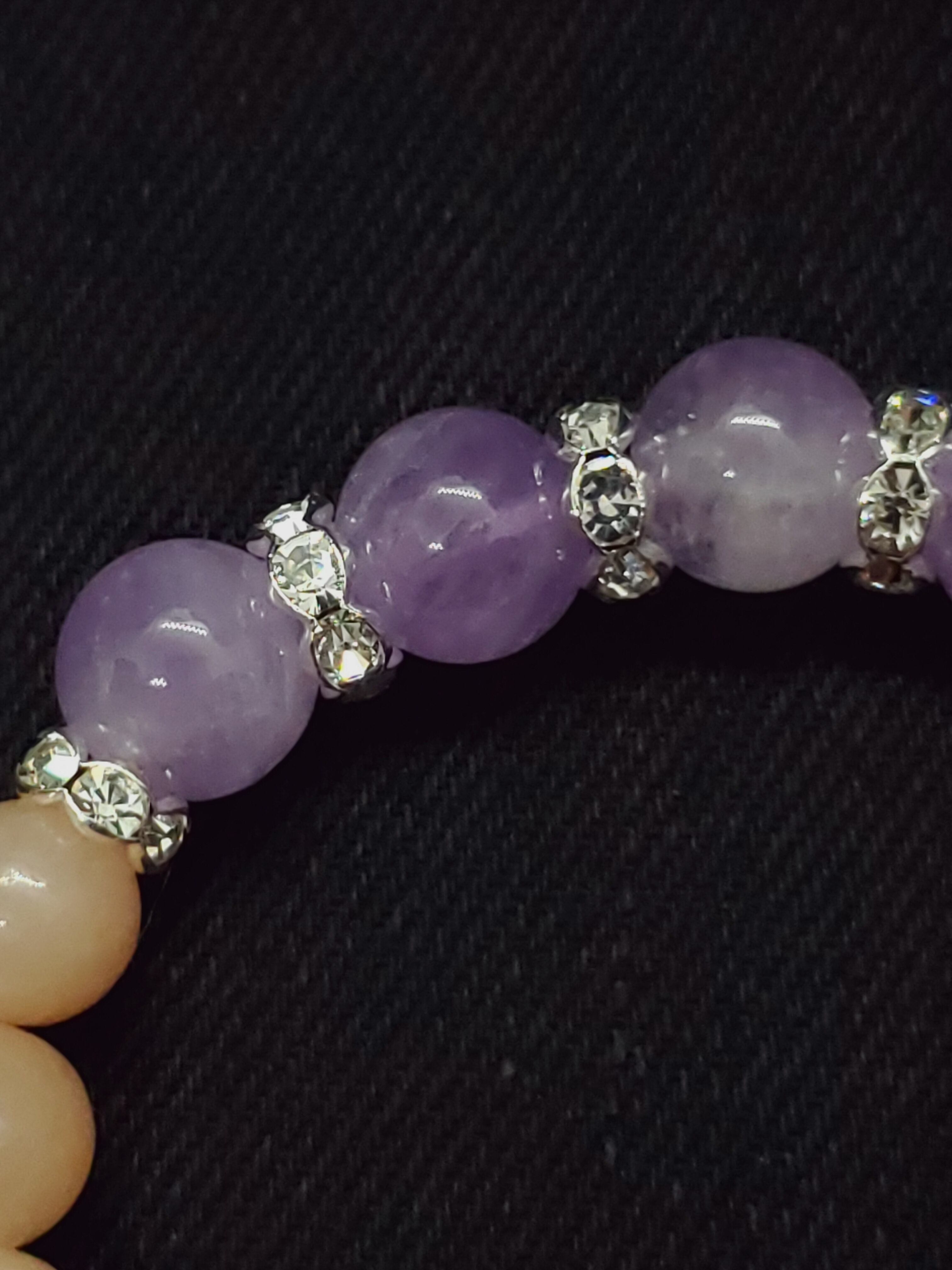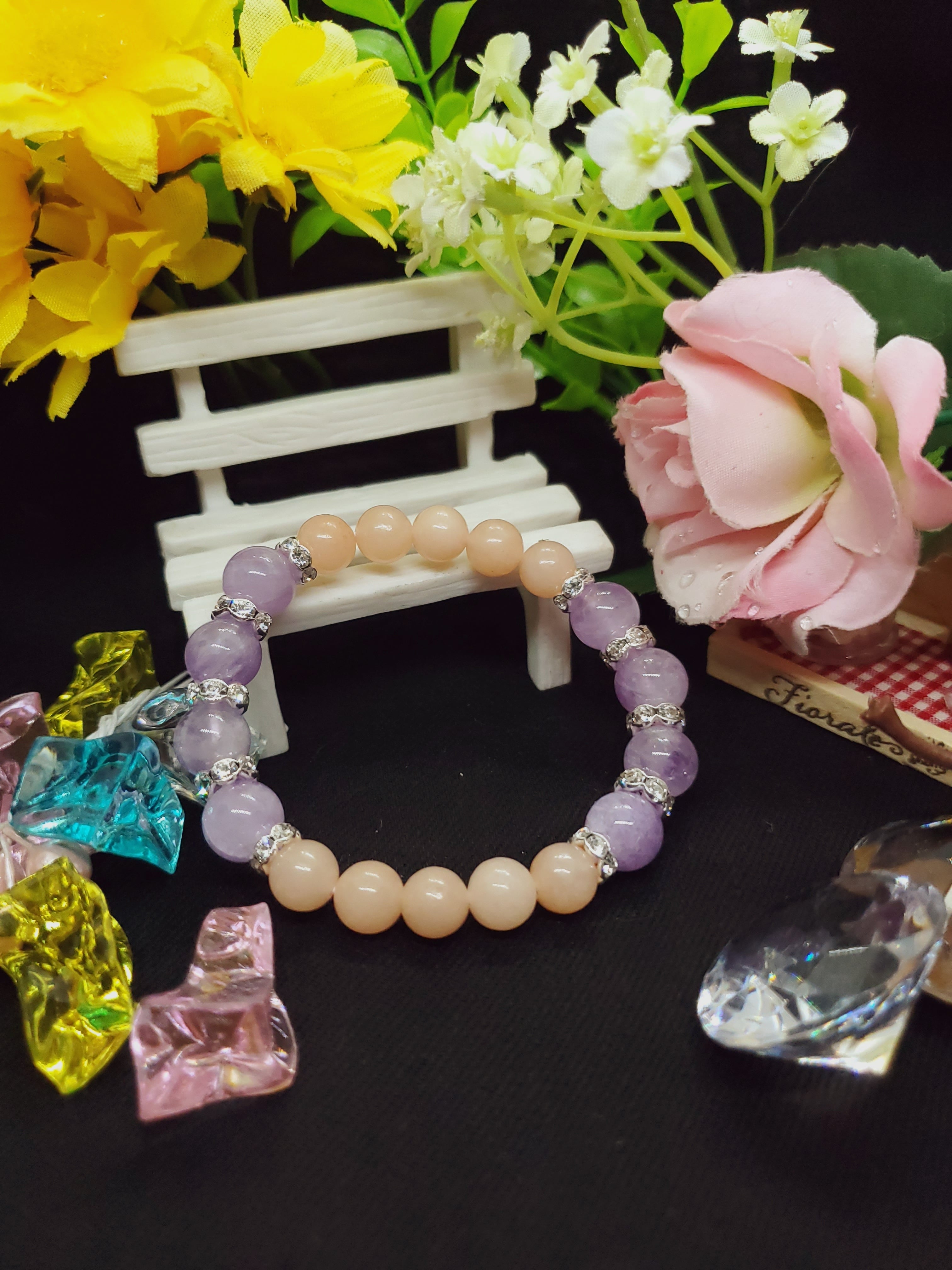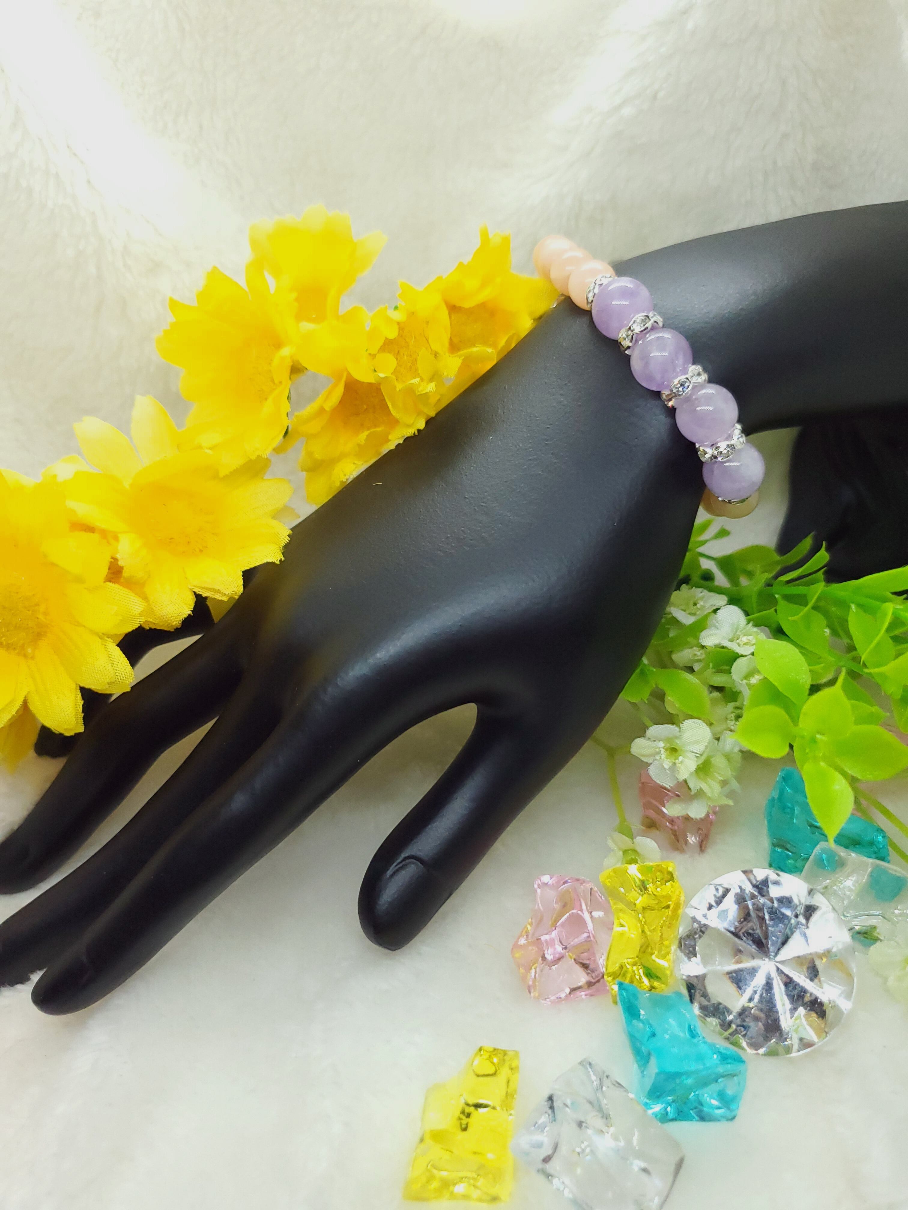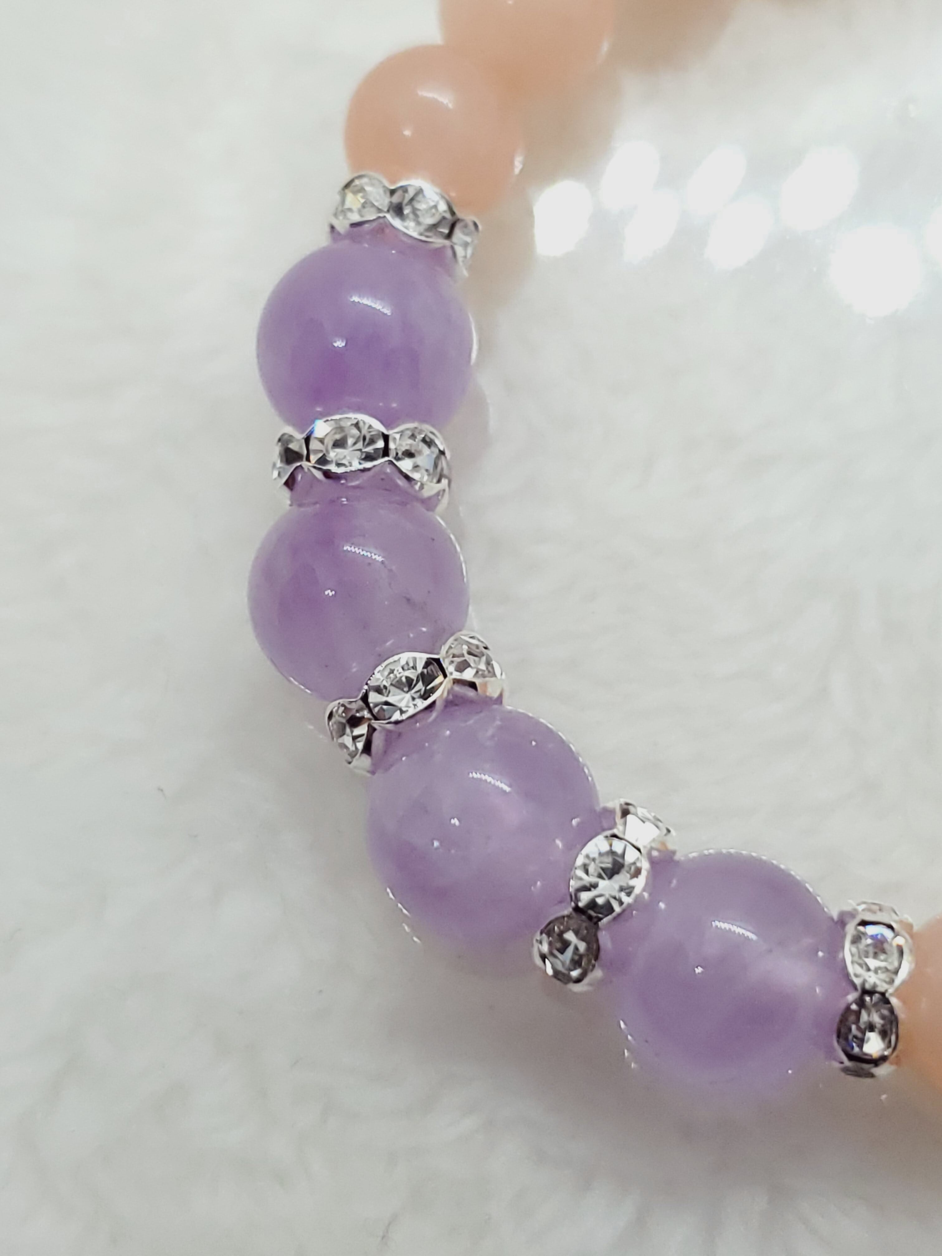 淡いラベンダーカラーのアメジストと、ピーチカラーが可愛らしいアベンチュリン(レッセンスありませんがアベンチュリンという流通名でした)のラブリーカラーな組み合わせです!